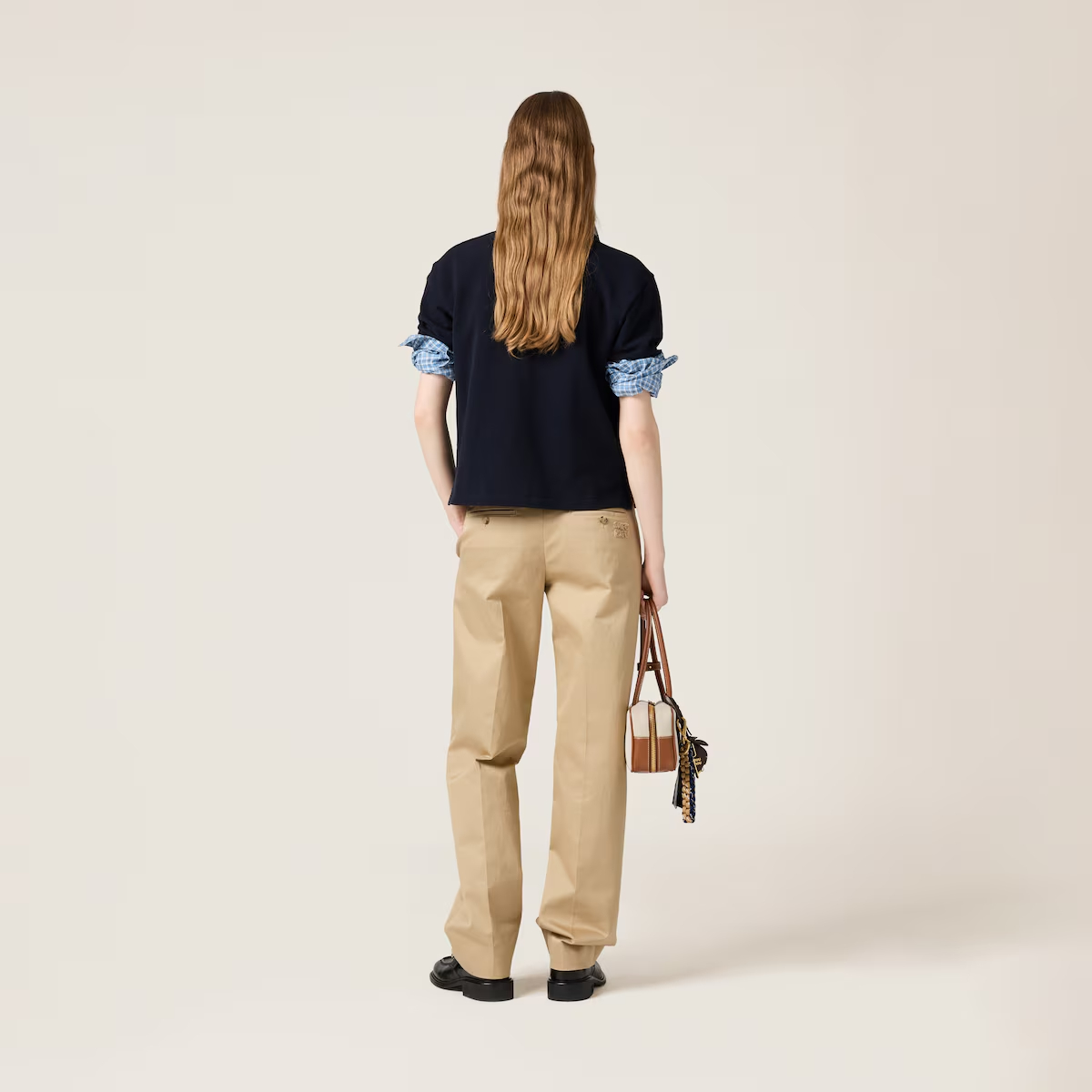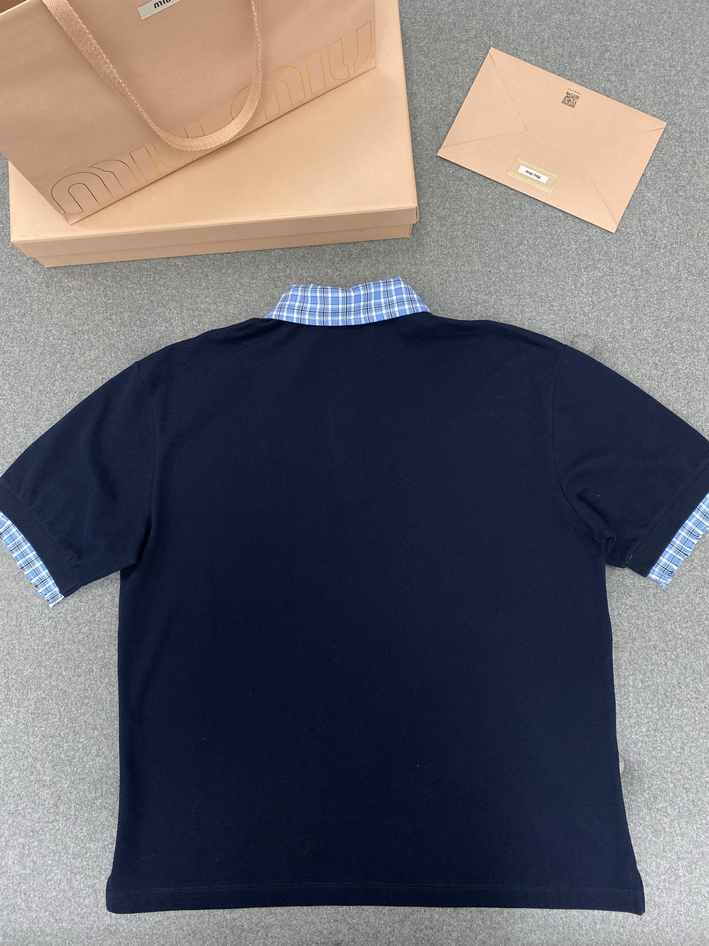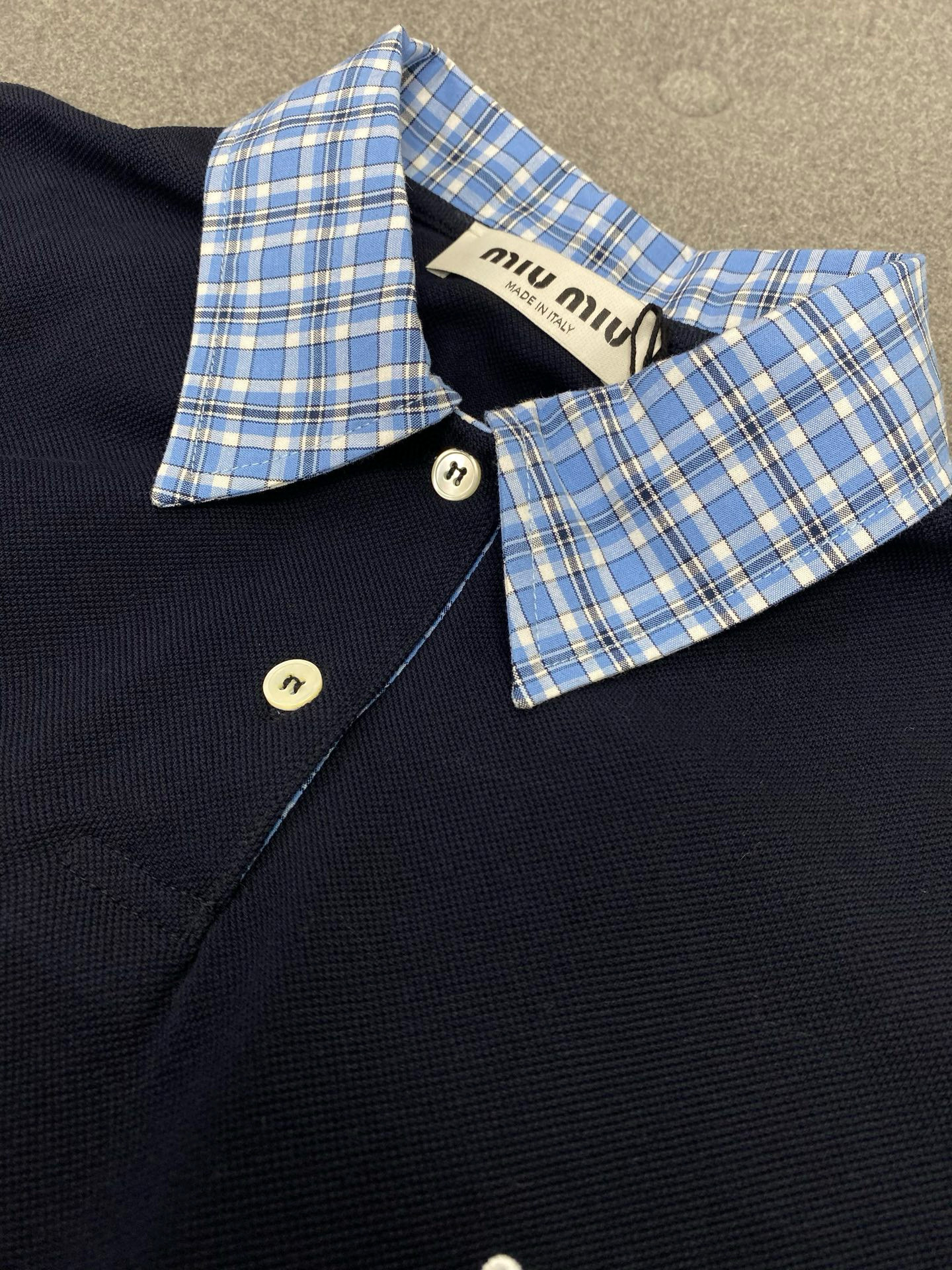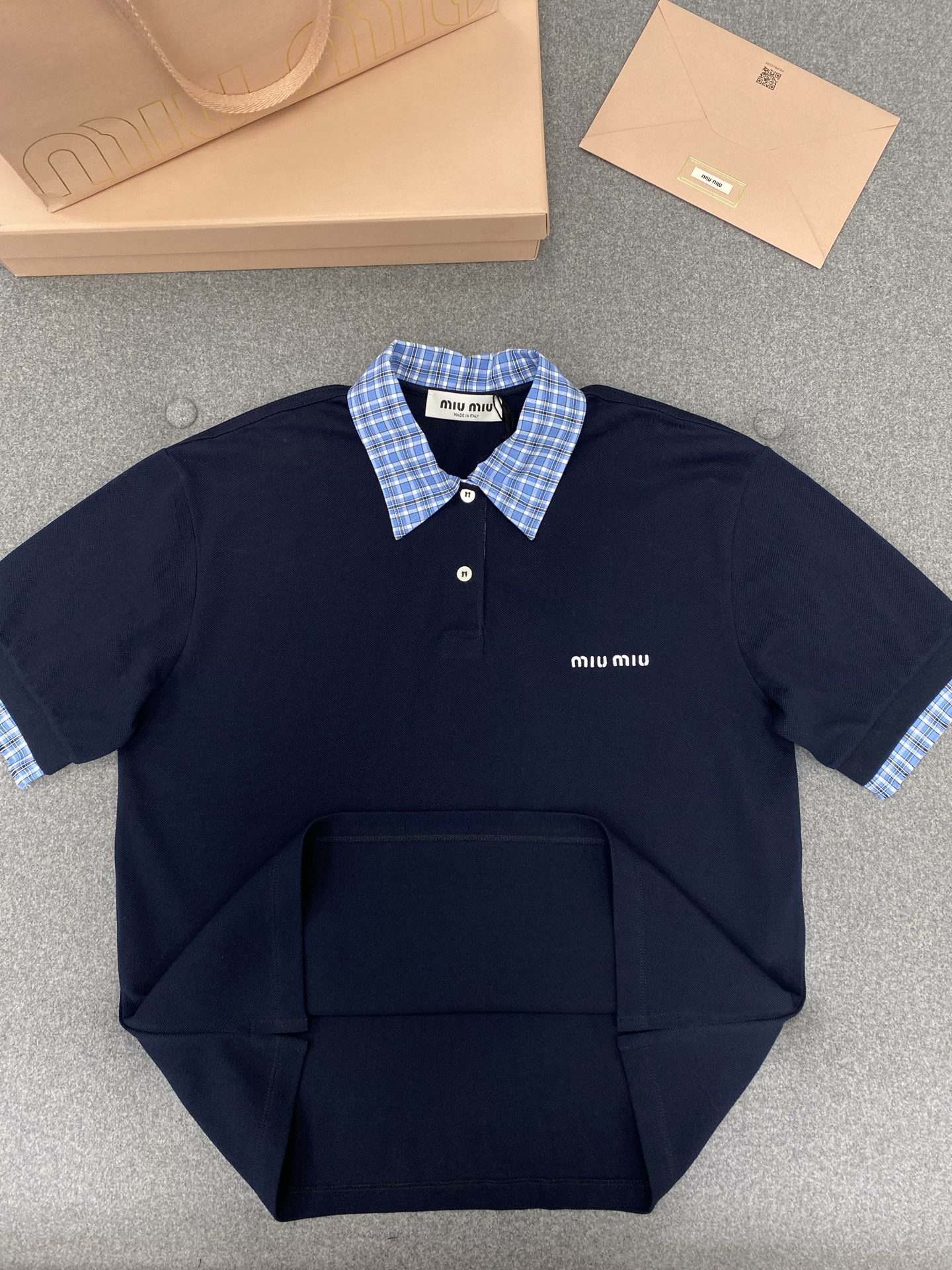 NIGO MiuMiu Women's Beaded Cotton Patchwork Plaid Polo Shirt Fashion Lapel Embroidered Letters Logo Casual Top #nigo77285