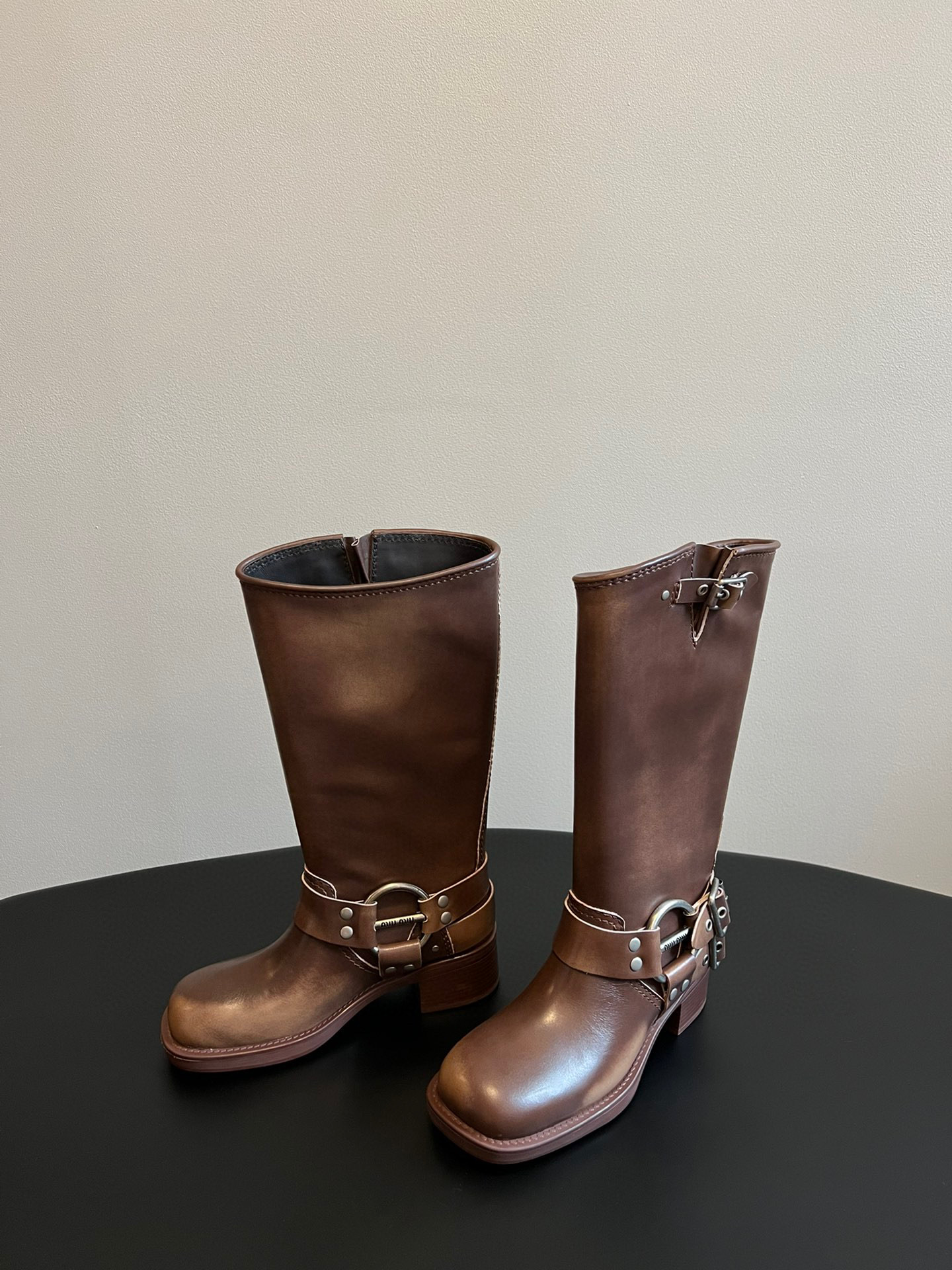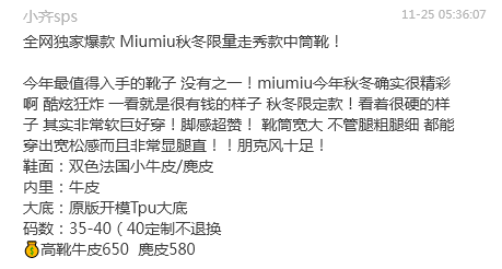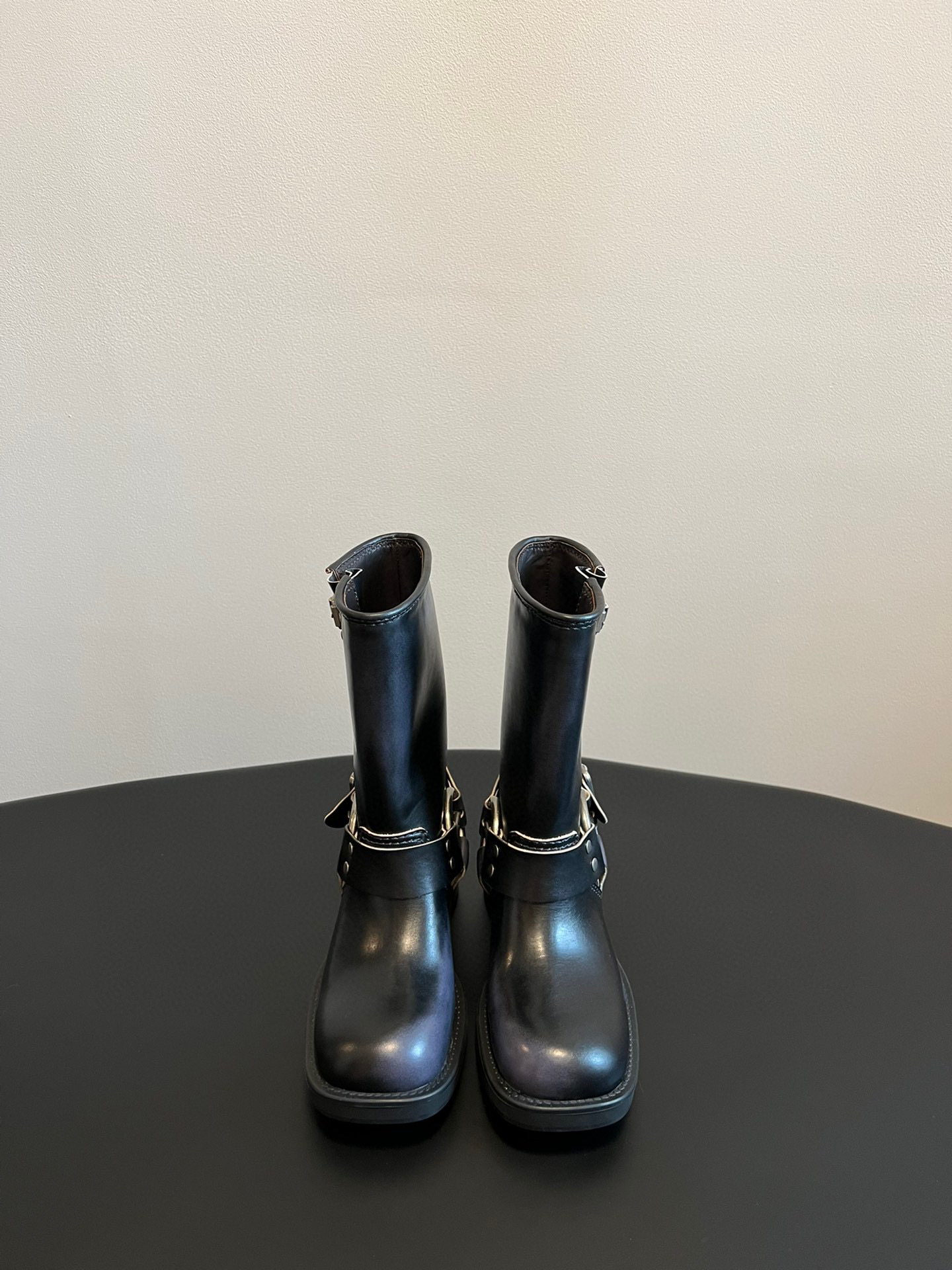 This year's most worth getting boots None! miumiu this year's fall and winter is indeed very wonderful ah cool crazy bomb a look is very rich look fall and winter limited models! It looks very hard, but it's actually very soft and very wearable! The feeling of the feet is superb! The boots are wide, no matter how thick or thin your legs are, you can wear a loose feeling and very straight legs! Punk style!