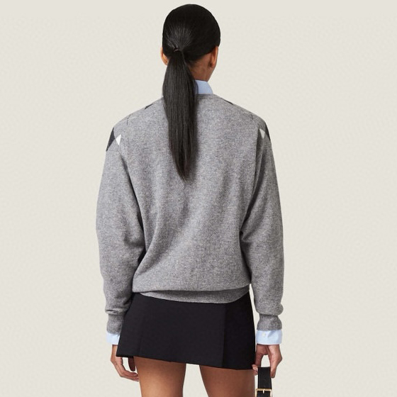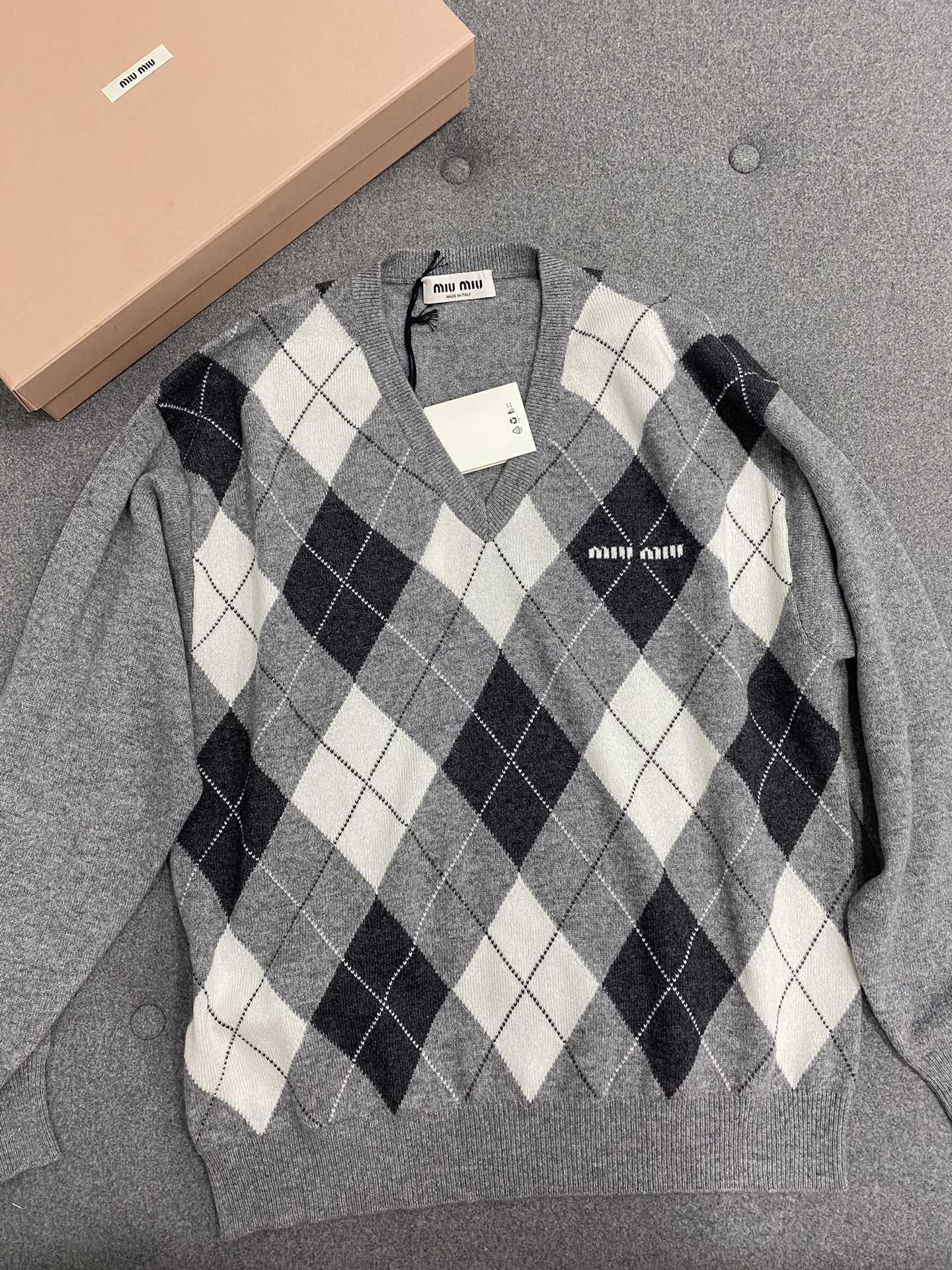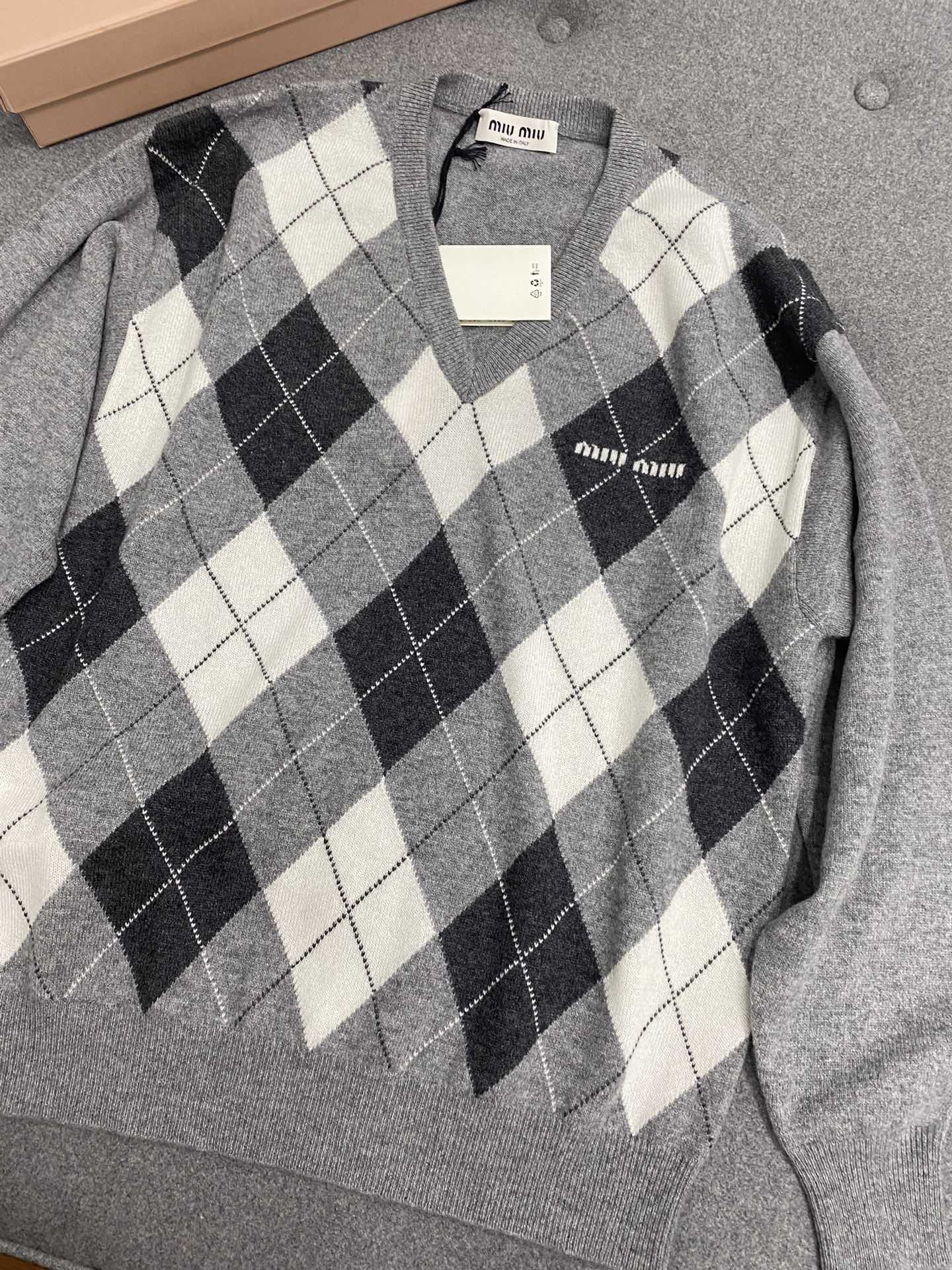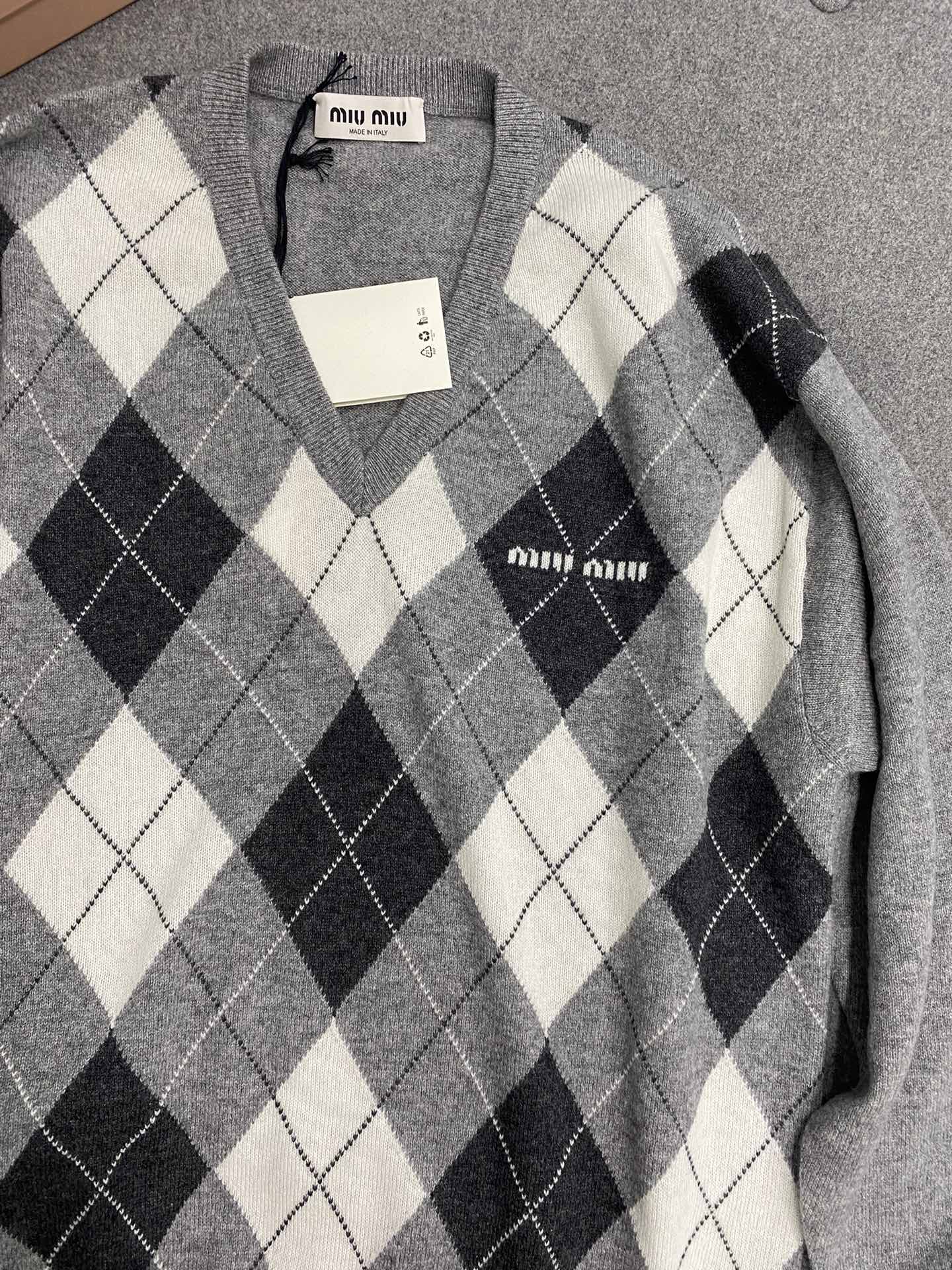 NIGO MiuMiu Women's Fall/Winter Fashion Casual V Neck Diamond Check Cashmere Knit Sweater #nigo79391