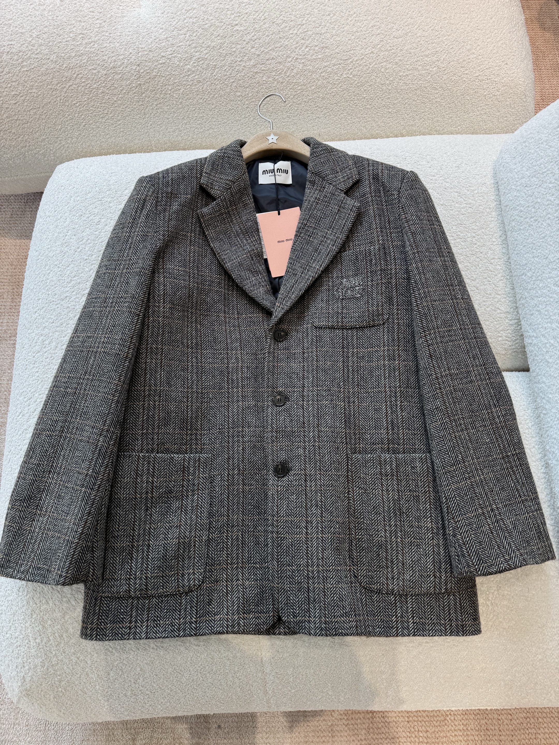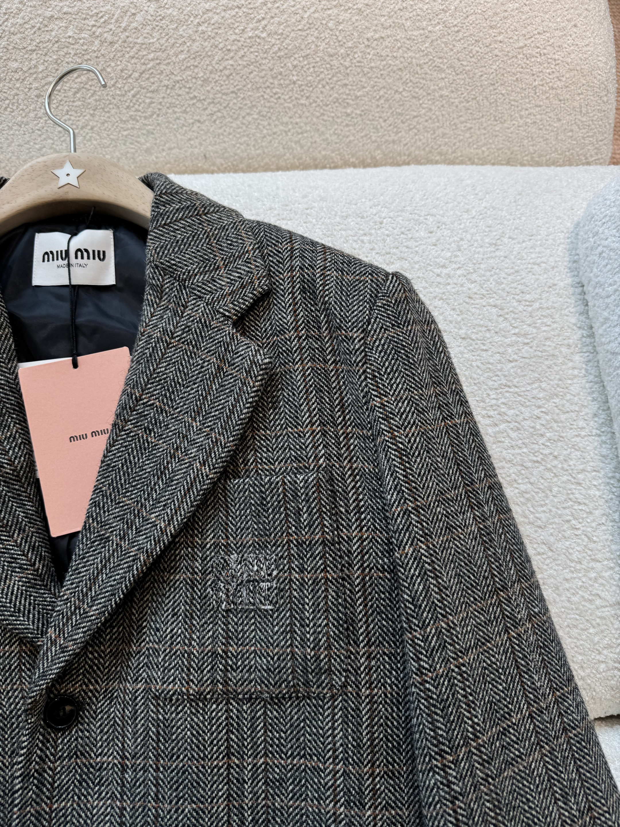 NIGO MiuMiu Women's Fashion Casual V-Neck Single Button Straight Cut Embroidered Logo Wool Blazer Jacket #nigo79167