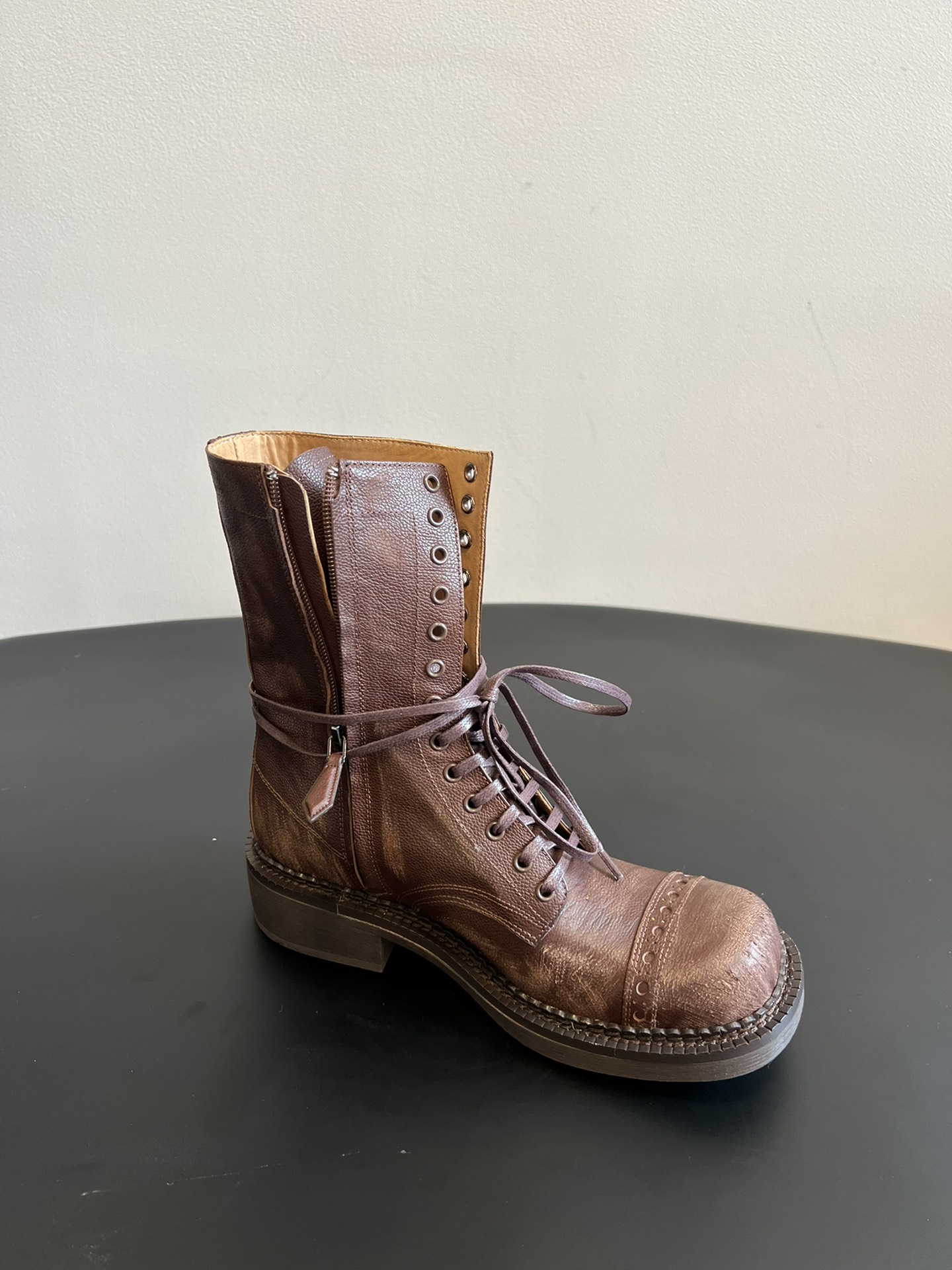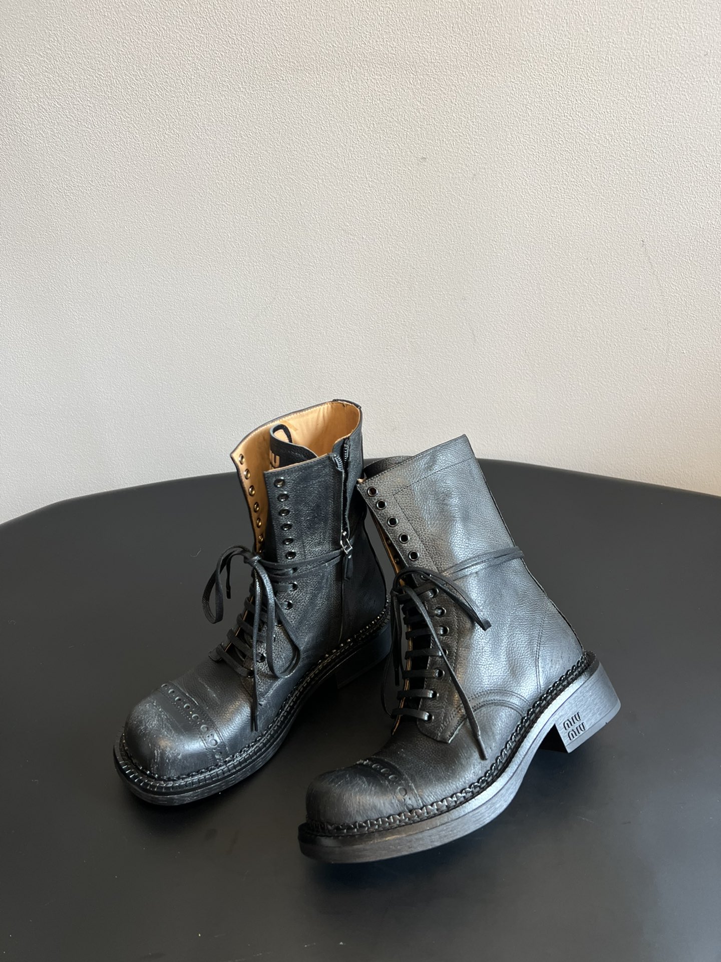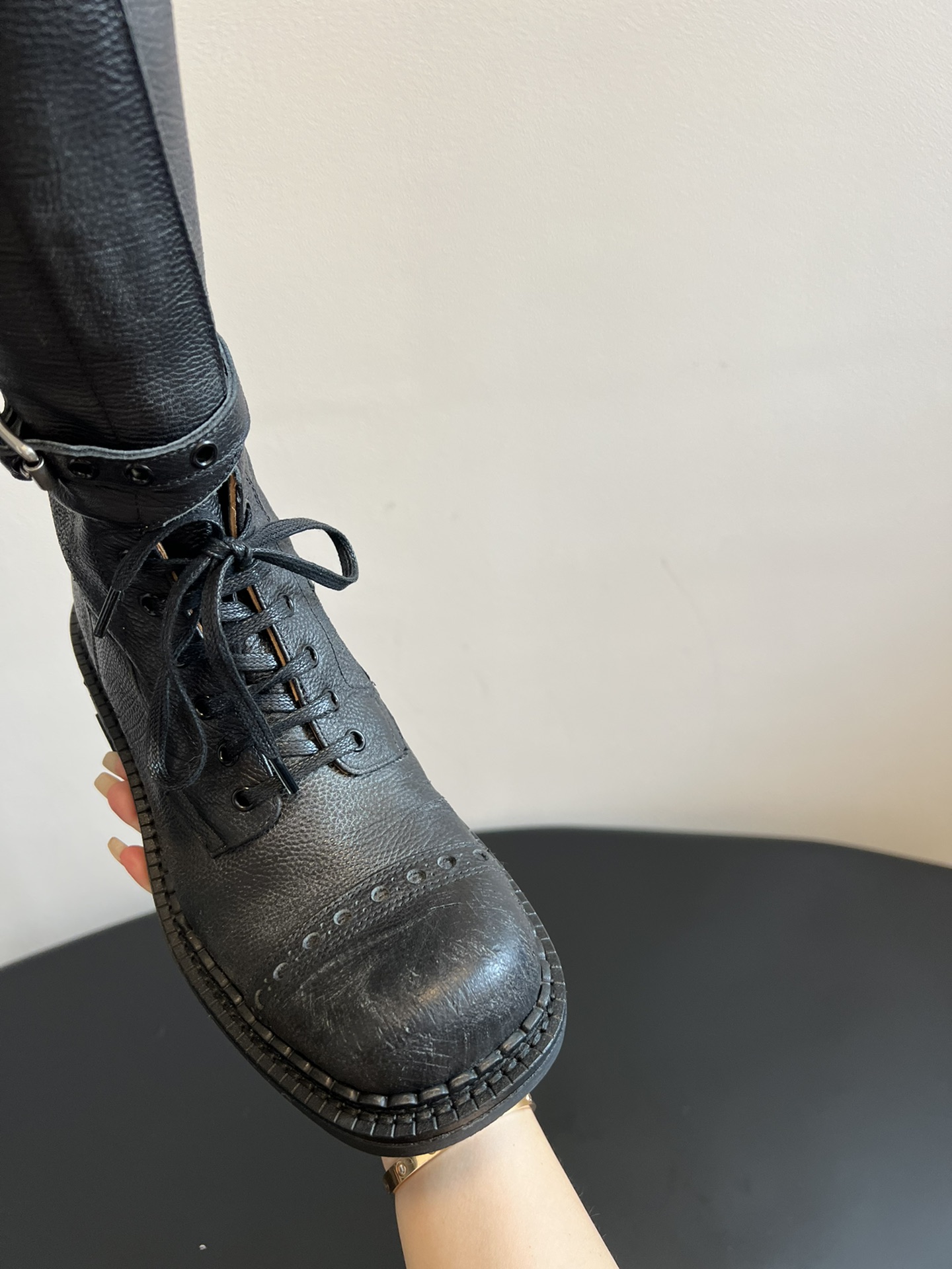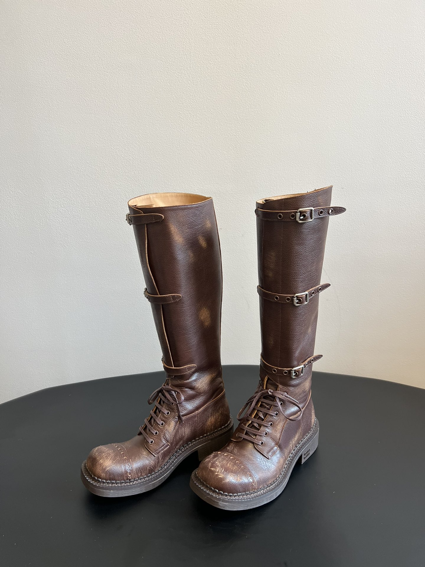 NIGO MiuMiu Women's Four Seasons Biker Style Retro Leather Buckle Boots Lace-up Cowhide Boots Casual Shoes Short Boots Suede High Shoes Ngvp #nigo9154