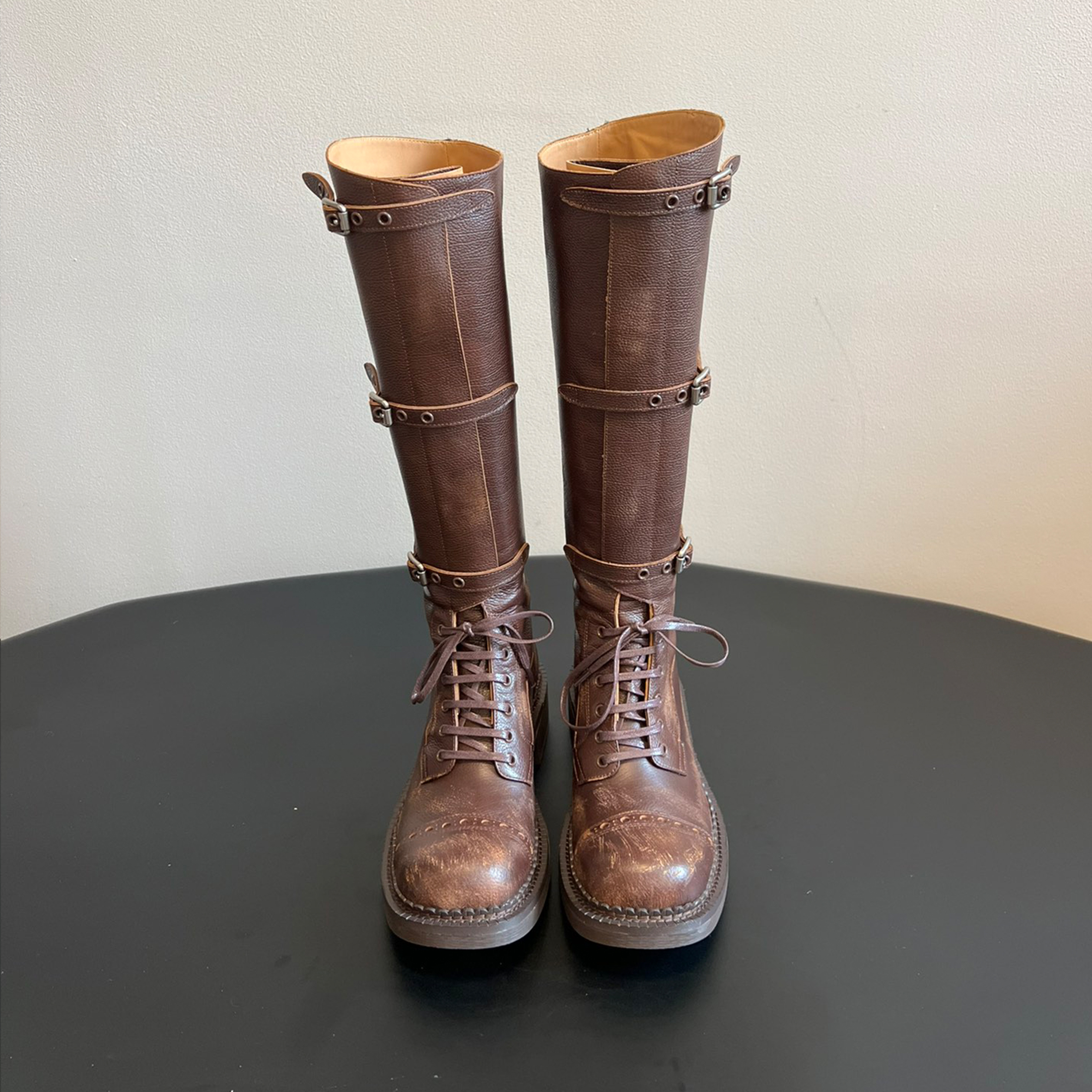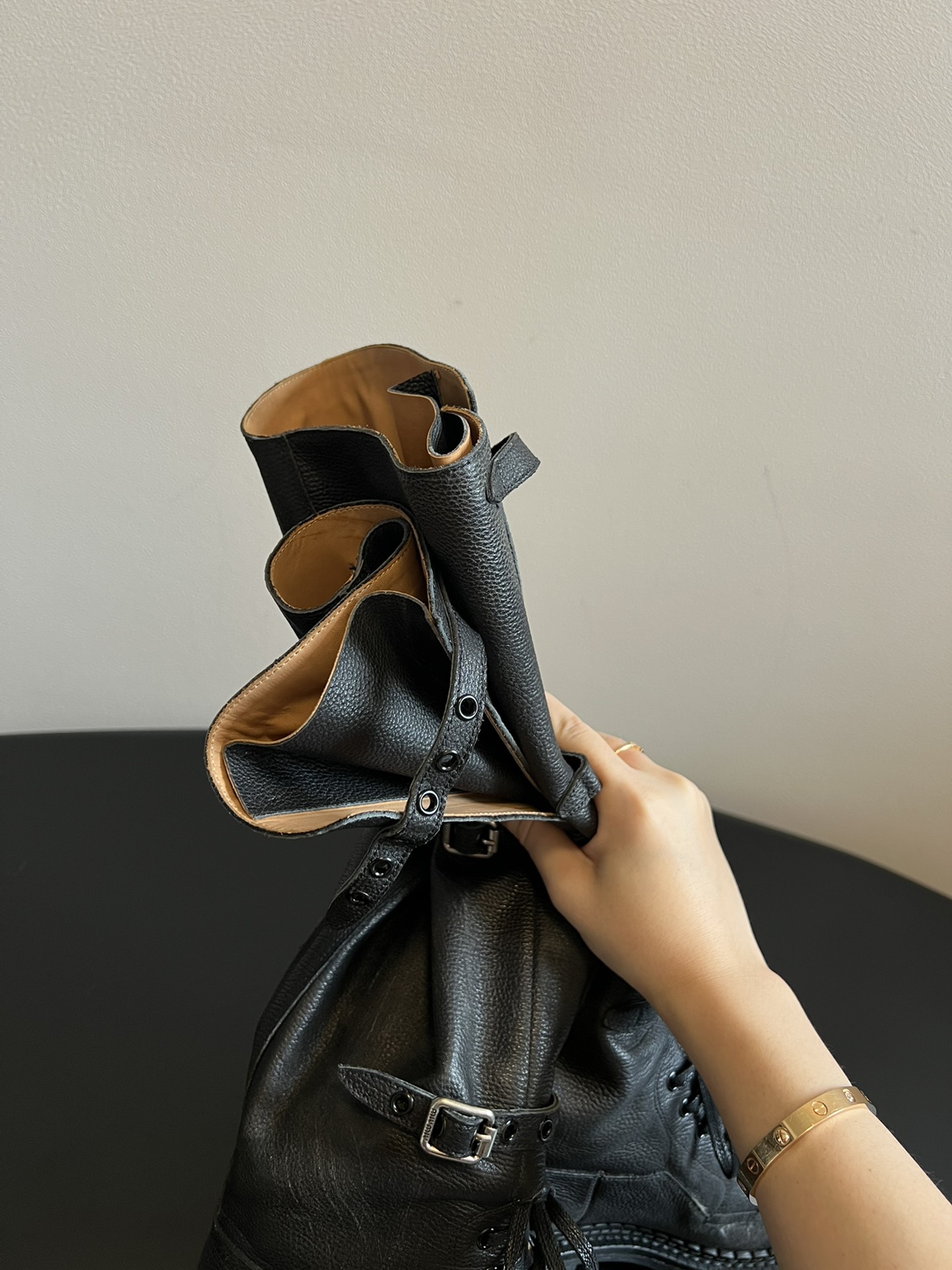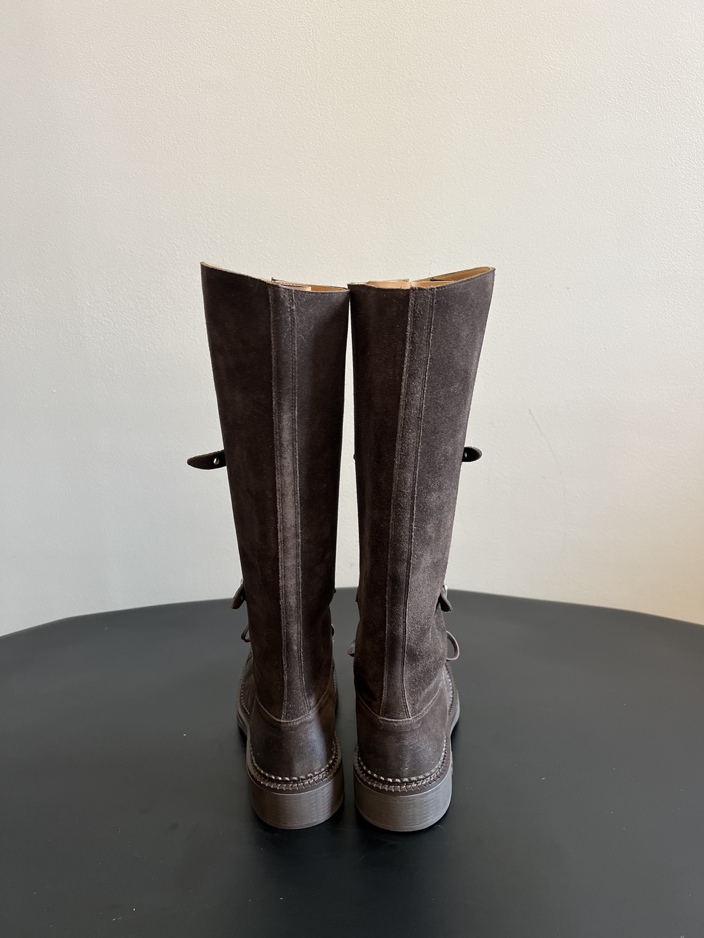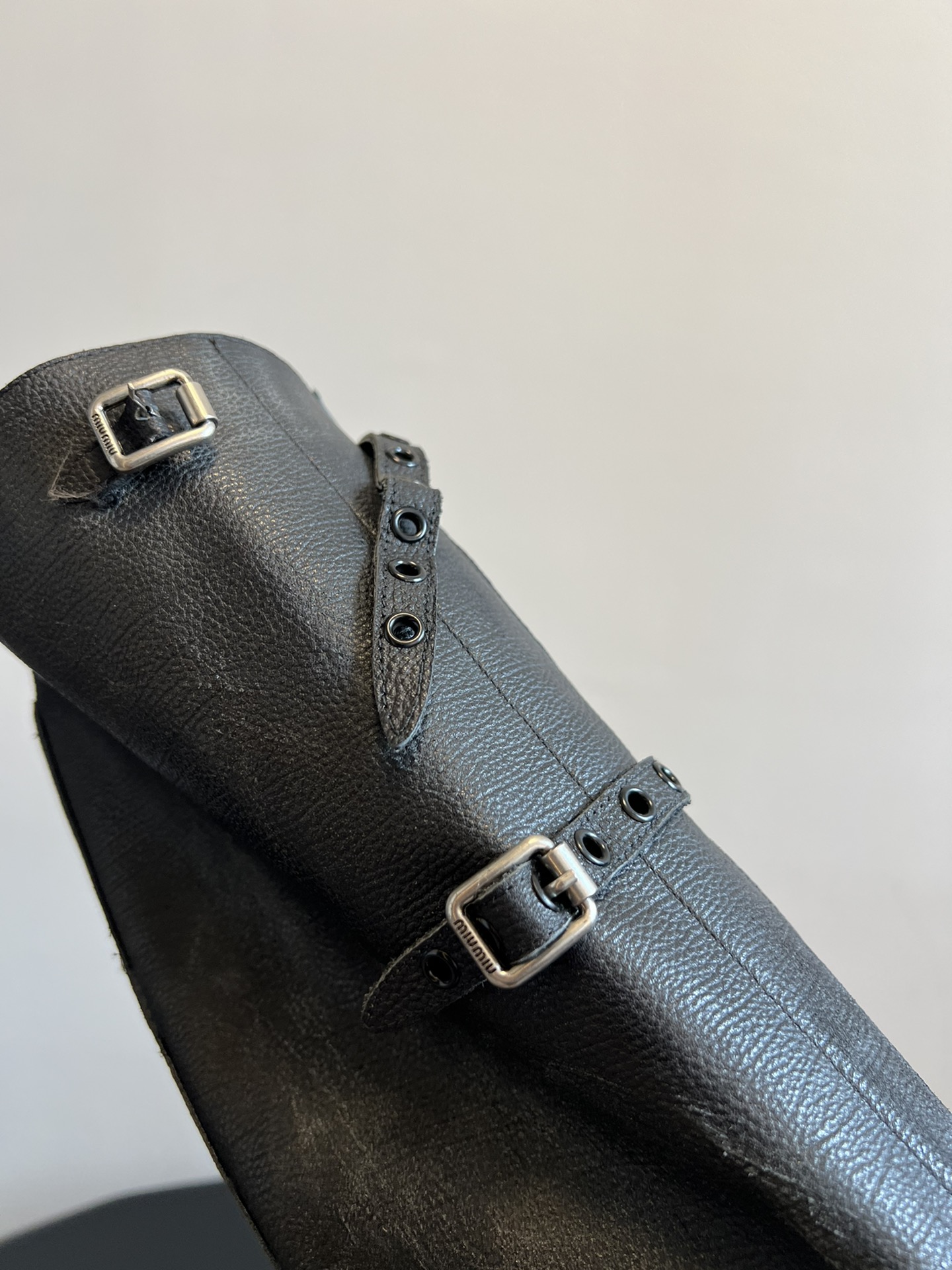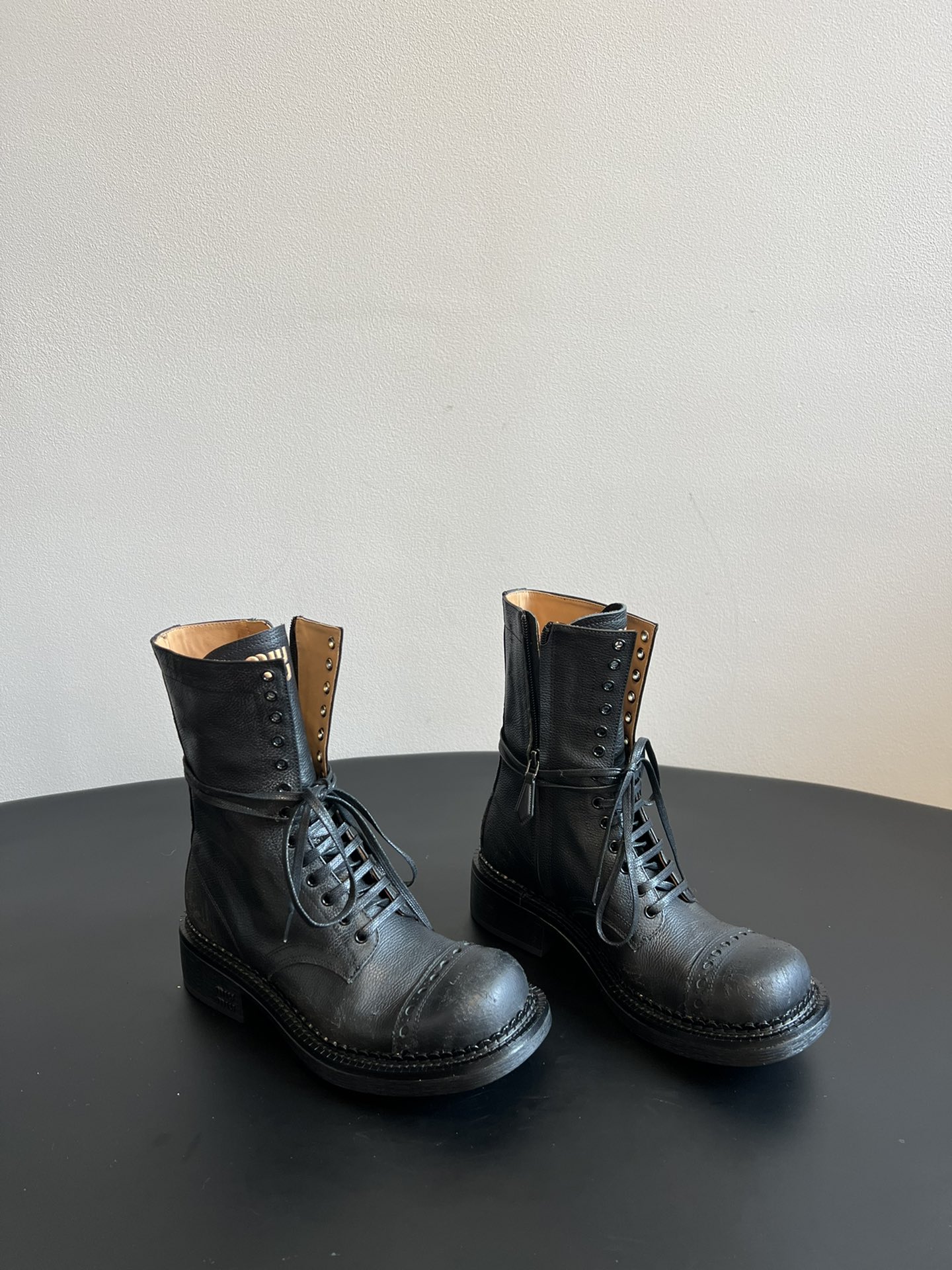 NIGO MiuMiu Women's Four Seasons Biker Style Retro Leather Buckle Boots Lace-up Cowhide Boots Casual Shoes Short Boots Suede High Shoes Ngvp #nigo9154