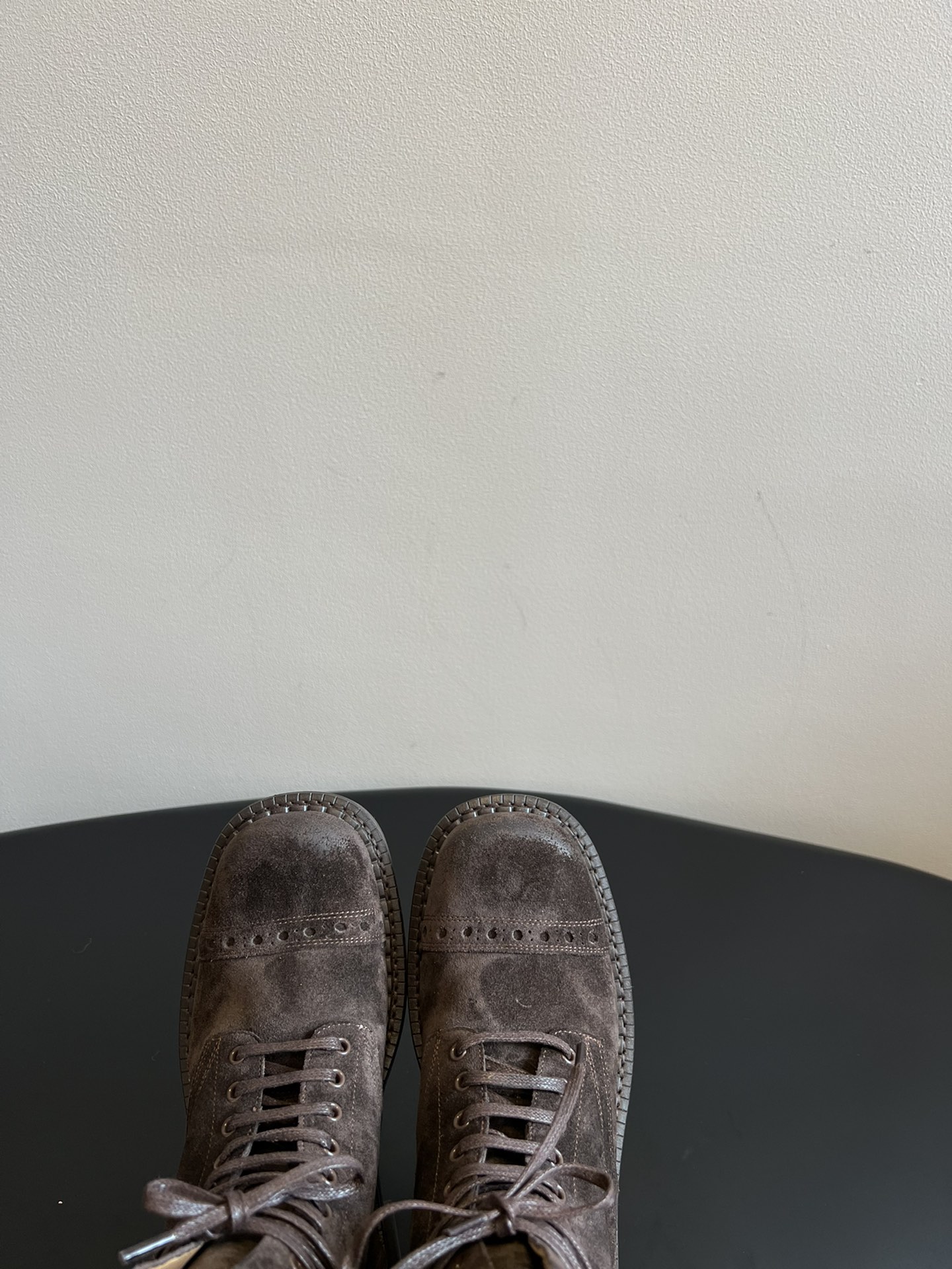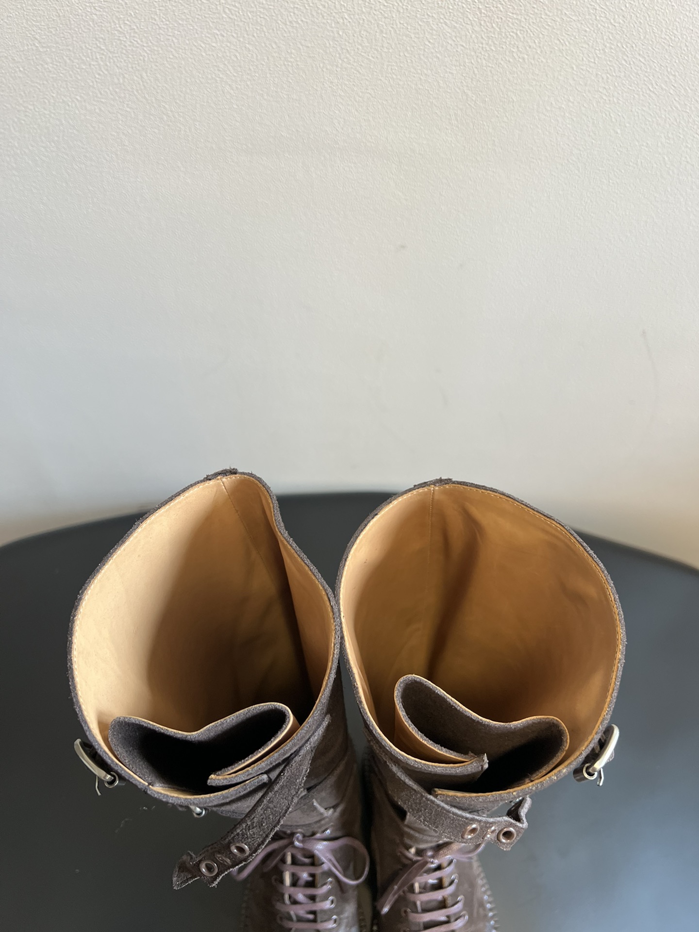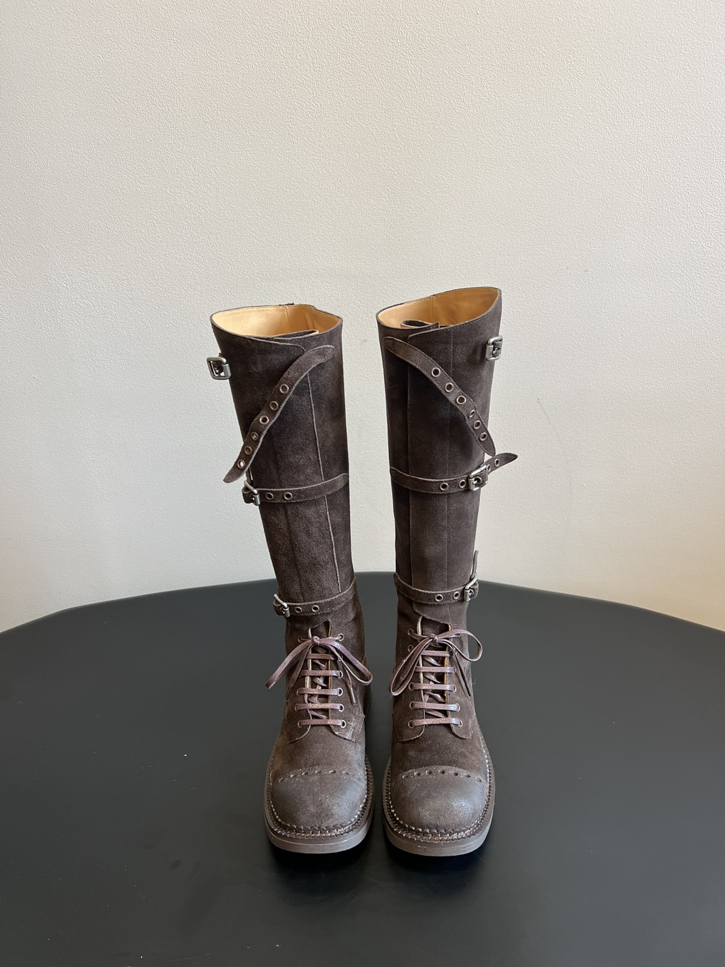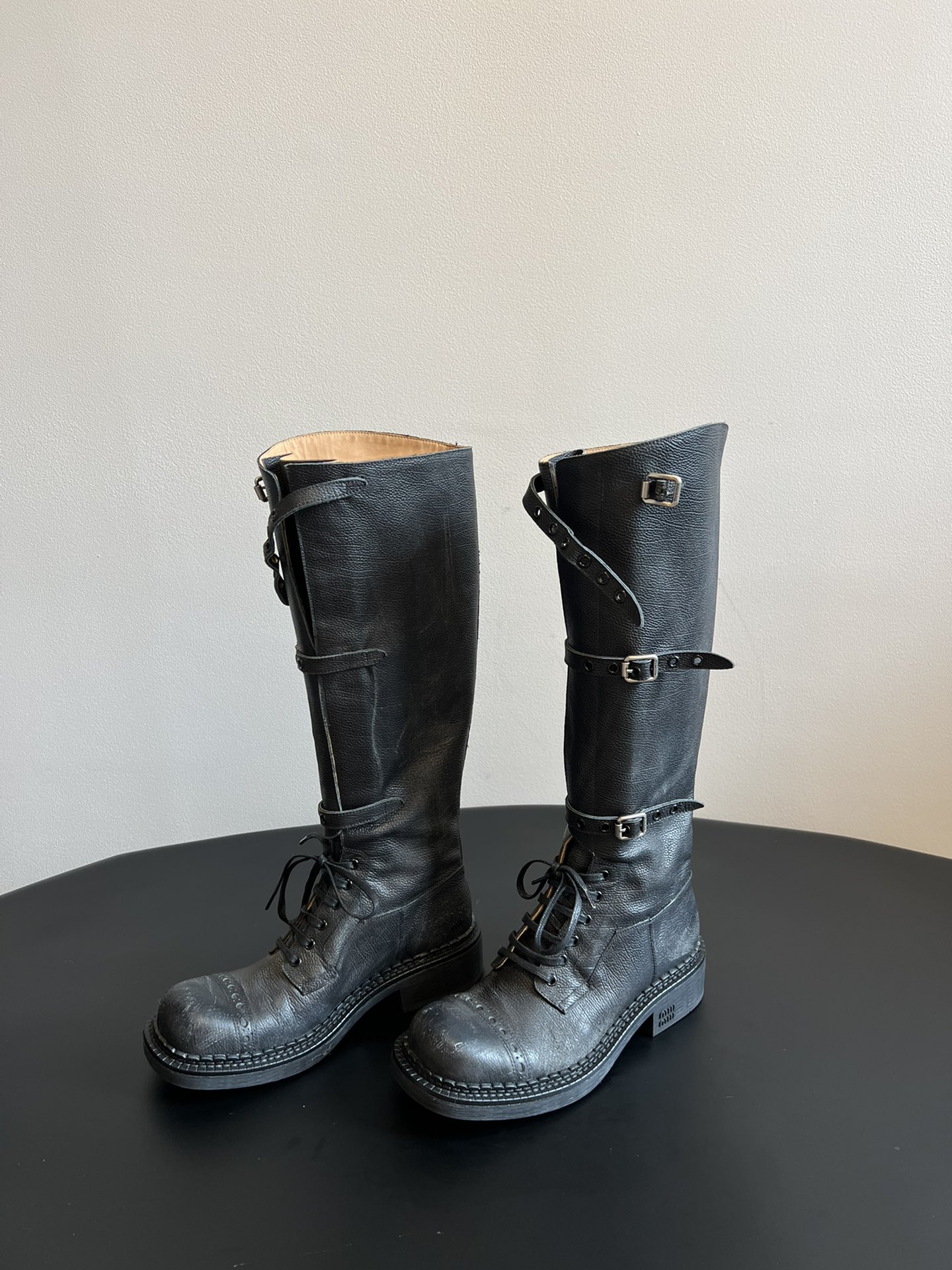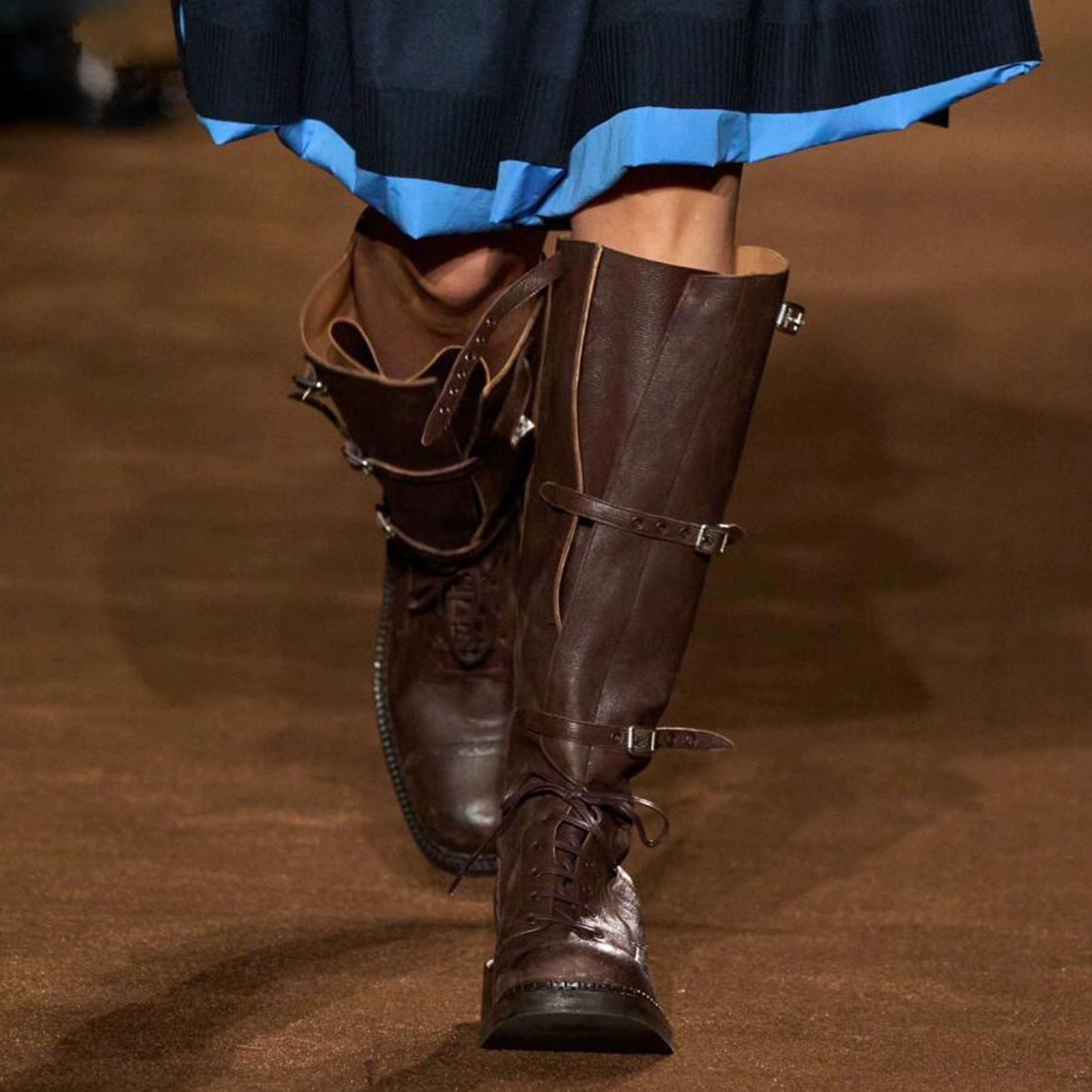 NIGO MiuMiu Women's Four Seasons Biker Style Retro Leather Buckle Boots Lace-up Cowhide Boots Casual Shoes Short Boots Suede High Shoes Ngvp #nigo9154