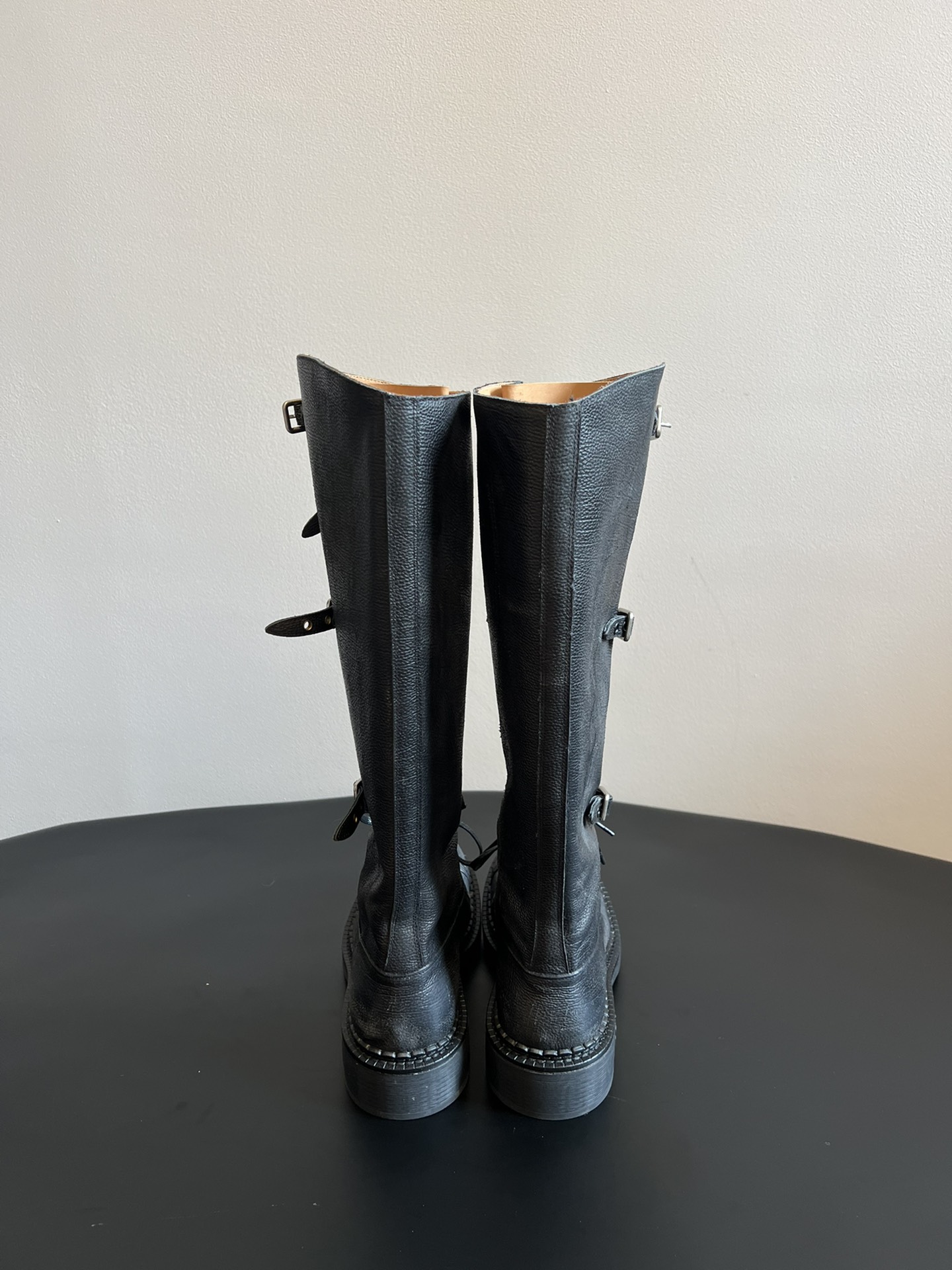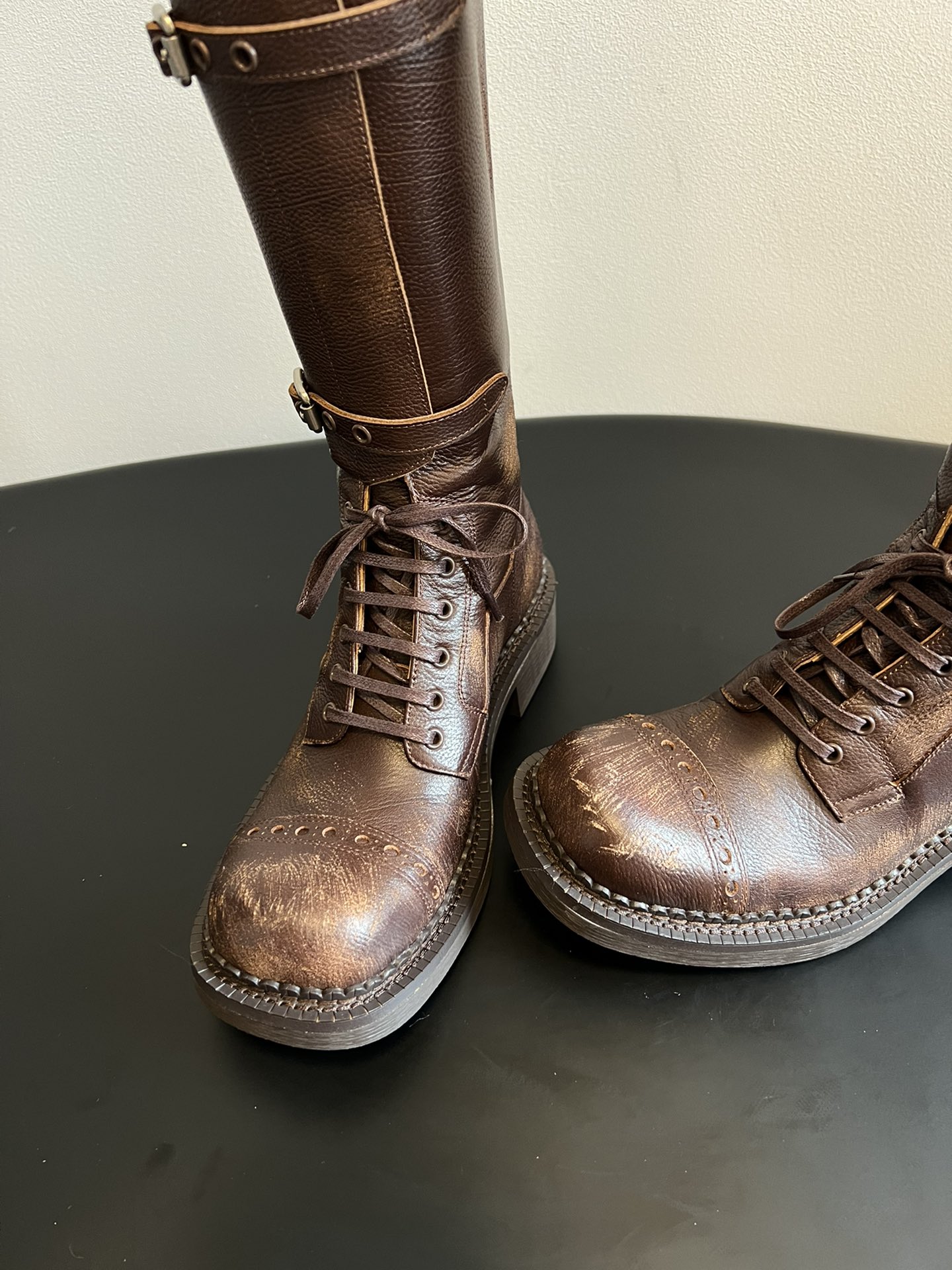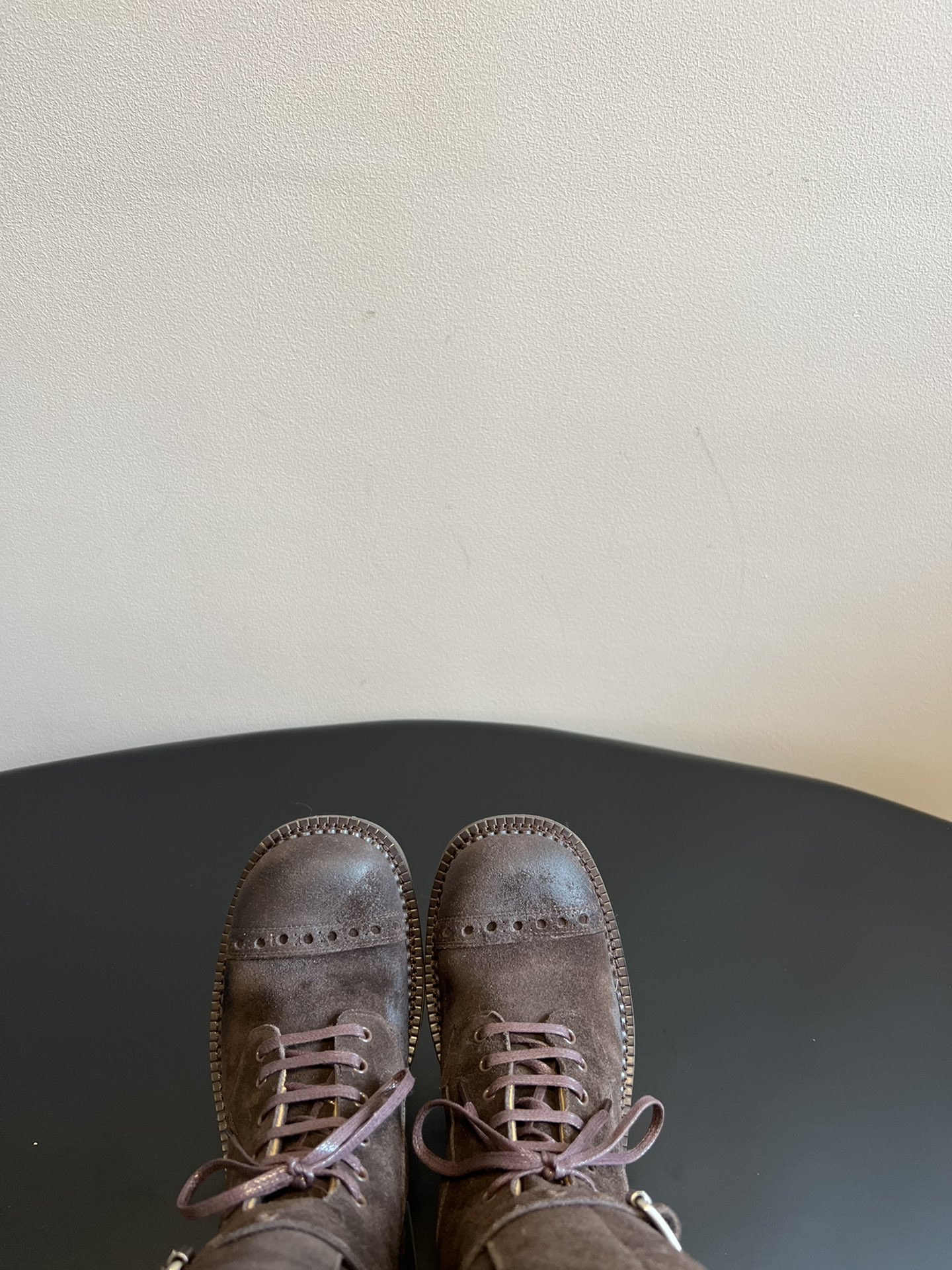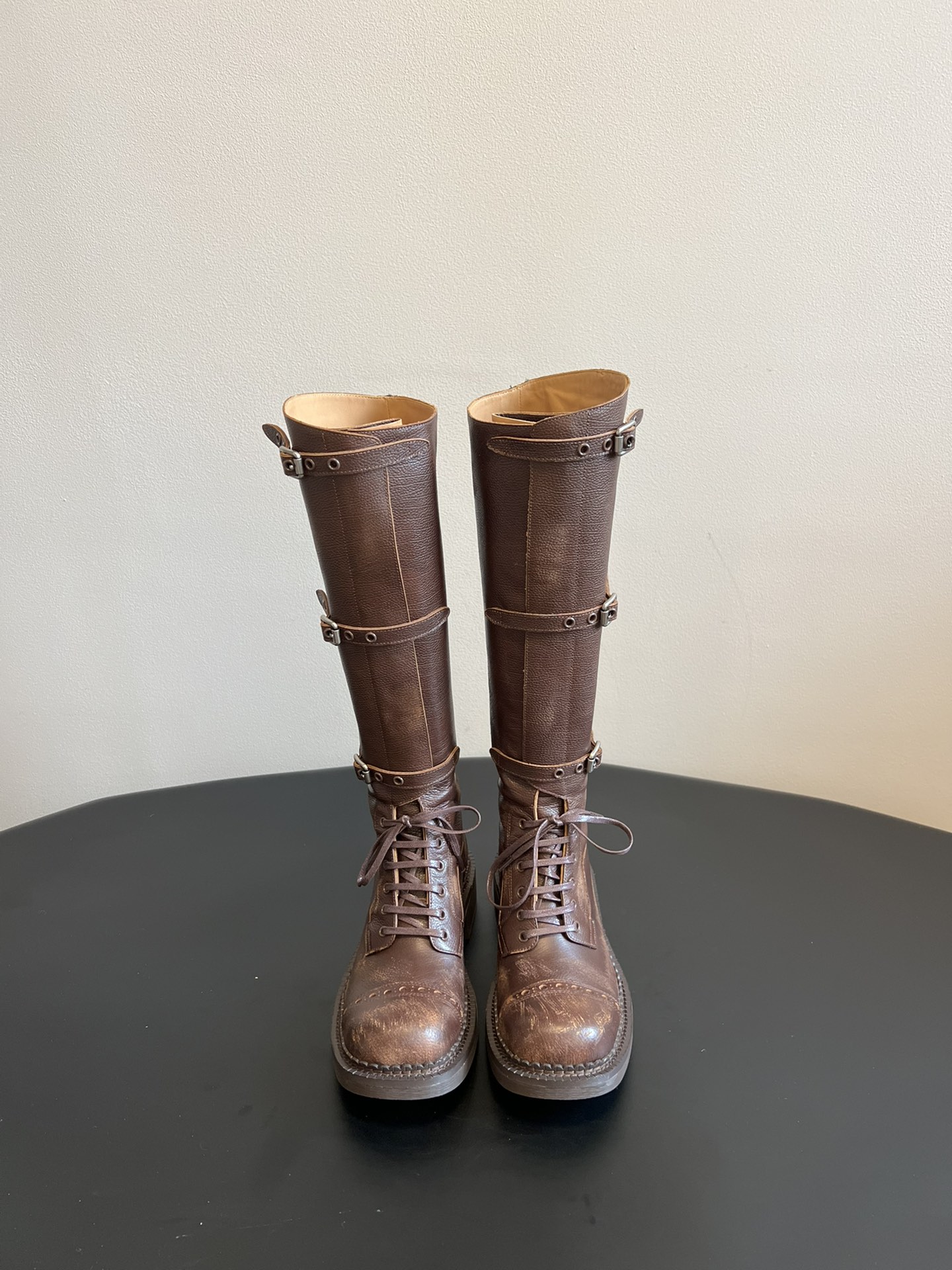 NIGO MiuMiu Women's Four Seasons Biker Style Retro Leather Buckle Boots Lace-up Cowhide Boots Casual Shoes Short Boots Suede High Shoes Ngvp #nigo9154