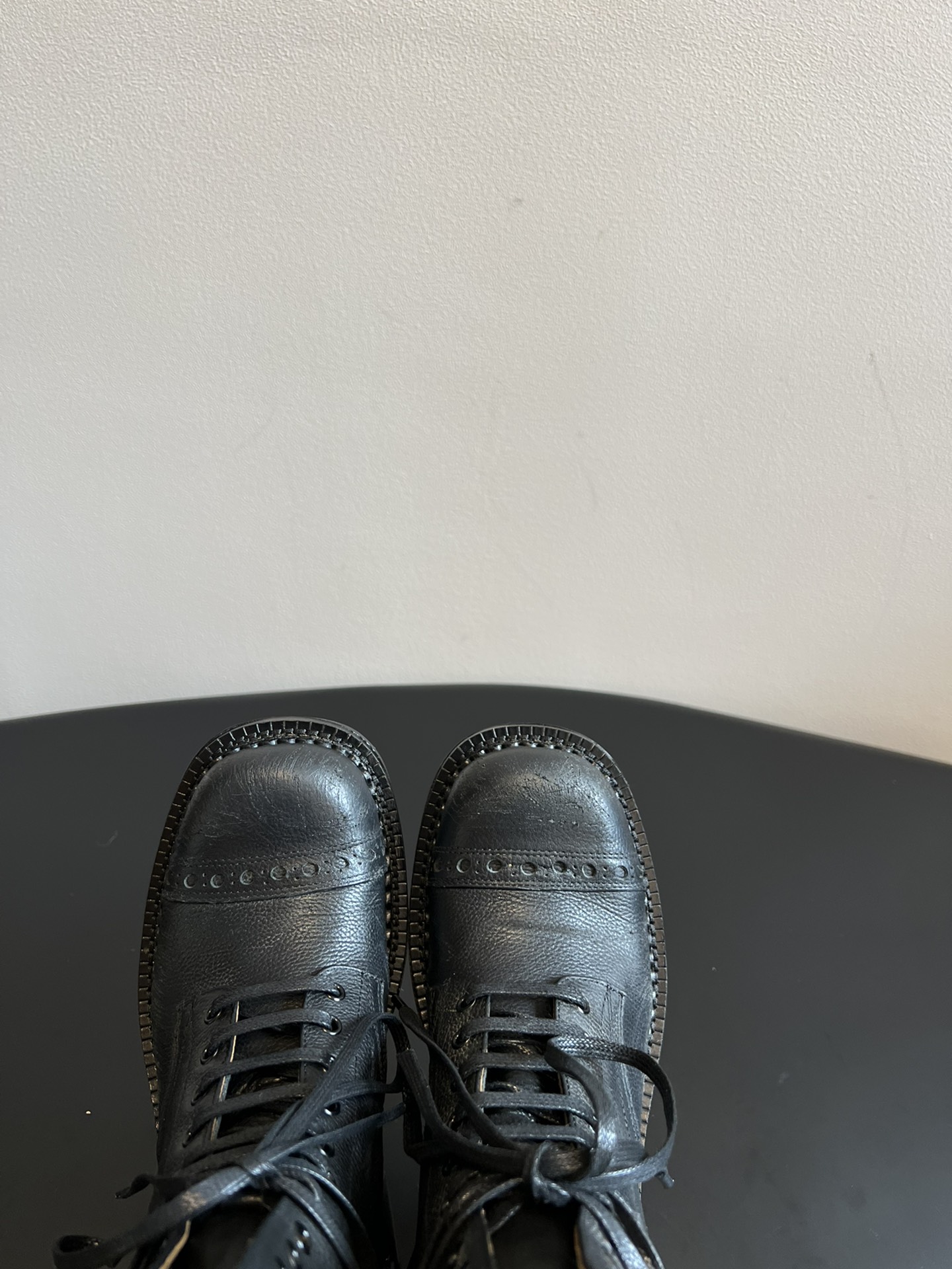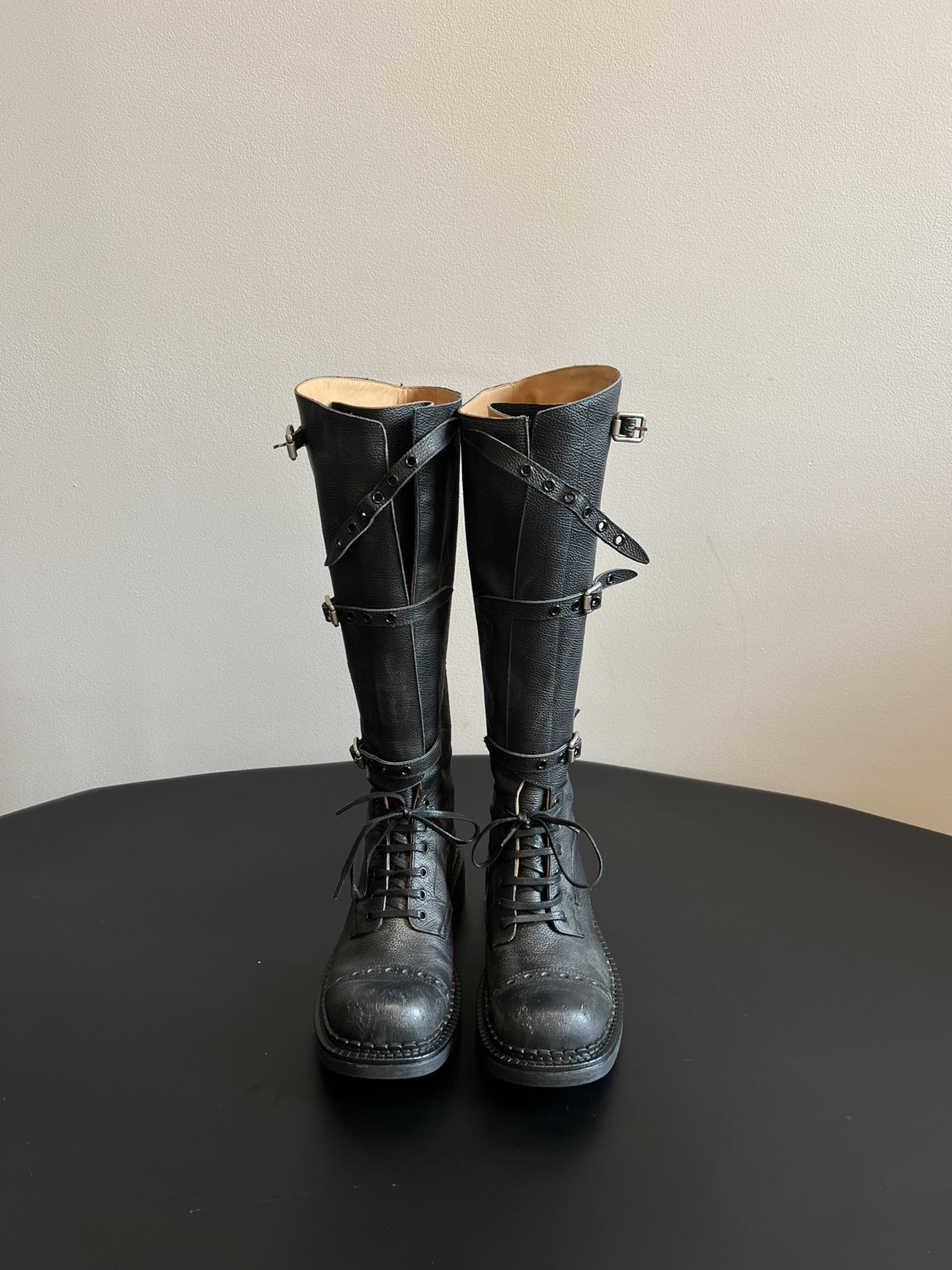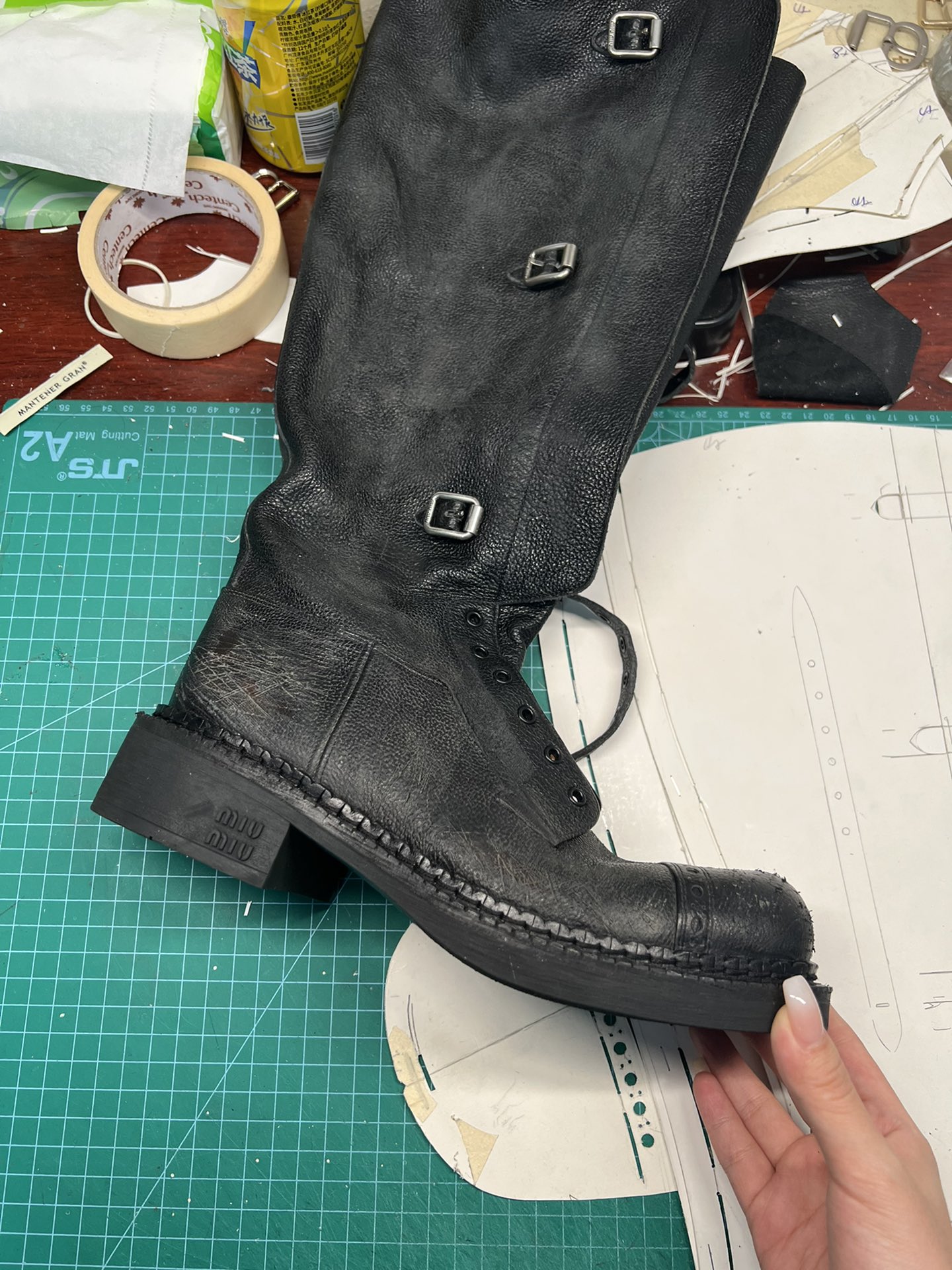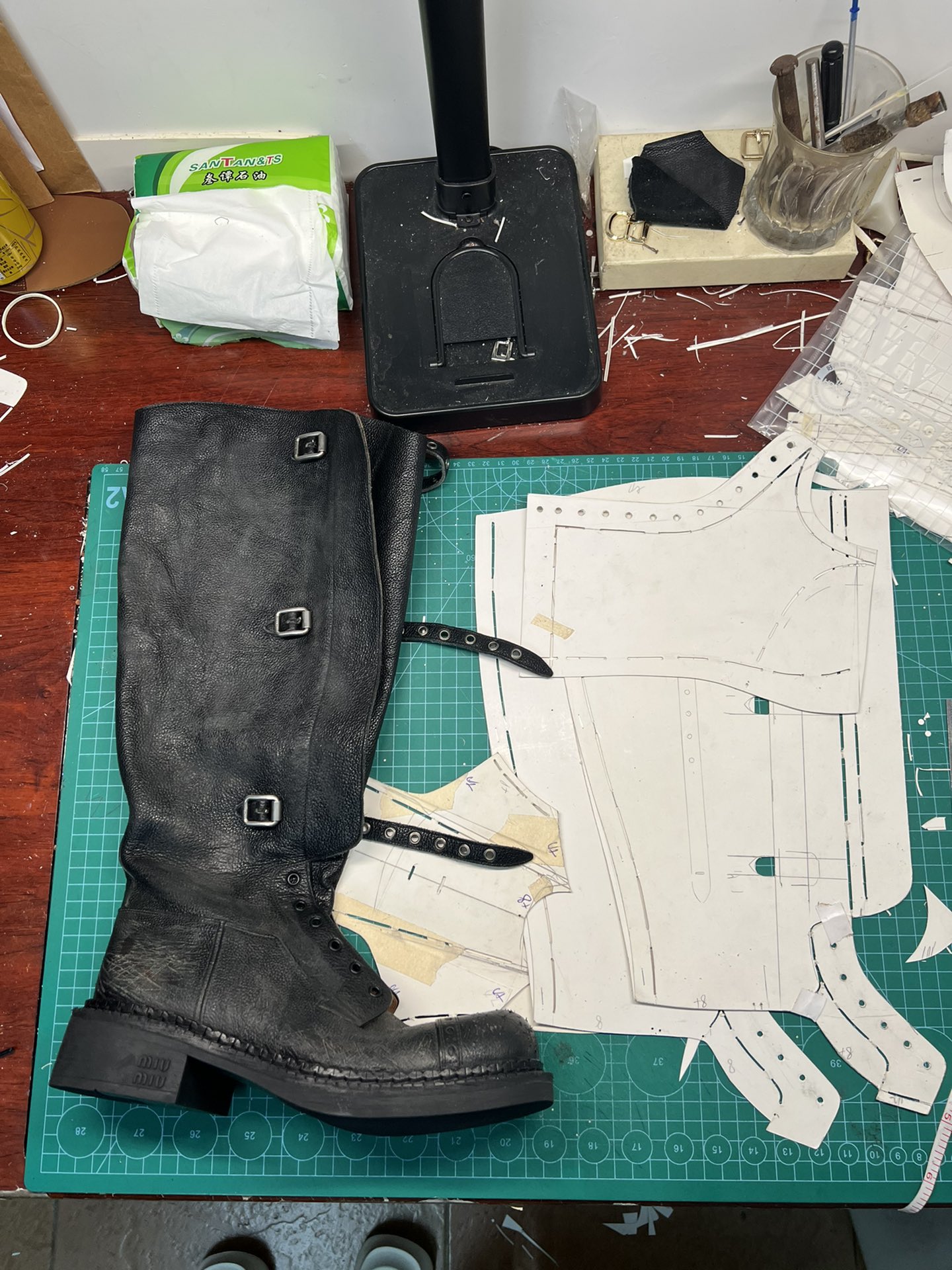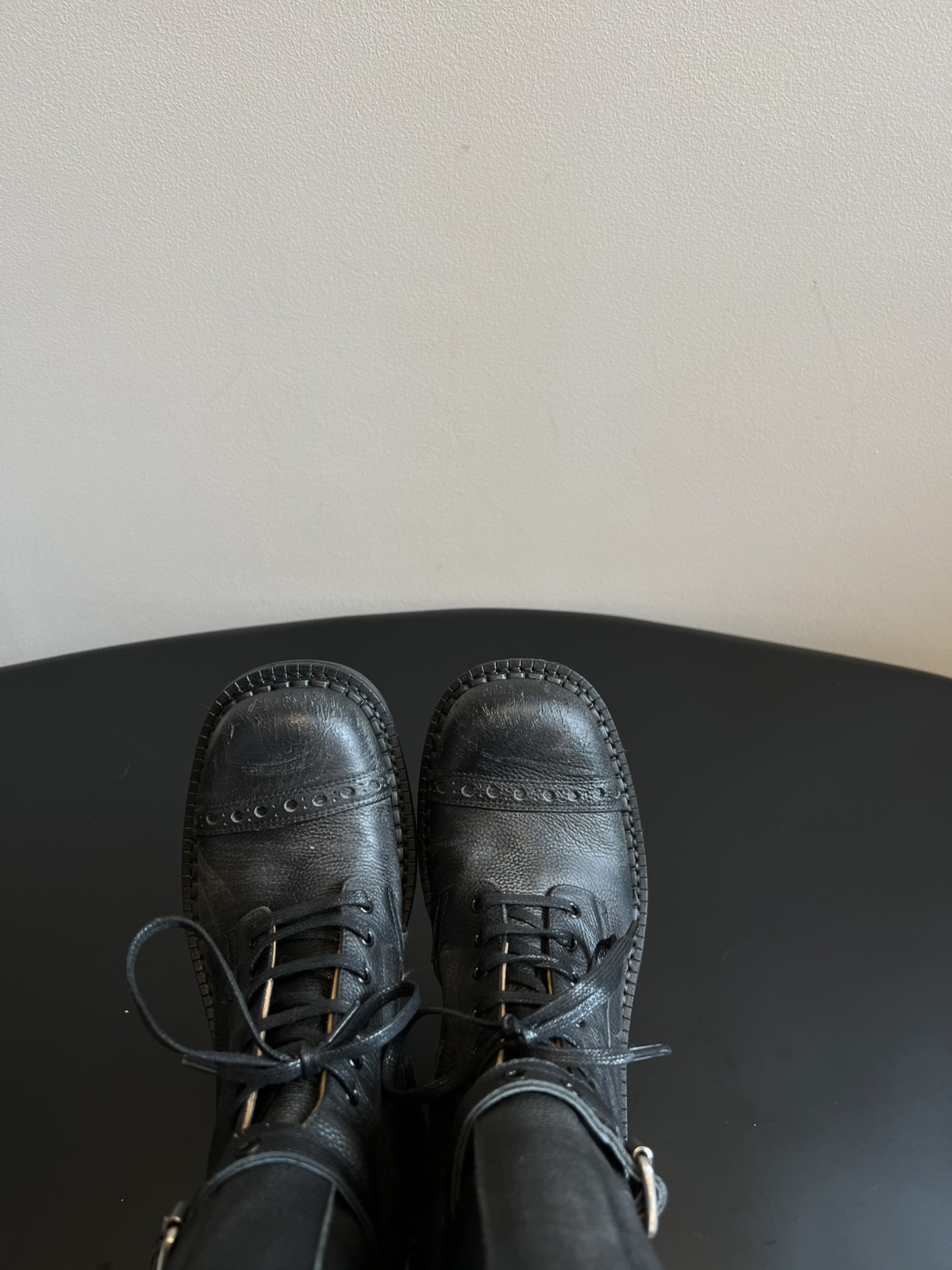 NIGO MiuMiu Women's Four Seasons Biker Style Retro Leather Buckle Boots Lace-up Cowhide Boots Casual Shoes Short Boots Suede High Shoes Ngvp #nigo9154