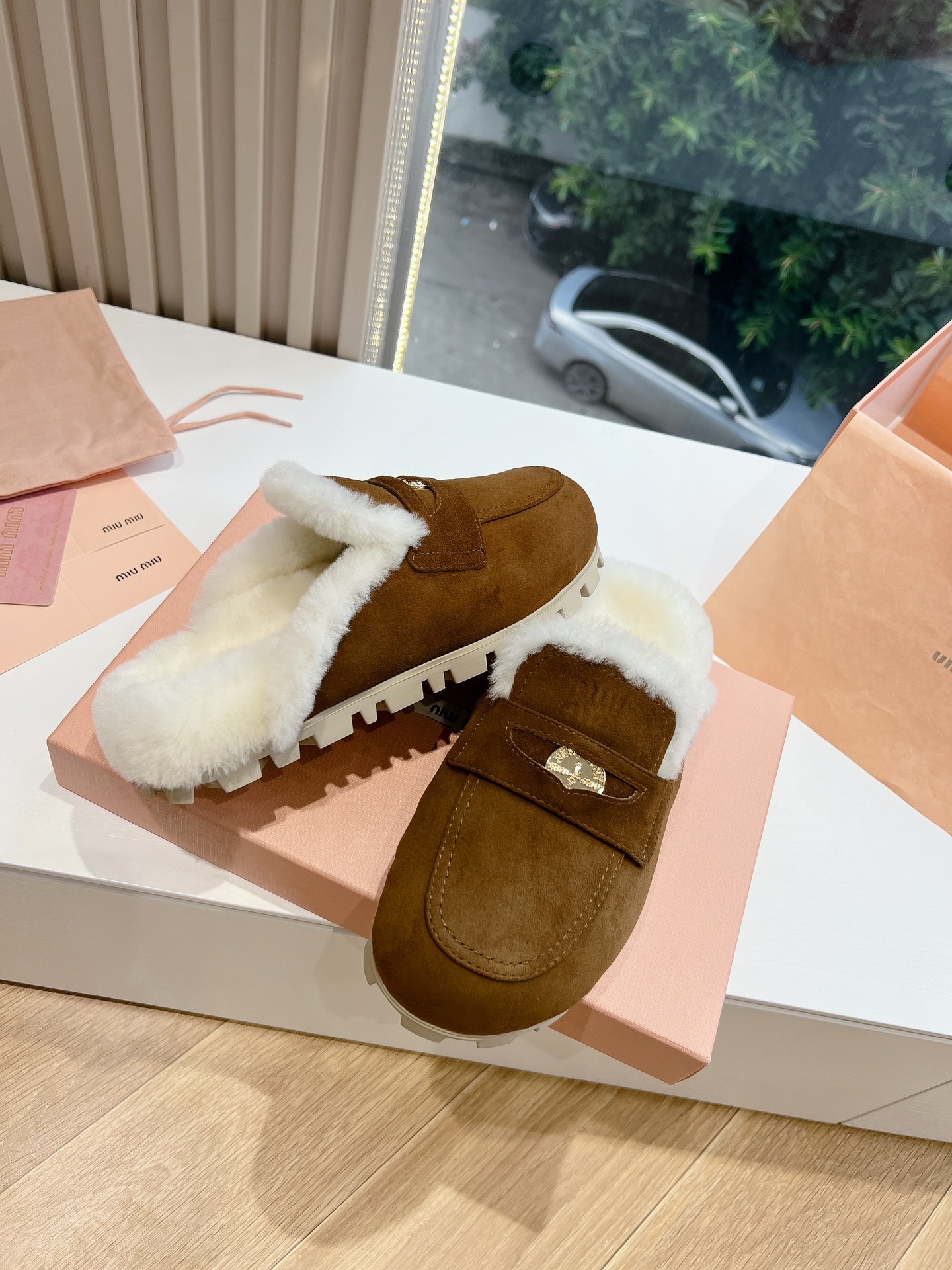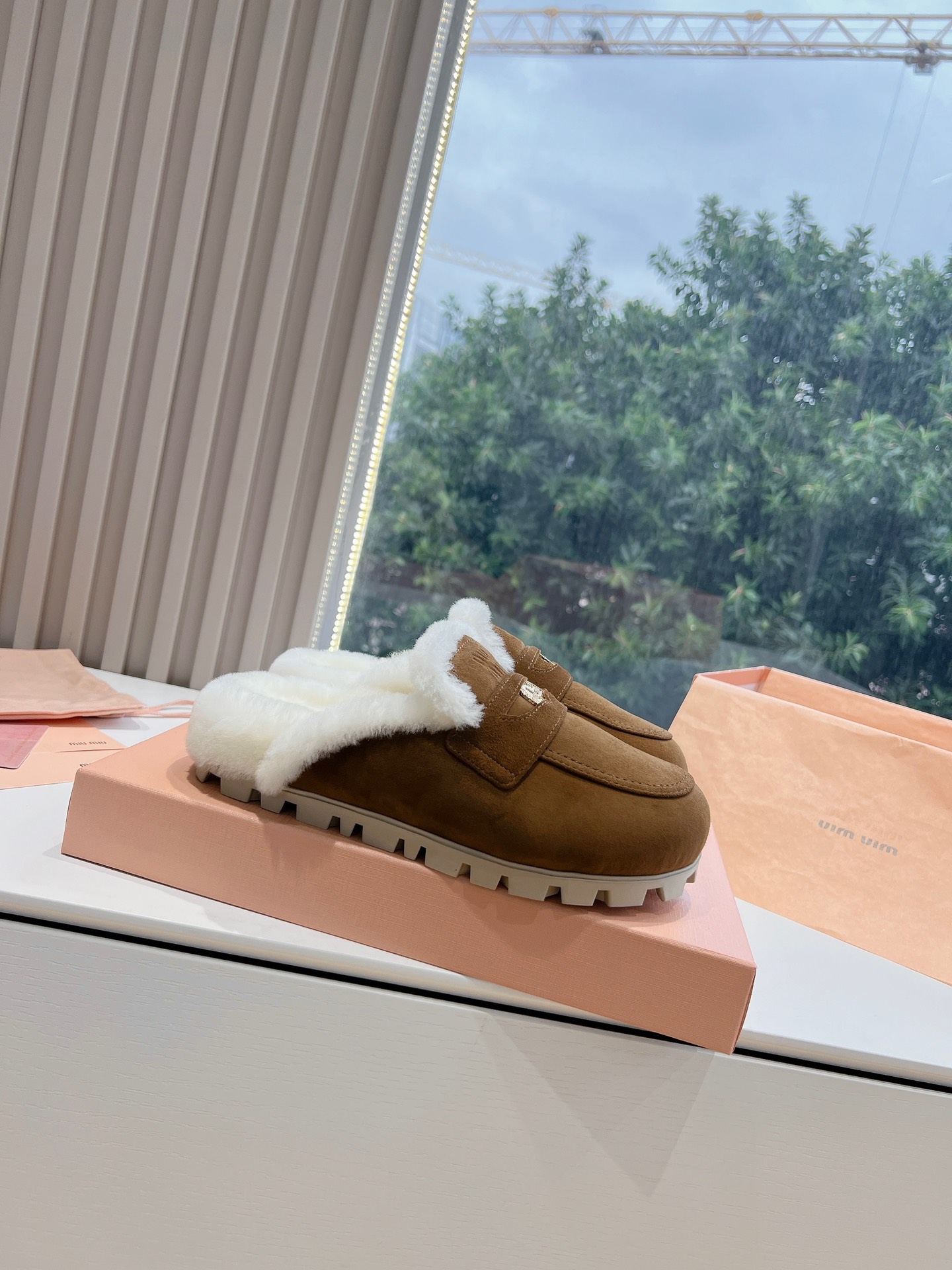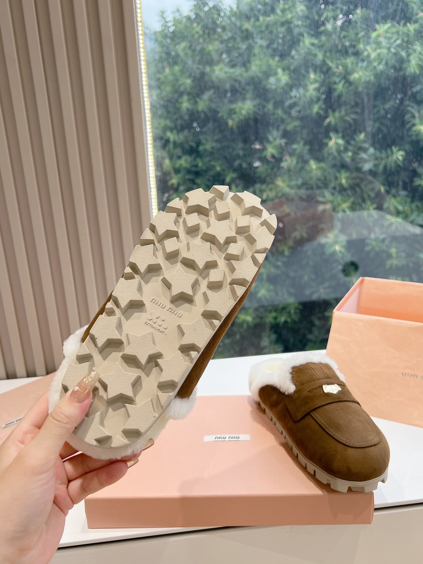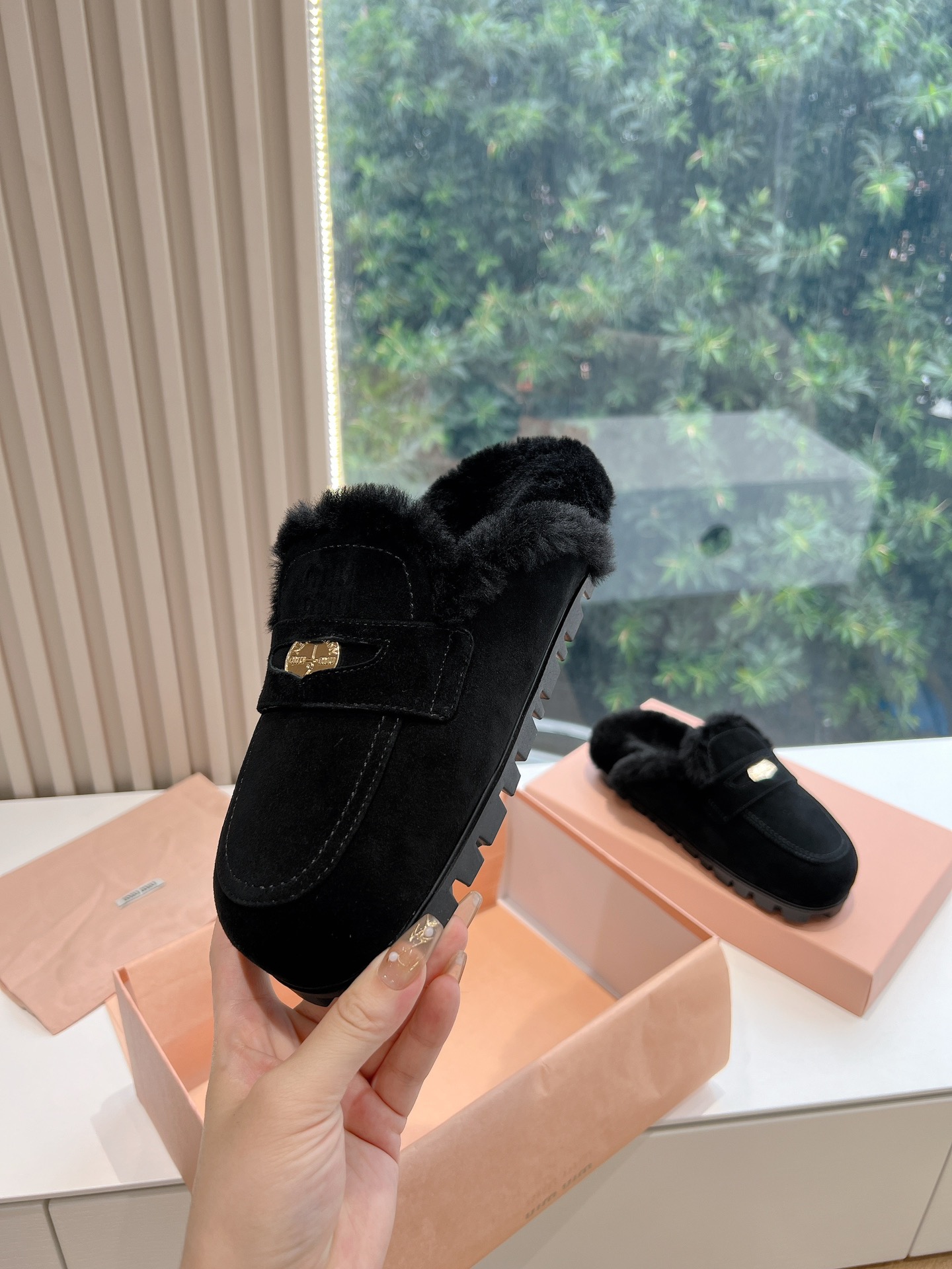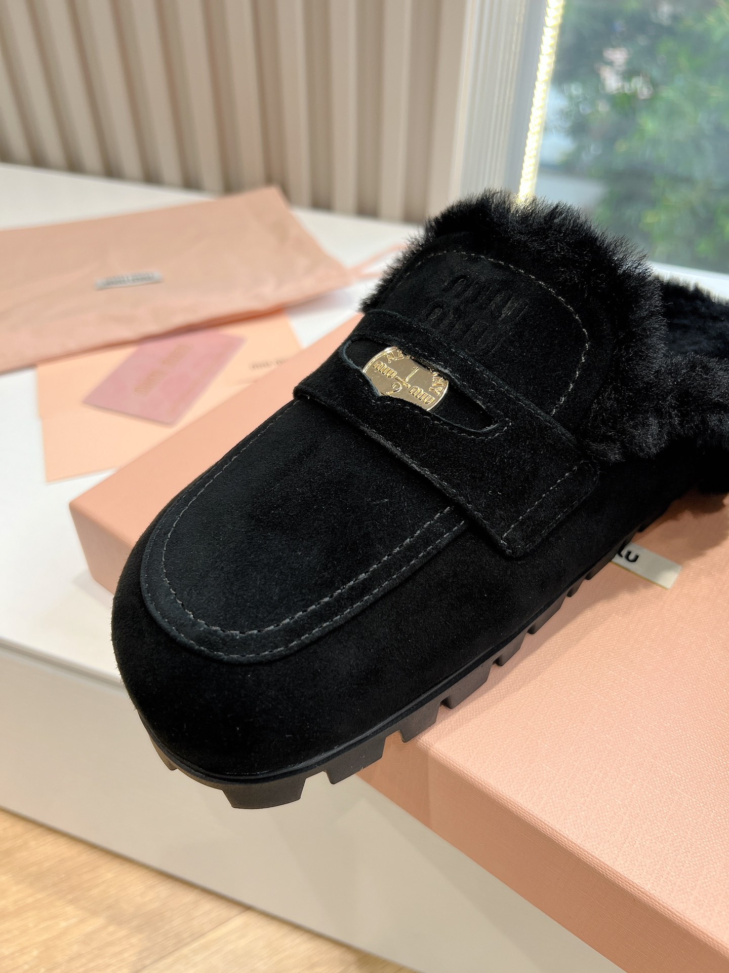 NIGO MiuMiu Women's Four Seasons Fashion Elegant Brown Hairy Slippers Outer Mule Shoes Temperament Trendy Casual Shoes #nigo71964