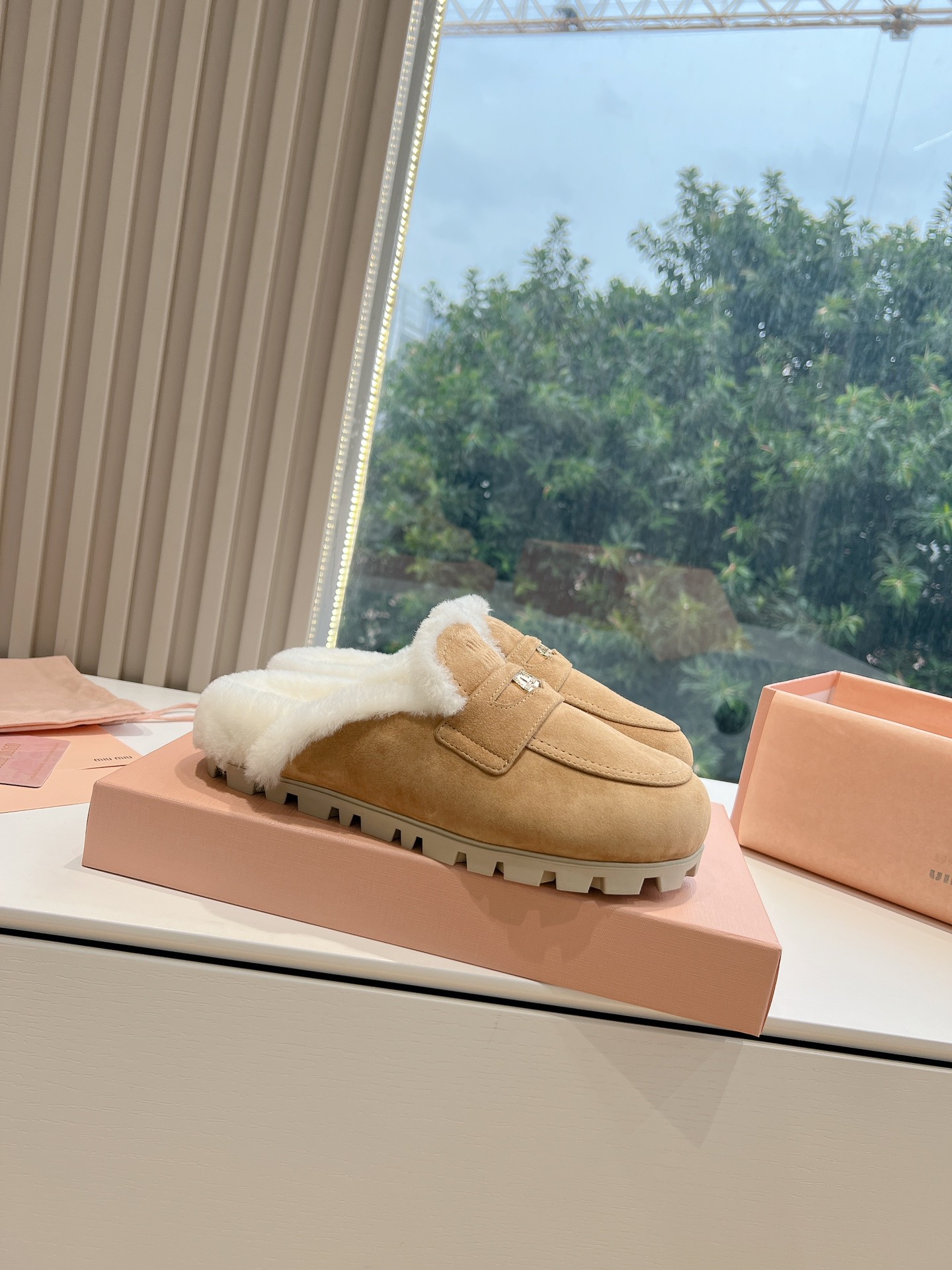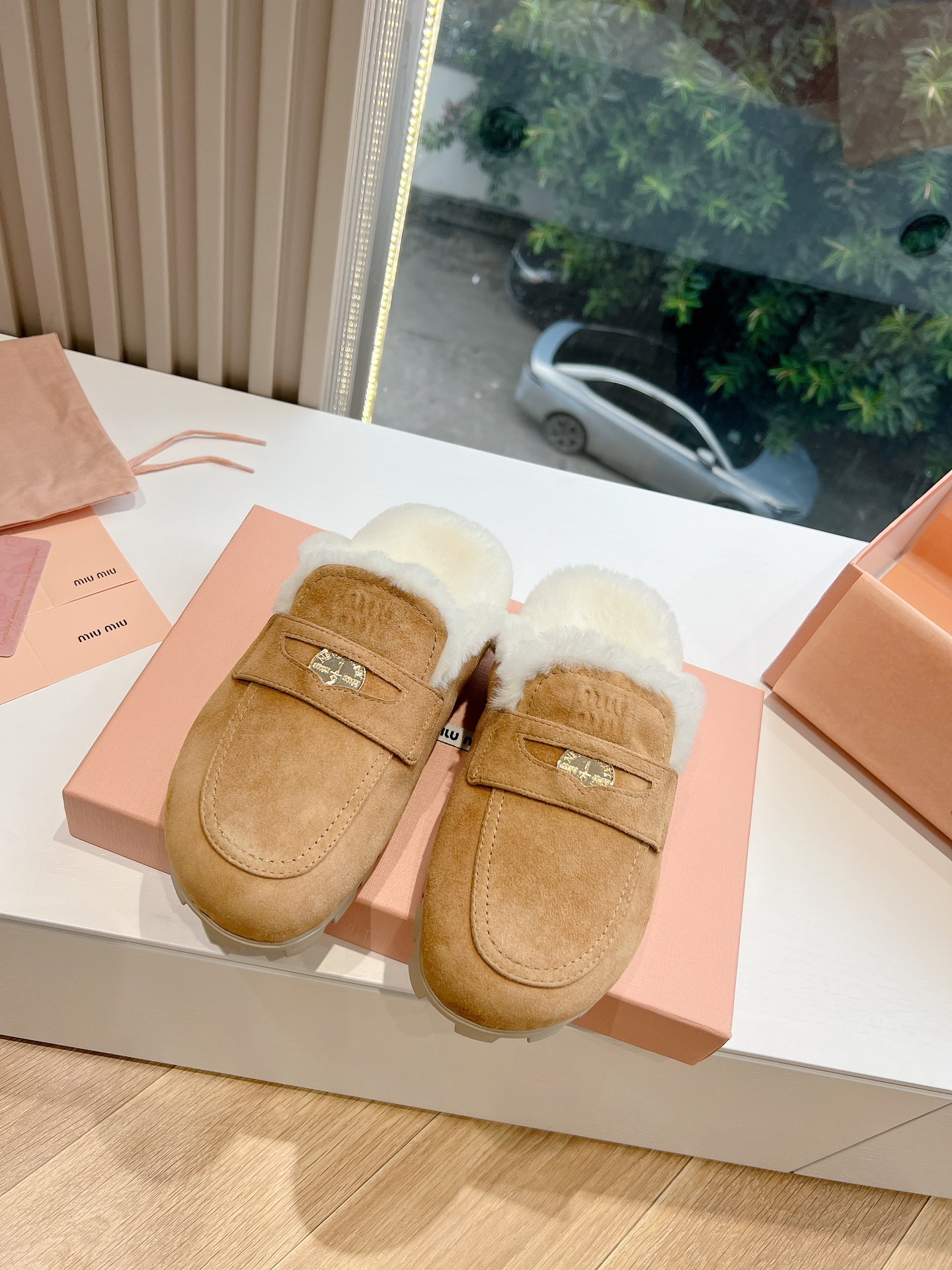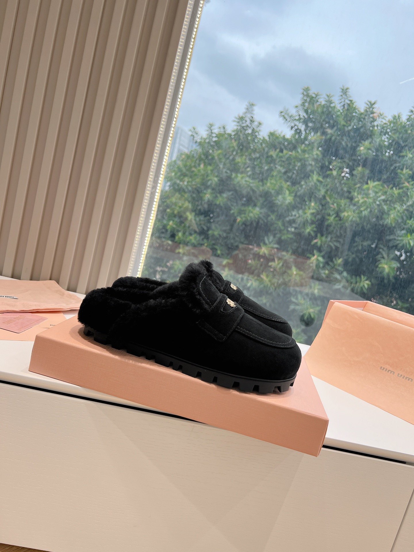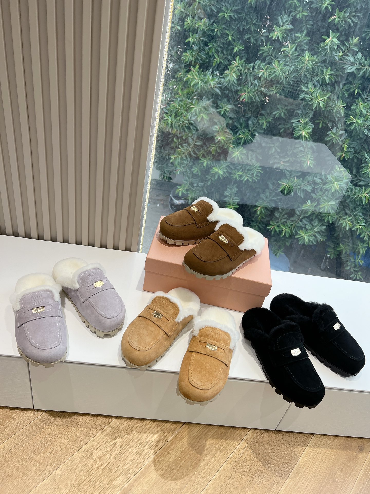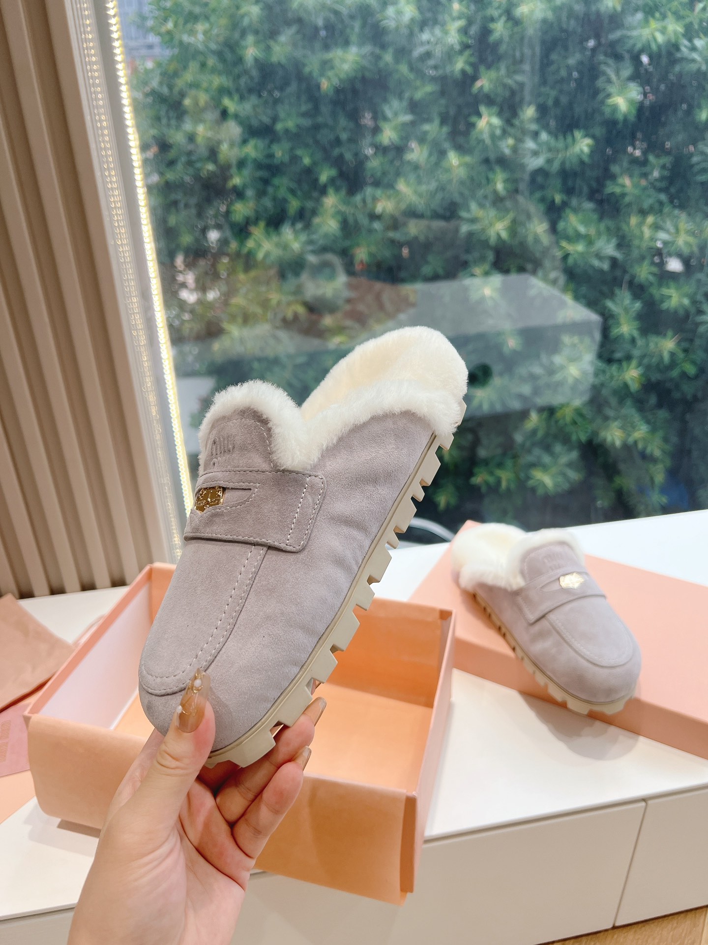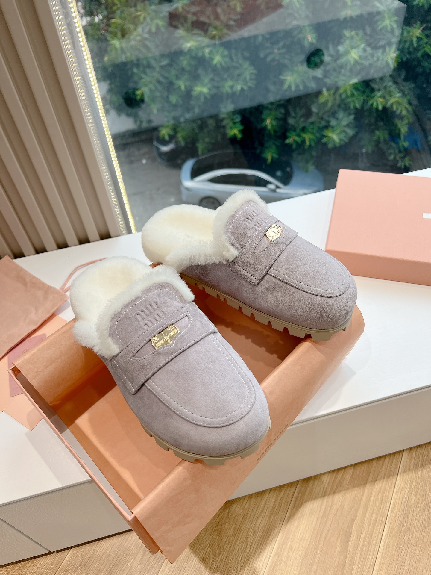 NIGO MiuMiu Women's Four Seasons Fashion Elegant Brown Hairy Slippers Outer Mule Shoes Temperament Trendy Casual Shoes #nigo71964