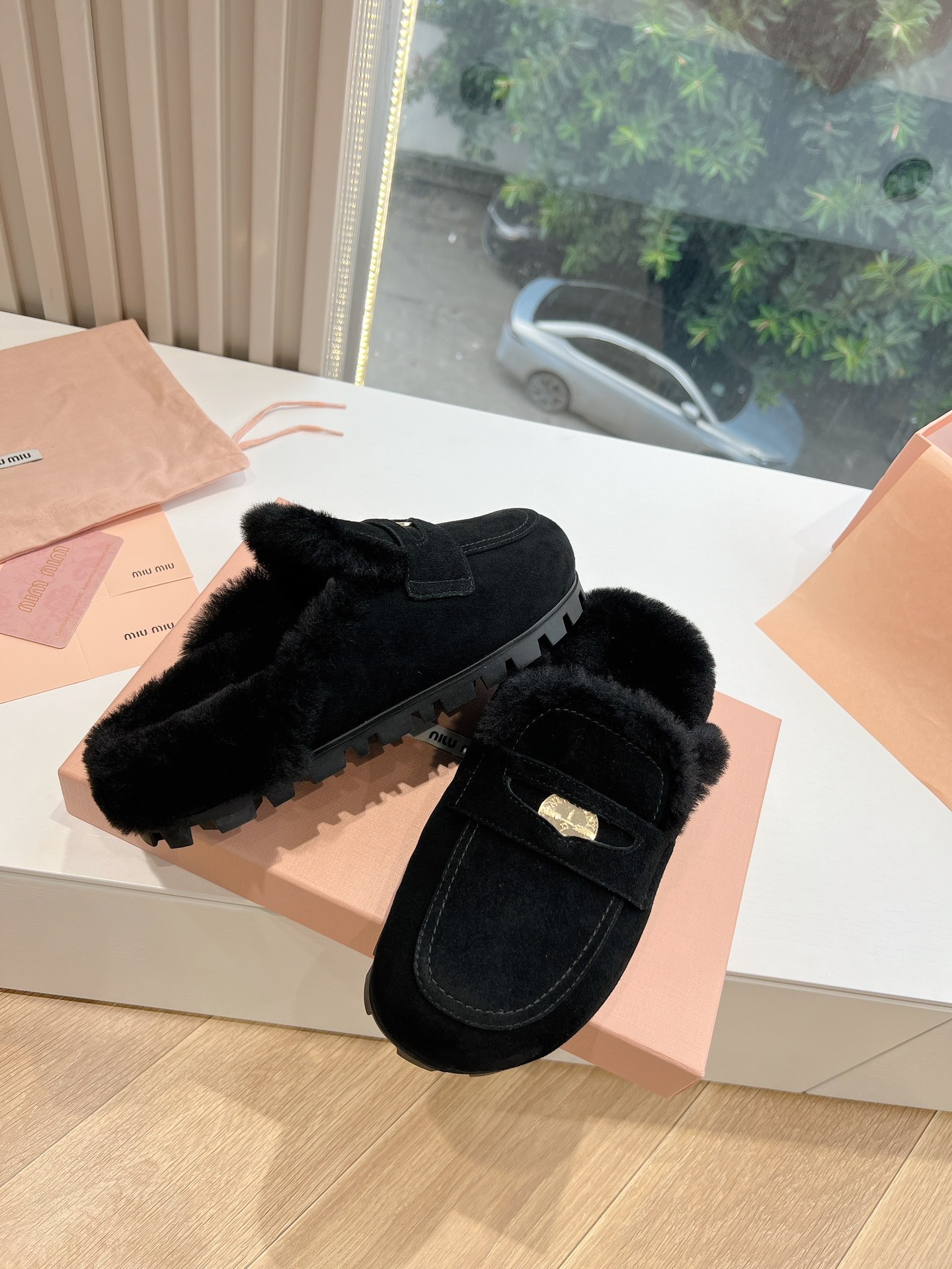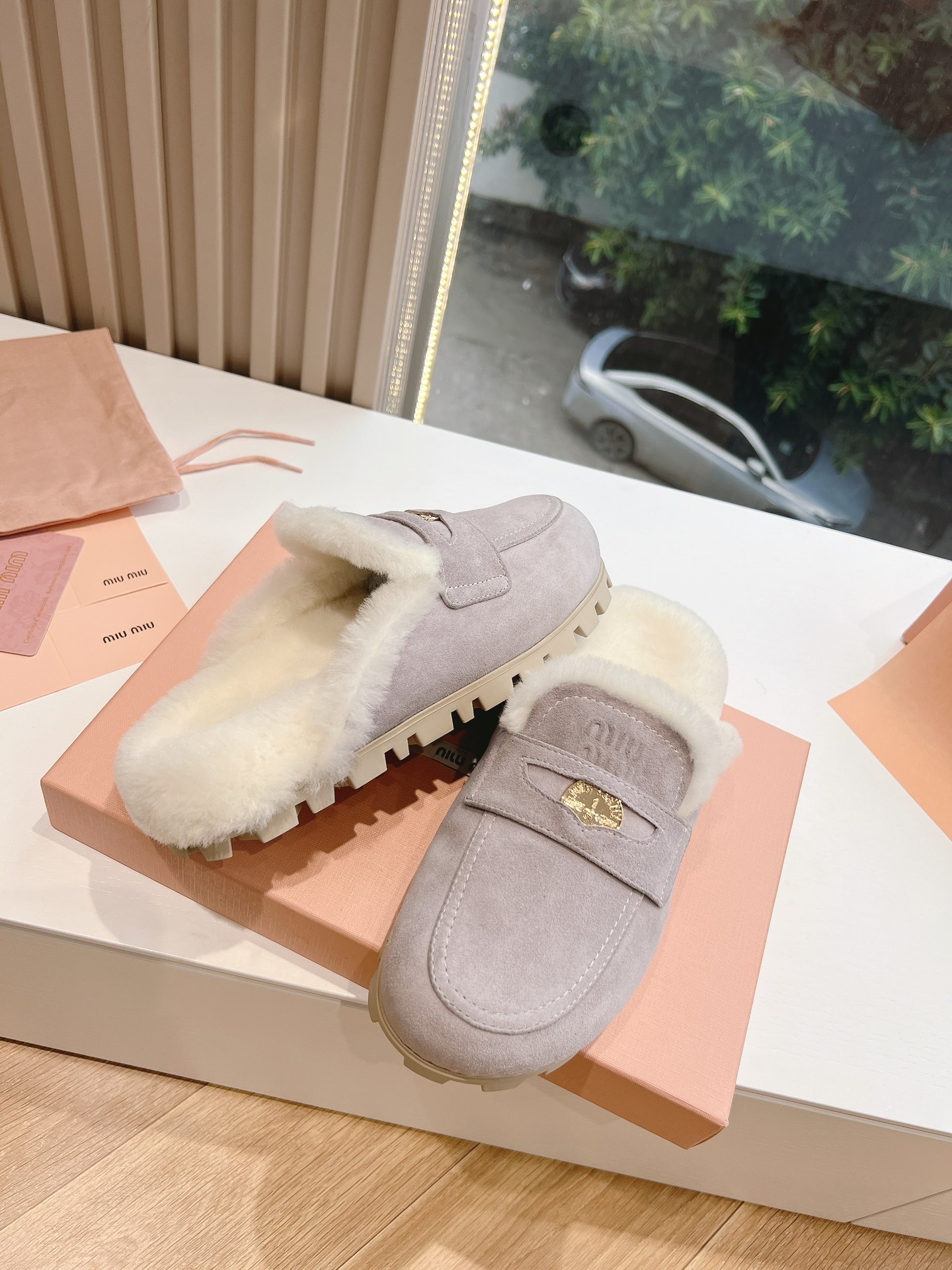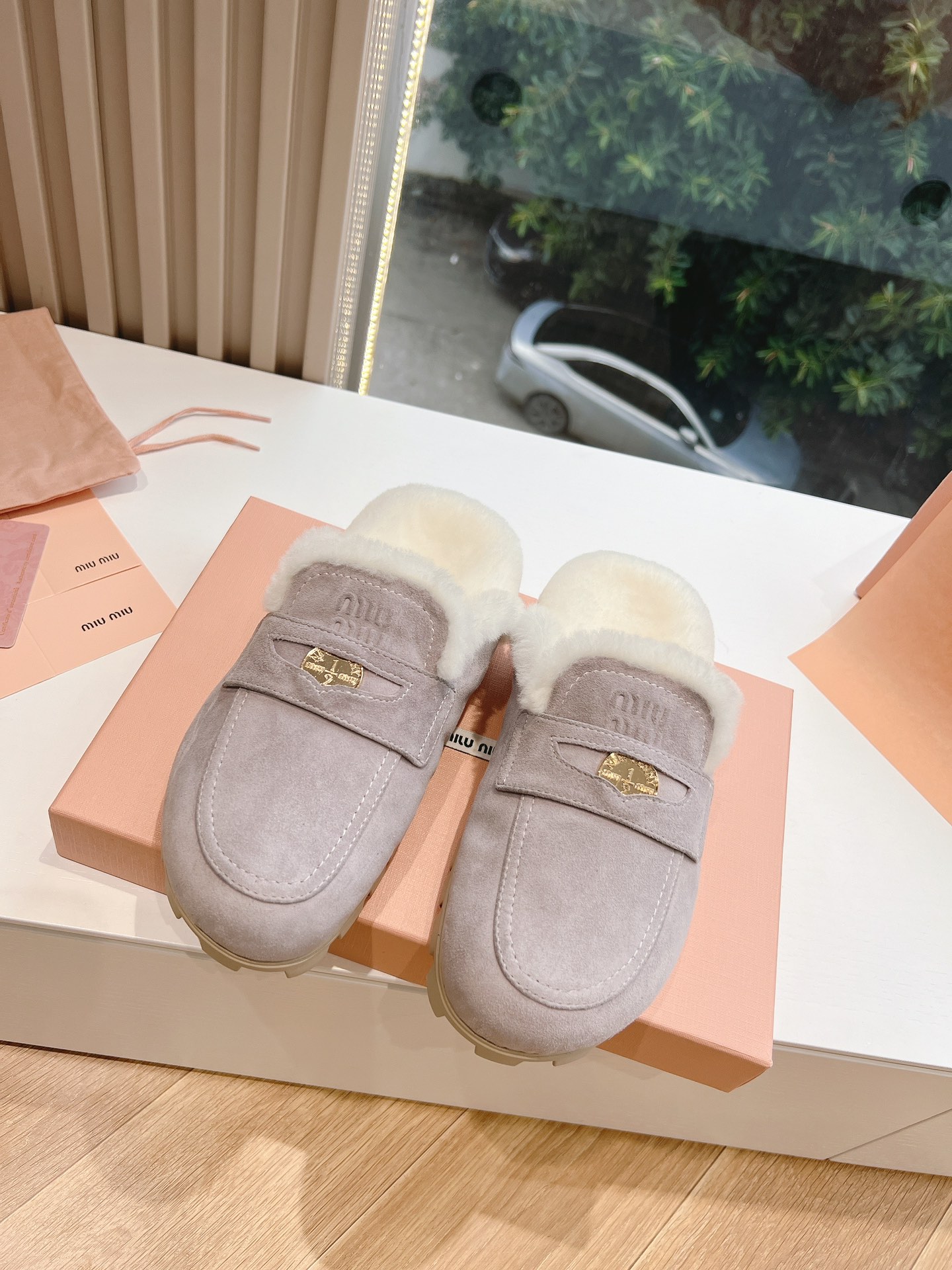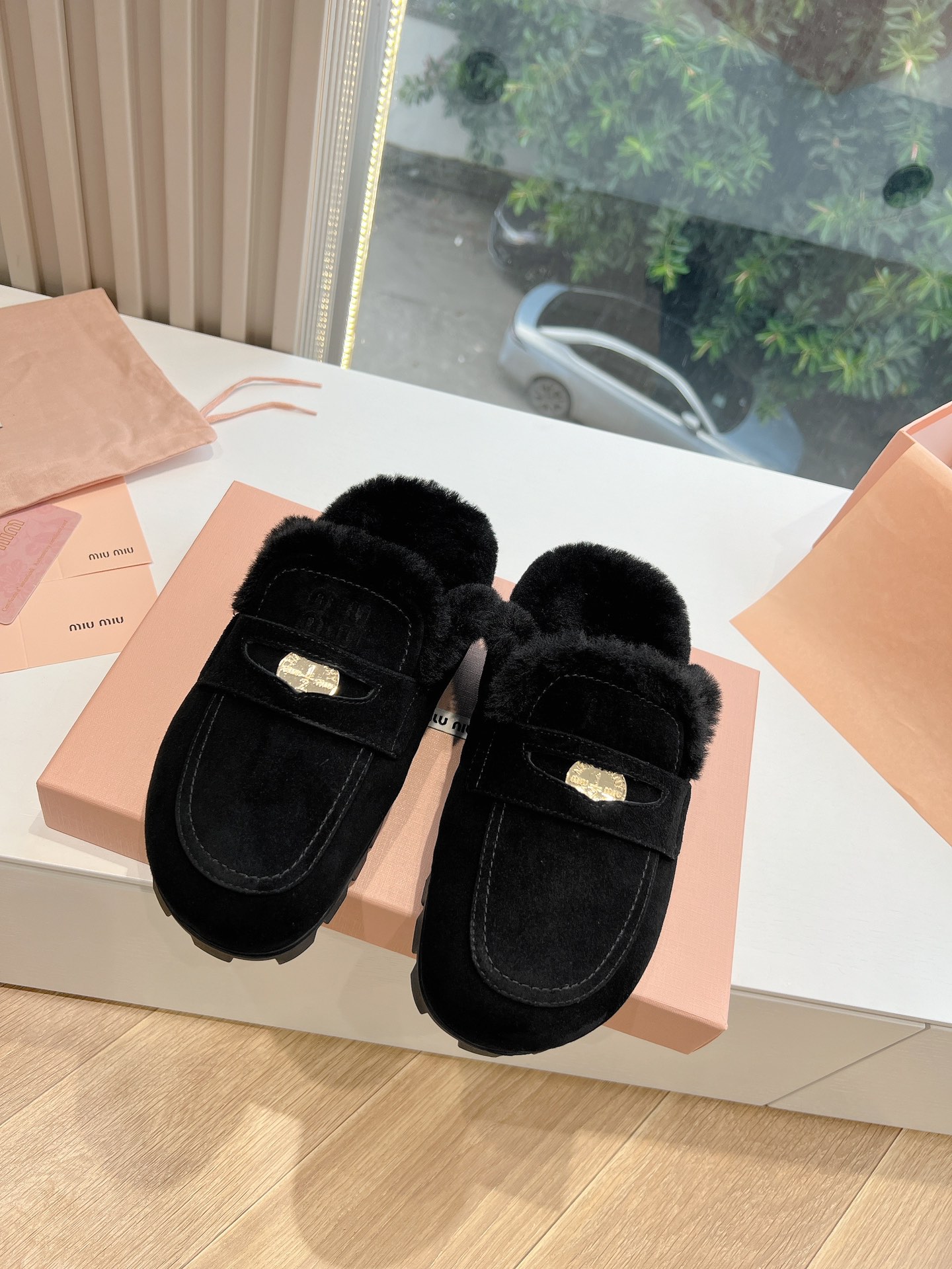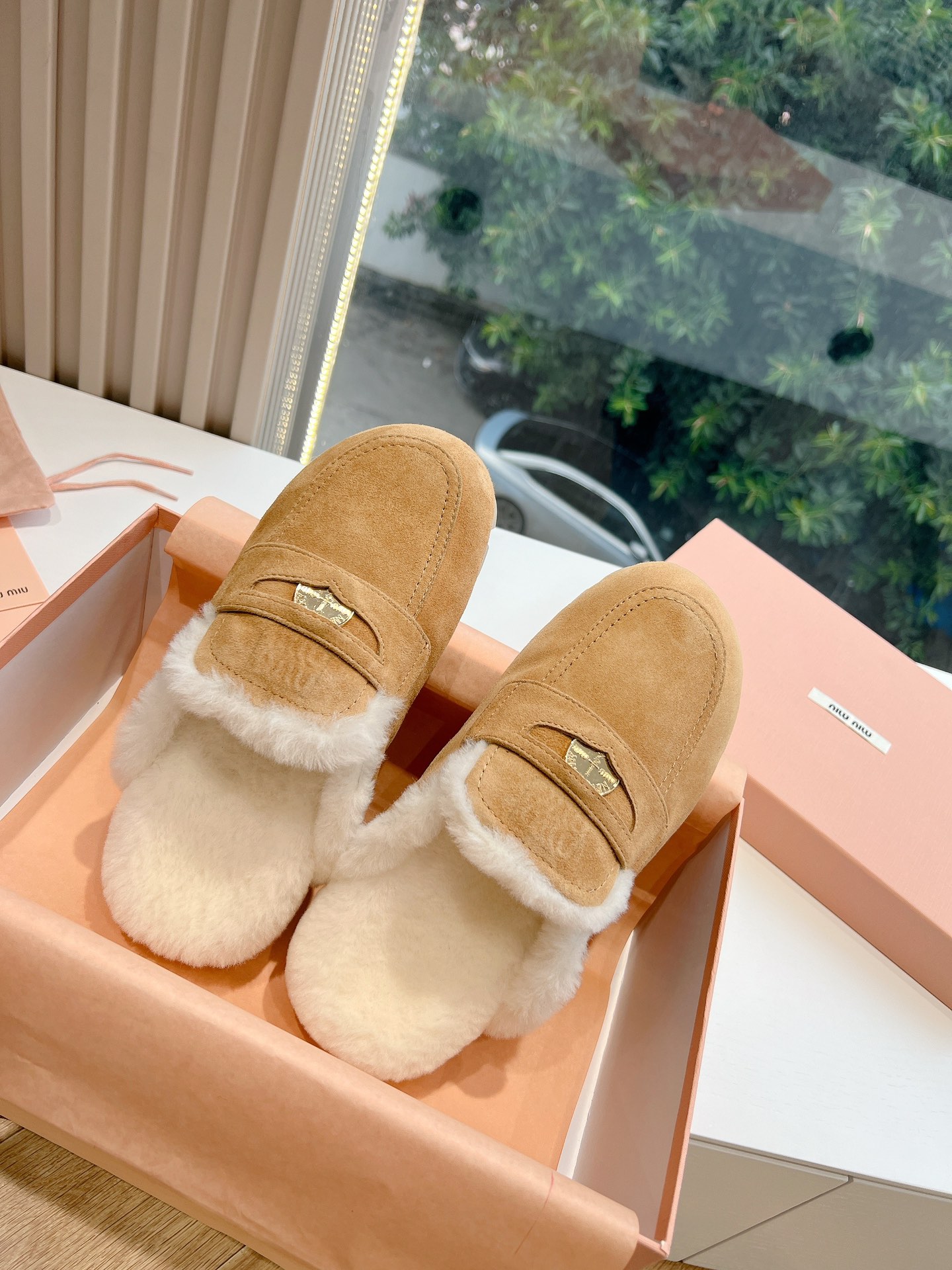 NIGO MiuMiu Women's Four Seasons Fashion Elegant Brown Hairy Slippers Outer Mule Shoes Temperament Trendy Casual Shoes #nigo71964