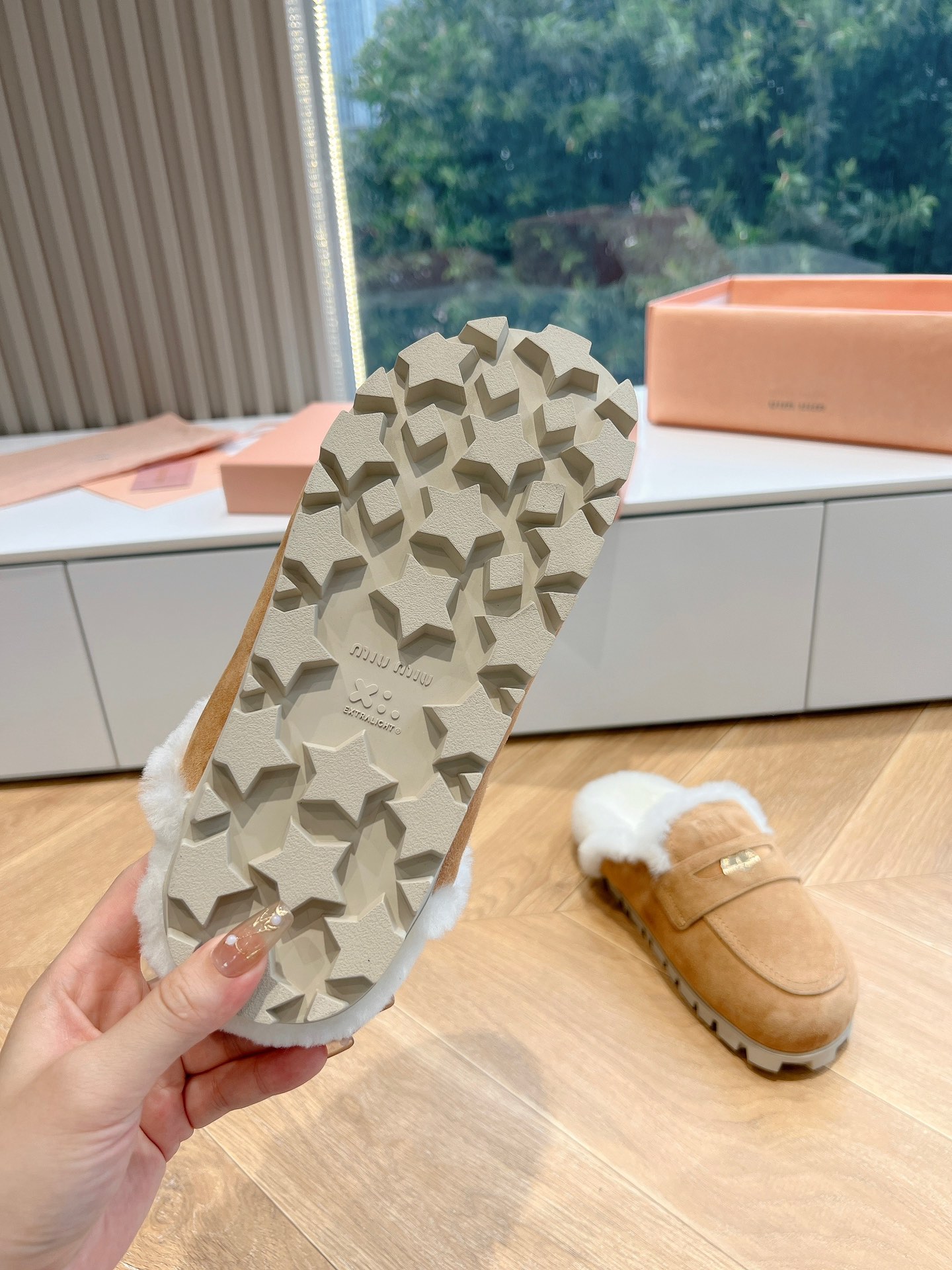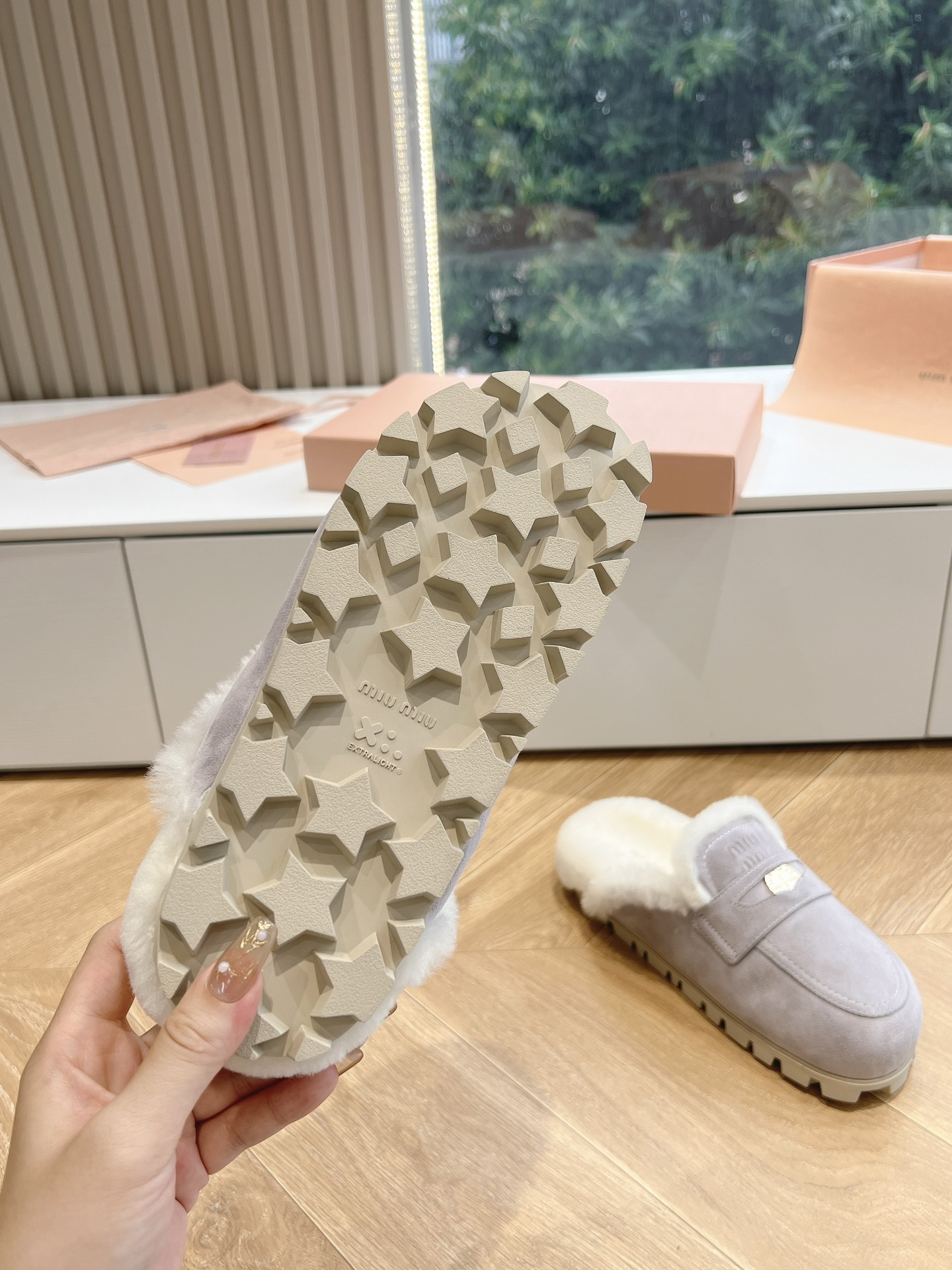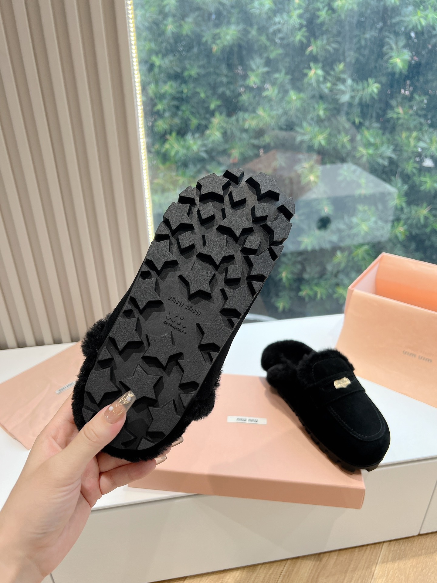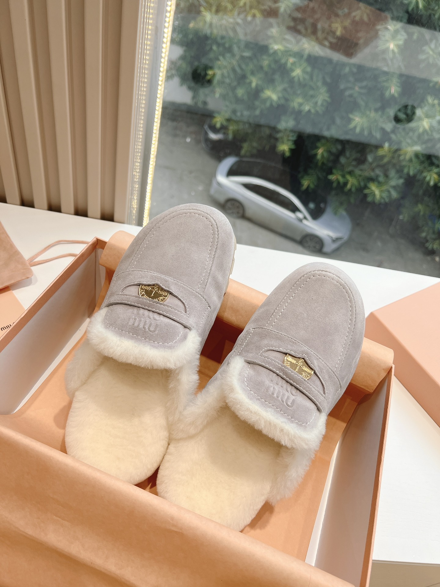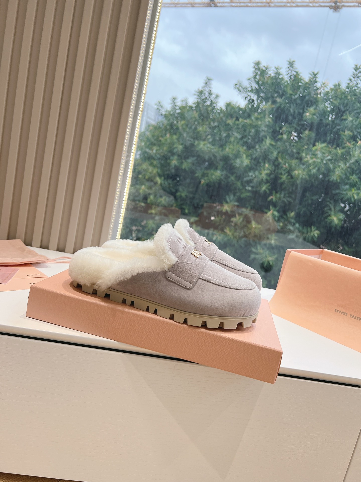 NIGO MiuMiu Women's Four Seasons Fashion Elegant Brown Hairy Slippers Outer Mule Shoes Temperament Trendy Casual Shoes #nigo71964