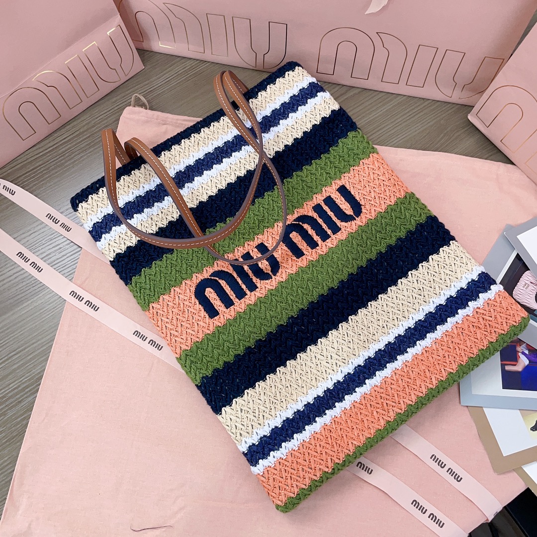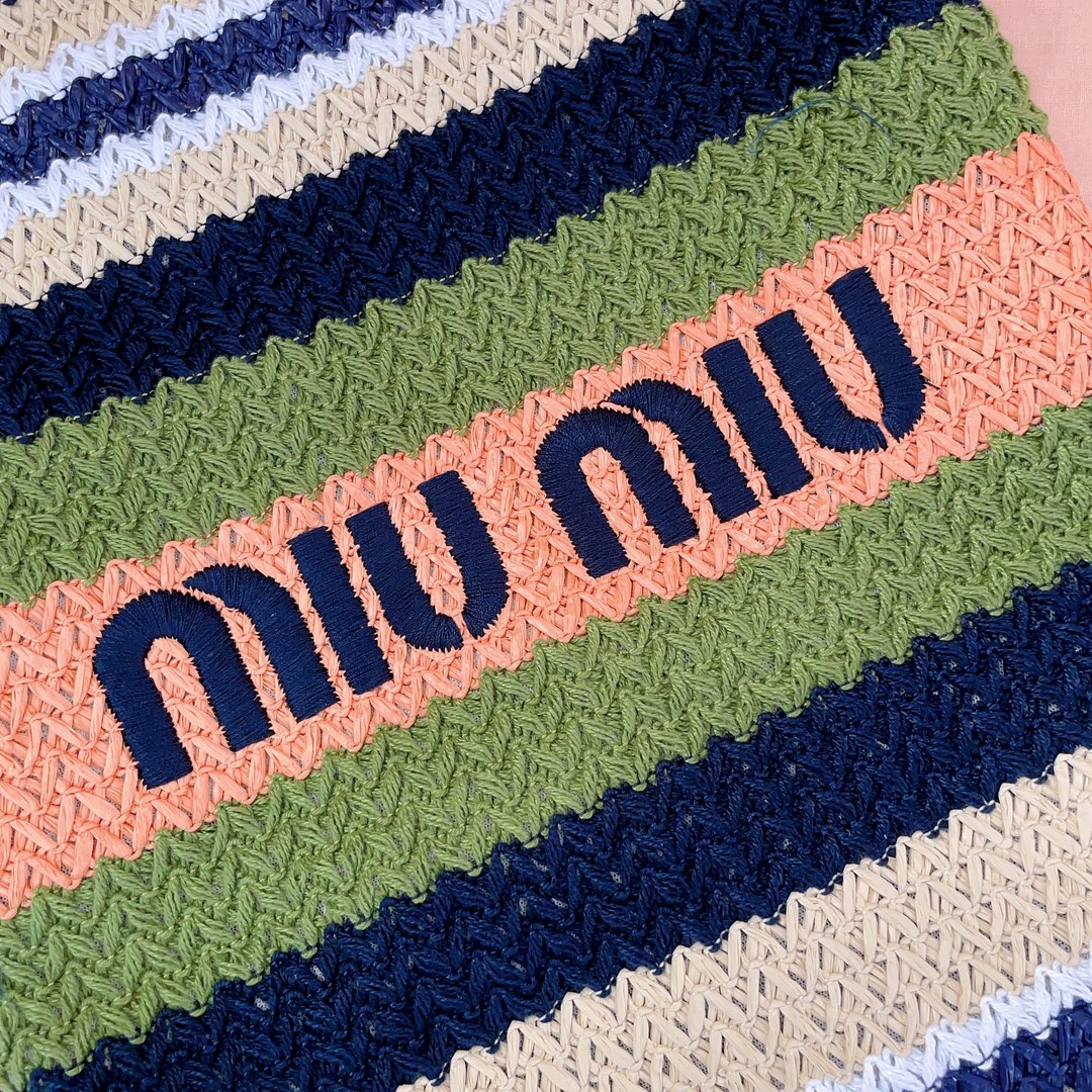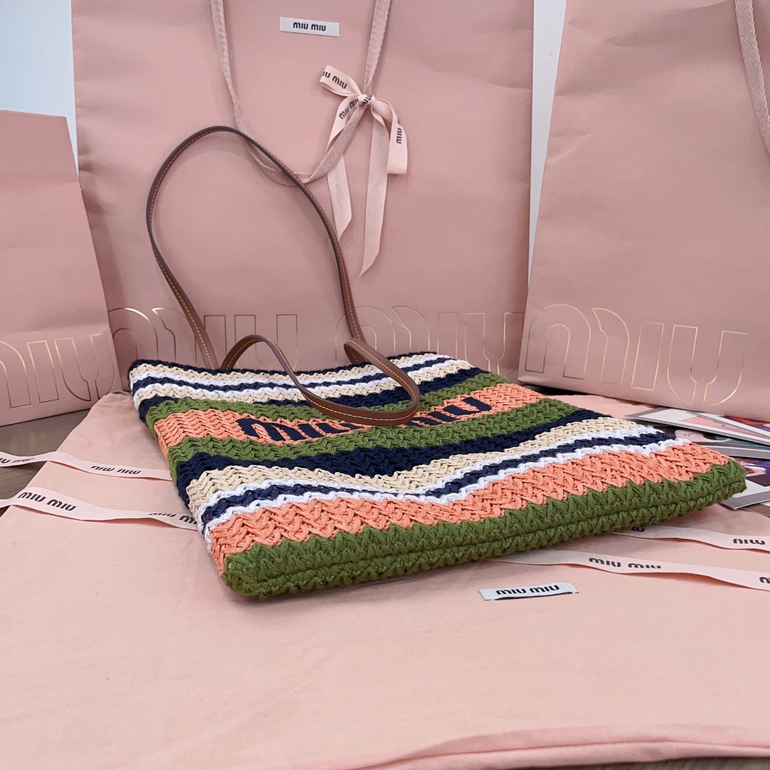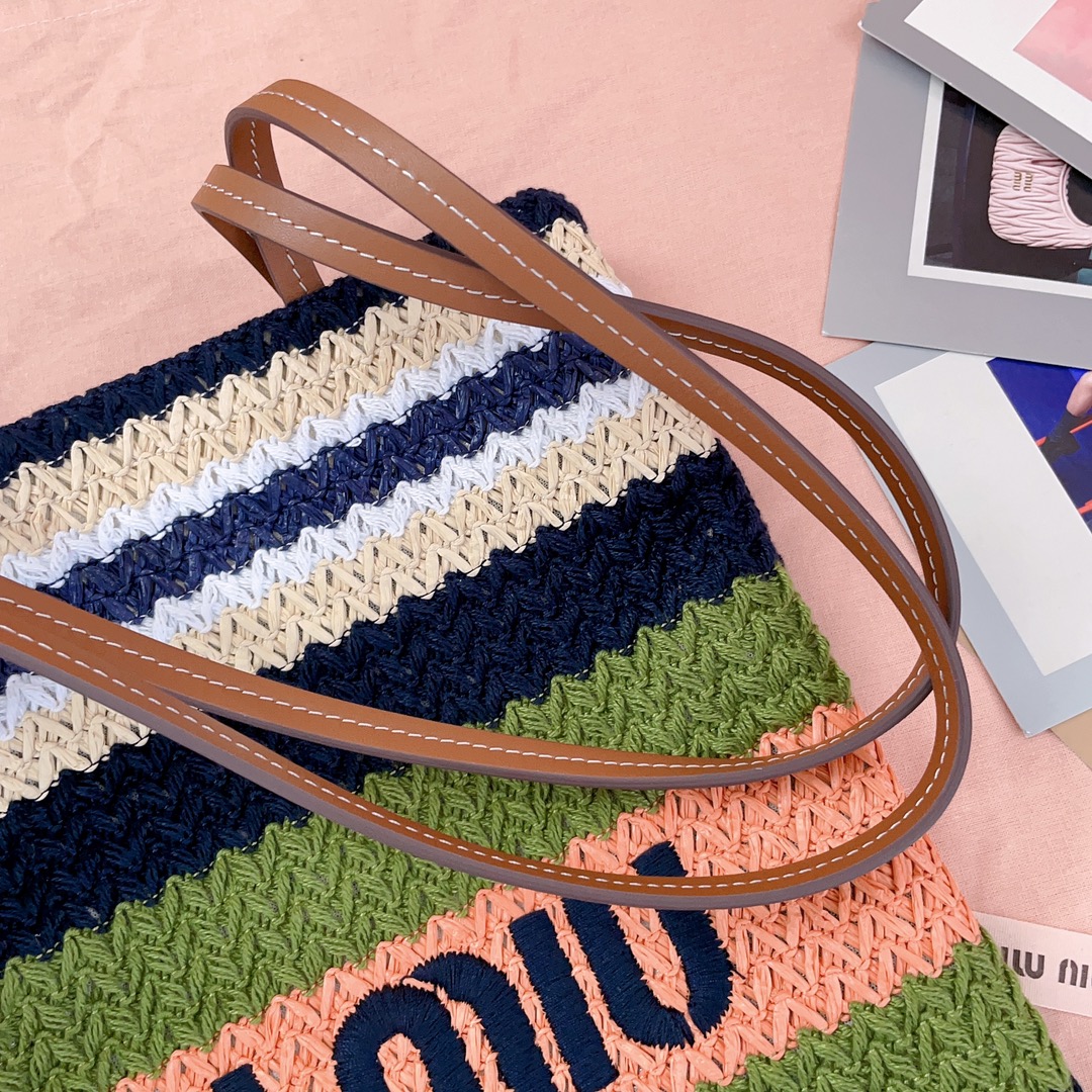 NIGO MiuMiu Women's Logo Embroidery Raffia Patchwork Cotton Thread Woven Shopping Bag Shoulder Tote Bags #nigo76743