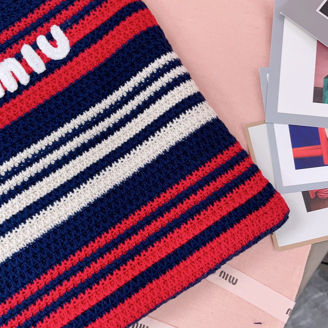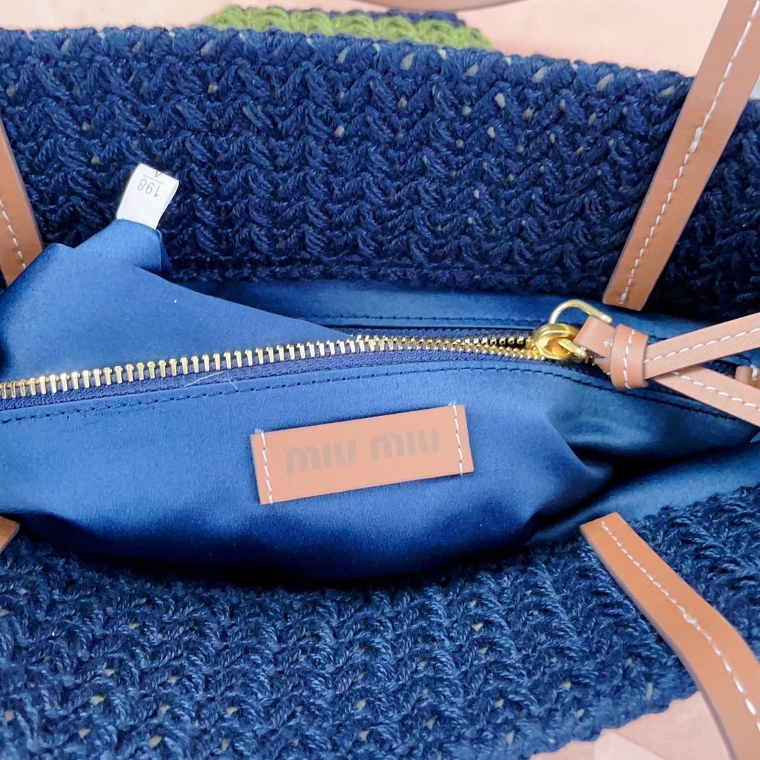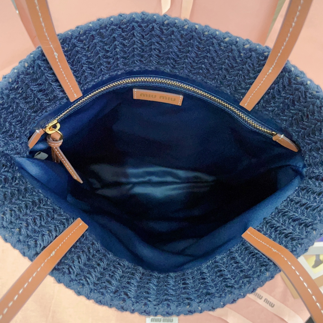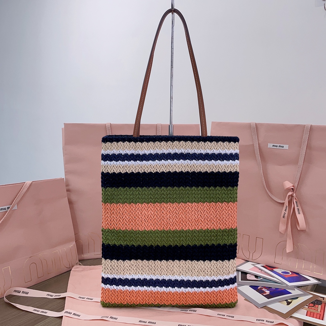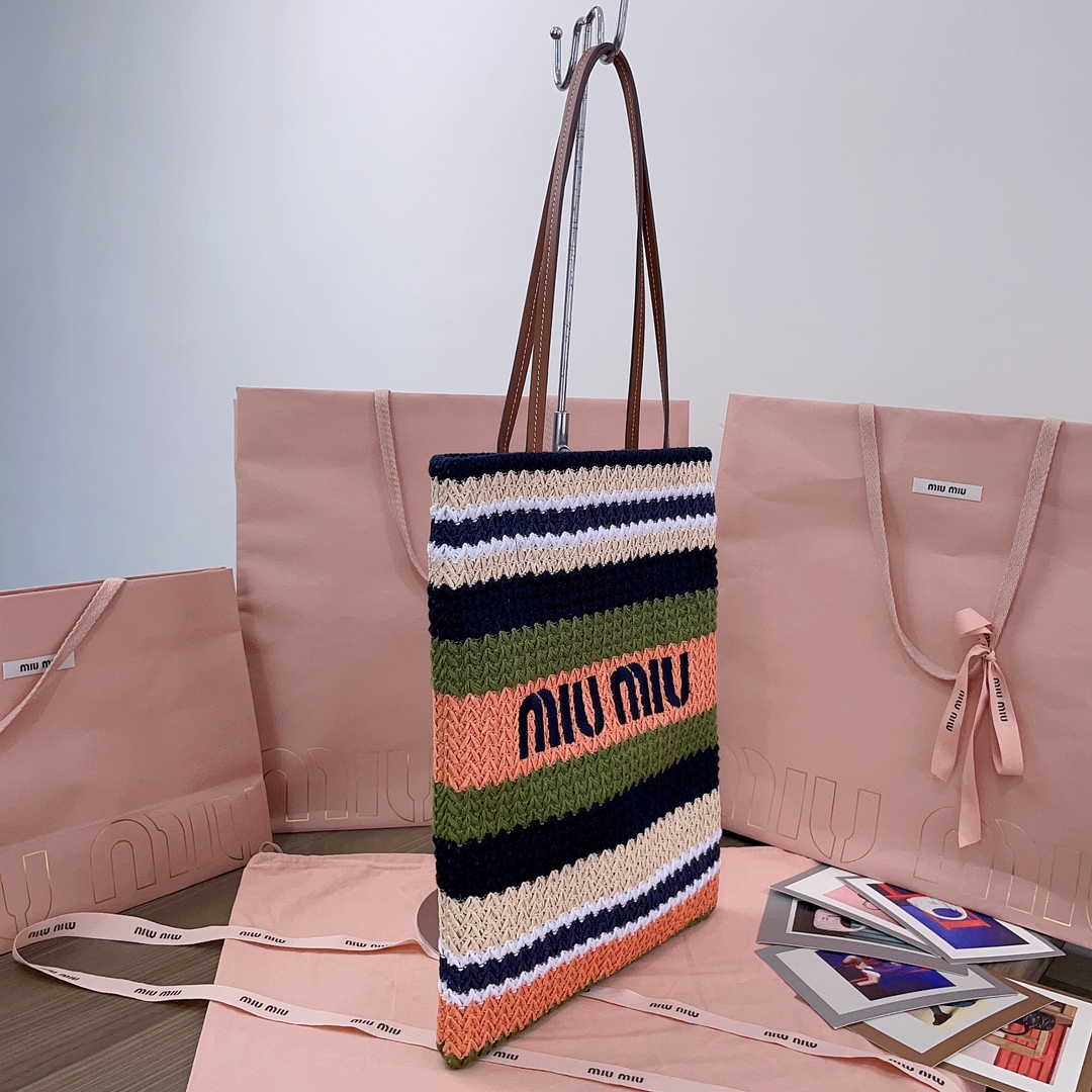NIGO MiuMiu Women's Logo Embroidery Raffia Patchwork Cotton Thread Woven Shopping Bag Shoulder Tote Bags #nigo76743