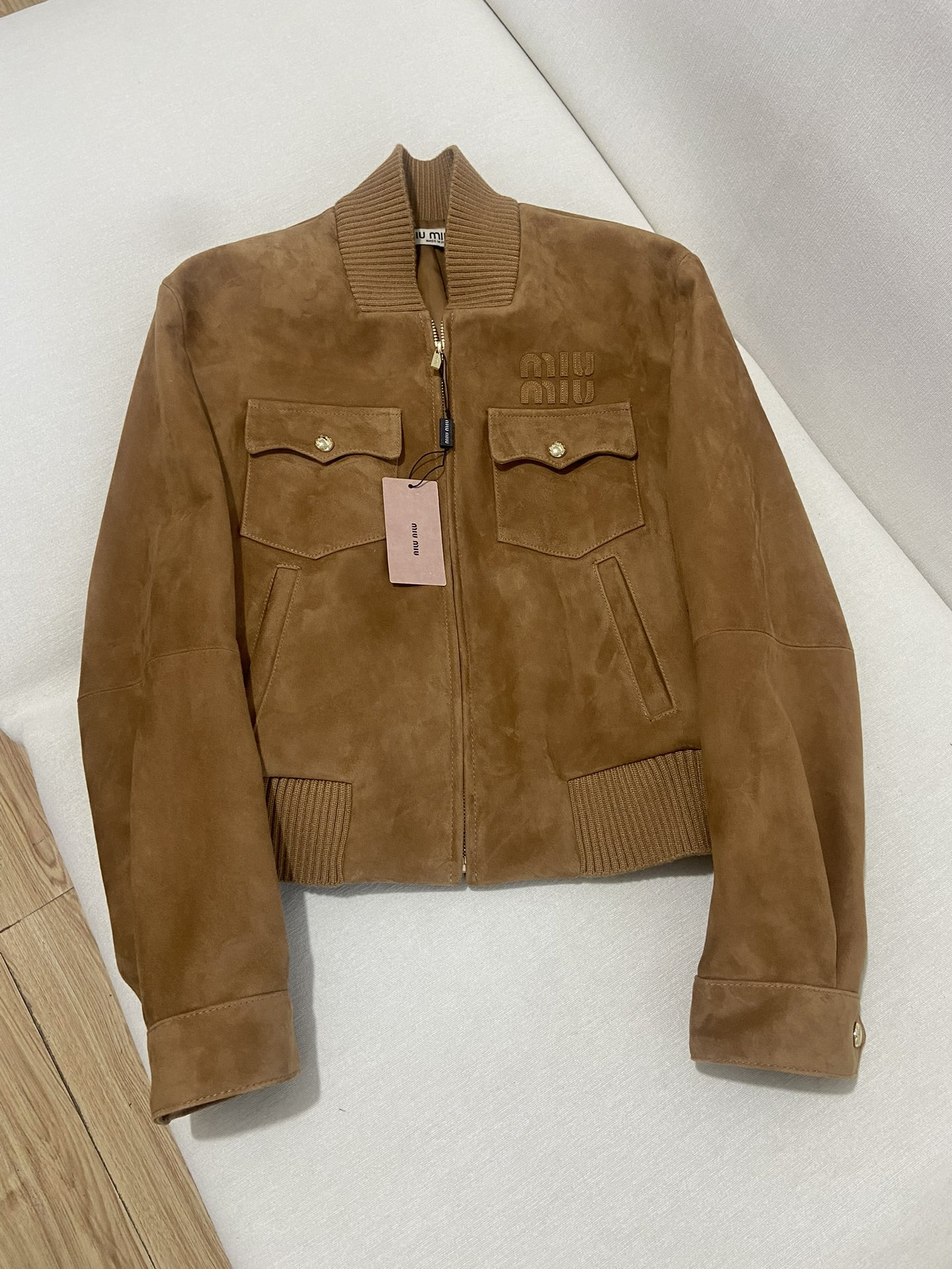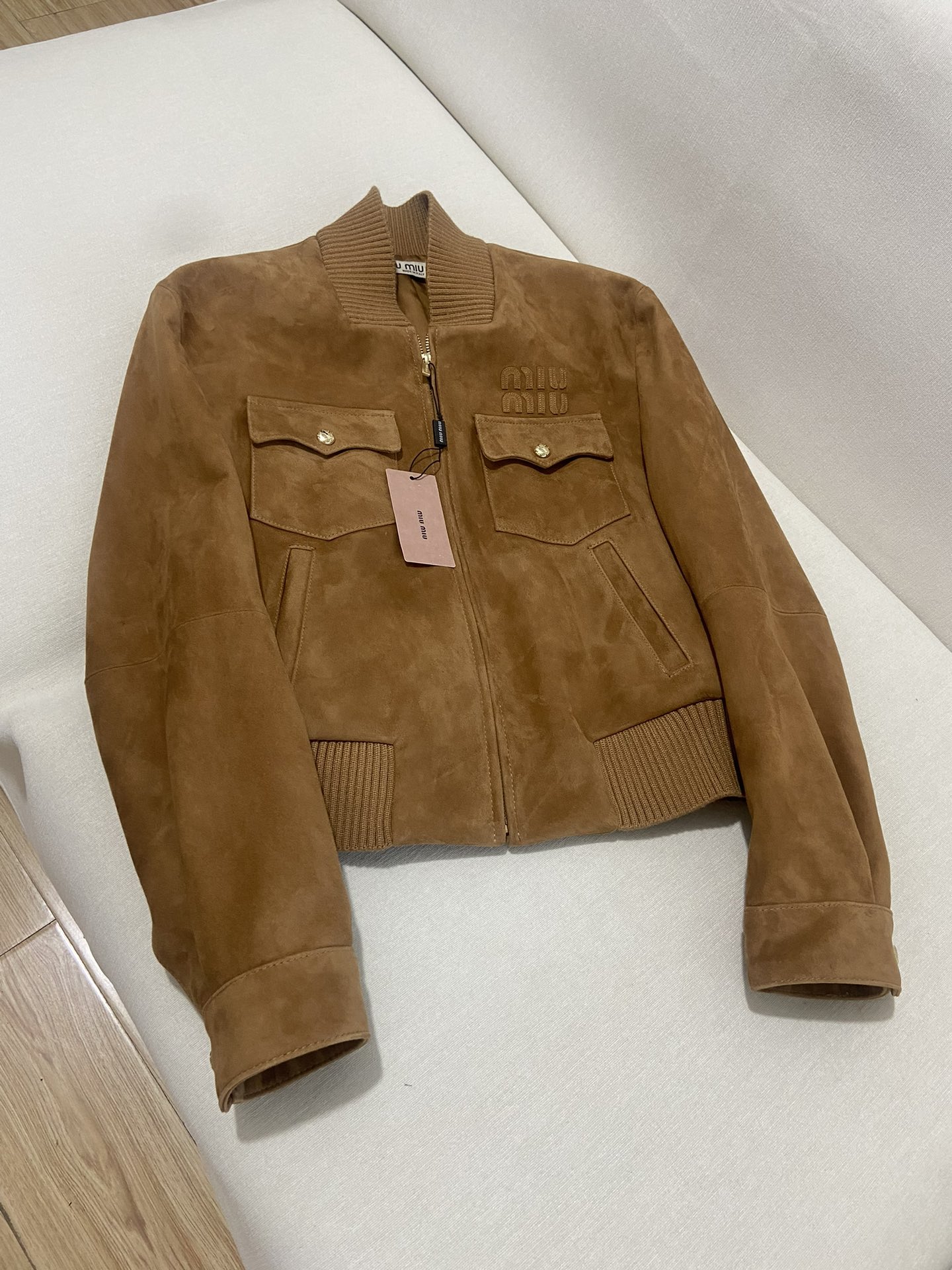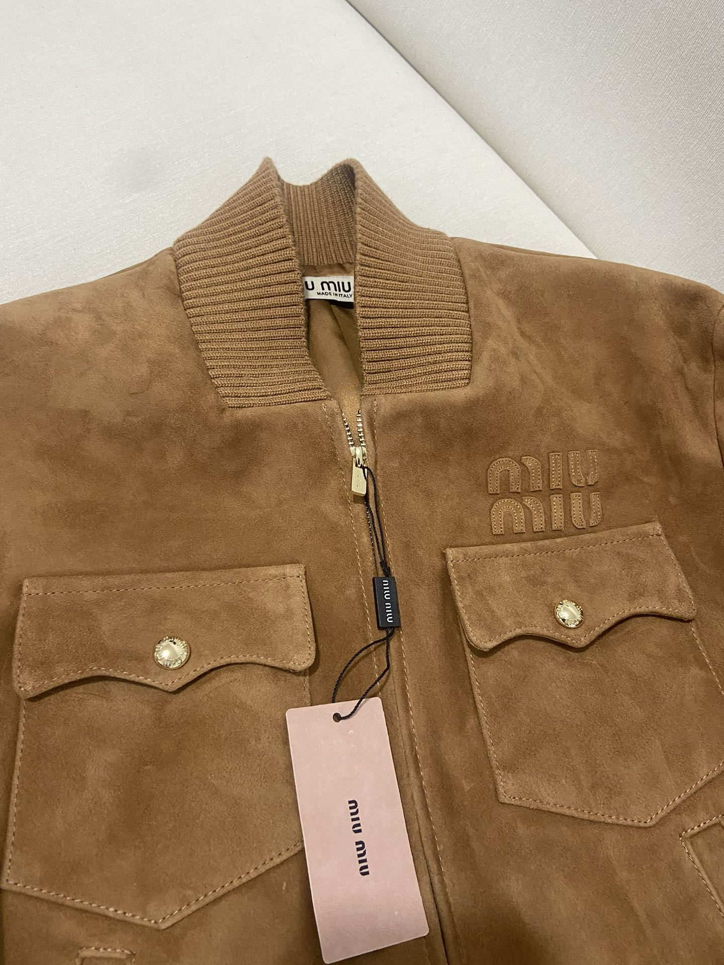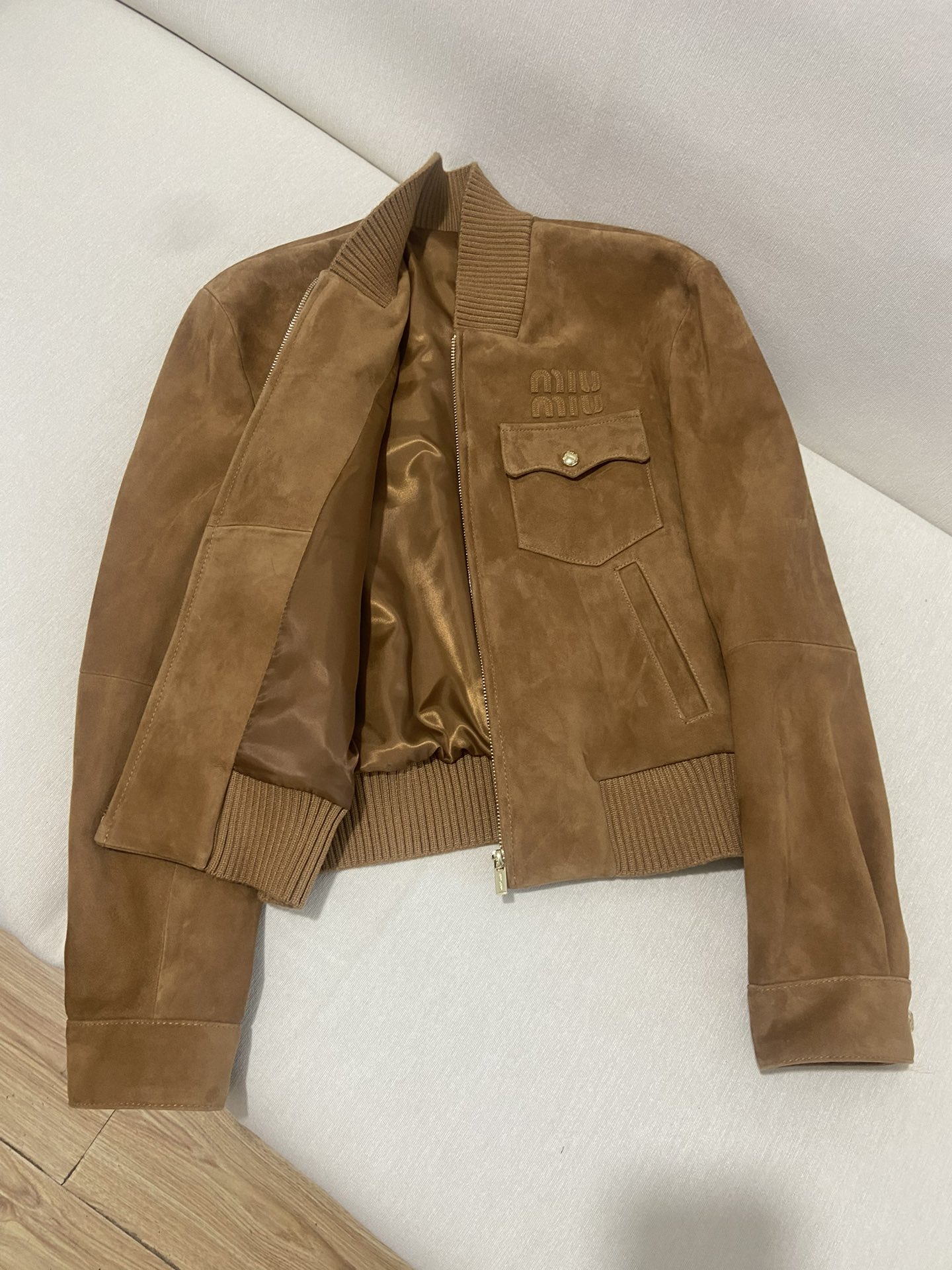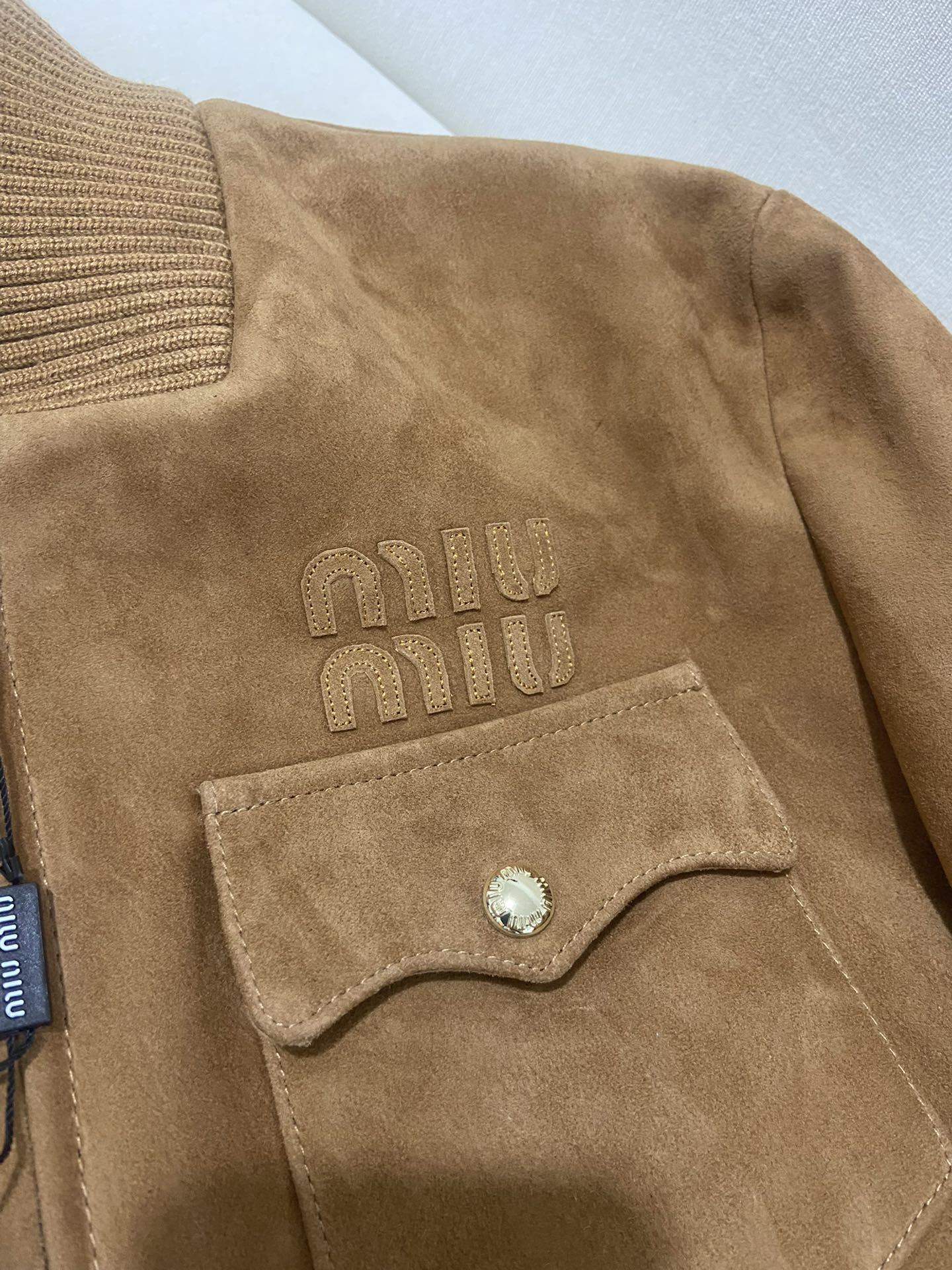 NIGO MiuMiu Women's Logo Letters Retro Suede Jacket Loose Short Section Spring And Autumn Long-Sleeved Jacket #nigo81191