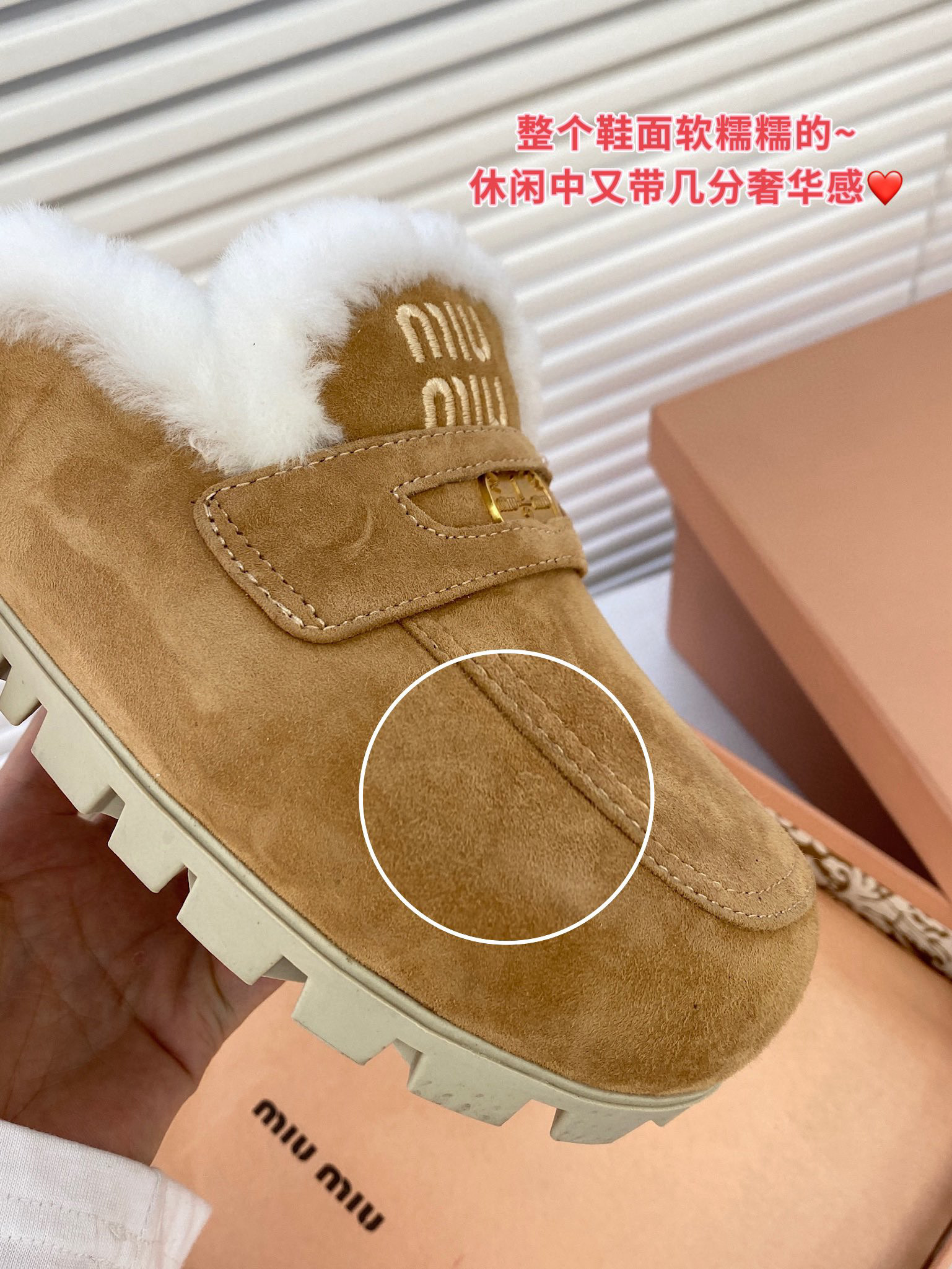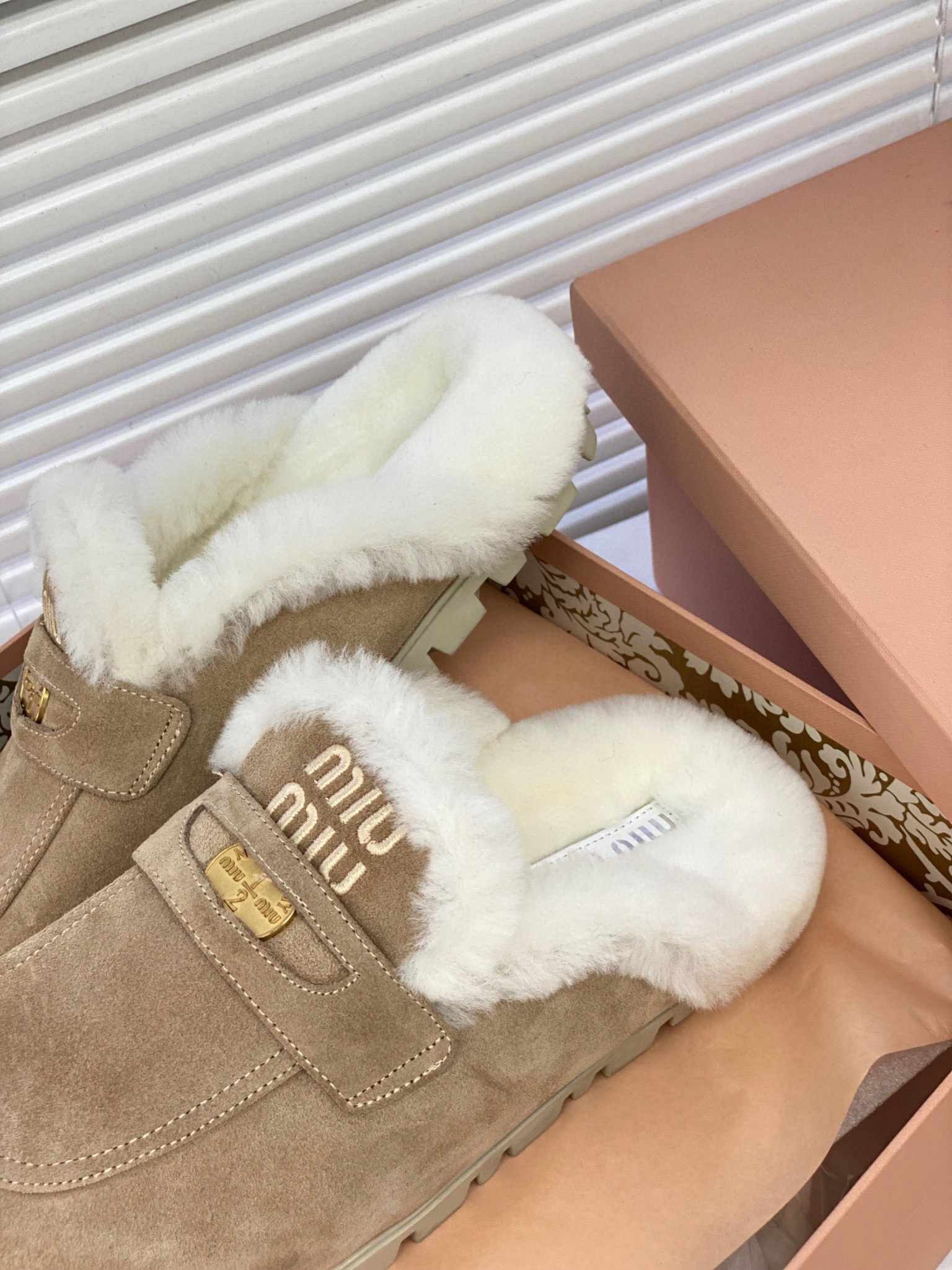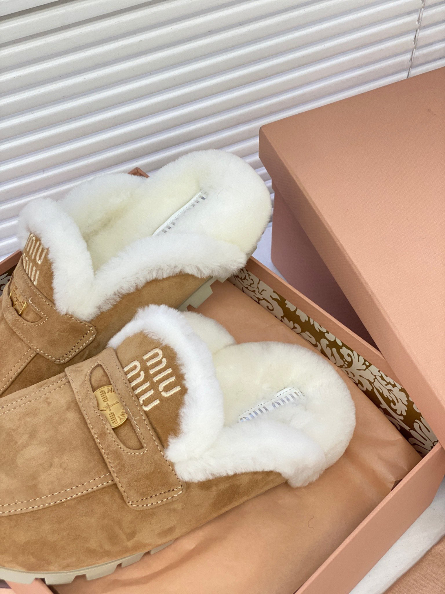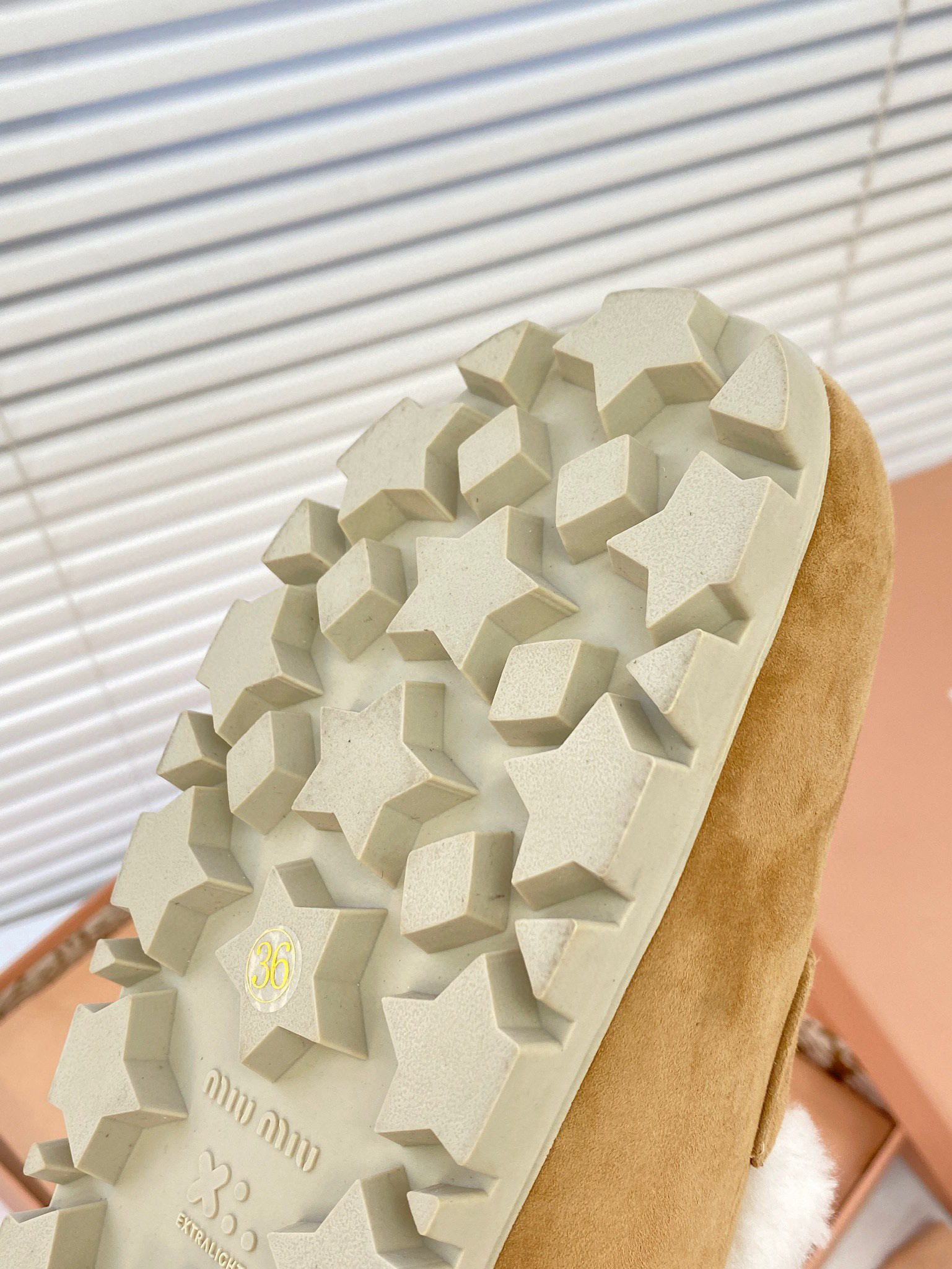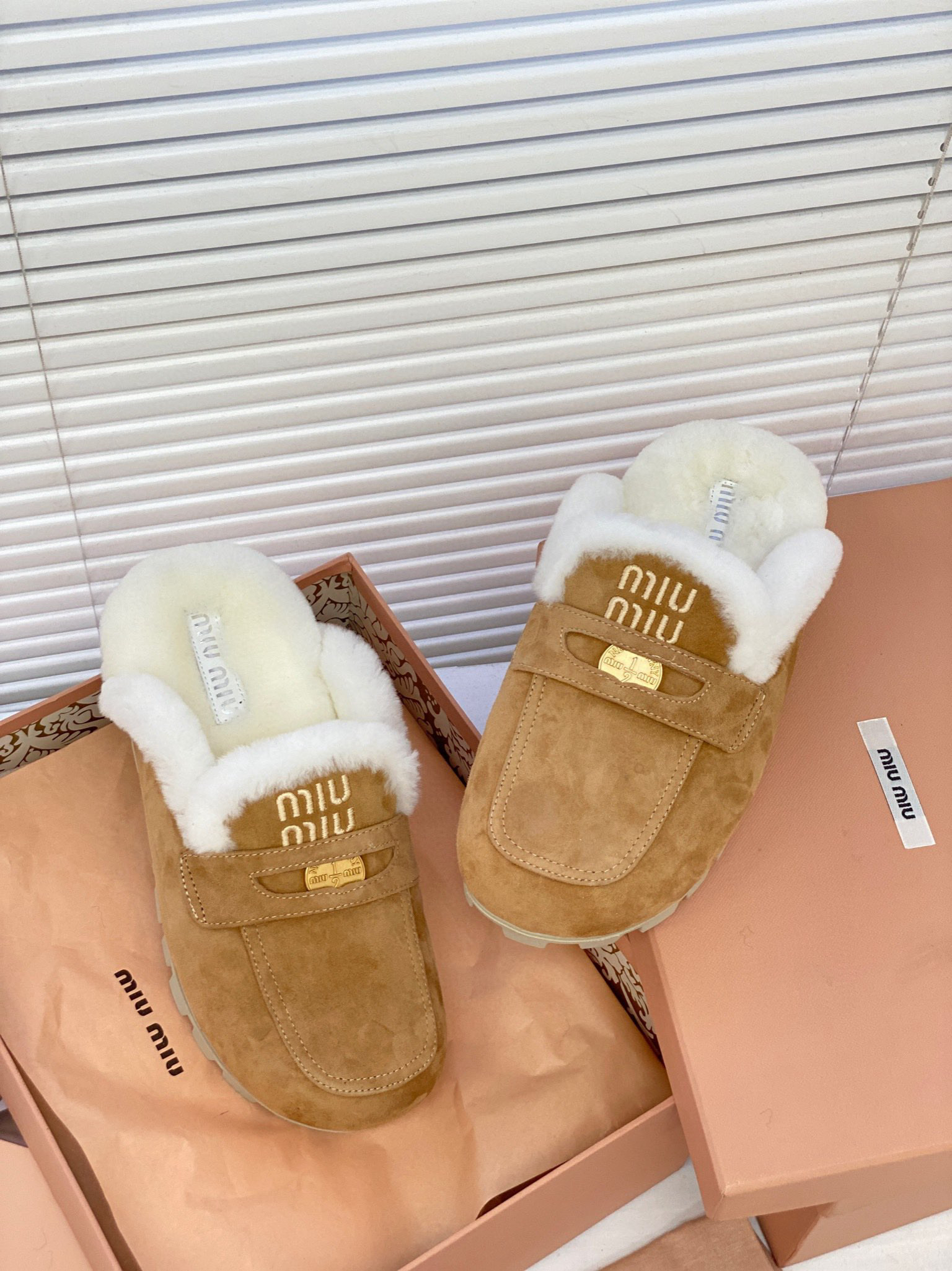 DetailMiu Miu new warm wool gold coin round toe thick bottom heightened comfortable and versatile Birkenstock Mueller half slippers.