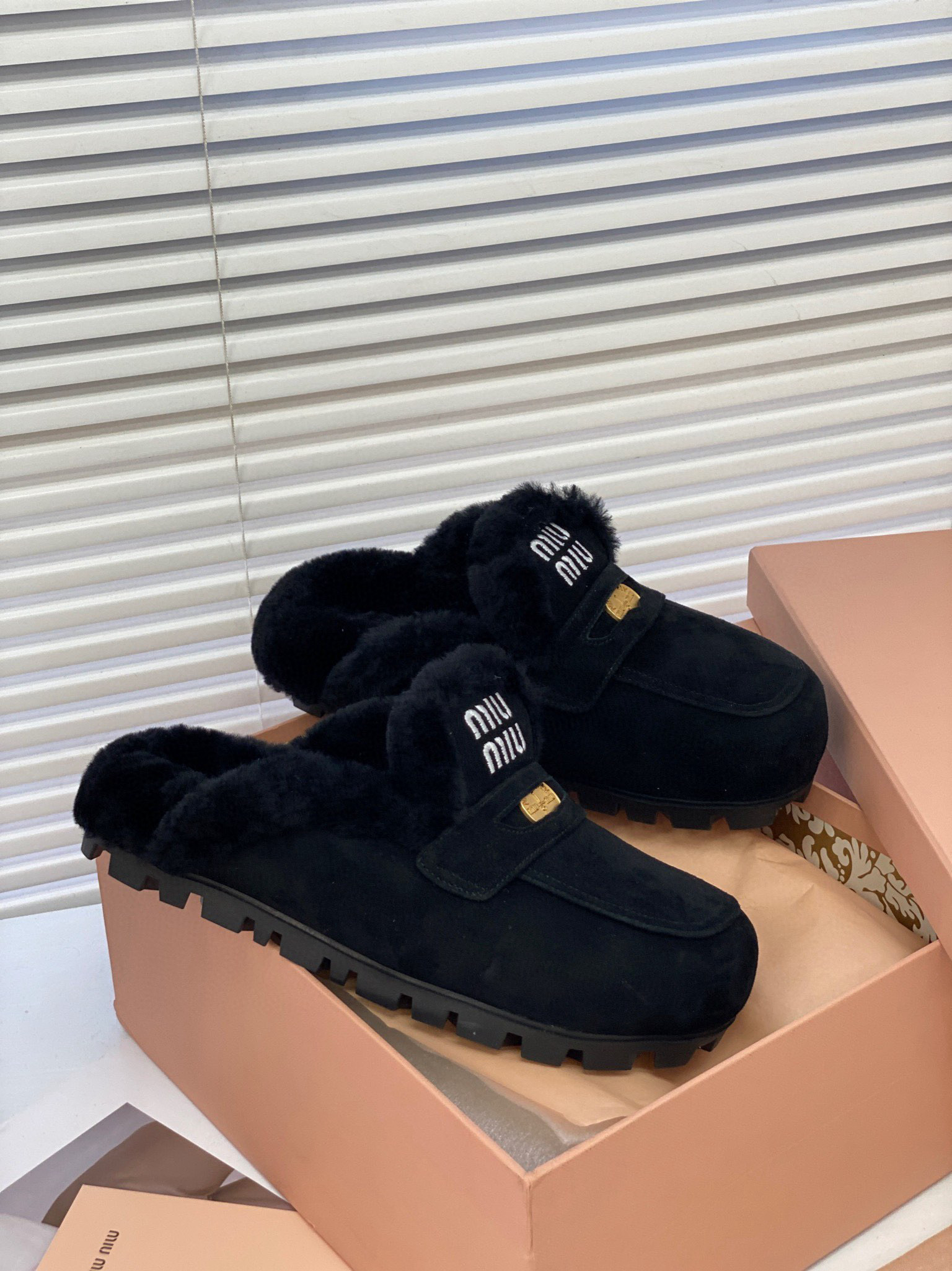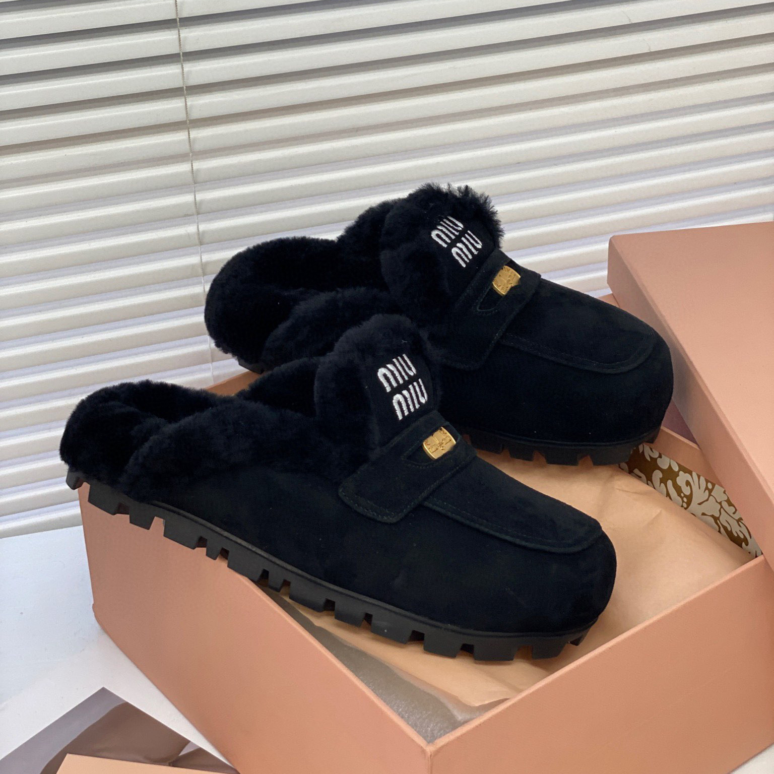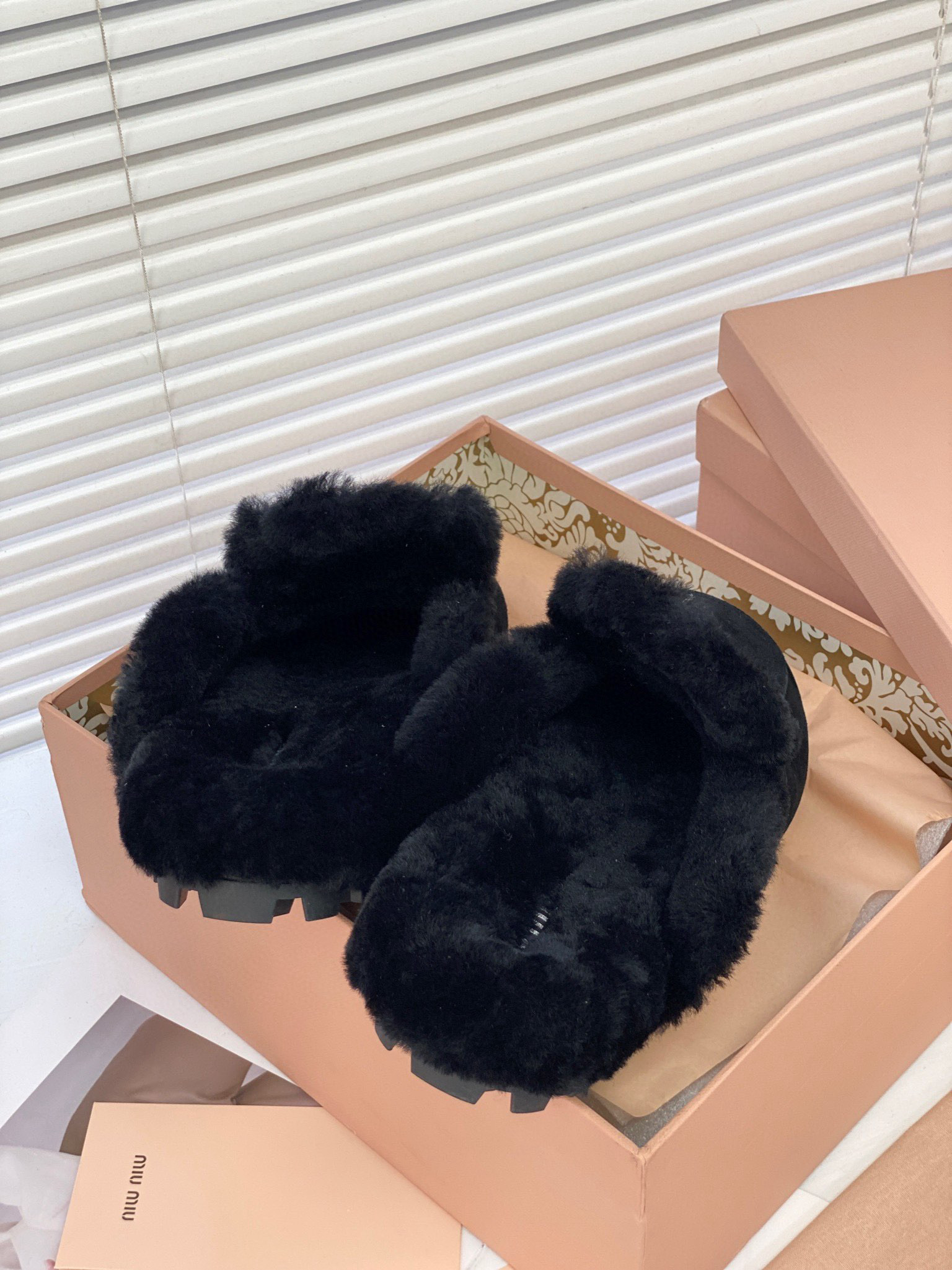 NIGO MiuMiu Women's New Warm Wool Round Toe Thick Sole Birkenstock Mule Half Slippers Shoes #nigo97619