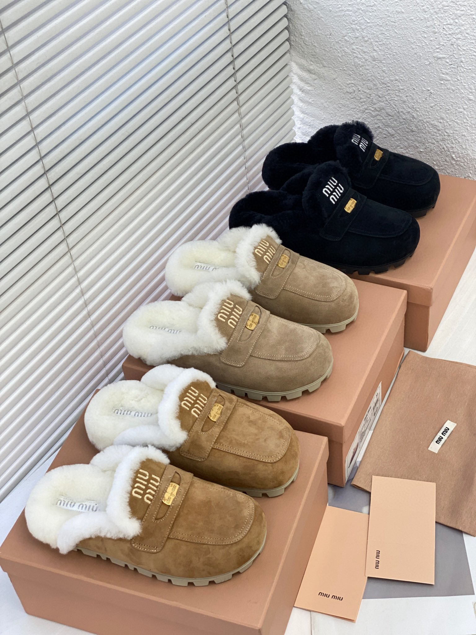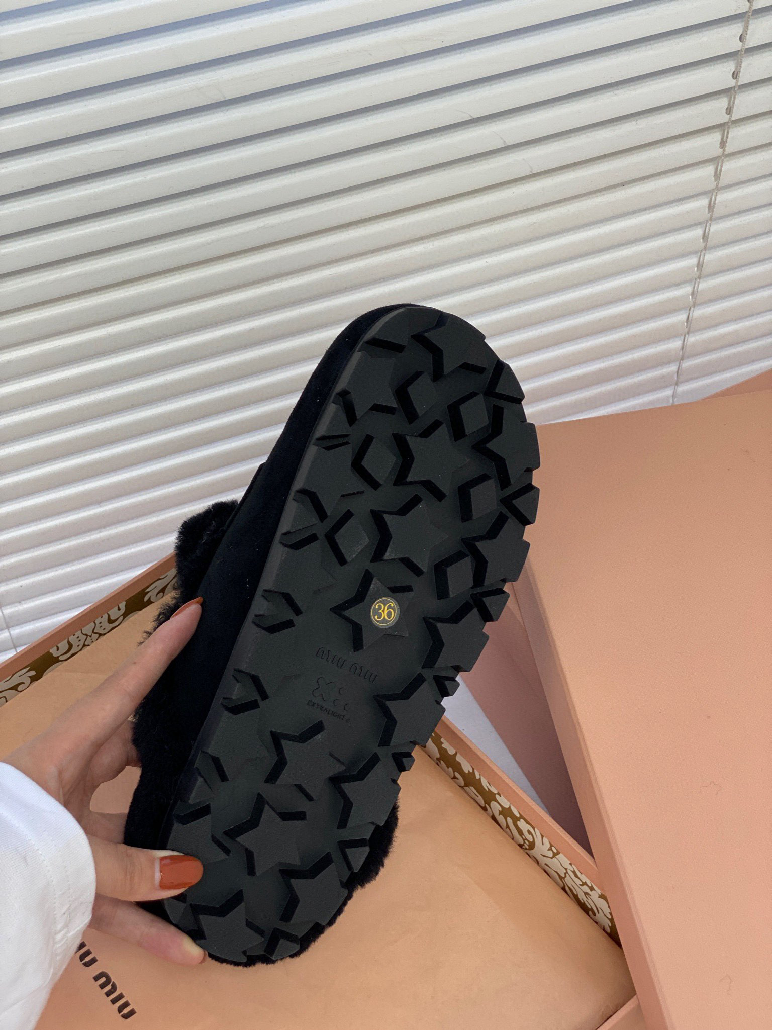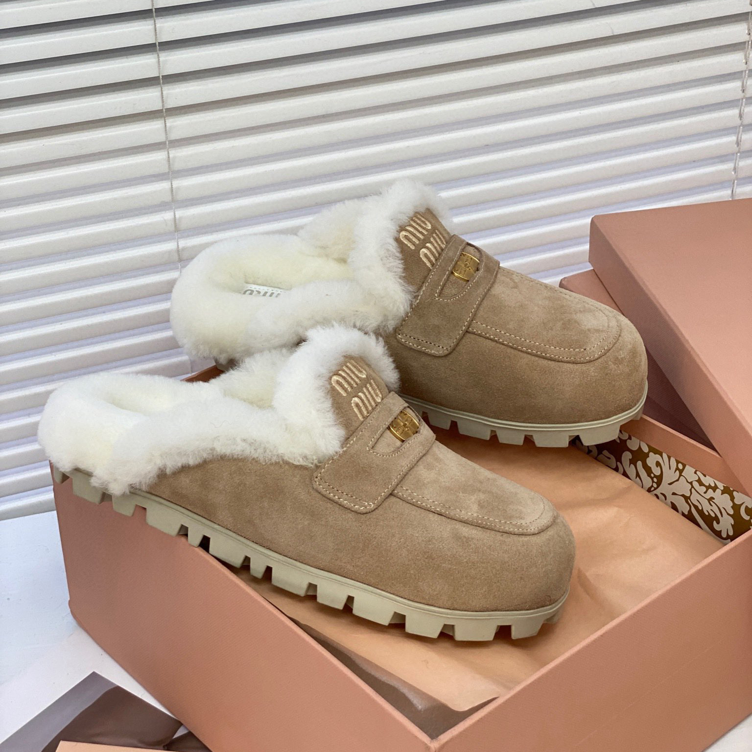 NIGO MiuMiu Women's New Warm Wool Round Toe Thick Sole Birkenstock Mule Half Slippers Shoes #nigo97619