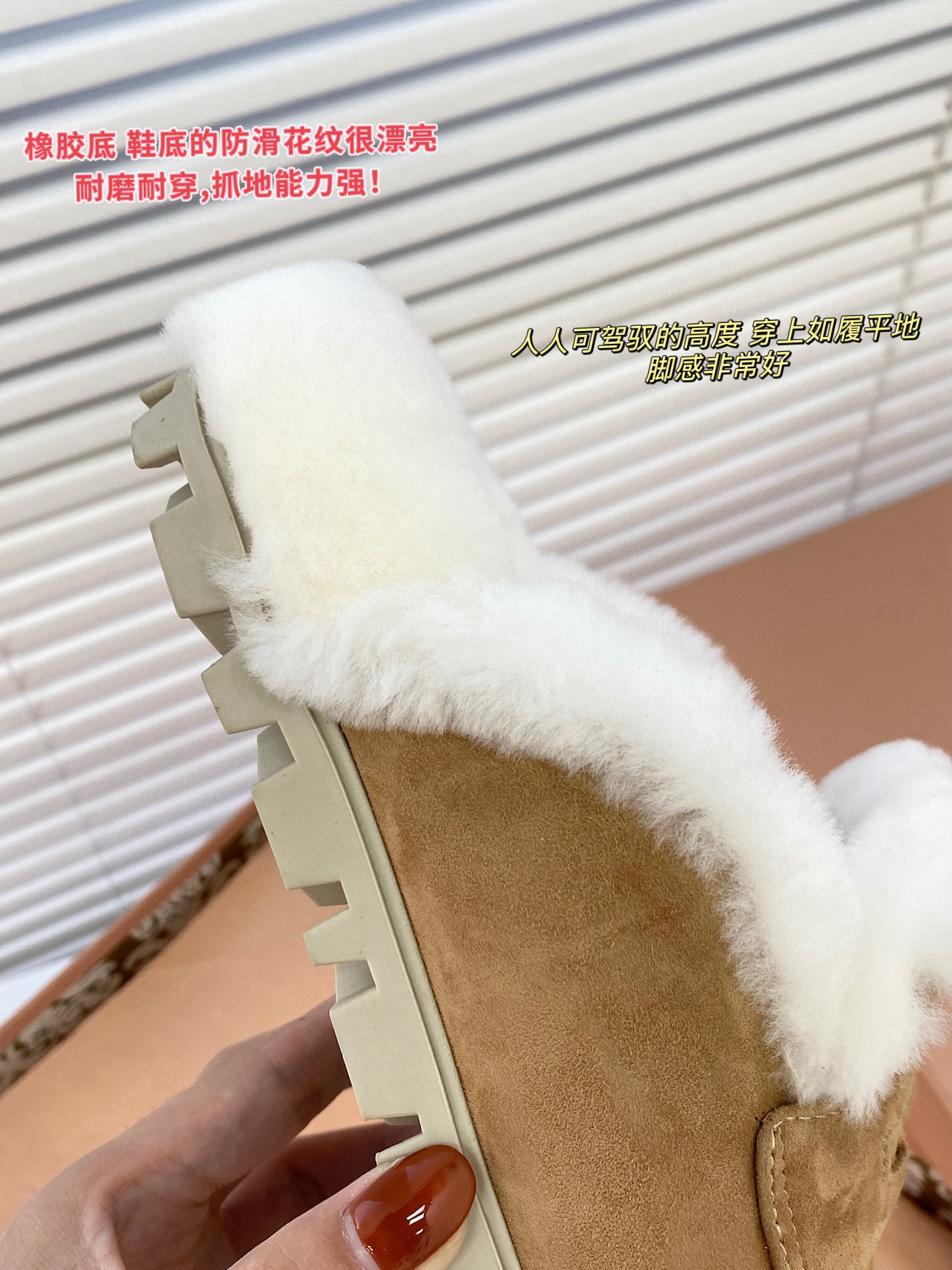 The entire shoe is made of sheepskin wool and polished satin cowhide with a very high-grade visual effect The style of the slippers is very grounded both recognisable and will not appear pompous! It's not a "vase", it's also very practical.
