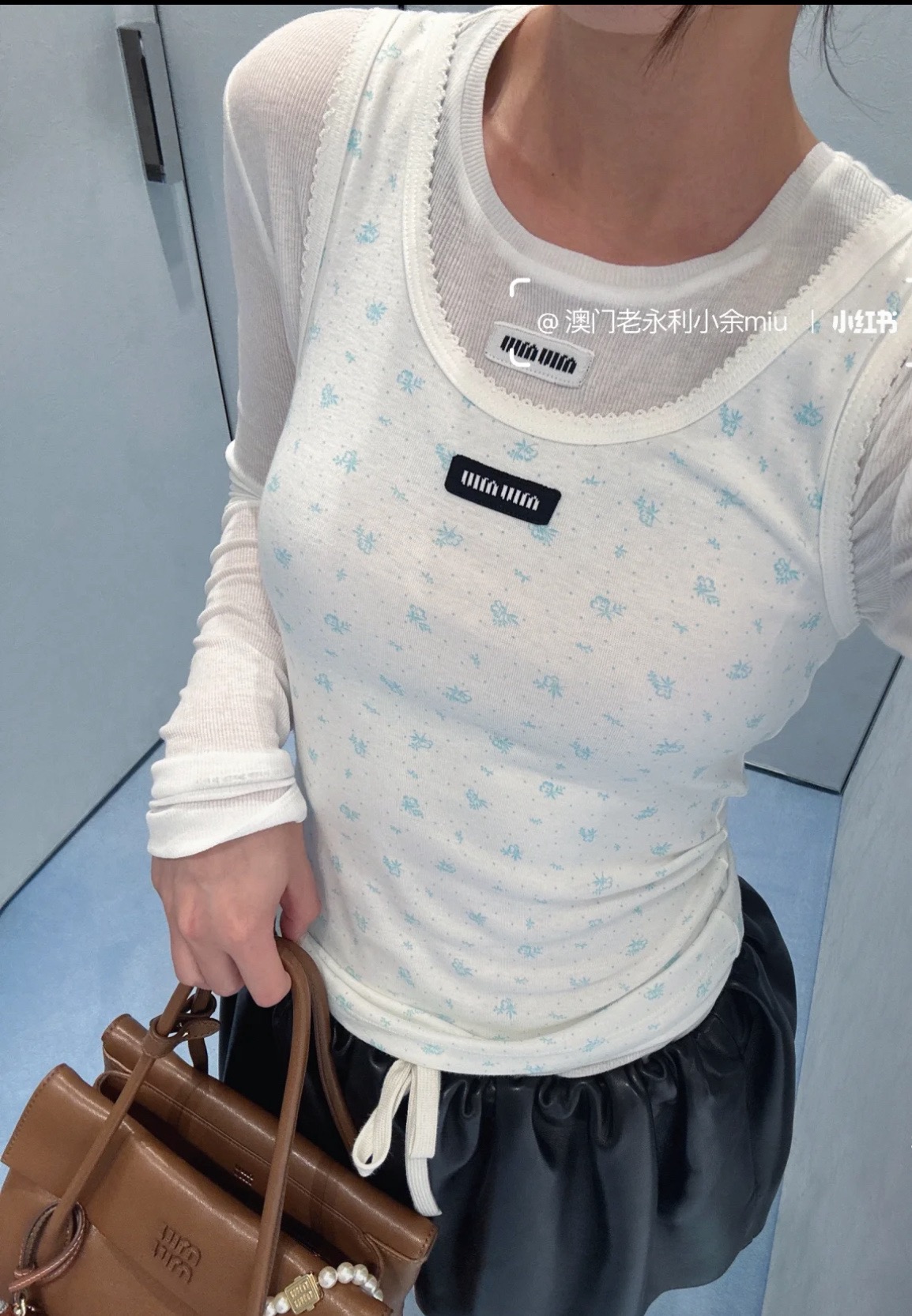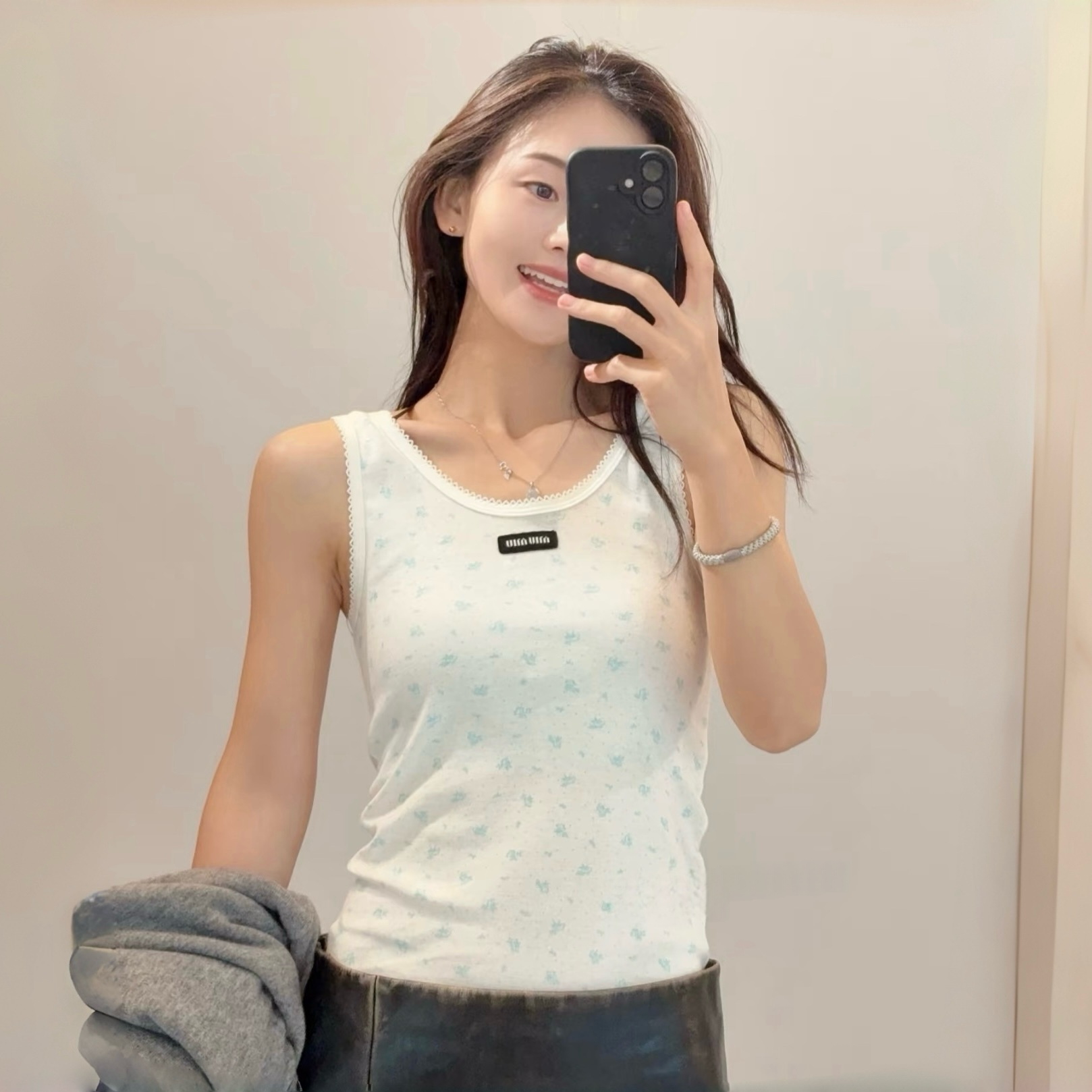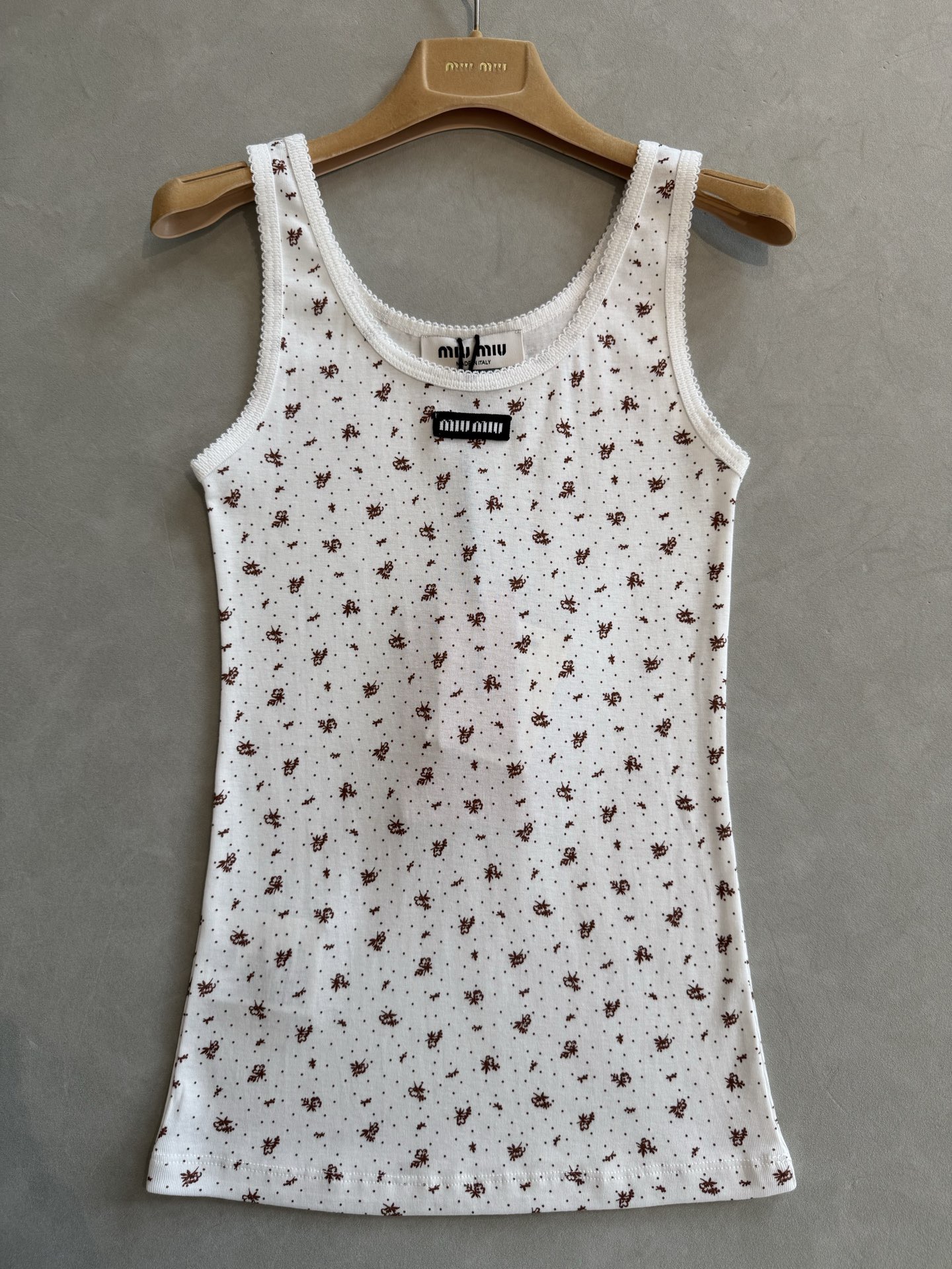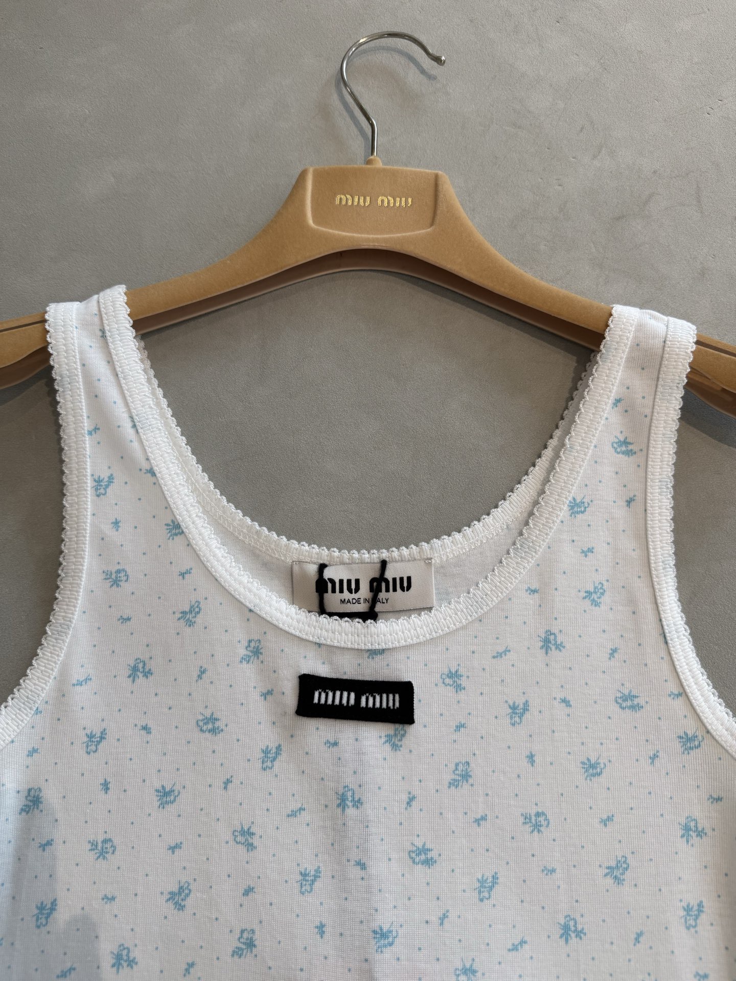 NIGO MIUMIU Women's Ribbed Knit Crew Neck Logo Patch Straight Tank Top #nigo332263