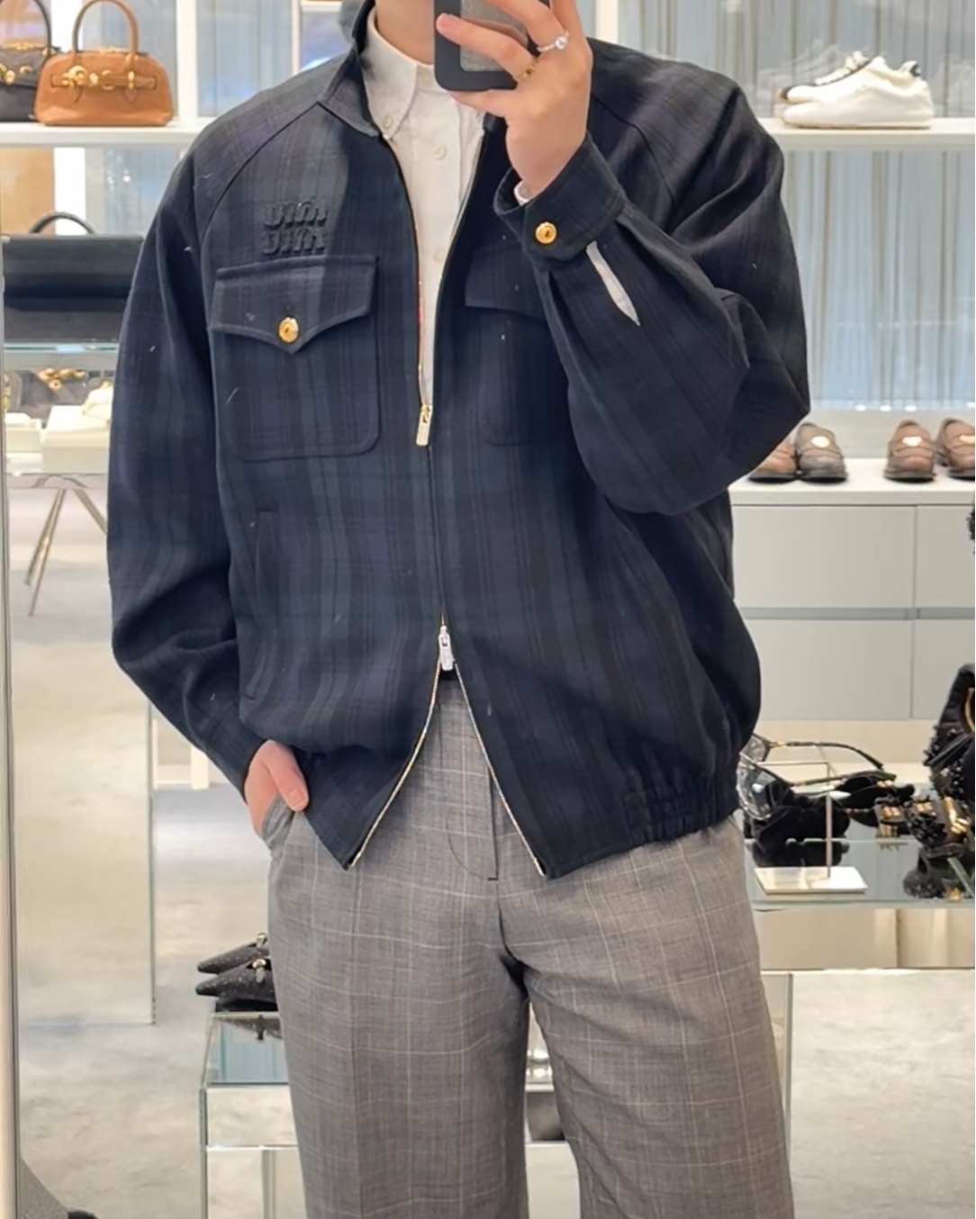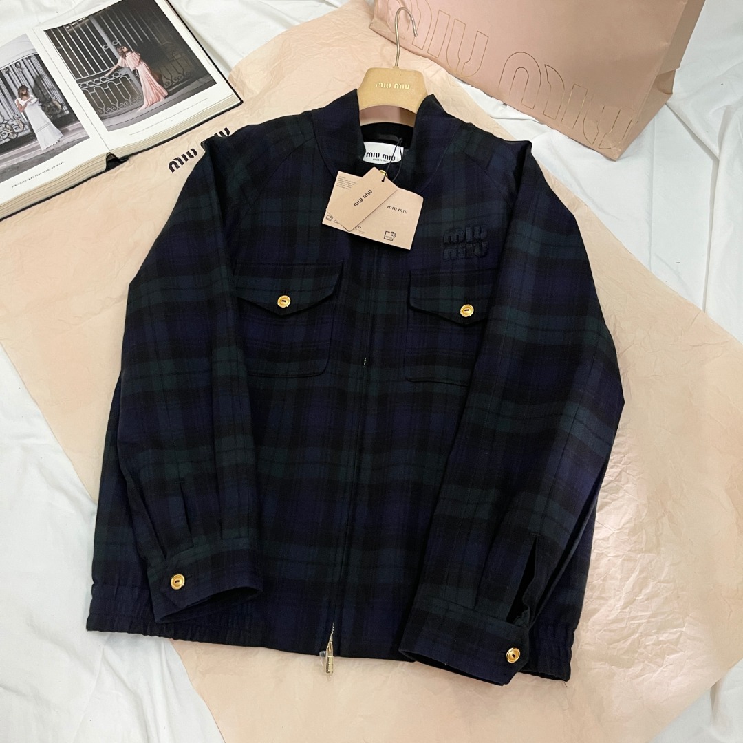 NIGO MiuMiu Women's Spring and Autumn Check Printed Standing Collar Logo Embroidery Logo Zipper Long Sleeve Jacket #nigo75343