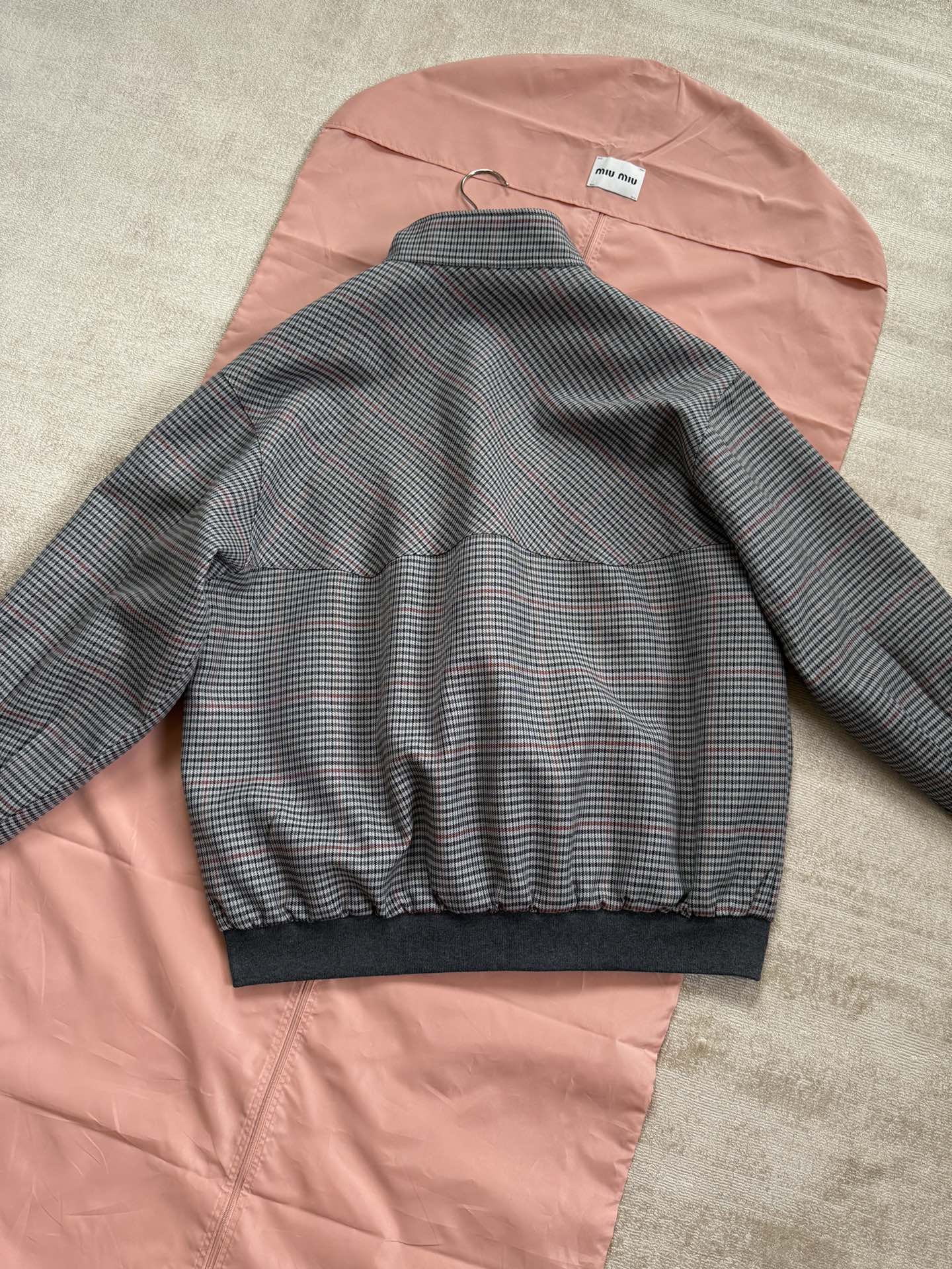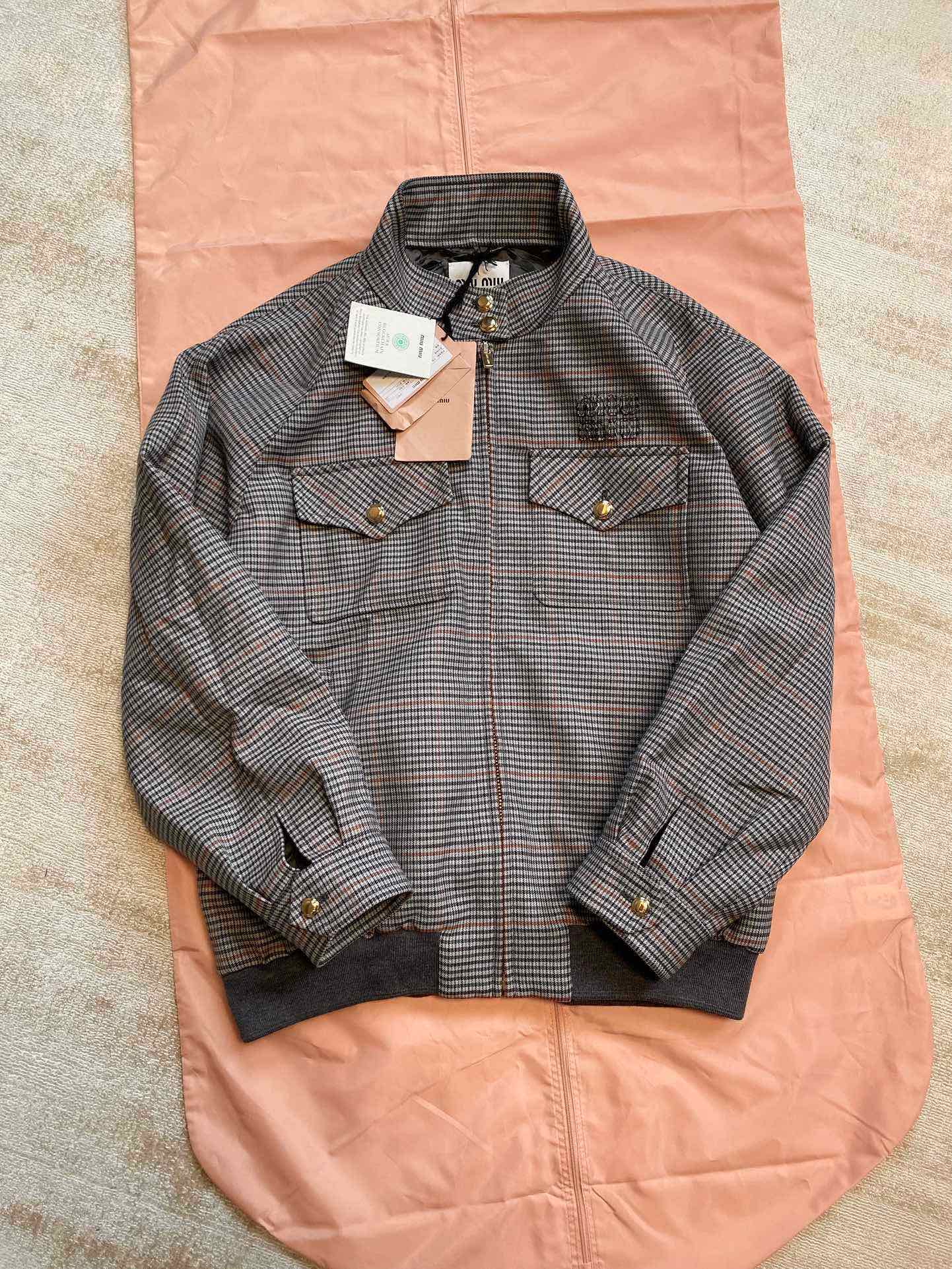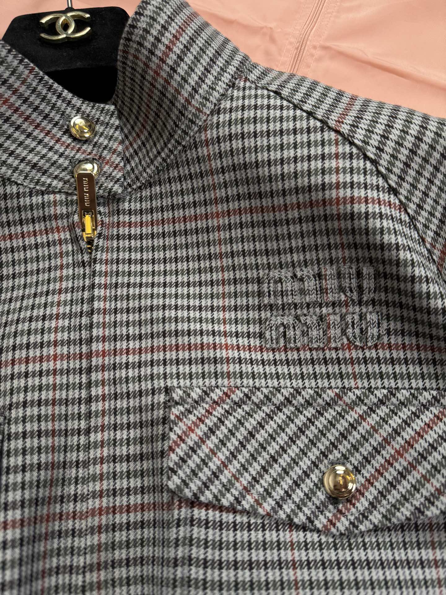 NIGO MiuMiu Women's Spring and Autumn Gray Checkered Lapel Zipper Long Sleeve Jacket #nigo73723
