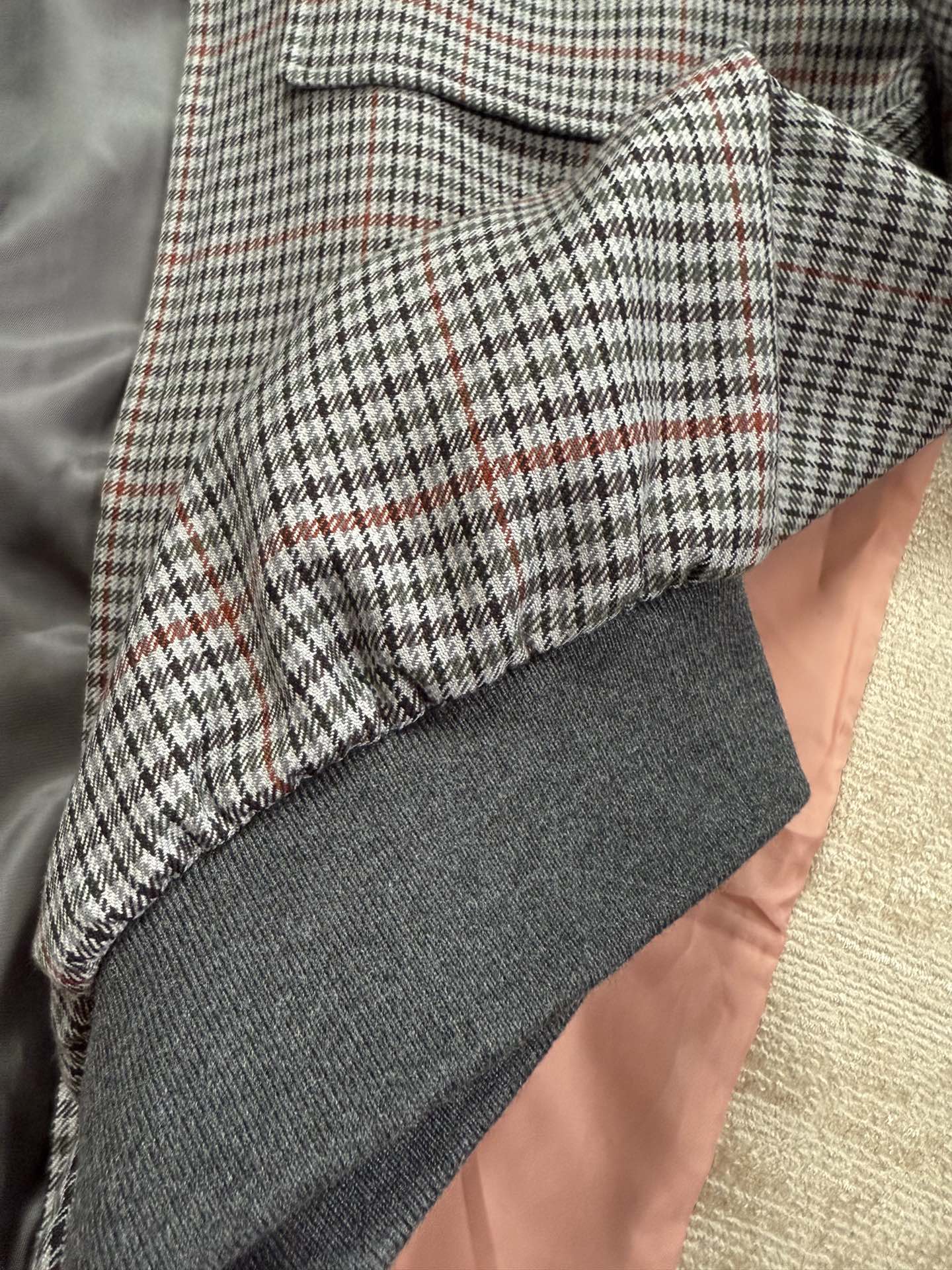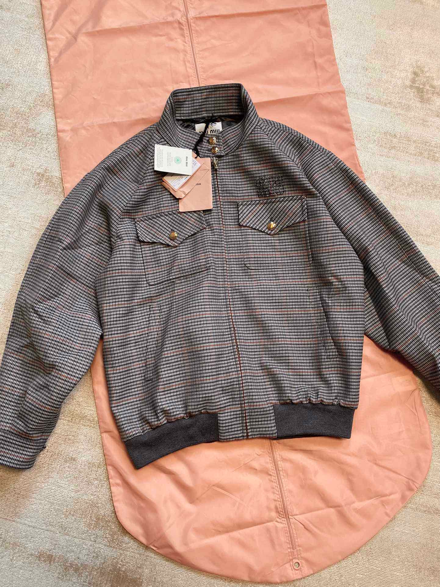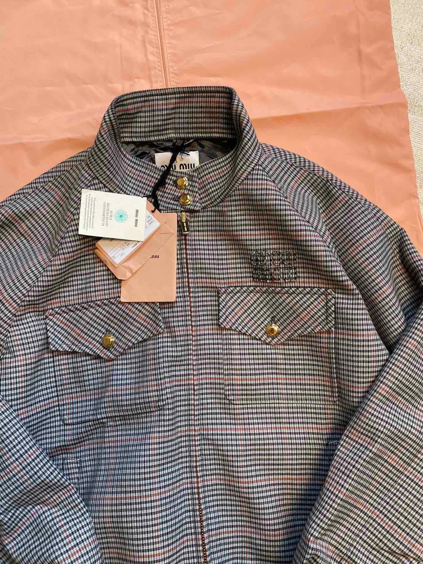 NIGO MiuMiu Women's Spring and Autumn Gray Checkered Lapel Zipper Long Sleeve Jacket #nigo73723