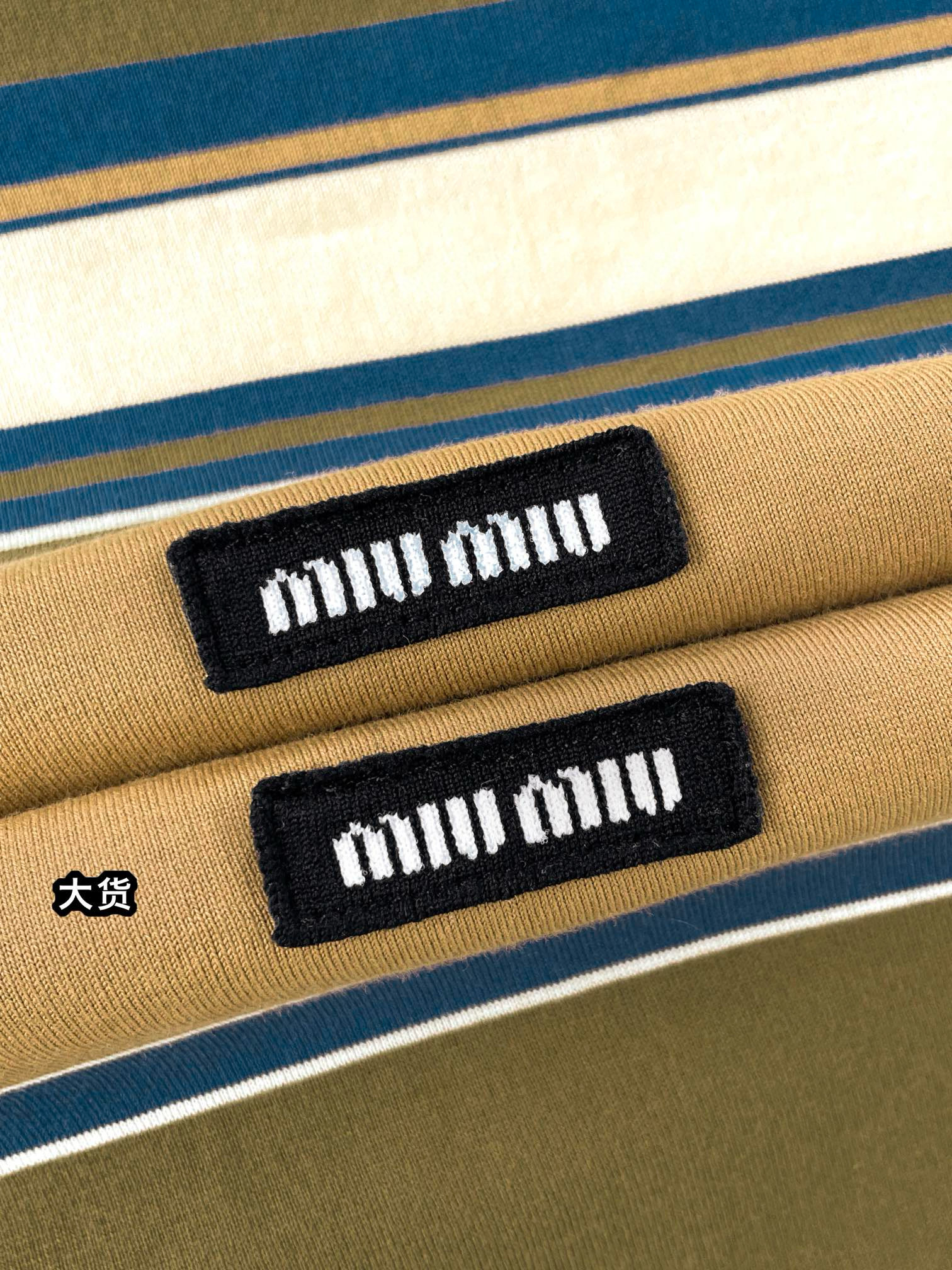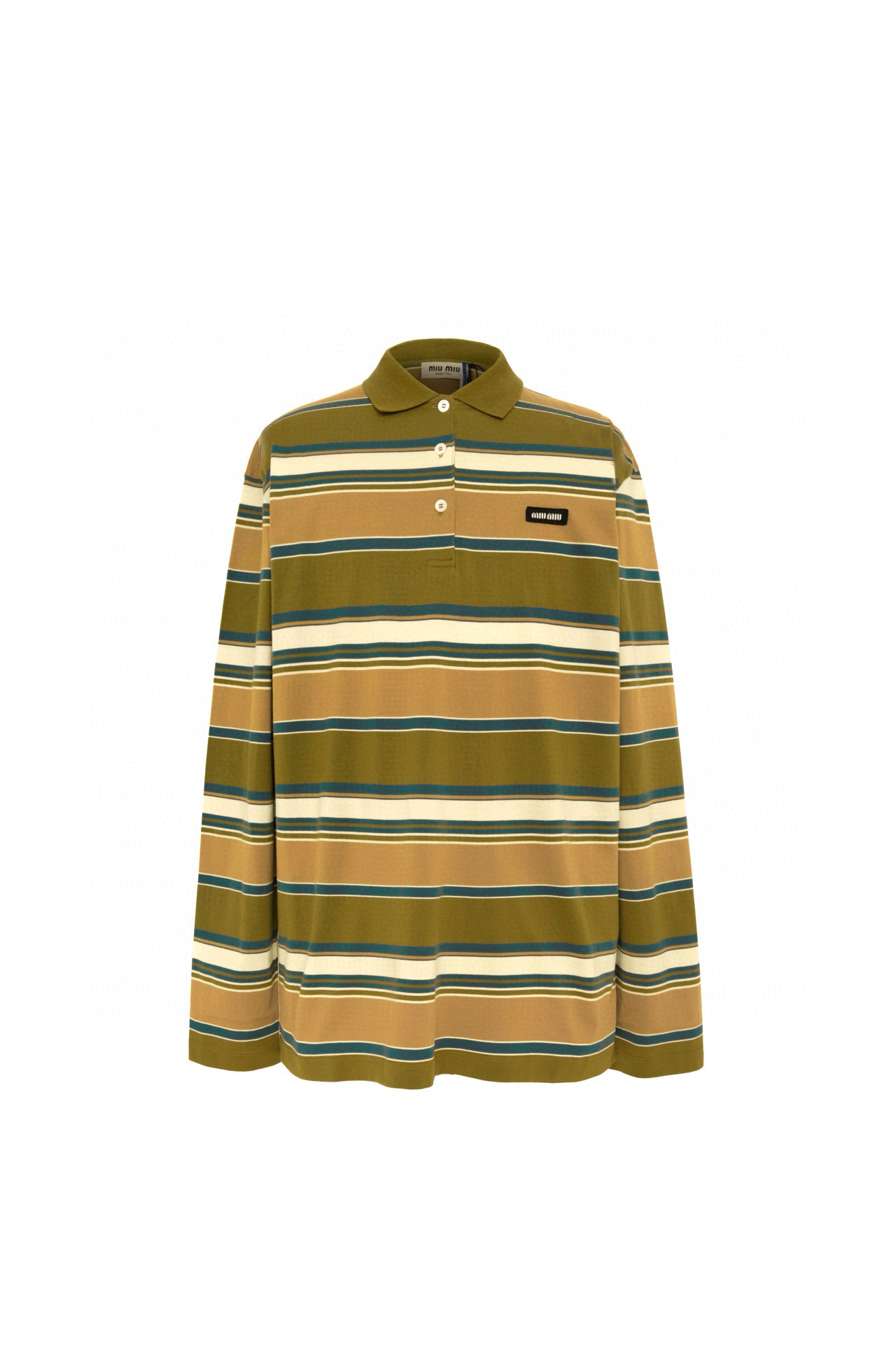 NIGO MiuMiu Women's Spring and Autumn Striped Buttoned Plain Knit Pullover Long Sleeve Polo Shirt #nigo74141