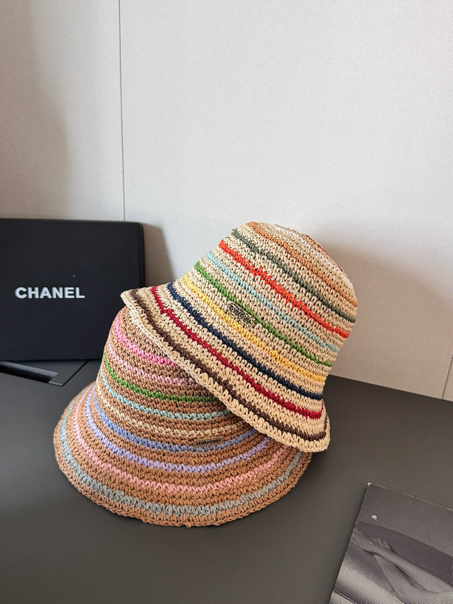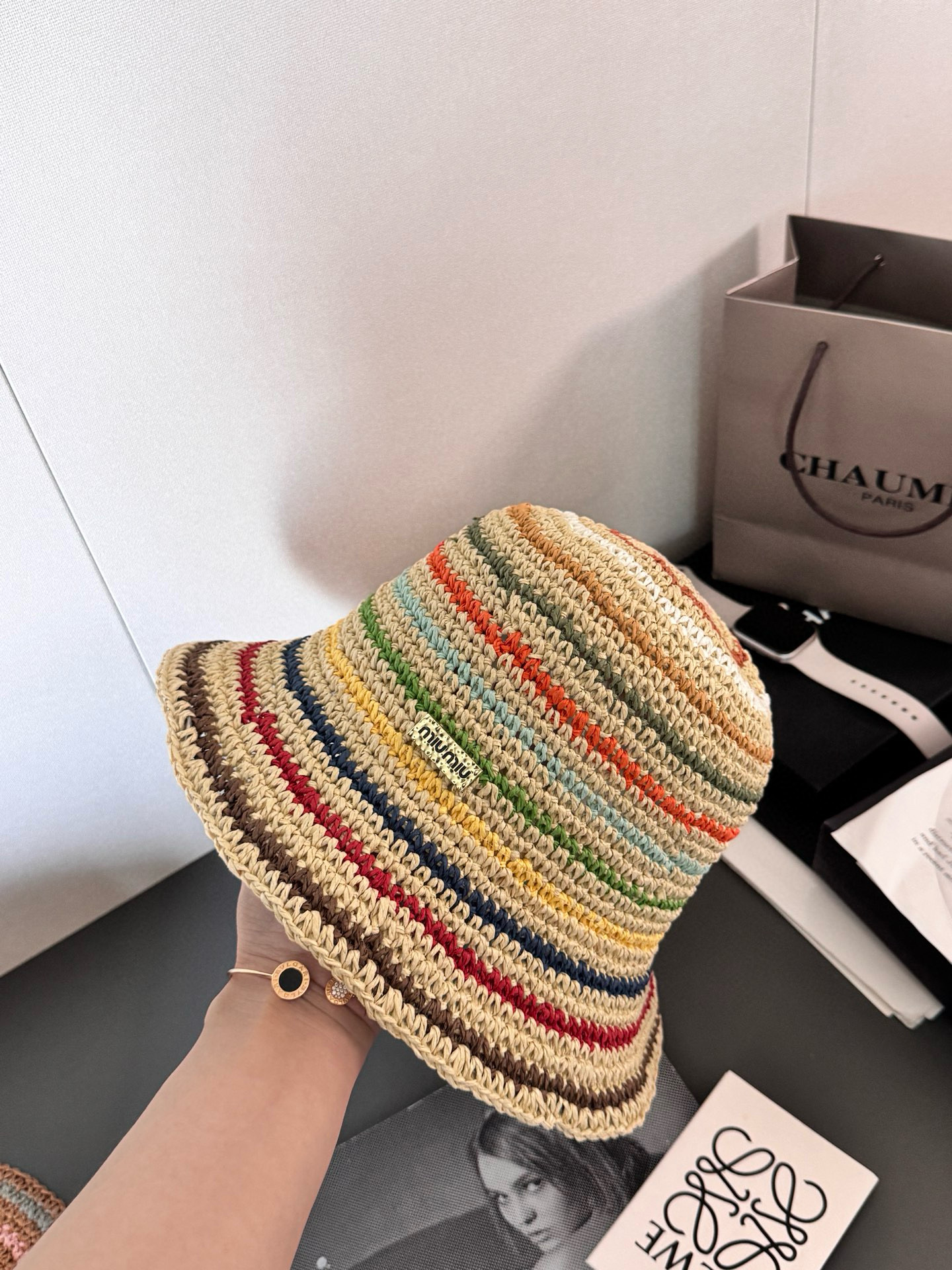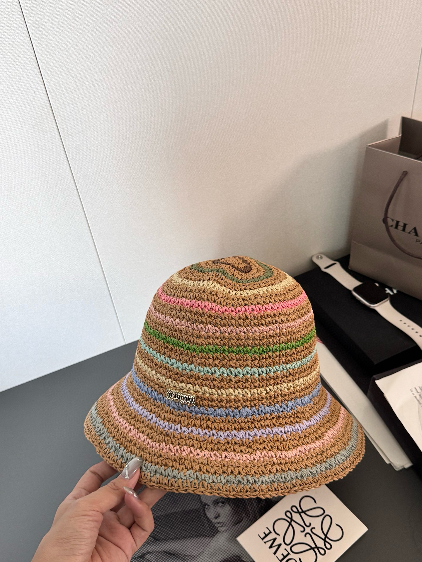 NIGO MiuMiu Women's Spring and Summer Rainbow Knit Fisherman's Hat Cap #nigo76551