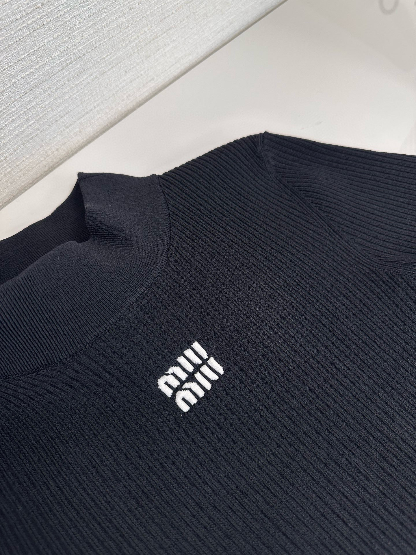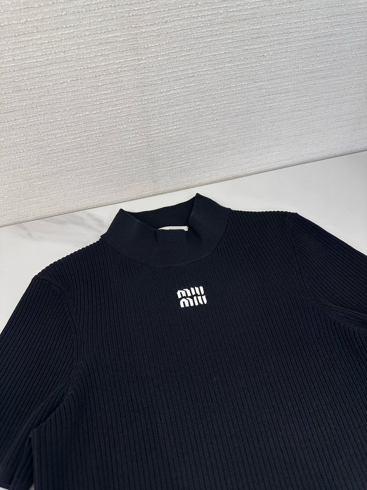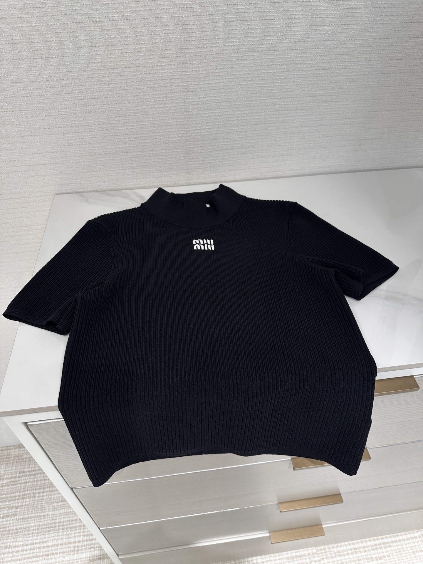 NIGO MiuMiu Women's Spring and Summer Slim Half Plunge Short Sleeve Round Neck Knit Sweater T-shirt #nigo75453