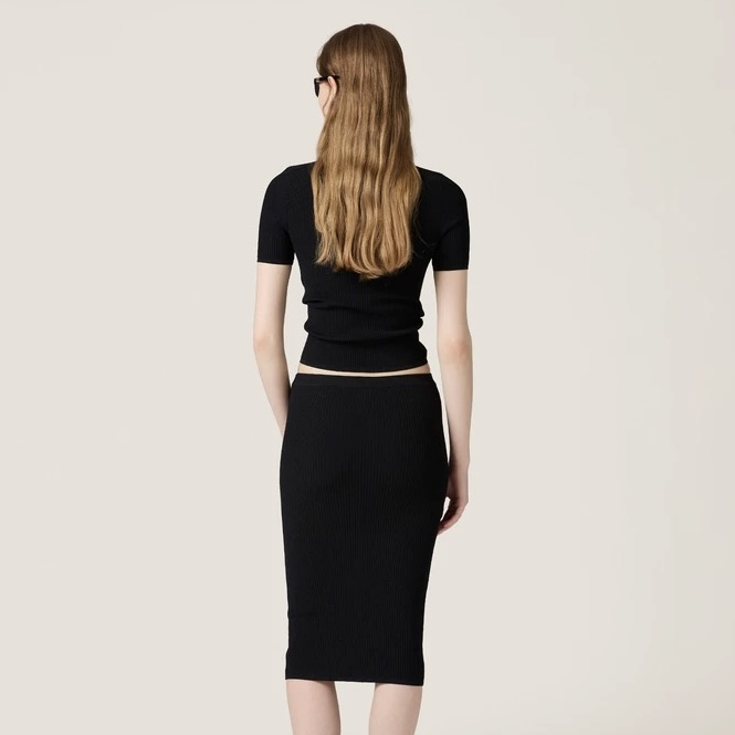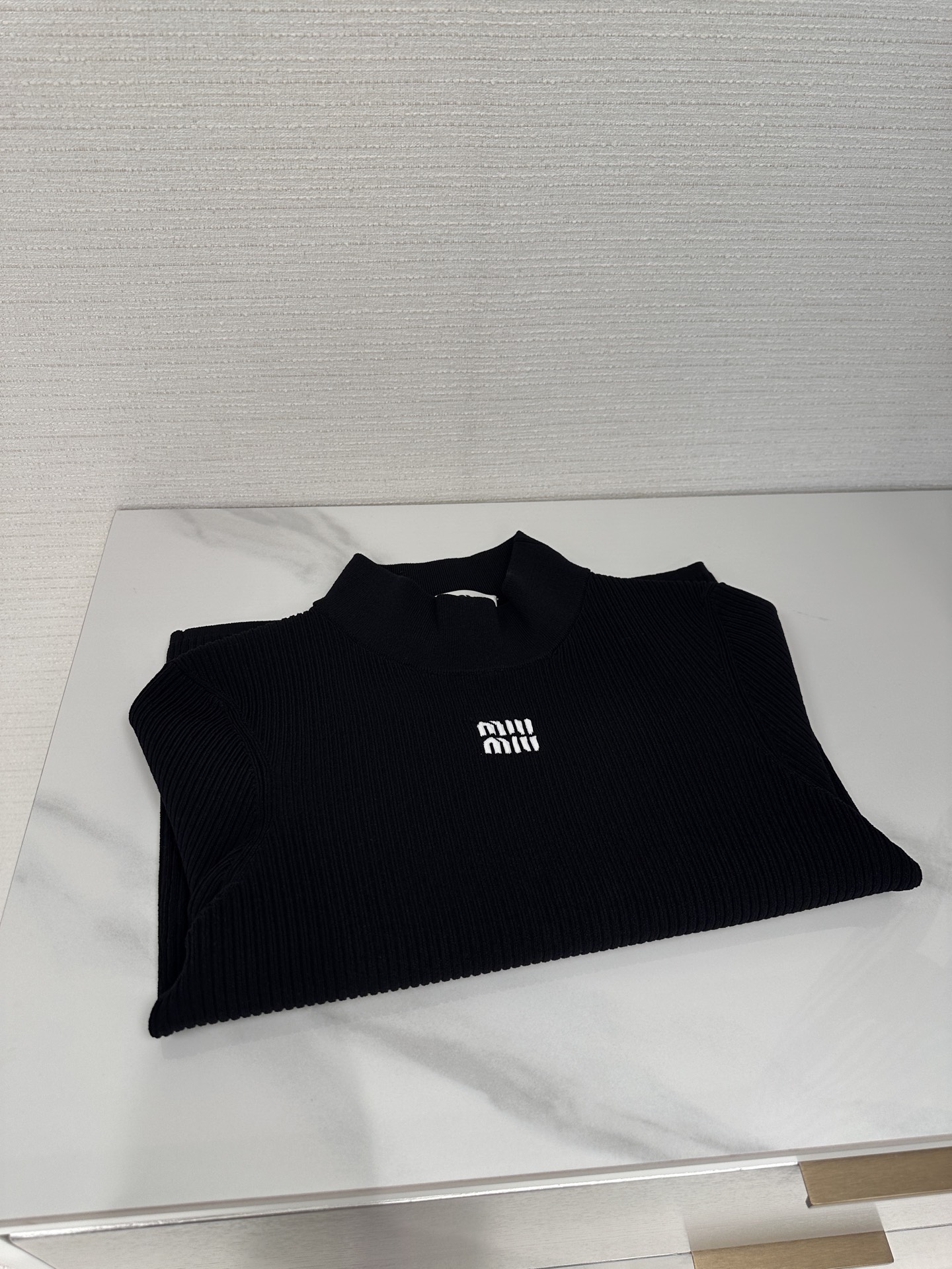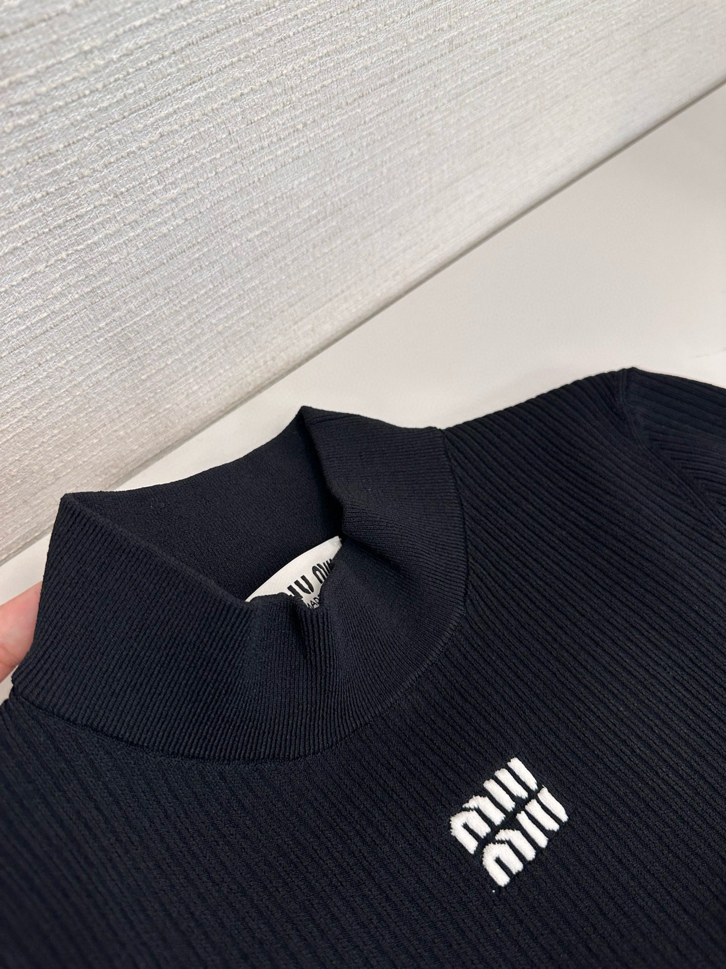 NIGO MiuMiu Women's Spring and Summer Slim Half Plunge Short Sleeve Round Neck Knit Sweater T-shirt #nigo75453