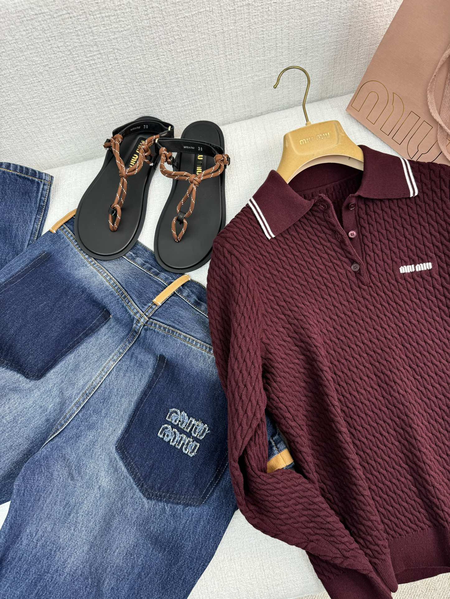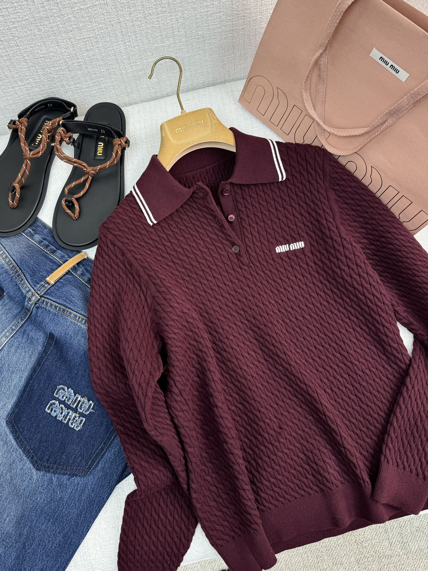 NIGO MiuMiu Women's Spring & Autumn Striped Trim Logo Long Sleeve Knit Polo Shirt Knit Shirt #nigo72267