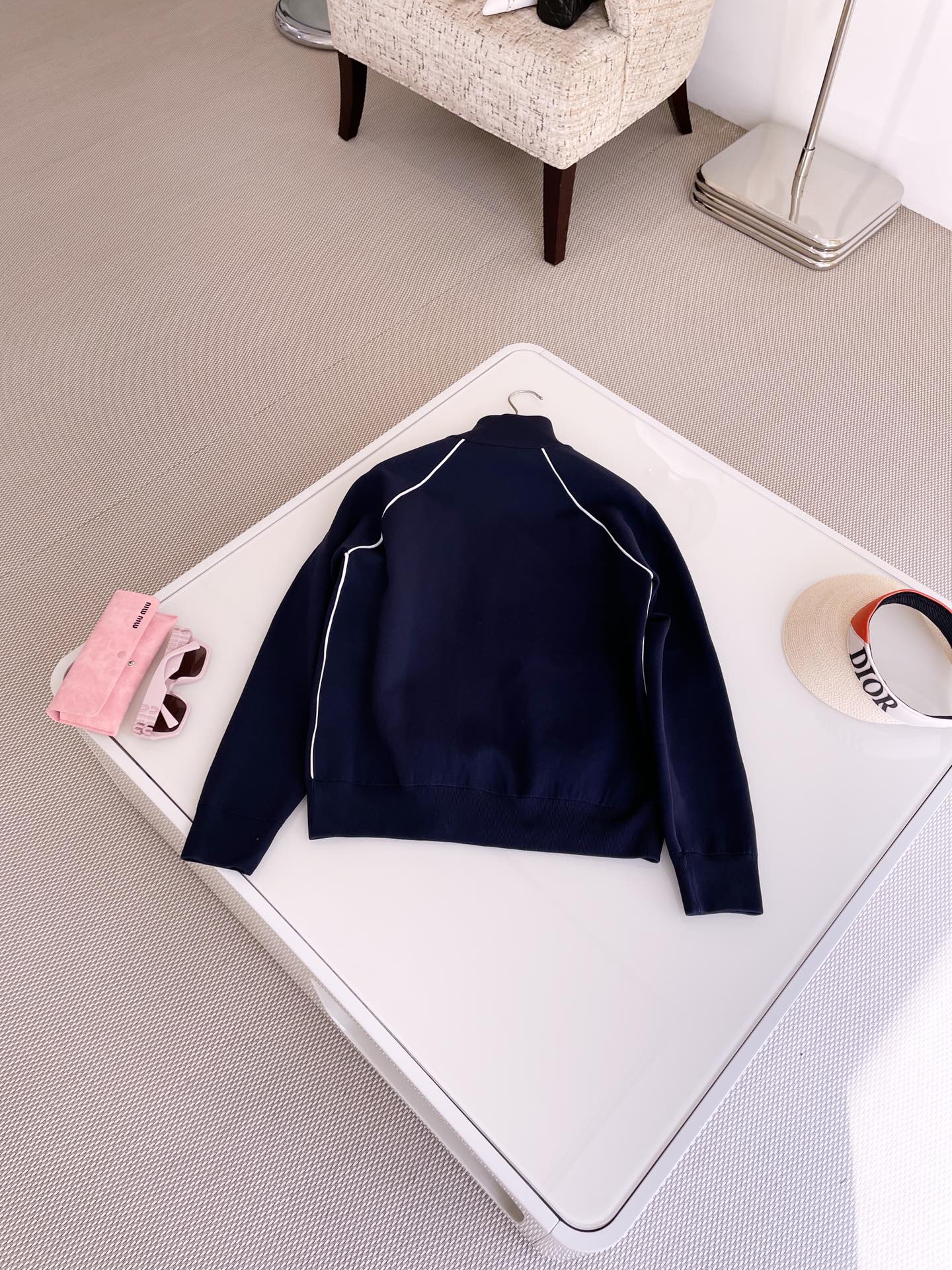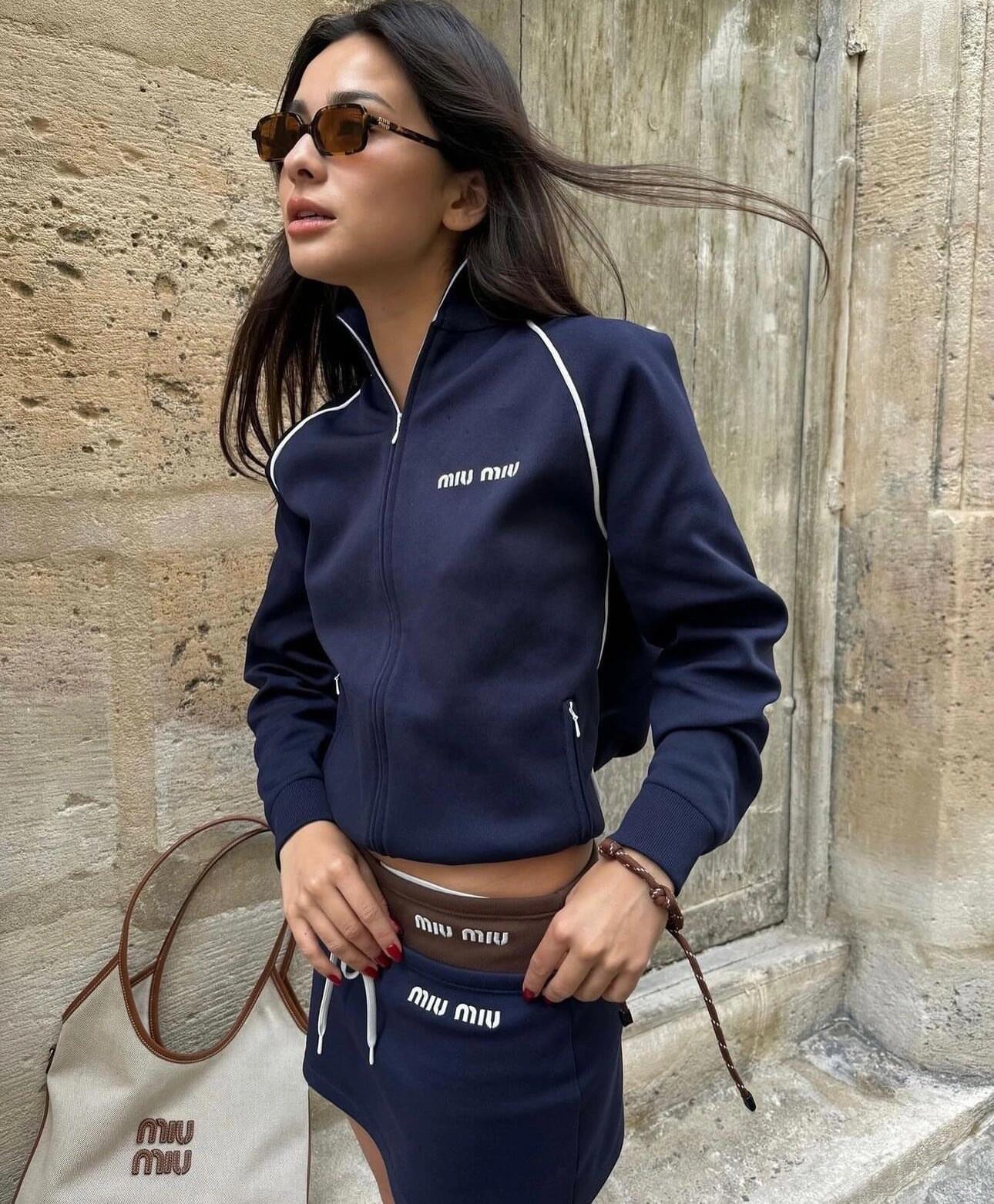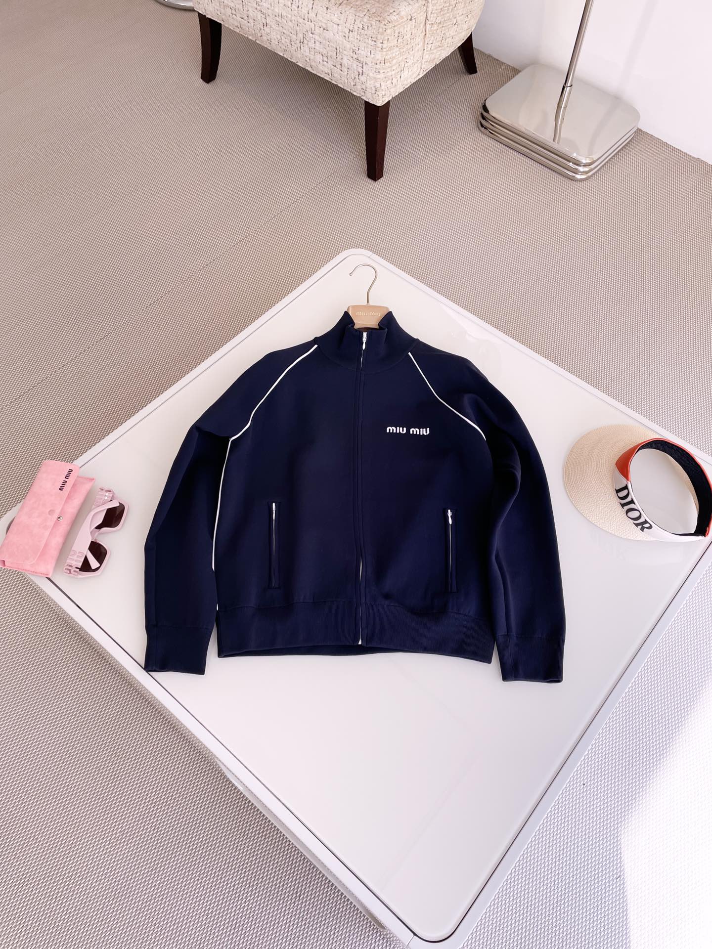 NIGO MiuMiu Women's Spring Letter Logo High Neck Blue Zipper Long Sleeve Fitted Jacket #nigo71693