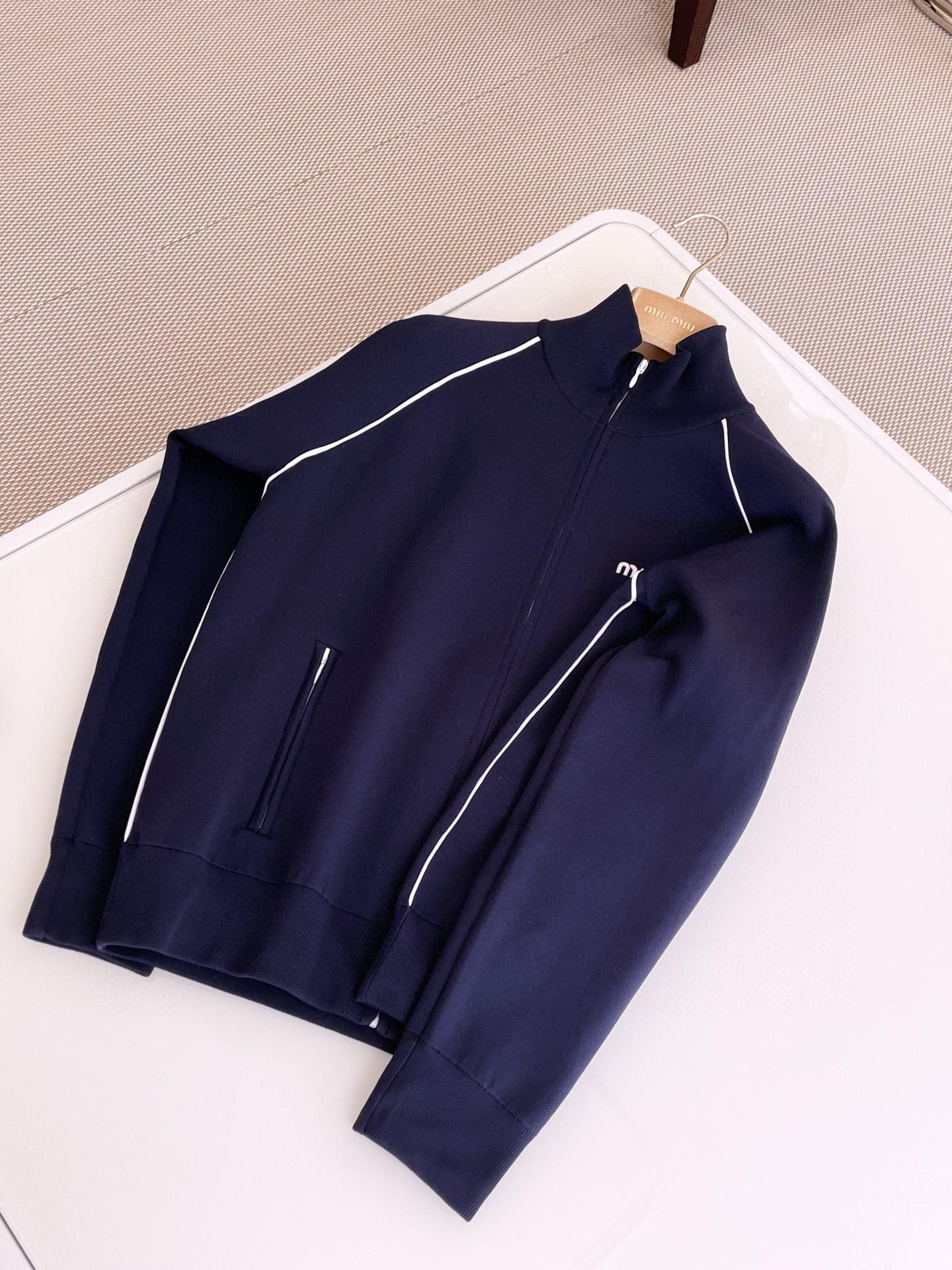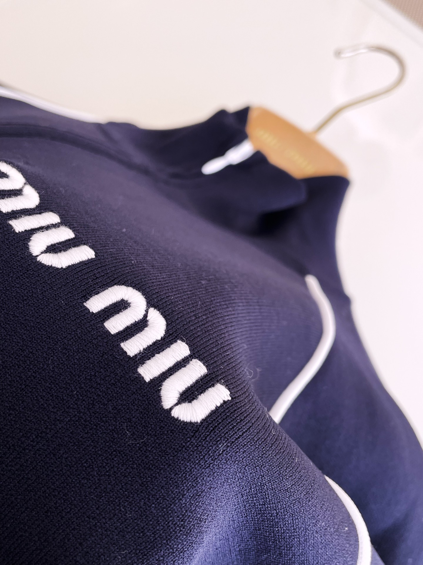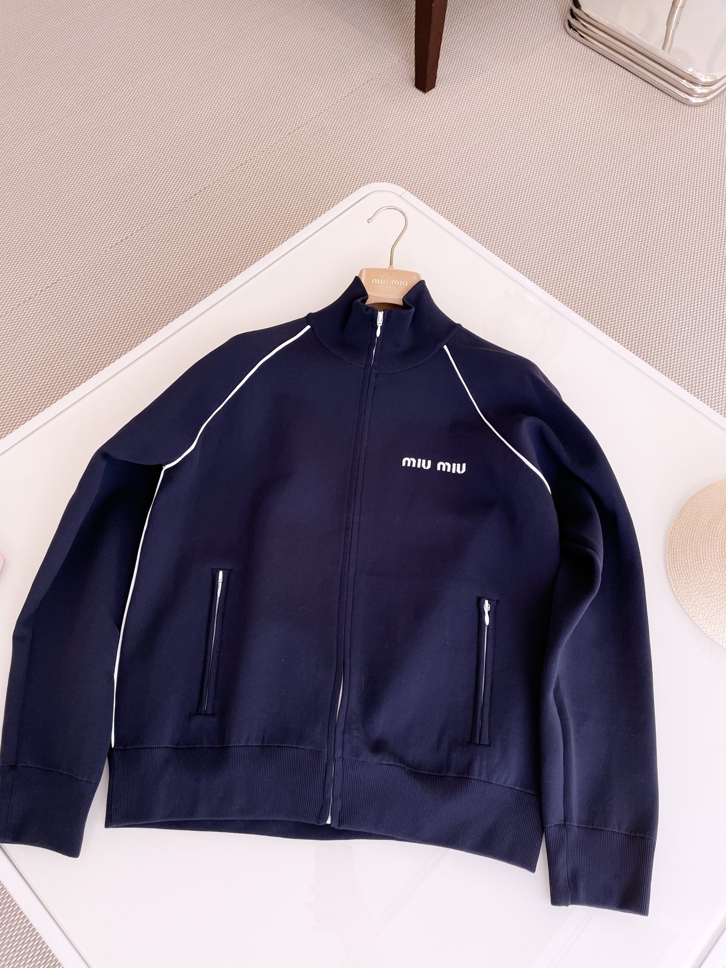 NIGO MiuMiu Women's Spring Letter Logo High Neck Blue Zipper Long Sleeve Fitted Jacket #nigo71693
