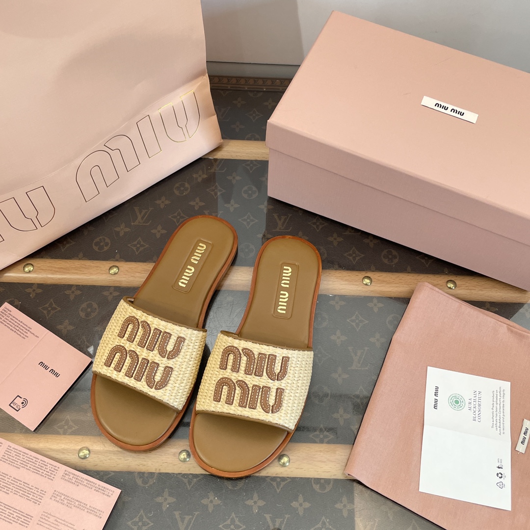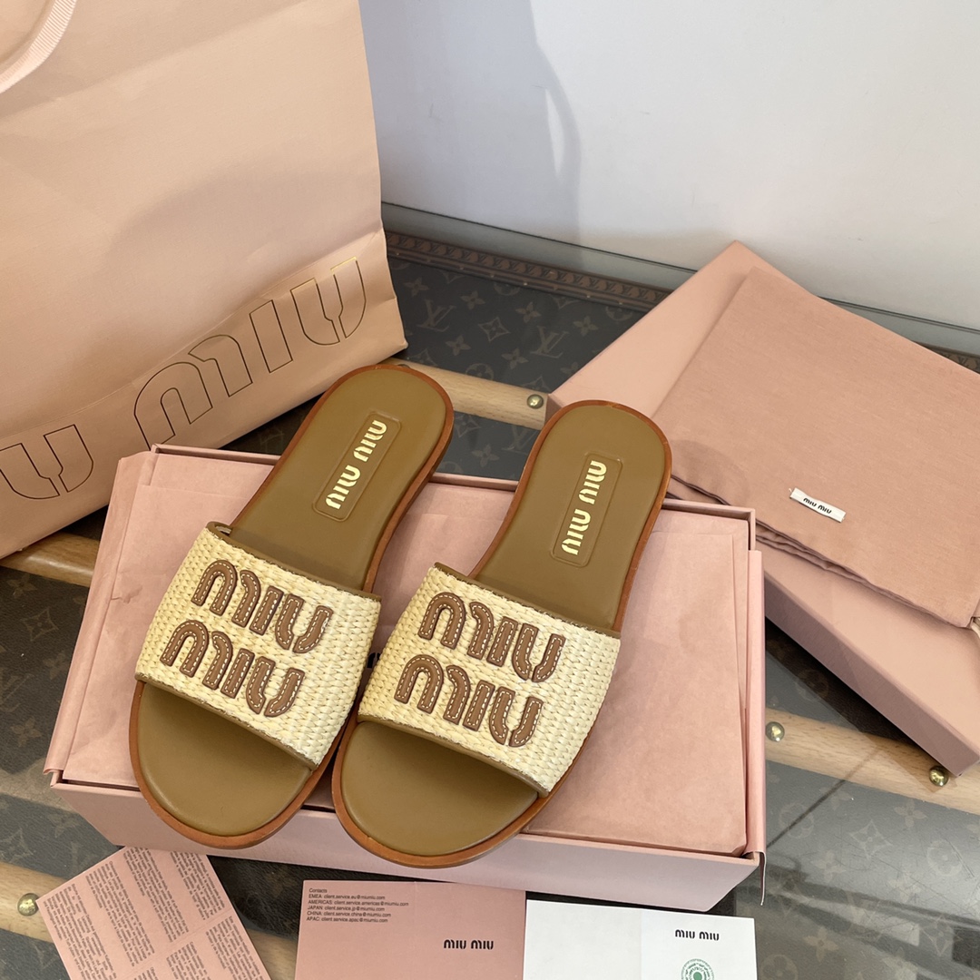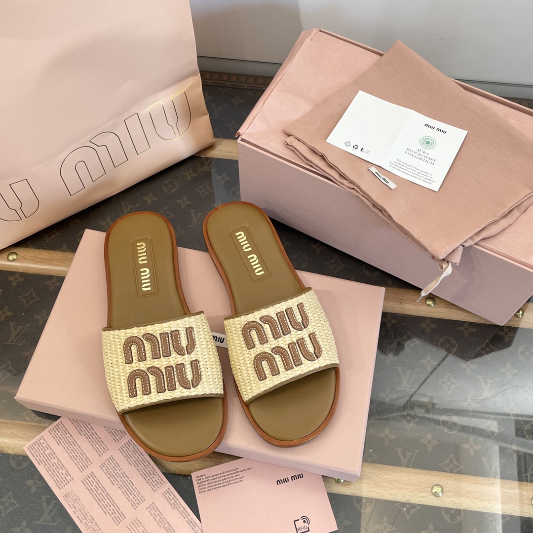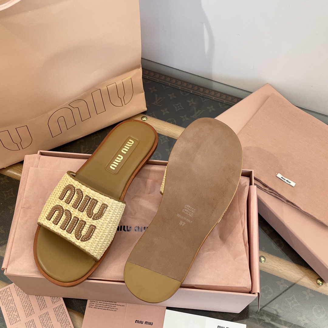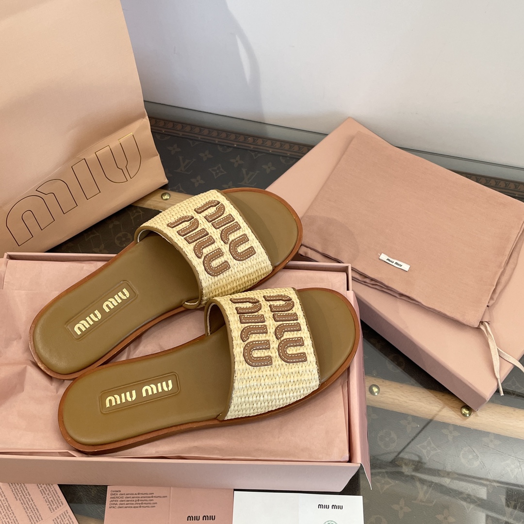 NIGO MiuMiu Women's Spring/Summer/Fall Logo Raffia Woven Leather Flat Sandals Casual Slippers Shoes #nigo81553