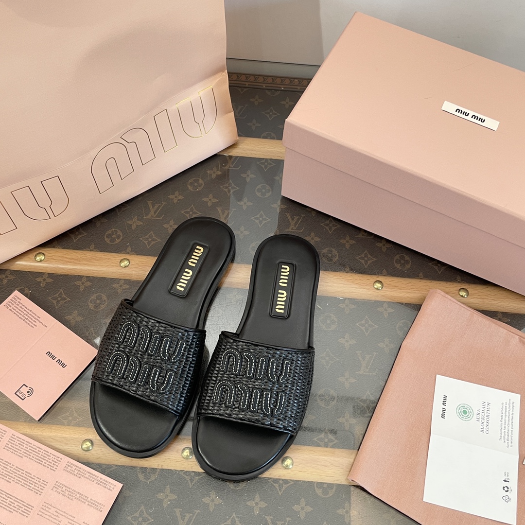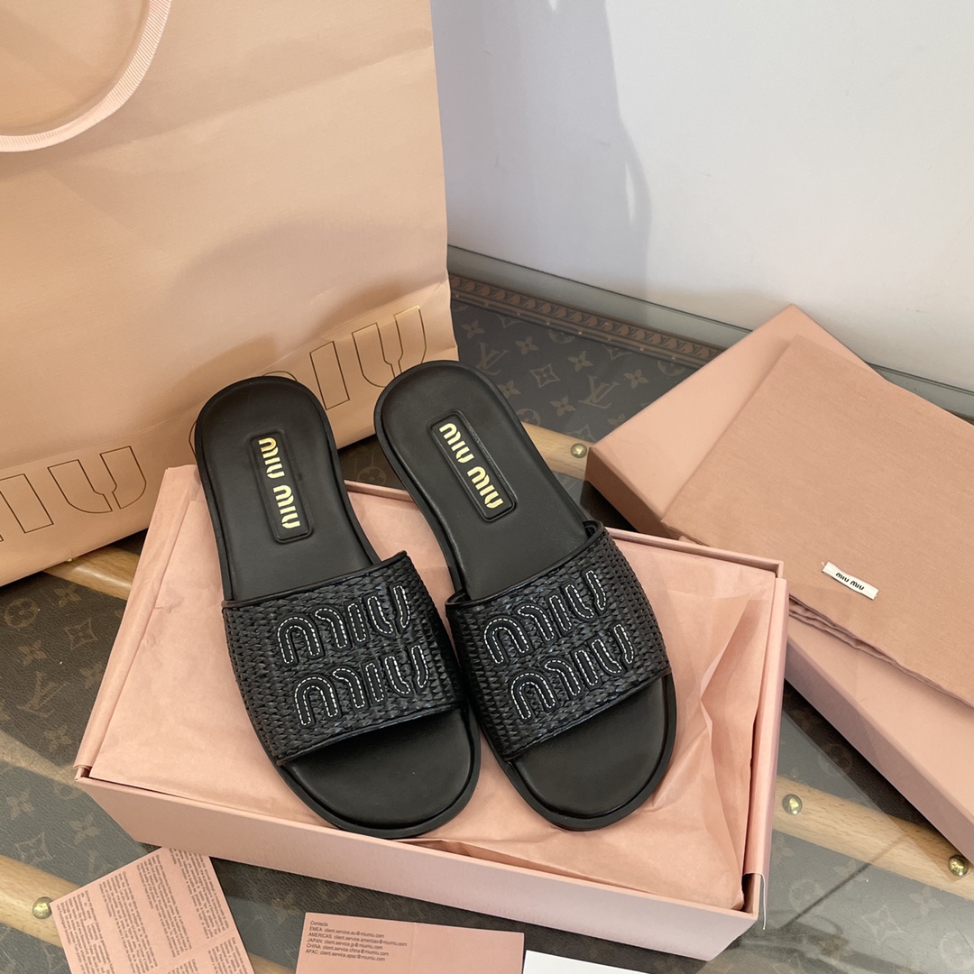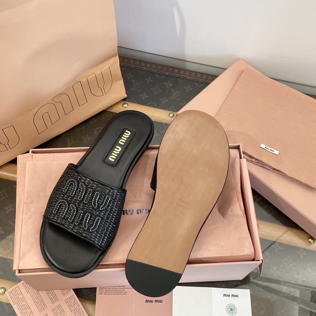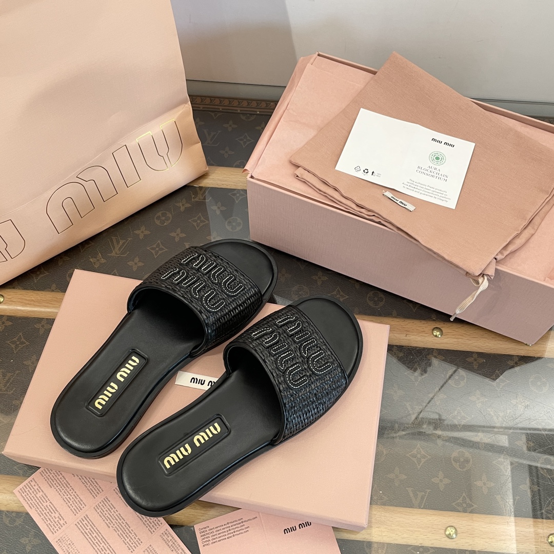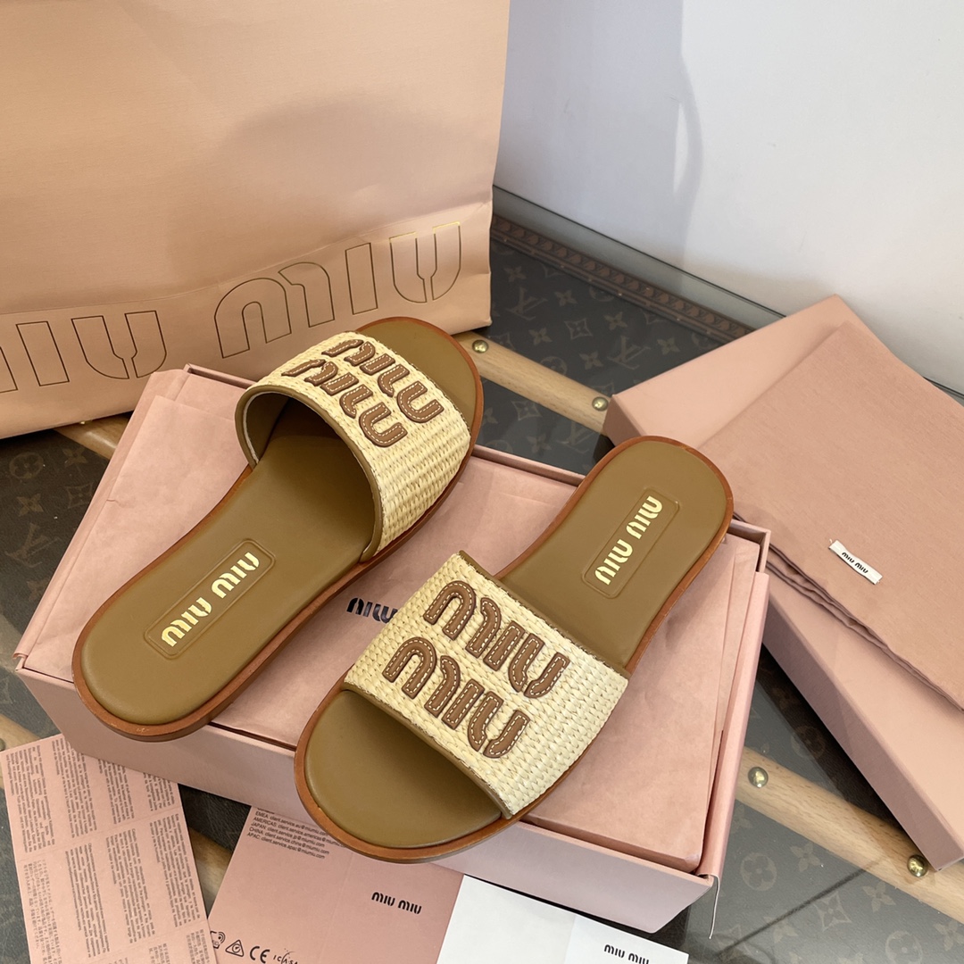 NIGO MiuMiu Women's Spring/Summer/Fall Logo Raffia Woven Leather Flat Sandals Casual Slippers Shoes #nigo81553