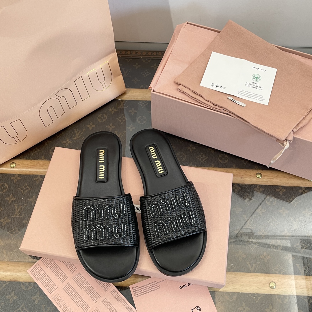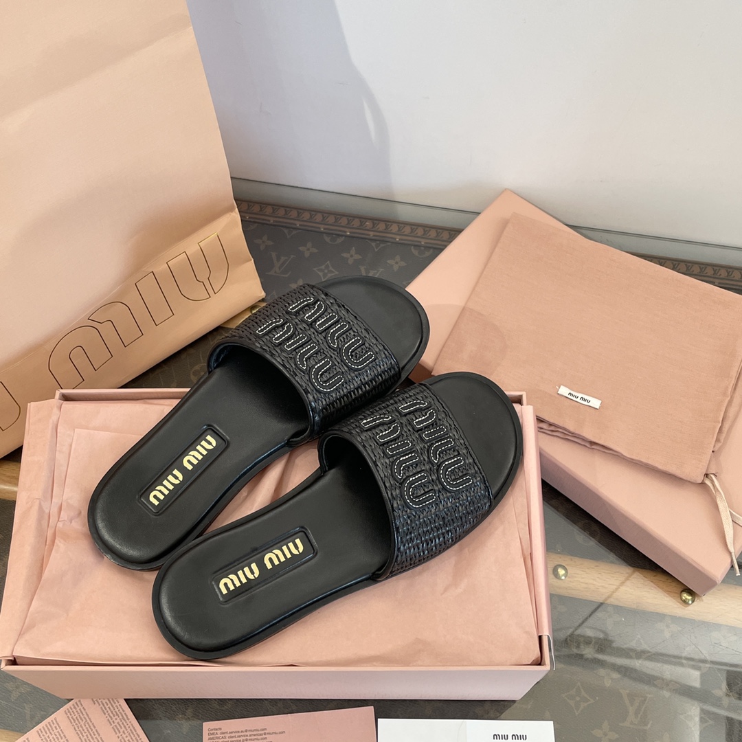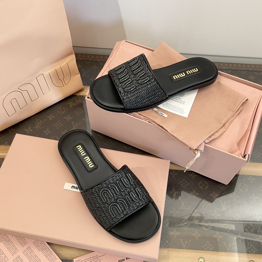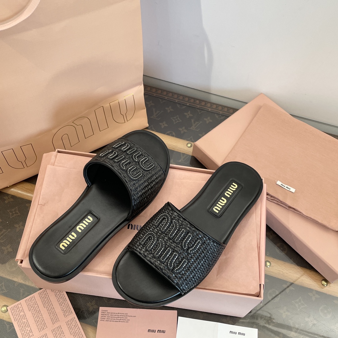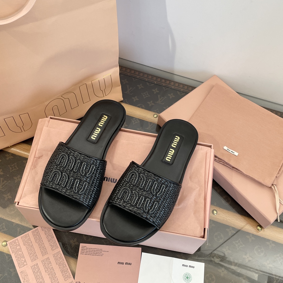 NIGO MiuMiu Women's Spring/Summer/Fall Logo Raffia Woven Leather Flat Sandals Casual Slippers Shoes #nigo81553