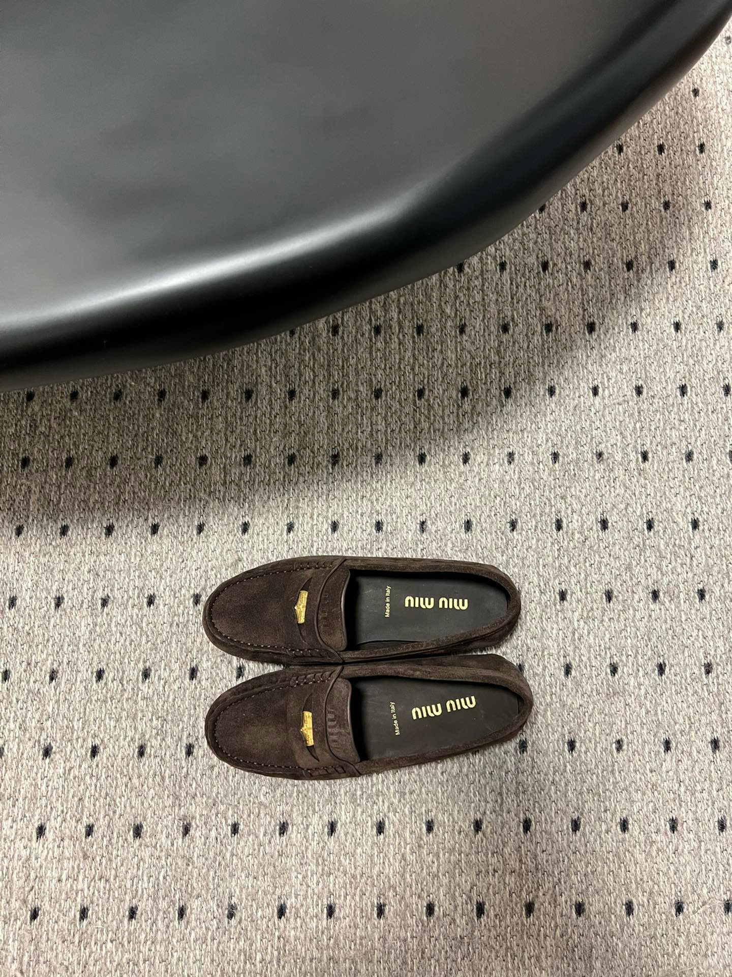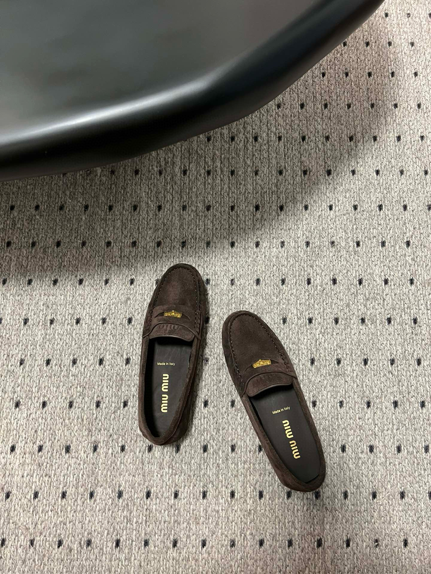 NIGO MiuMiu Women's Suede Leather Low Top Flat Loafers Shoes #nigo97395
