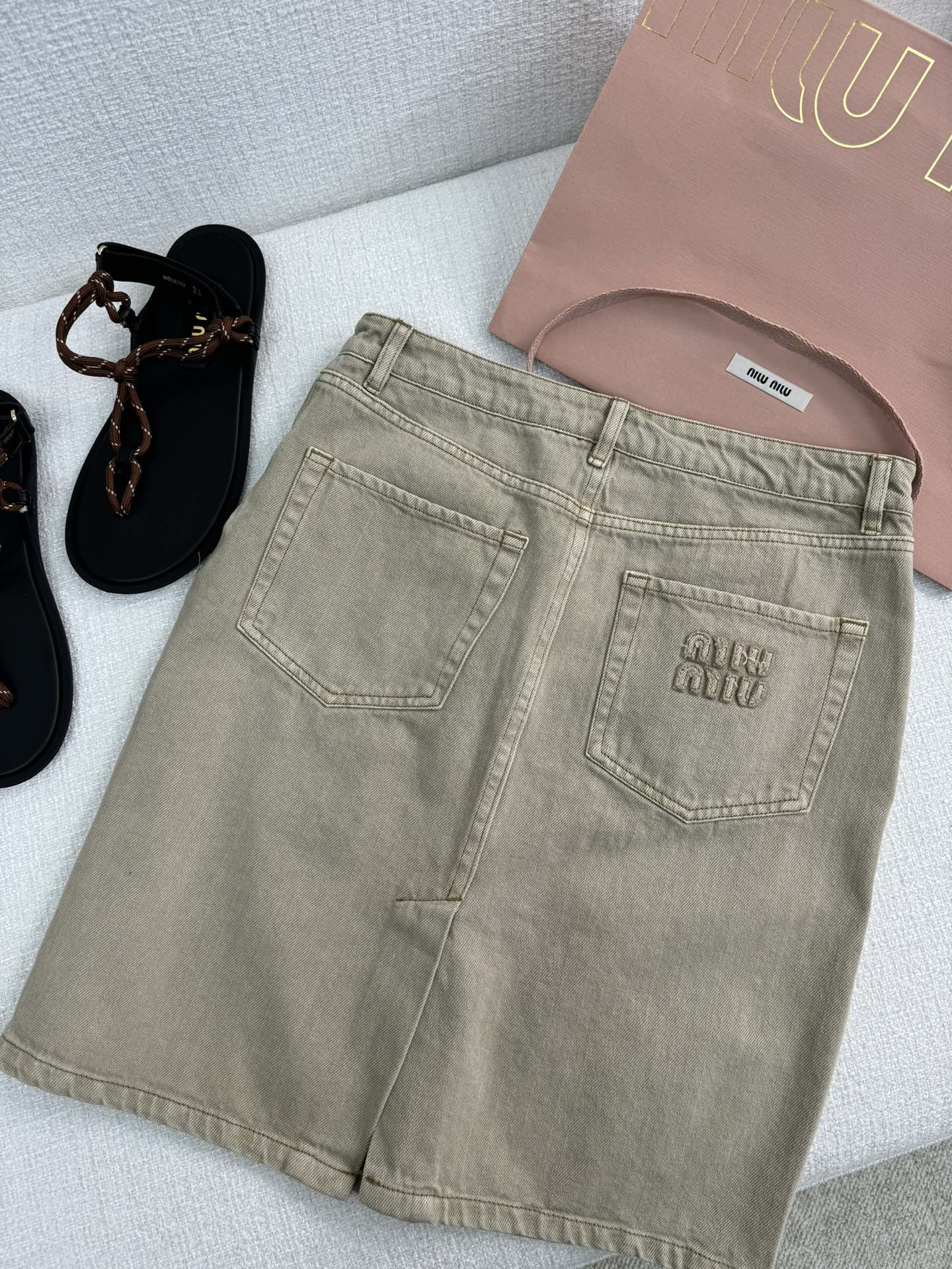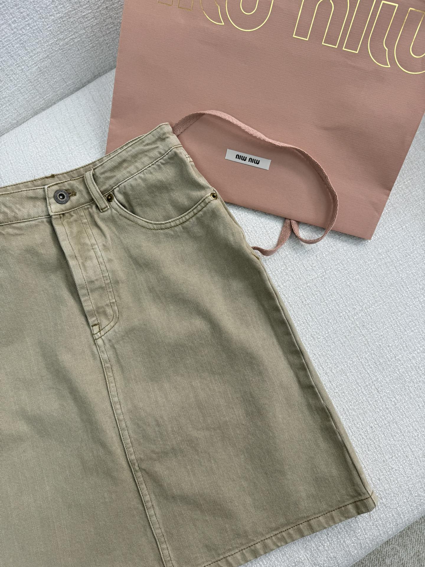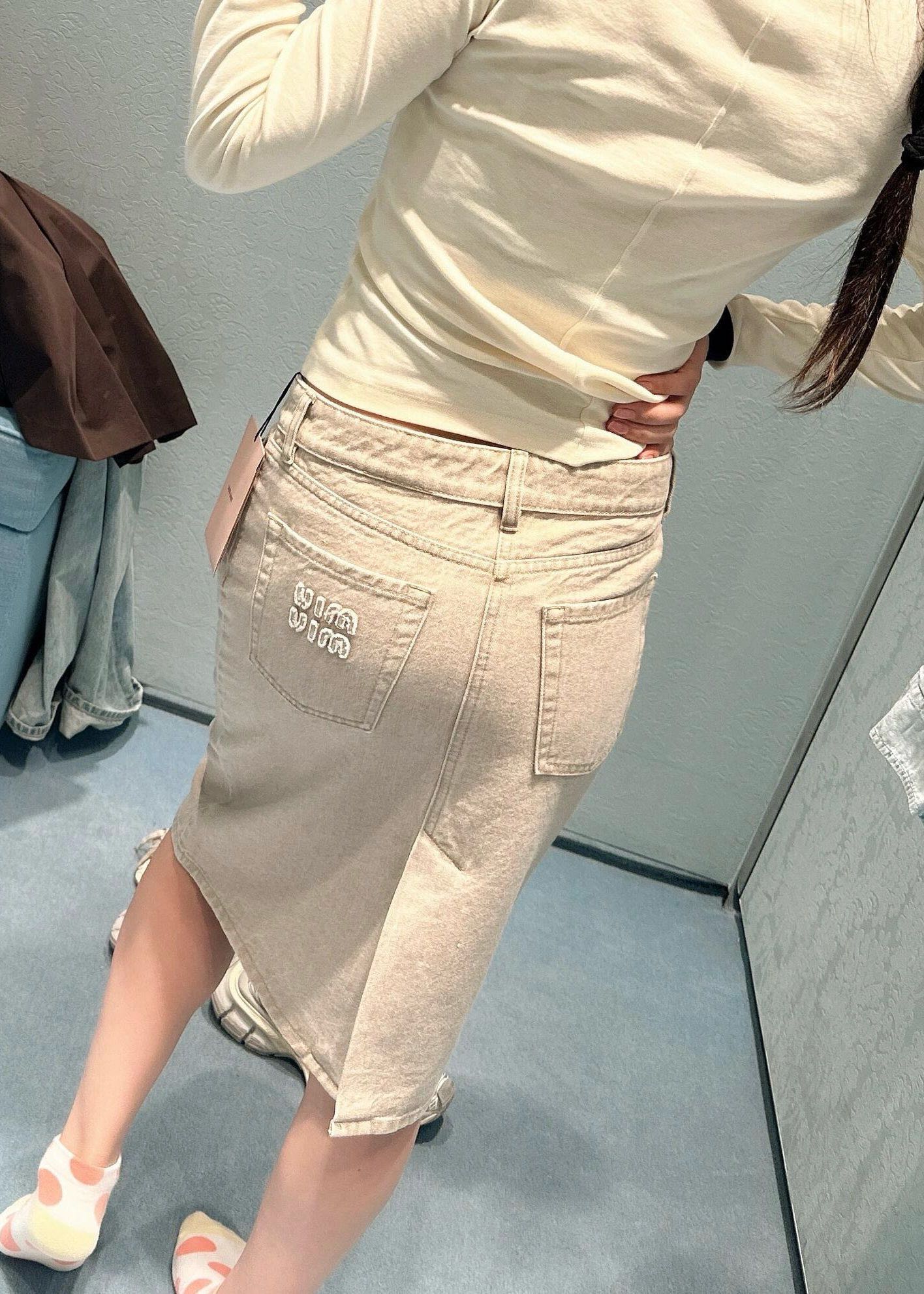 NIGO MiuMiu Women's Summer Beige Aged Effect Monogrammed Embroidered Half-body Skirt #nigo72439