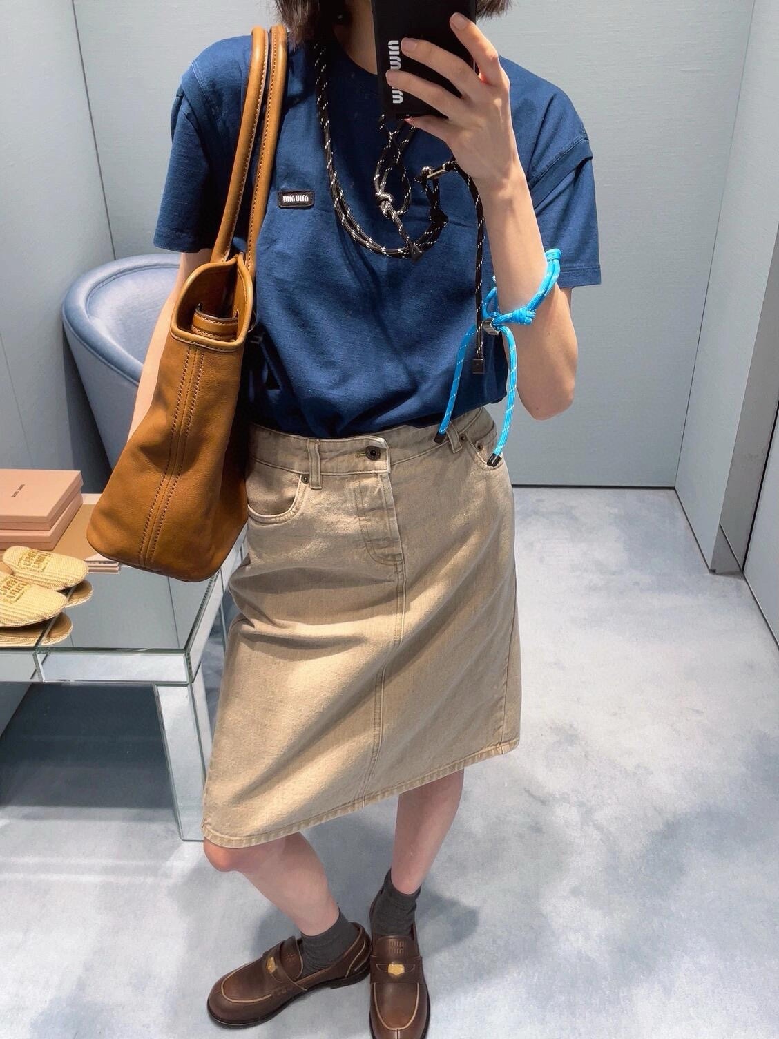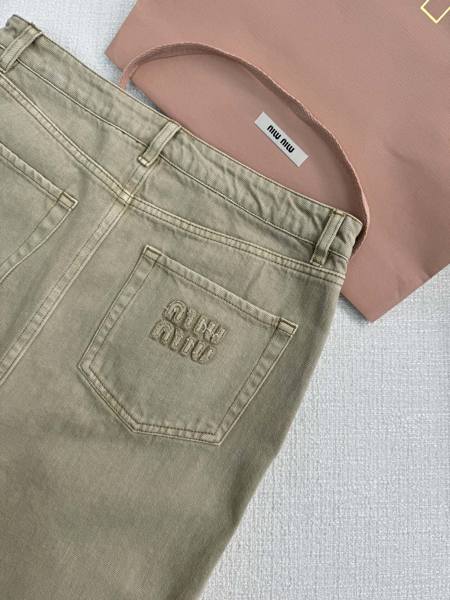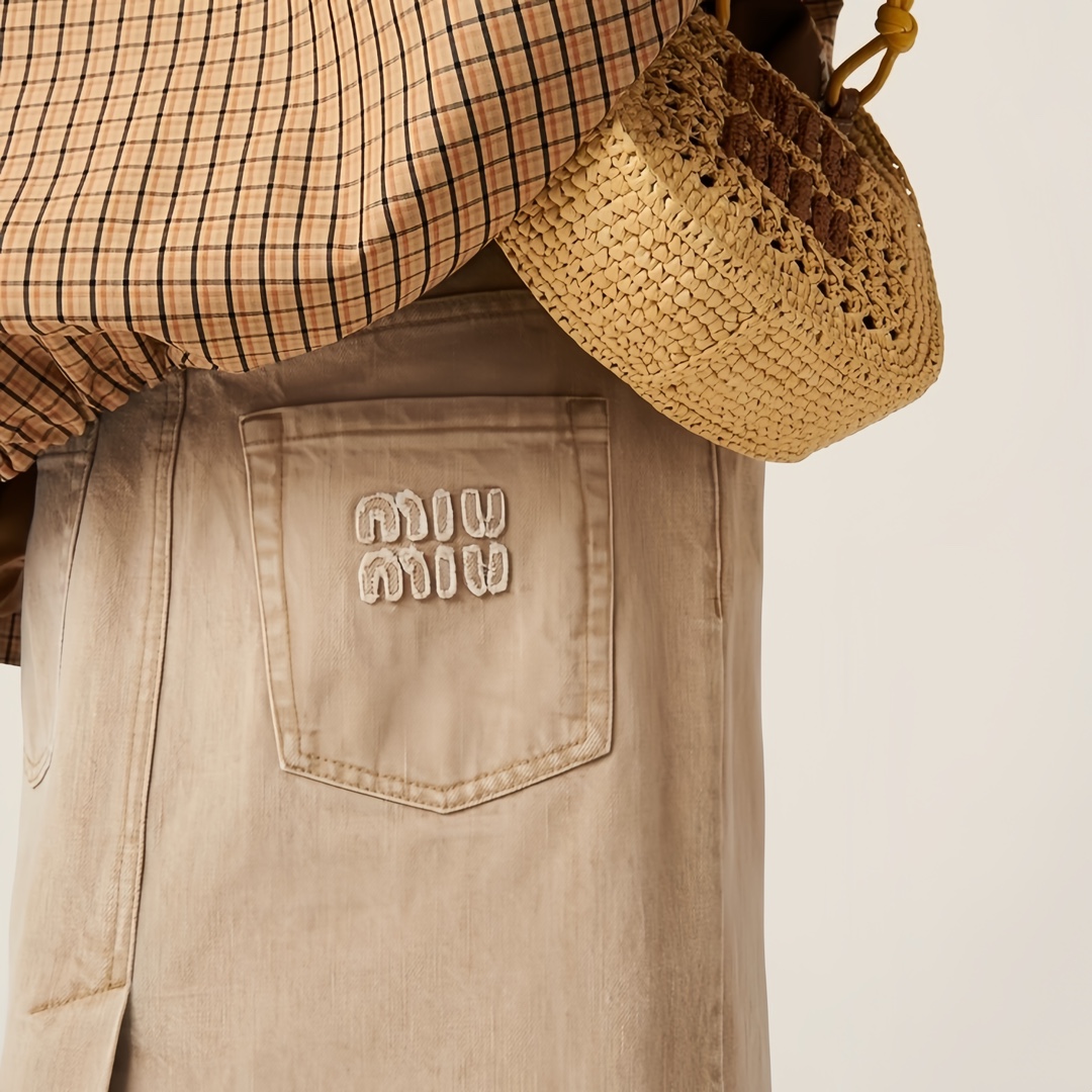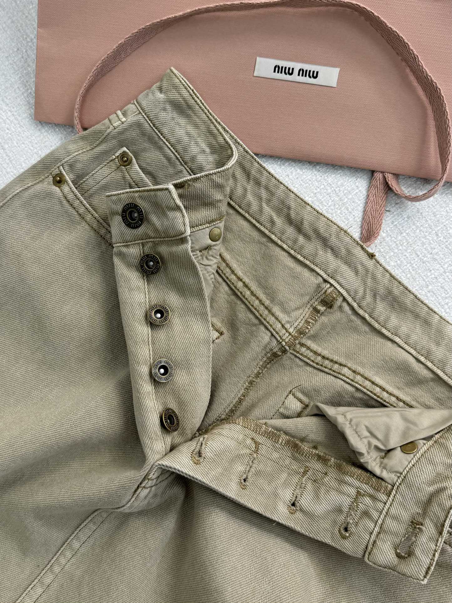 NIGO MiuMiu Women's Summer Beige Aged Effect Monogrammed Embroidered Half-body Skirt #nigo72439