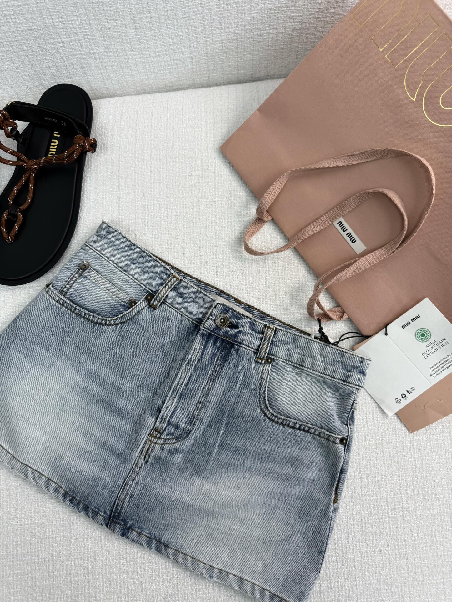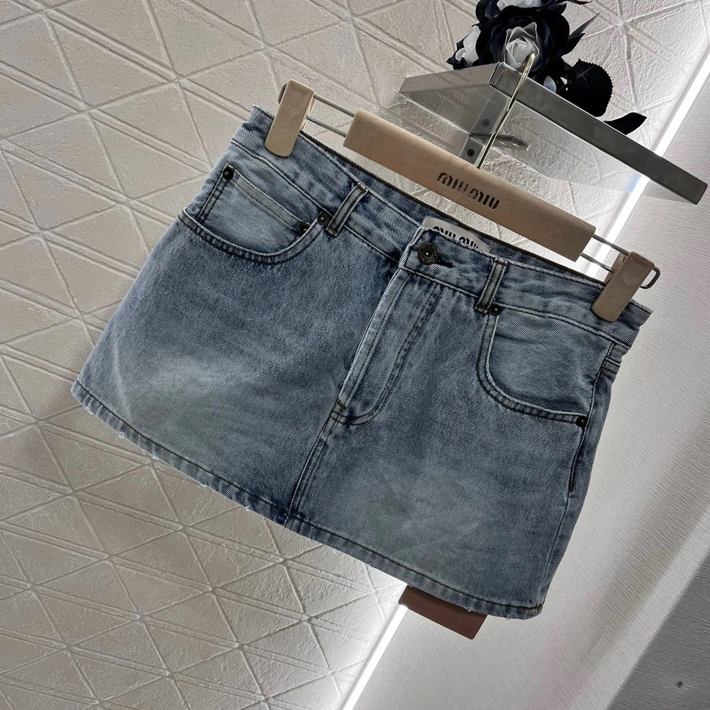 NIGO MiuMiu Women's Summer Blue Letter Logo Embroidered Logo Midi Denim Skirt #nigo73418
