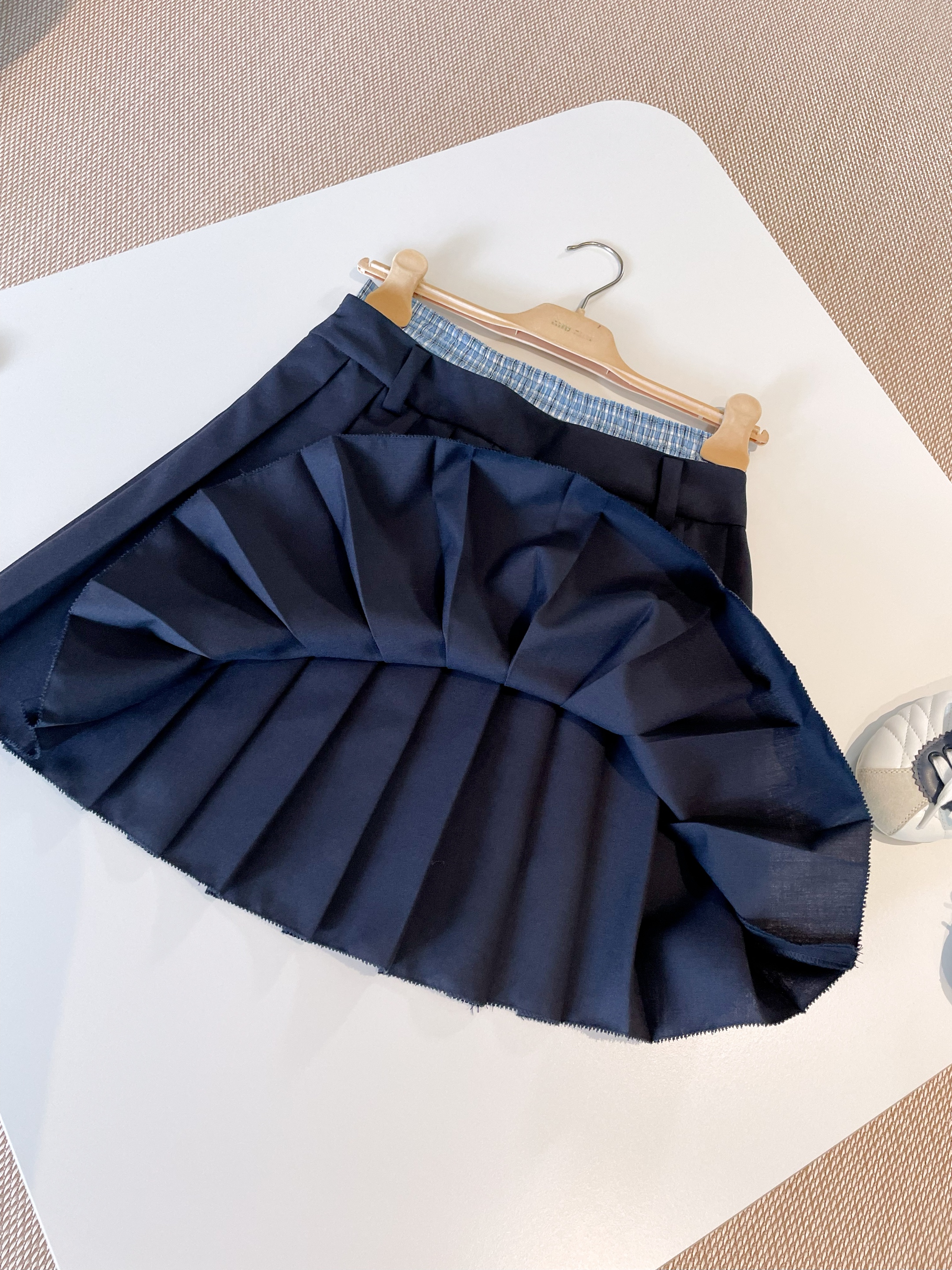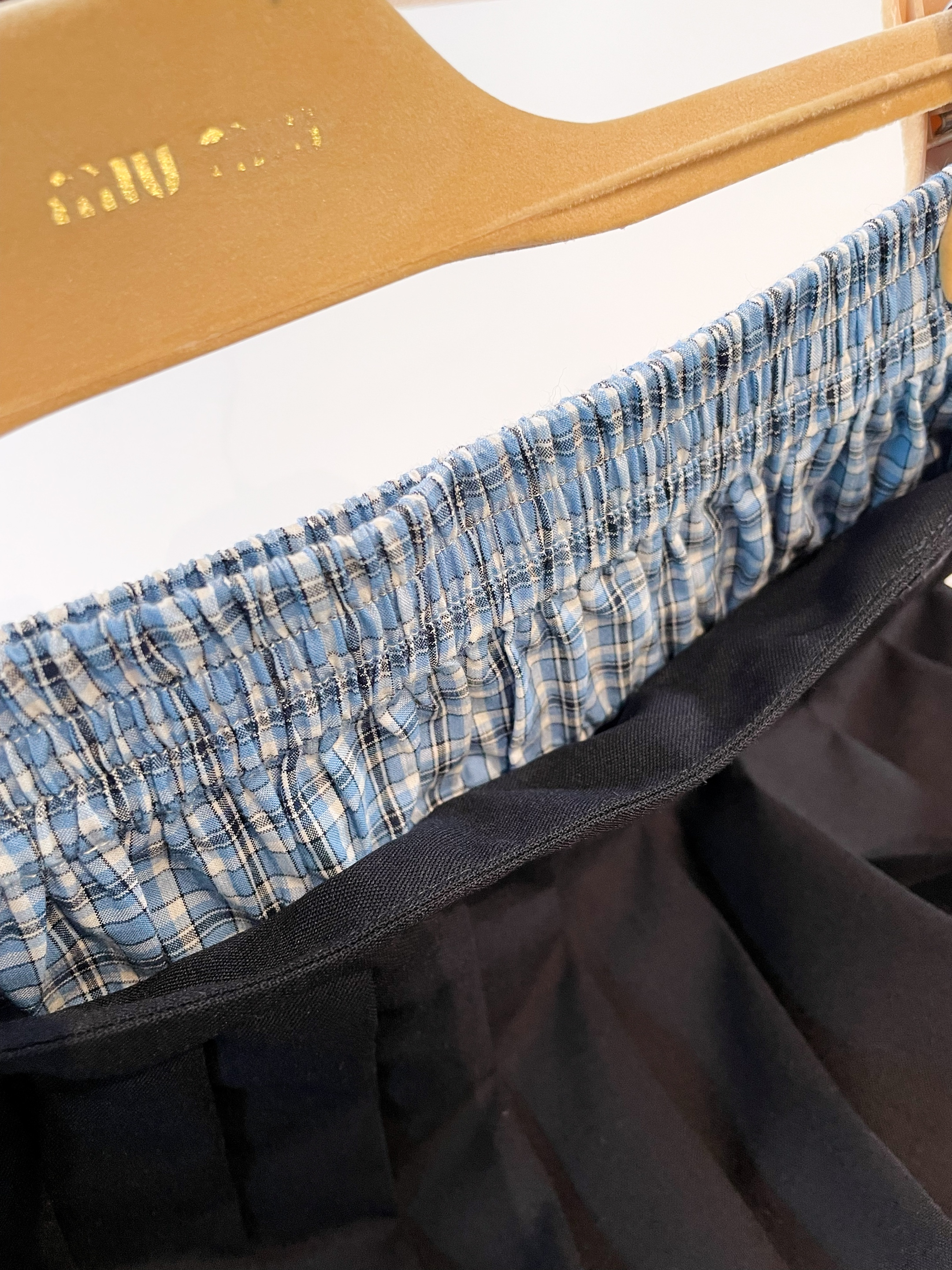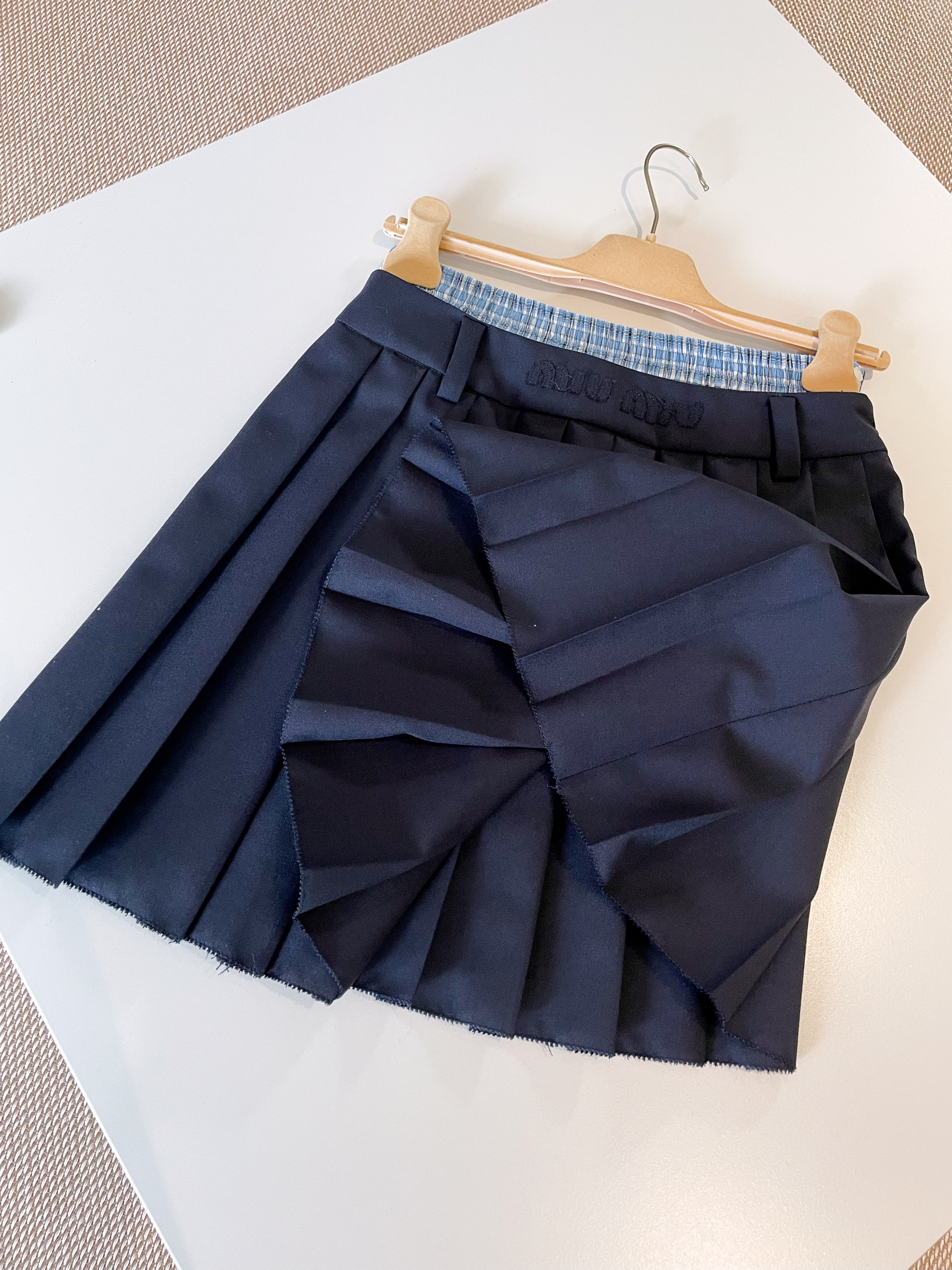 NIGO MiuMiu Women's Summer Classic Deep Blue Pleated Skirt - Academy Style Short Dress with Checkerboard Waistband & Delicate Ruffles #nigo75715