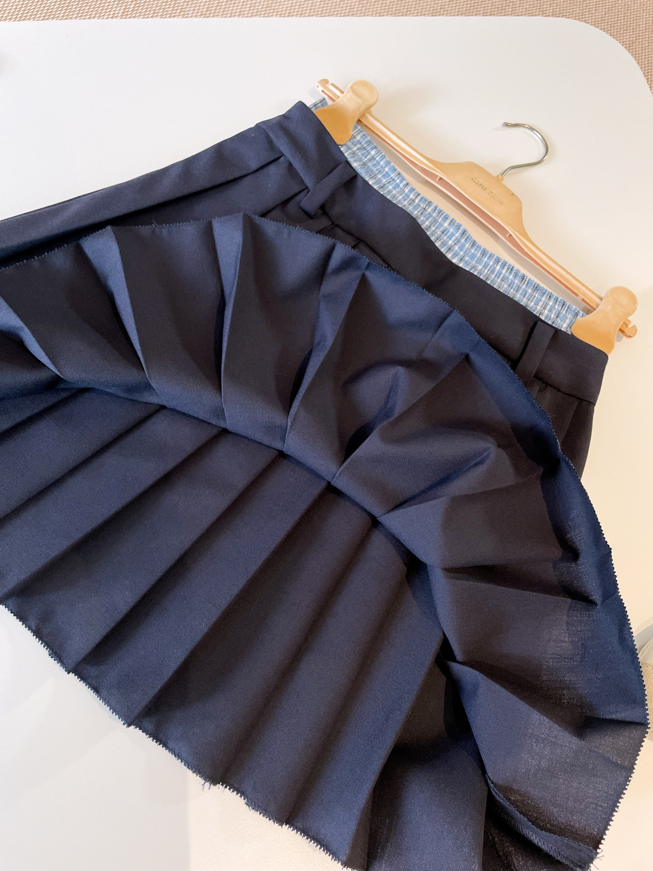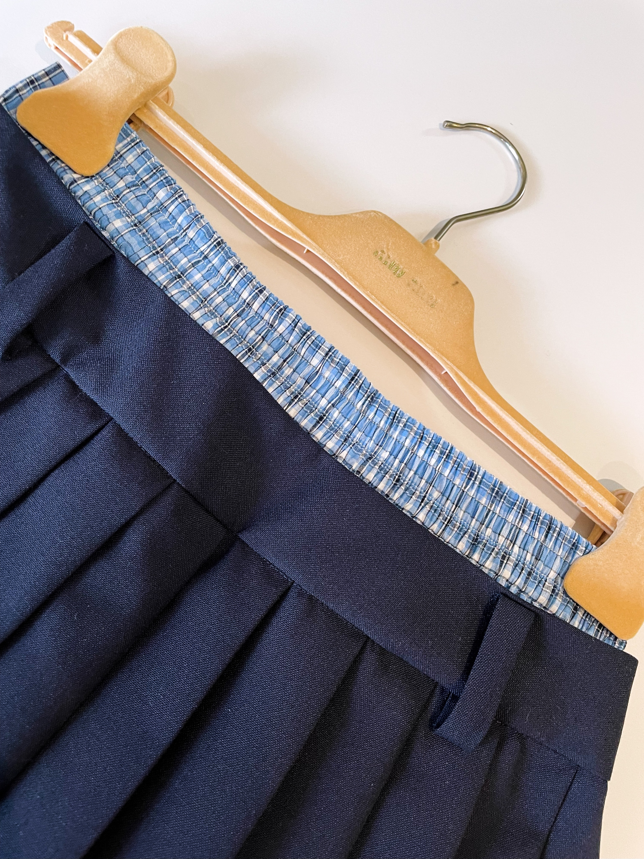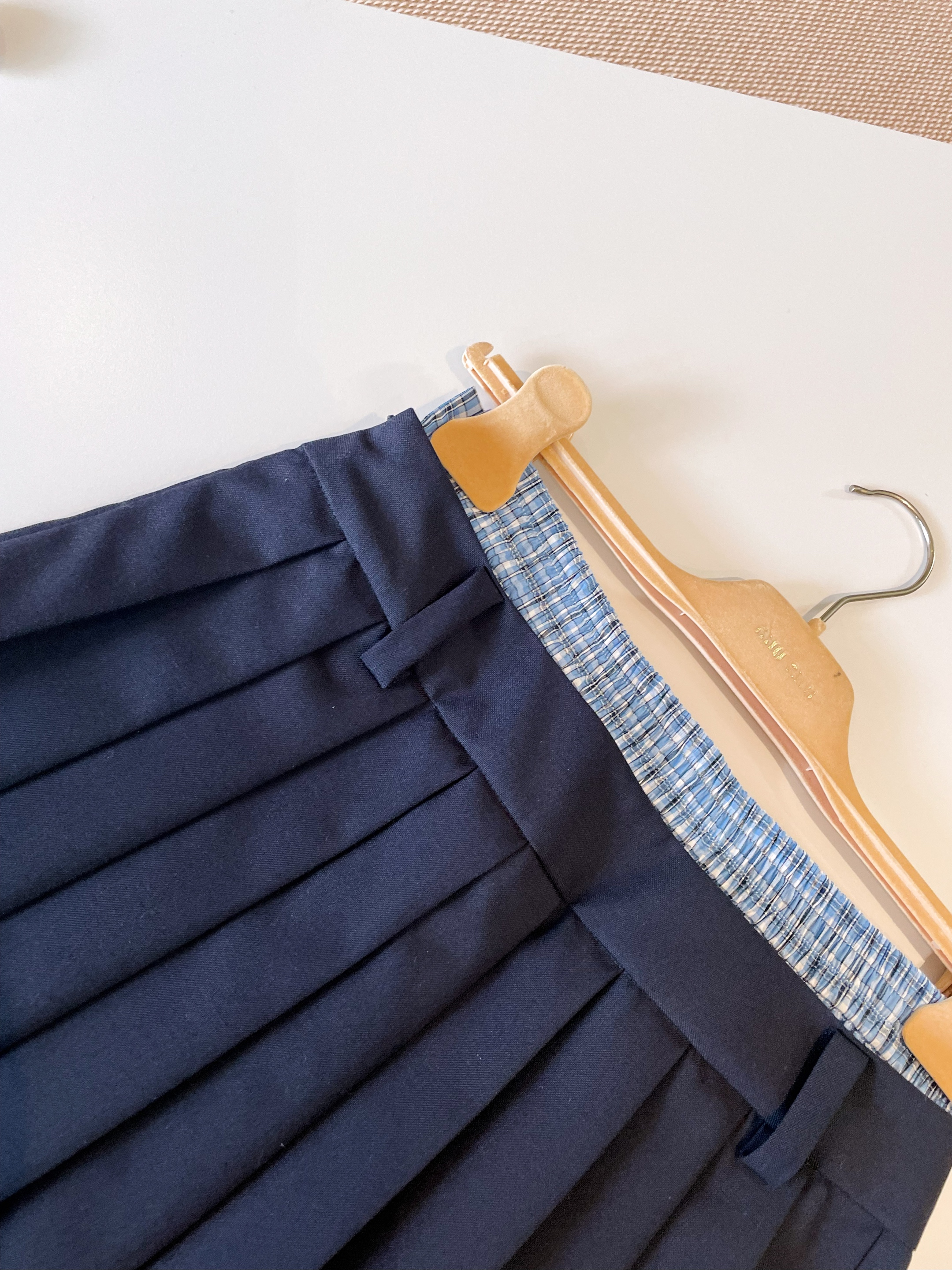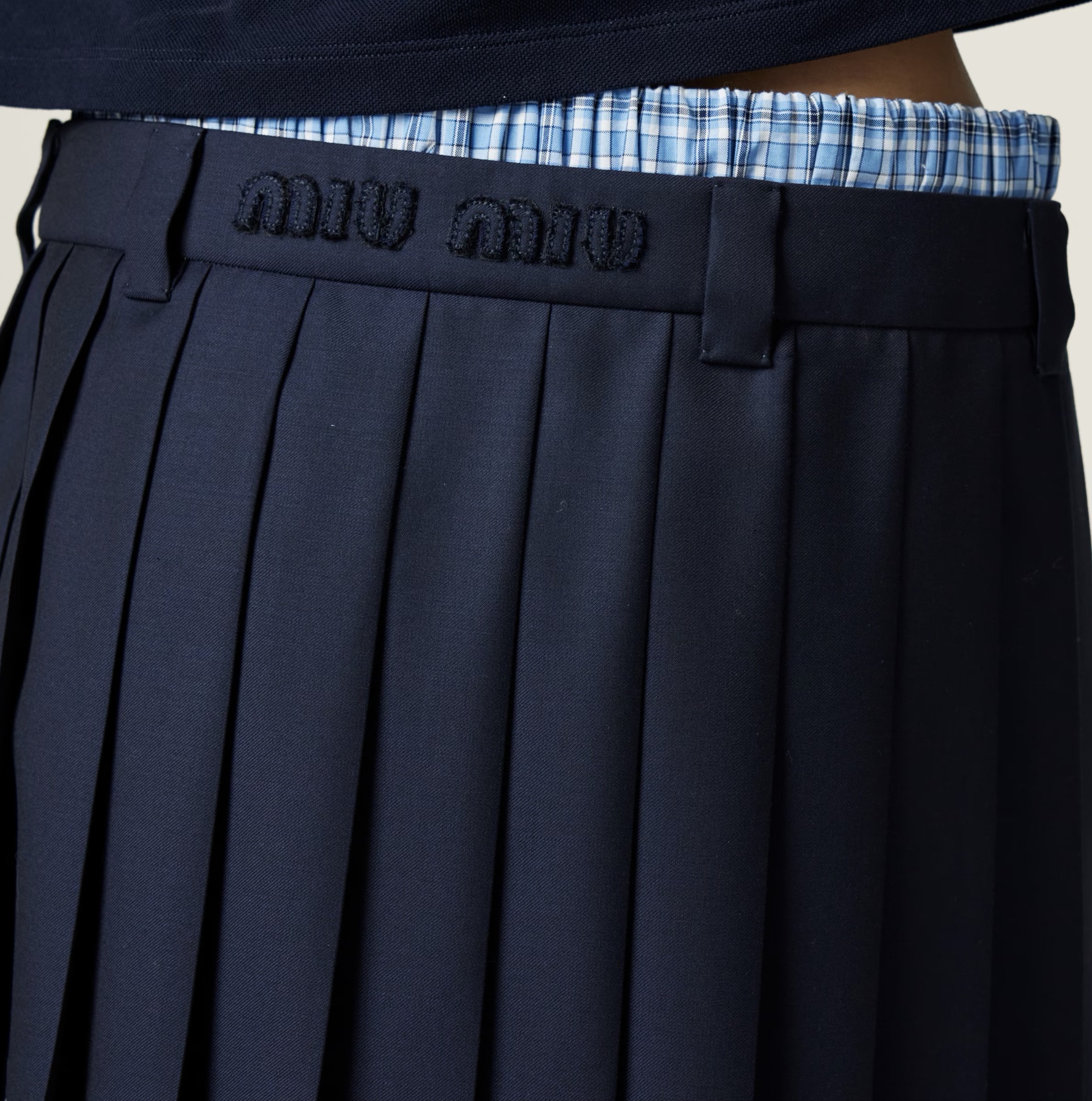 NIGO MiuMiu Women's Summer Classic Deep Blue Pleated Skirt - Academy Style Short Dress with Checkerboard Waistband & Delicate Ruffles #nigo75715