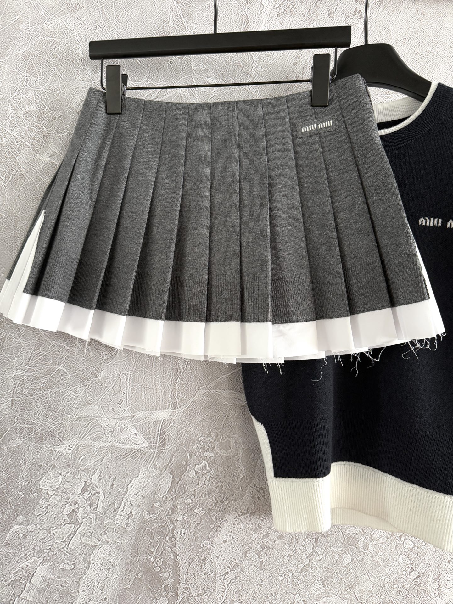 NIGO MiuMiu Women's Summer Colour Block Wool Knit Pleated Short Skirt #nigo76885