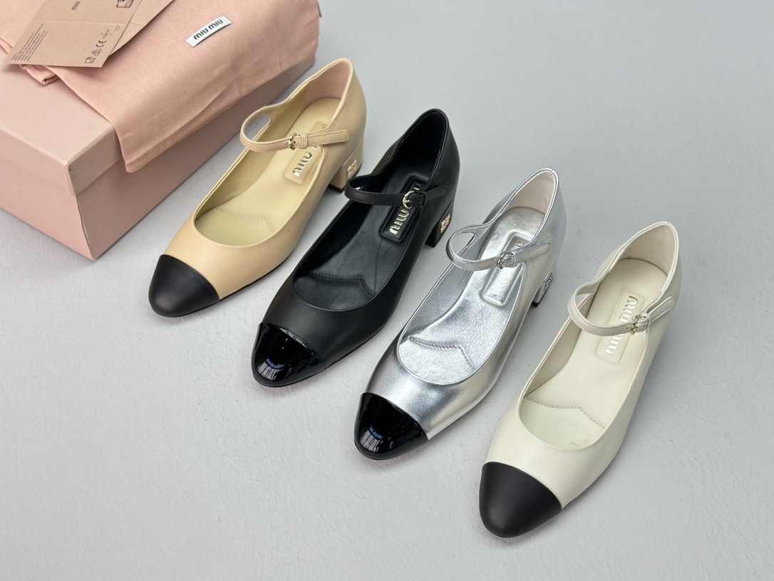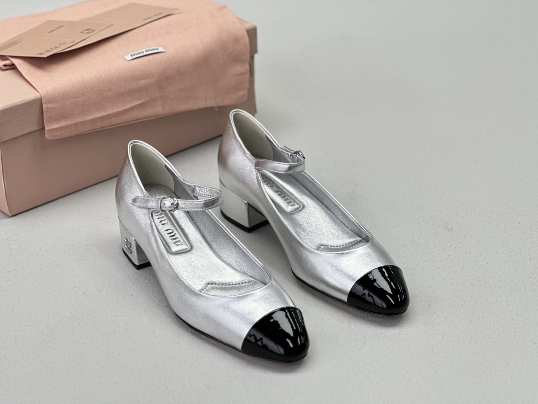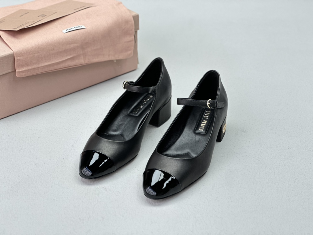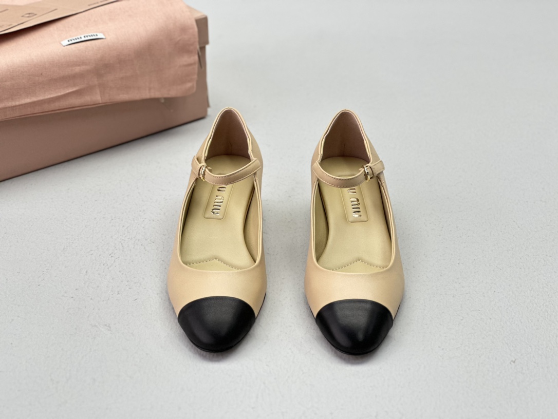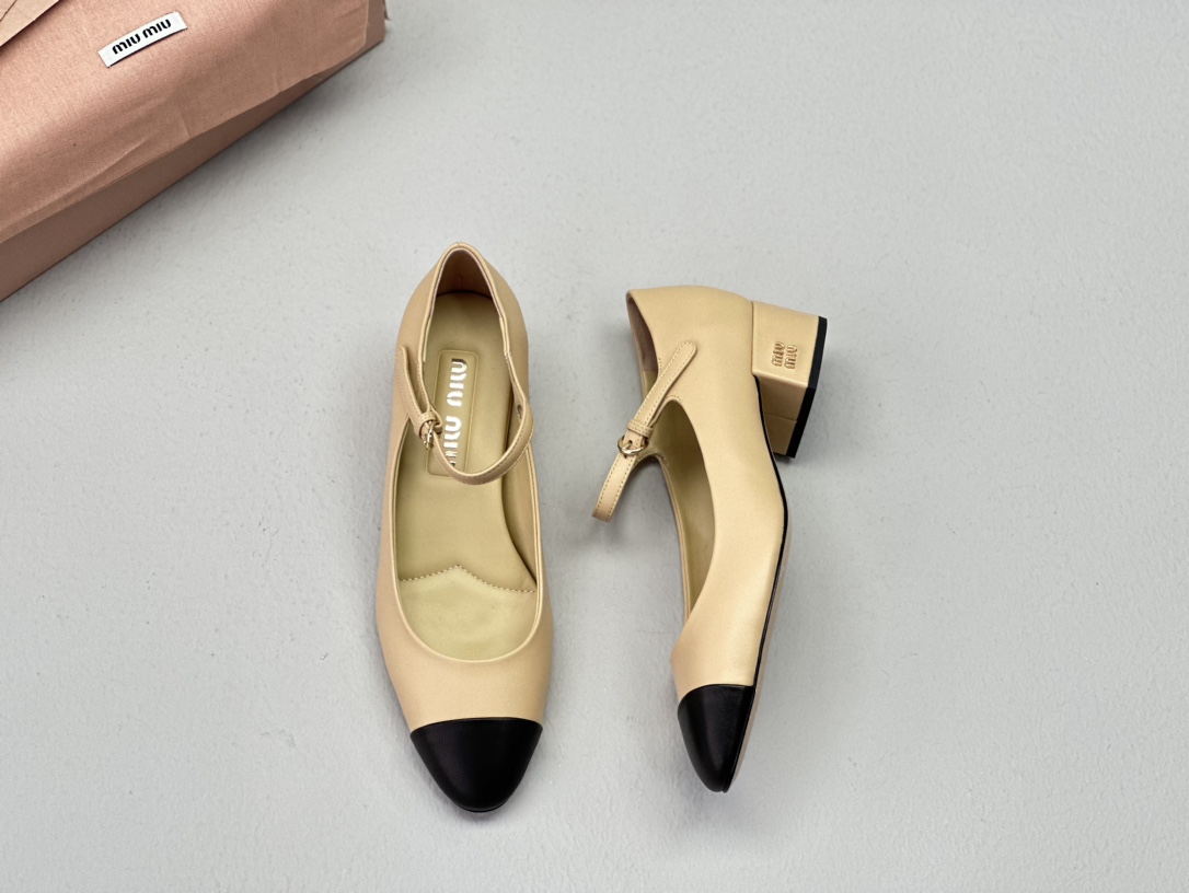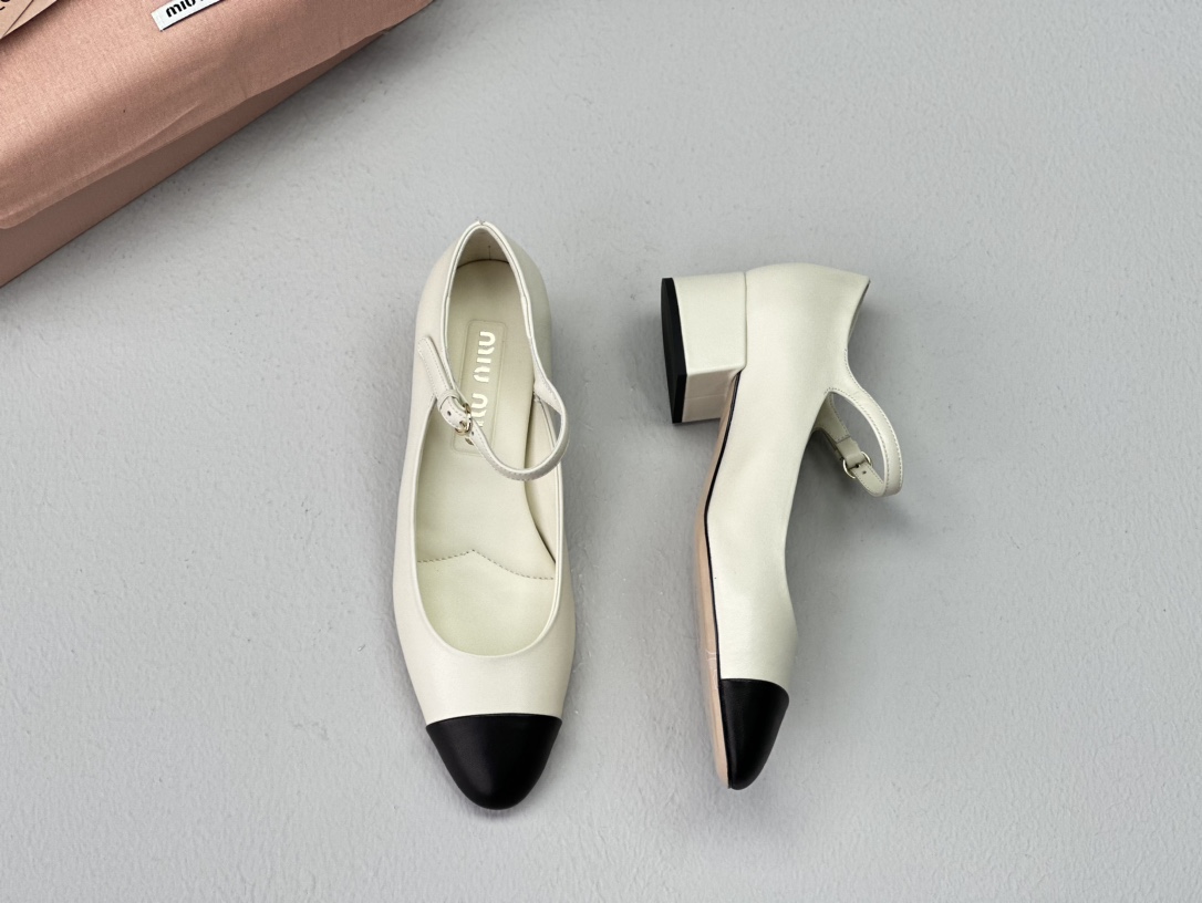 NIGO MiuMiu Women's Summer Colour Blocking Shallow Mouth Buckle Chunky Heel Leather High Heels Shoes #nigo99484