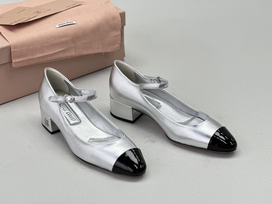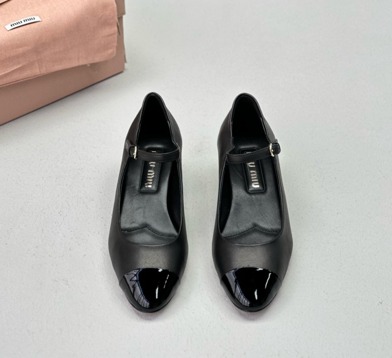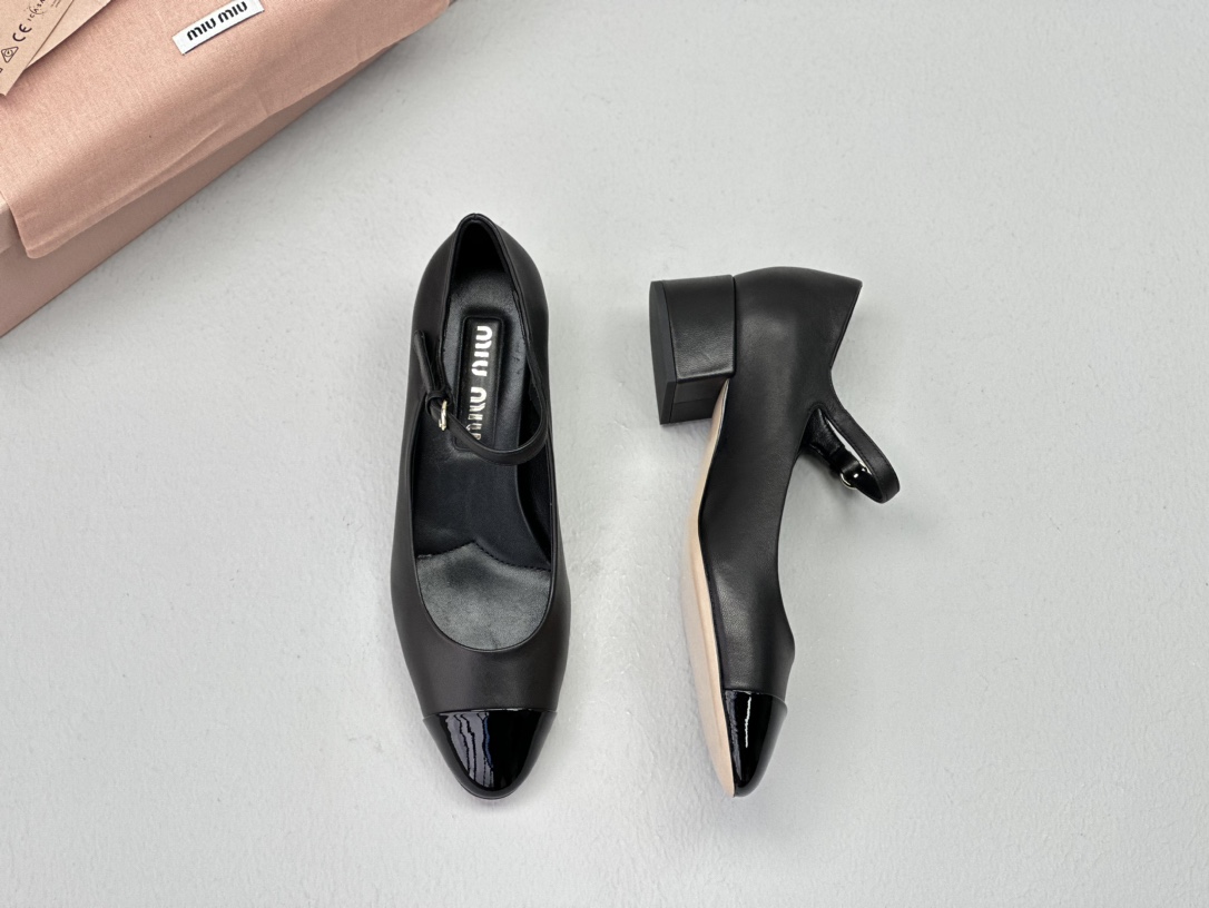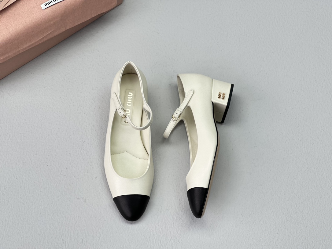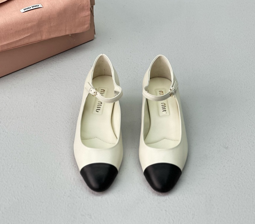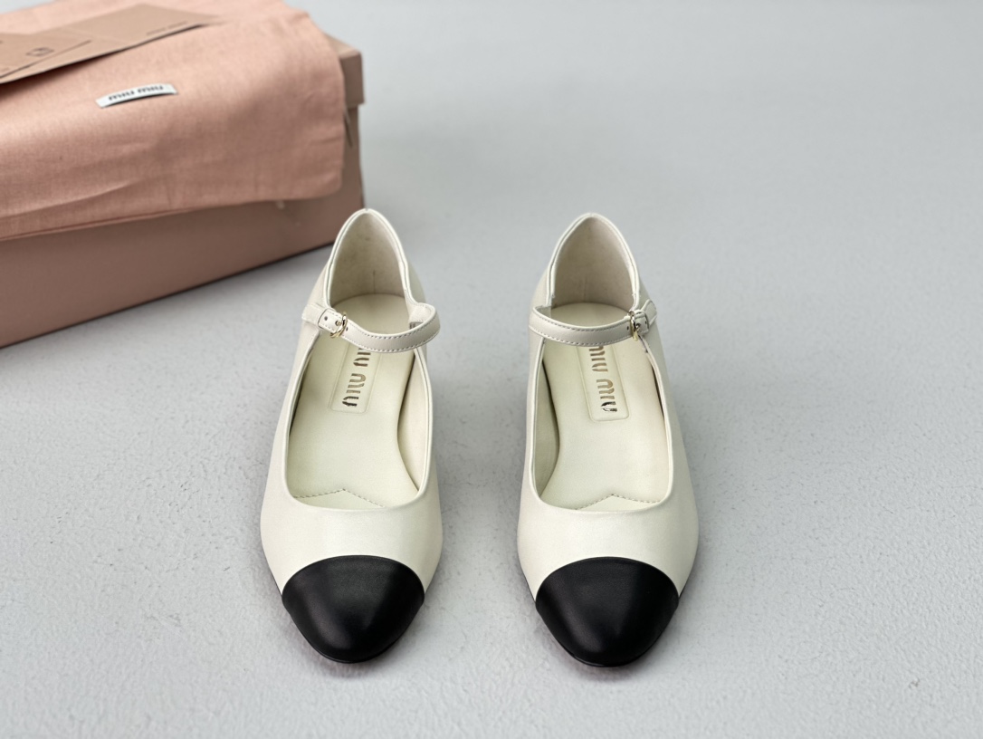 NIGO MiuMiu Women's Summer Colour Blocking Shallow Mouth Buckle Chunky Heel Leather High Heels Shoes #nigo99484