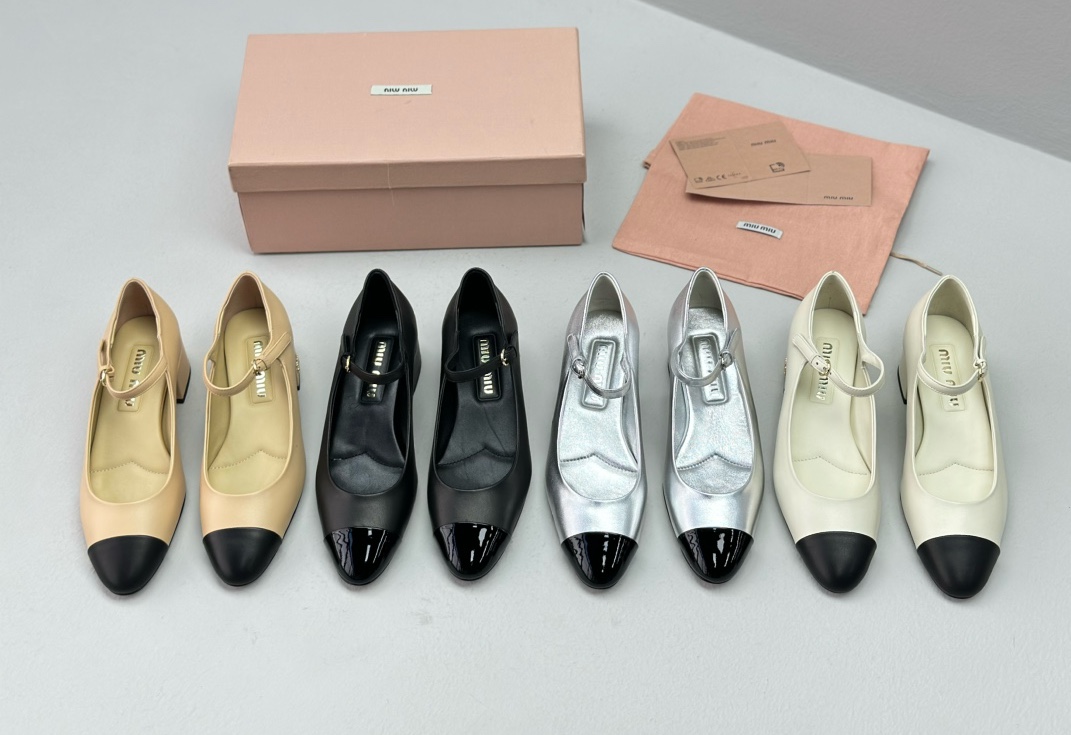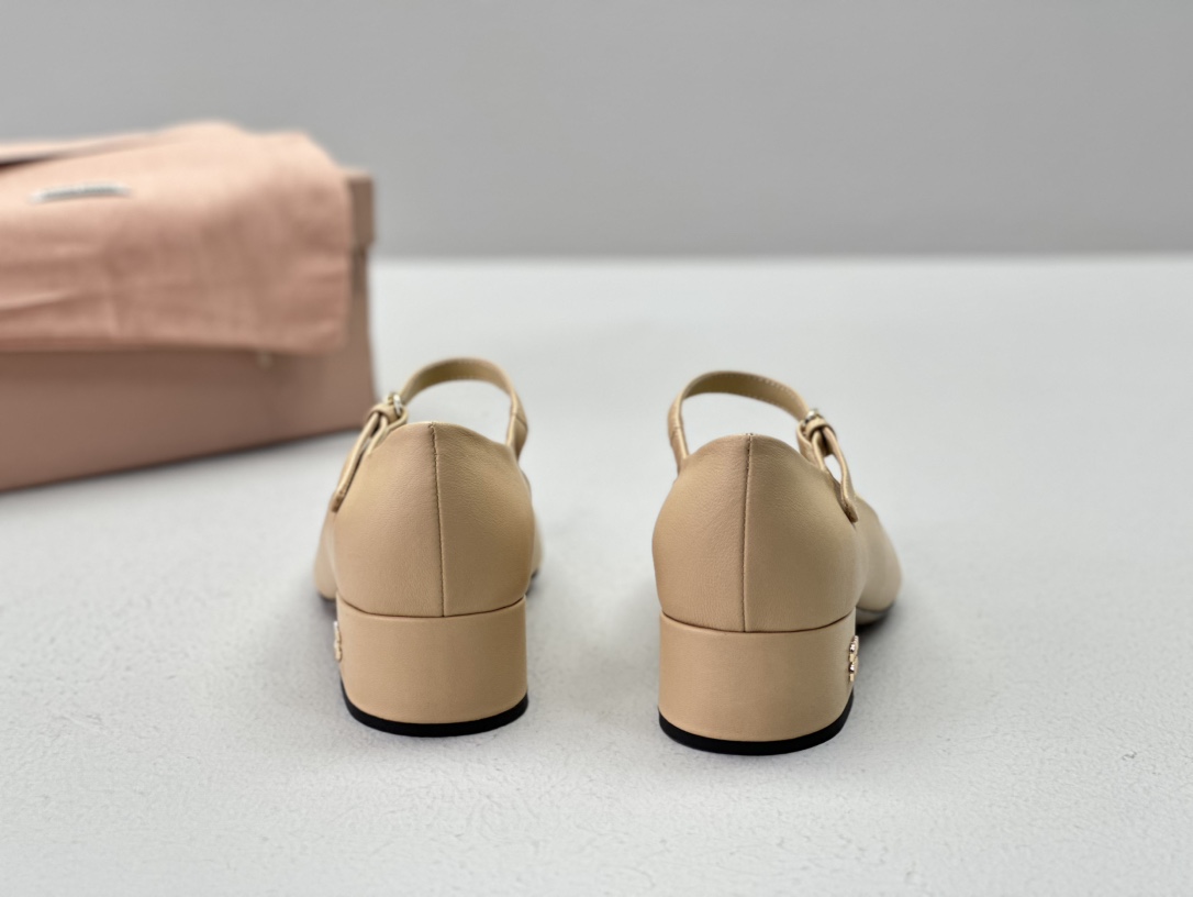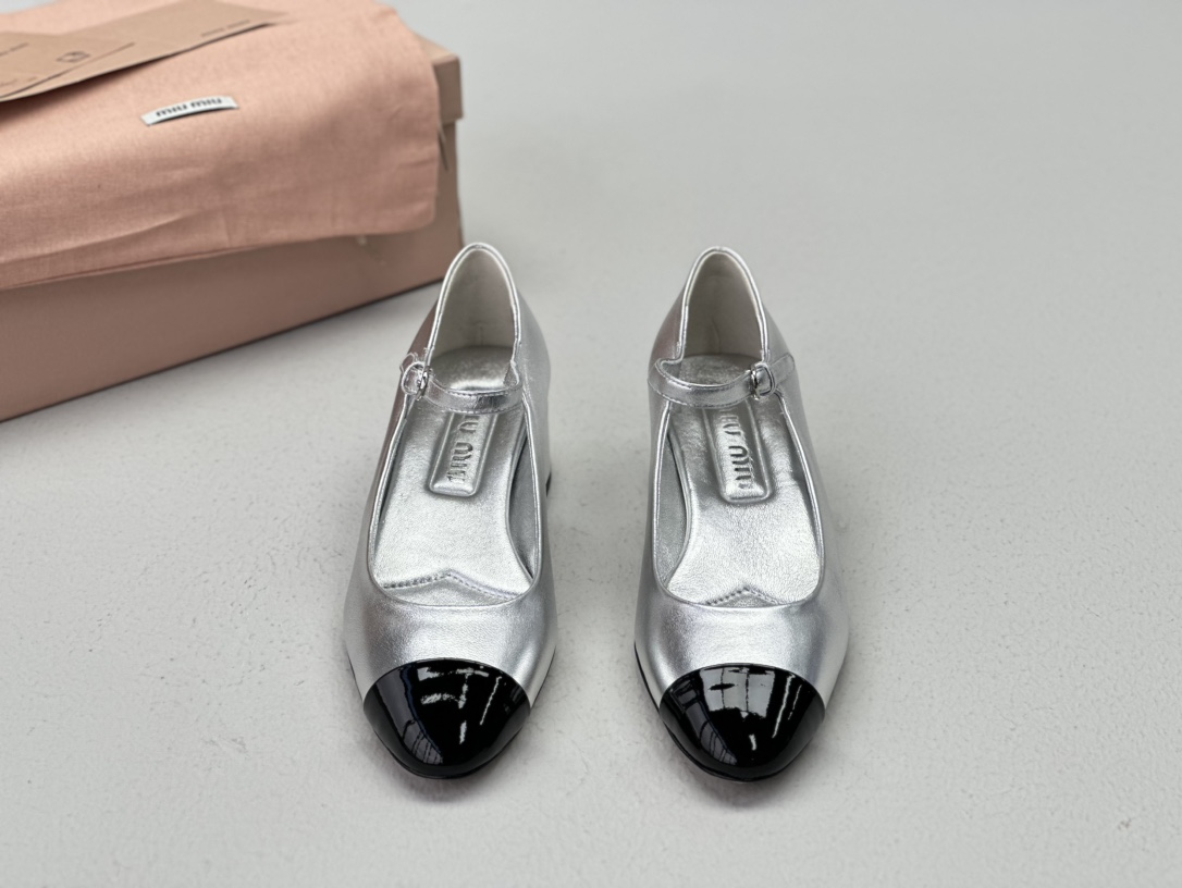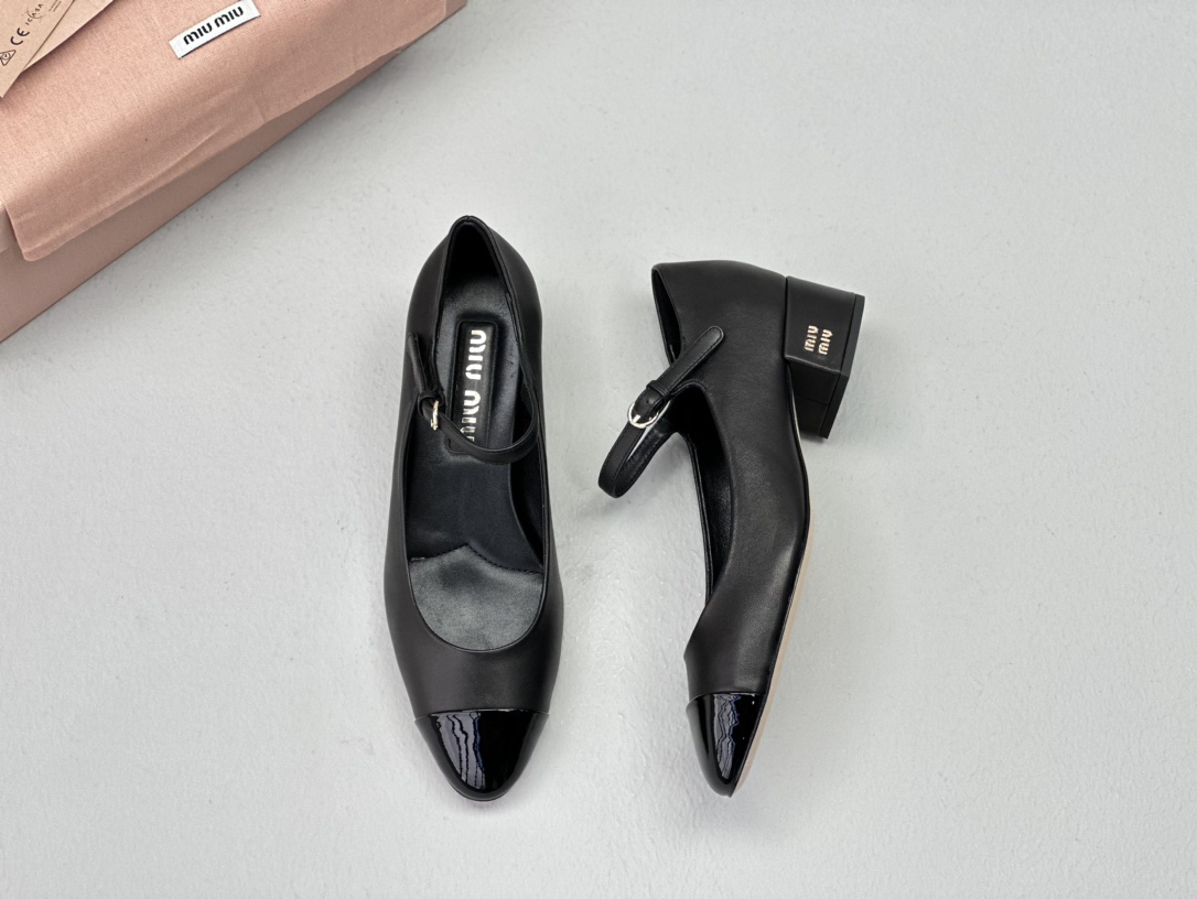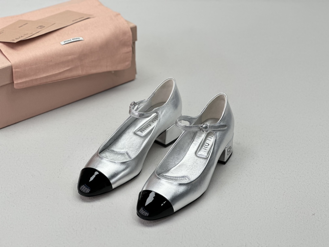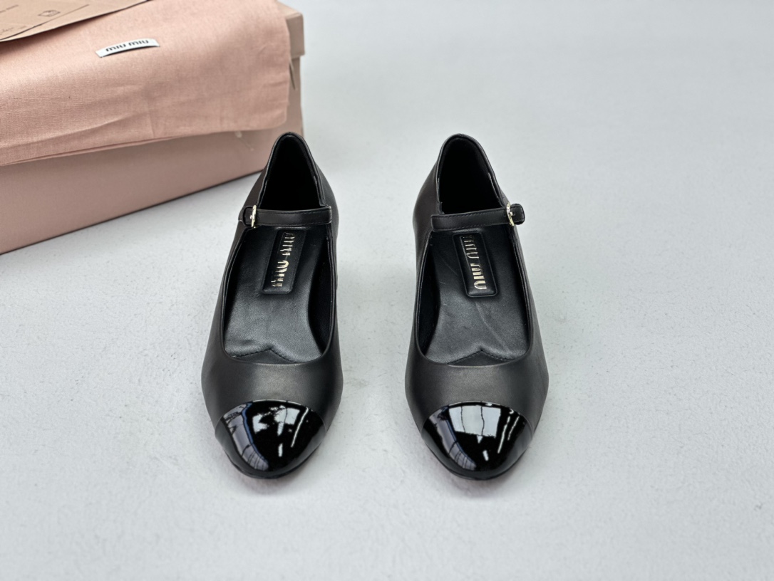 NIGO MiuMiu Women's Summer Colour Blocking Shallow Mouth Buckle Chunky Heel Leather High Heels Shoes #nigo99484