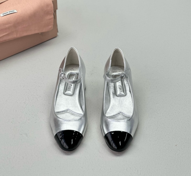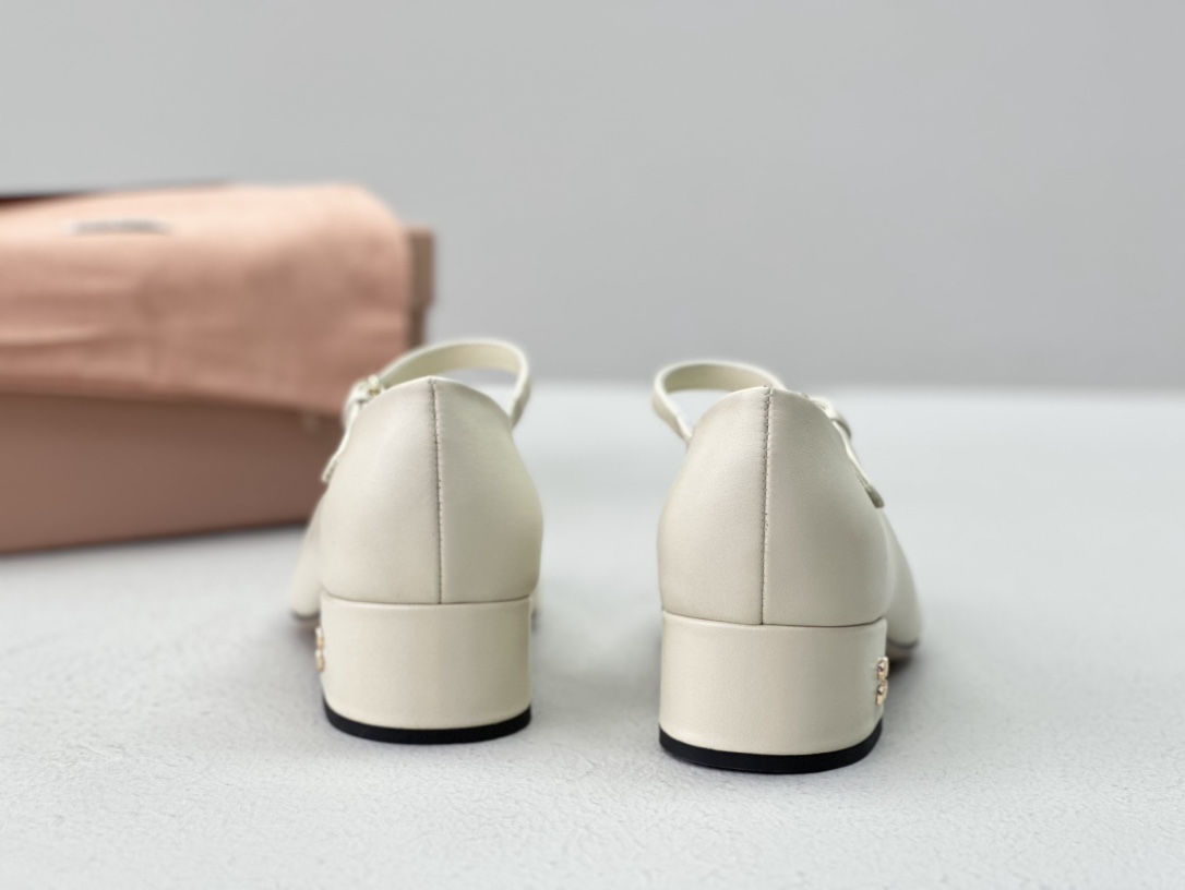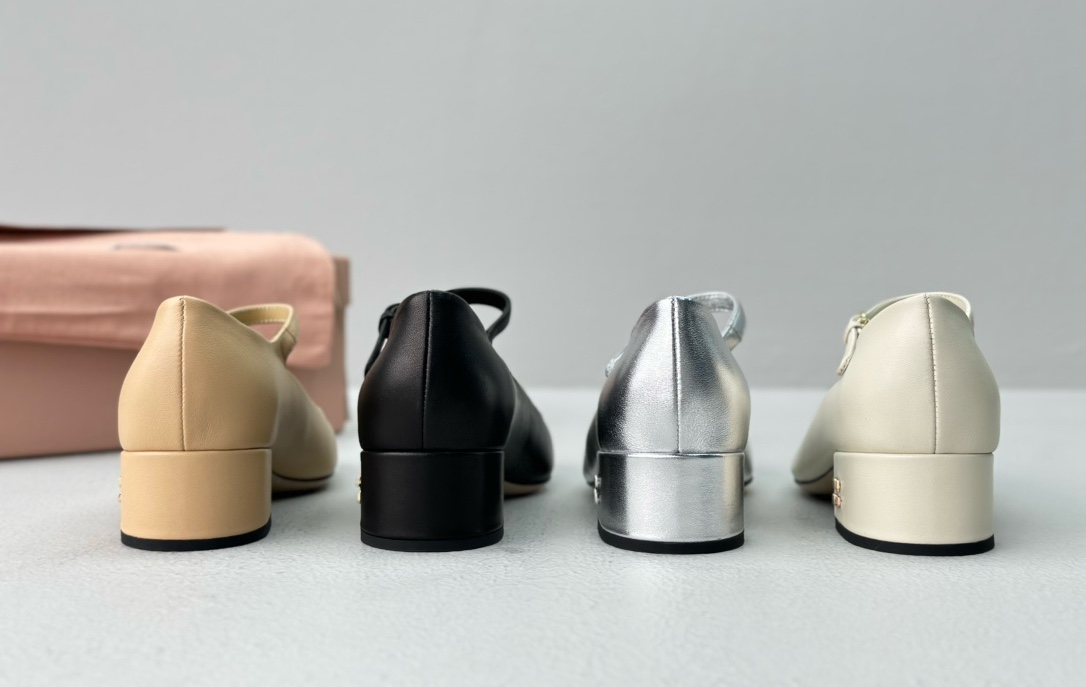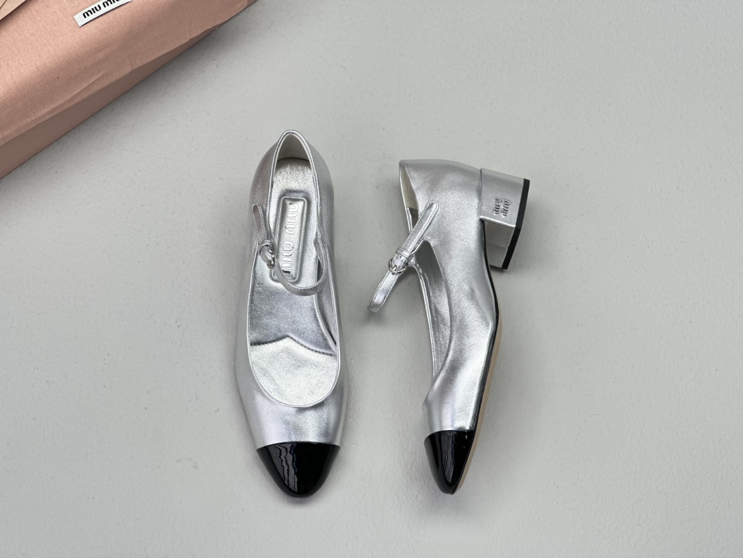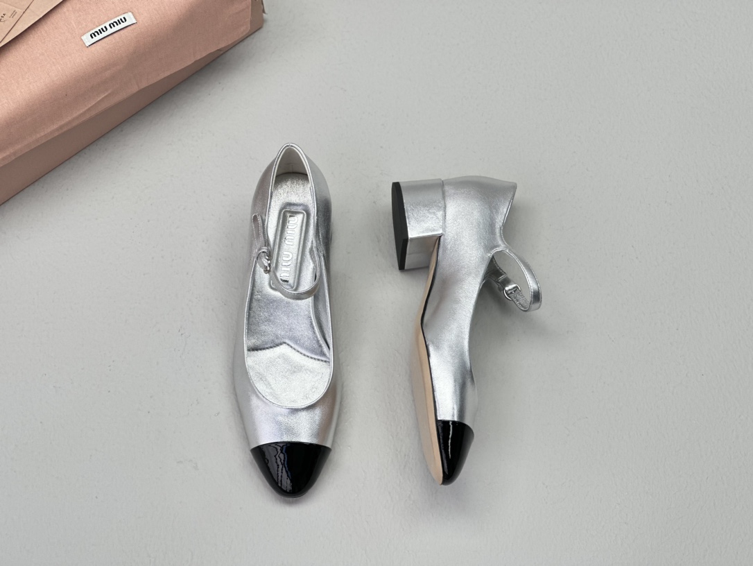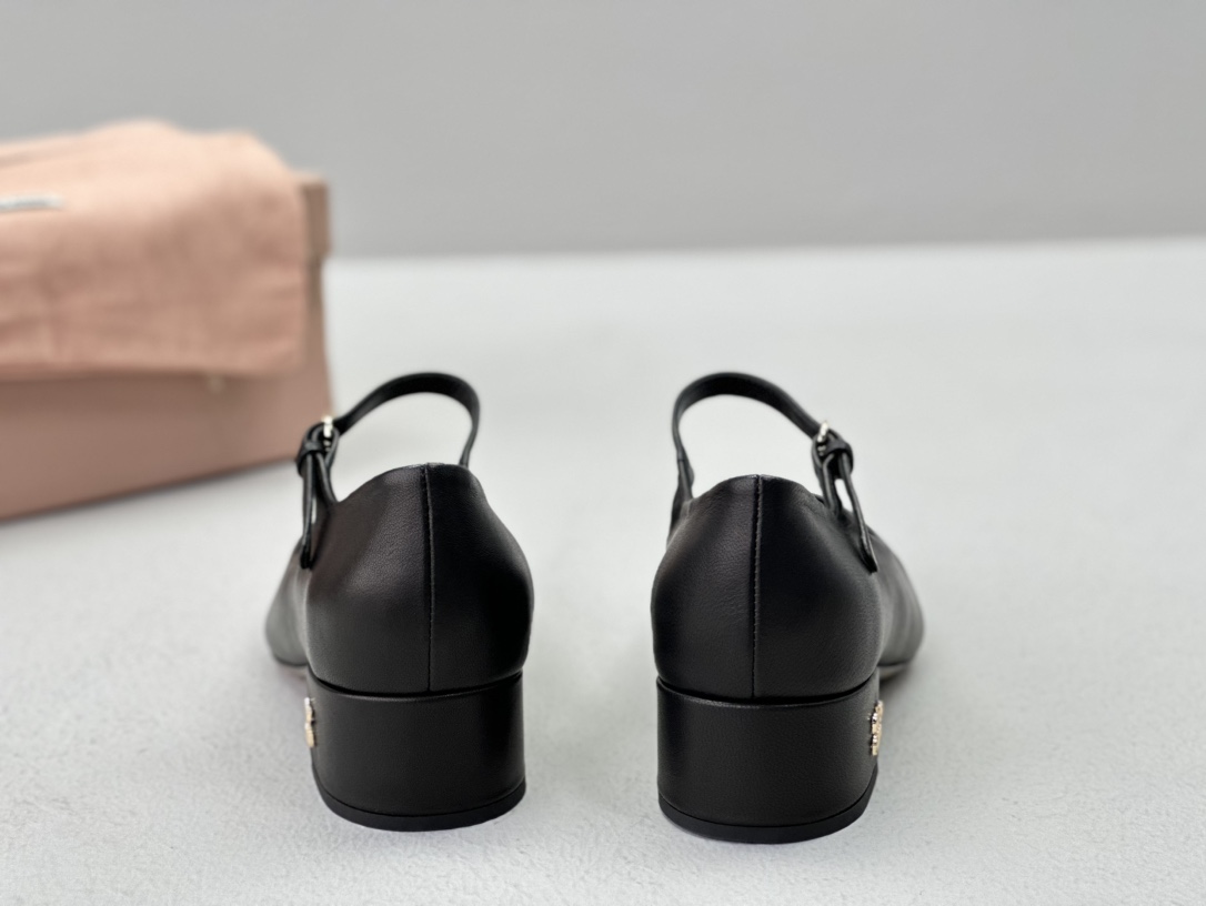 NIGO MiuMiu Women's Summer Colour Blocking Shallow Mouth Buckle Chunky Heel Leather High Heels Shoes #nigo99484