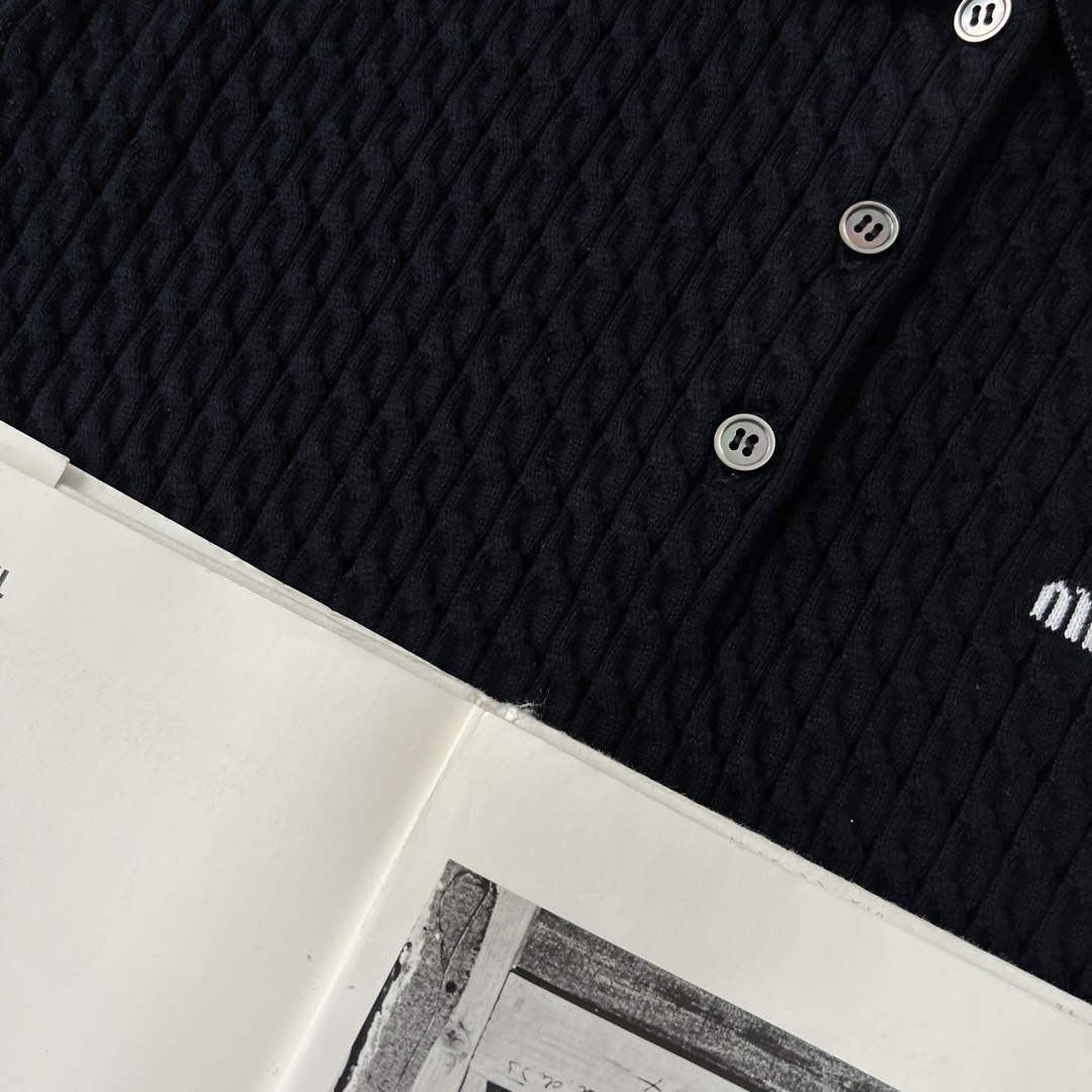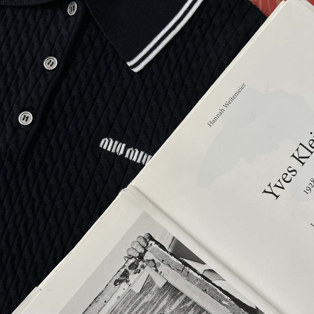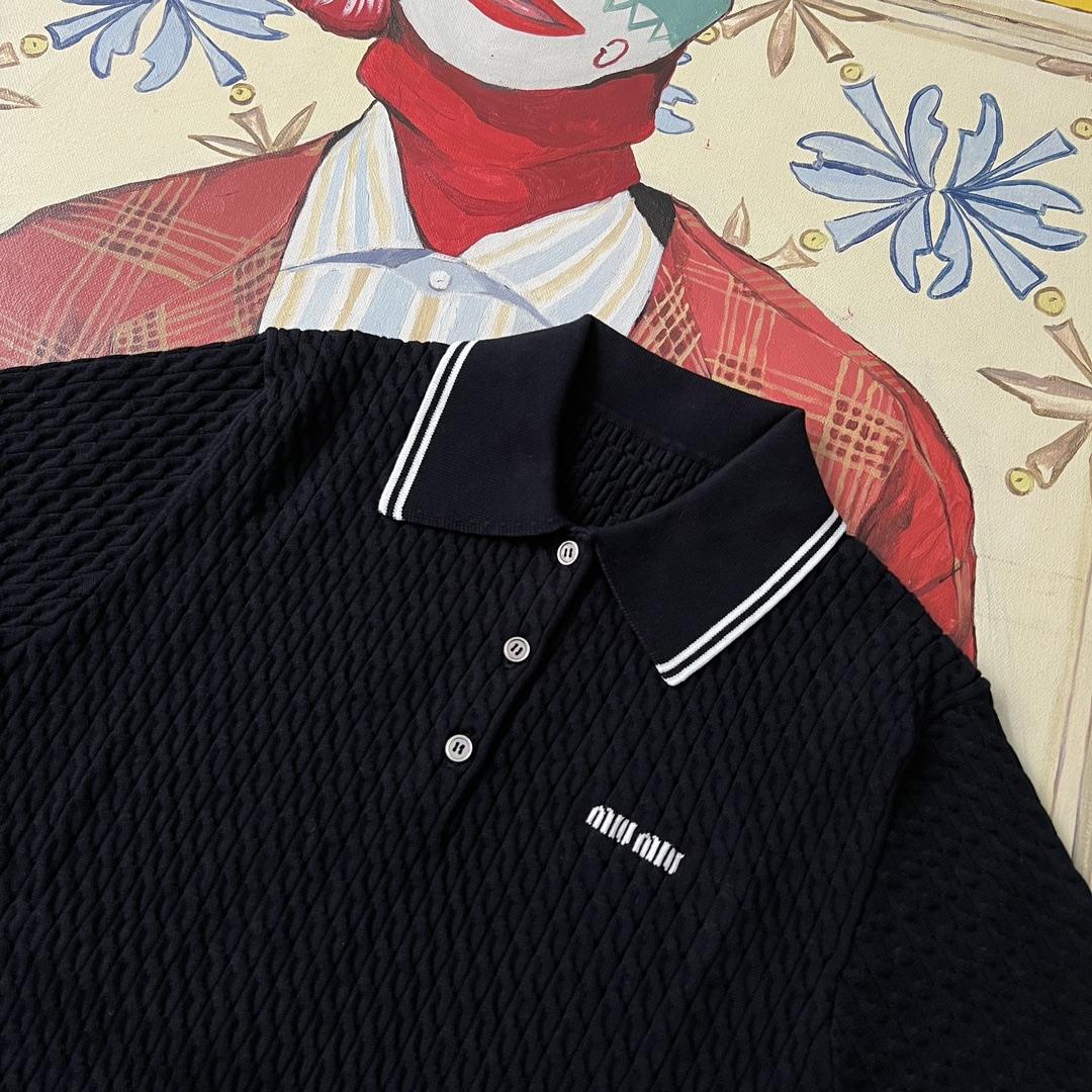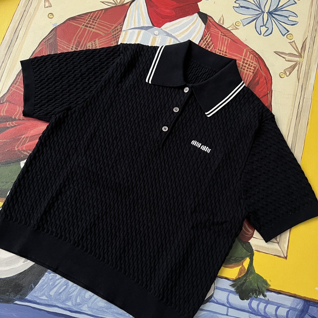 NIGO MiuMiu Women's Summer Dark Blue Letter Logo Embroidery Cotton Straight Short Sleeve Polo Shirt T-Shirt #nigo72548