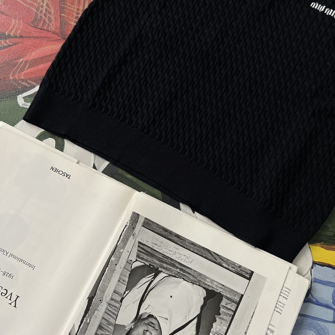Home / MIUMIU / NIGO MiuMiu Women's Summer Dark Blue Letter Logo Embroidery Cotton Straight Short Sleeve Polo Shirt T-Shirt #nigo72548