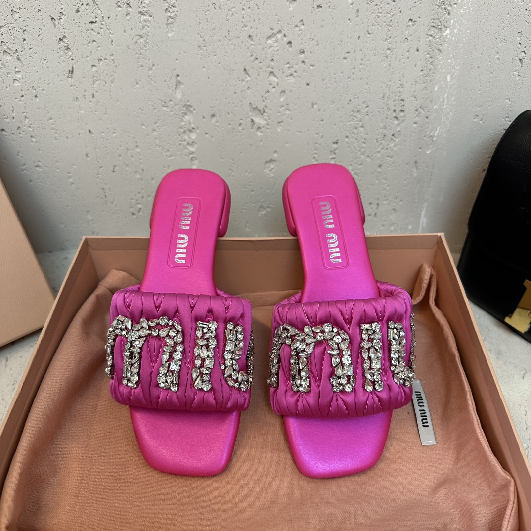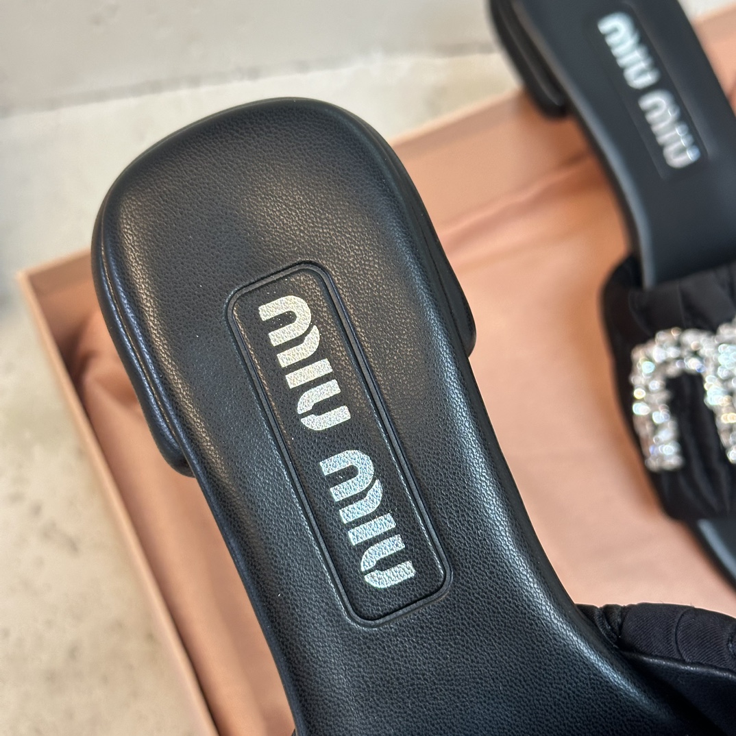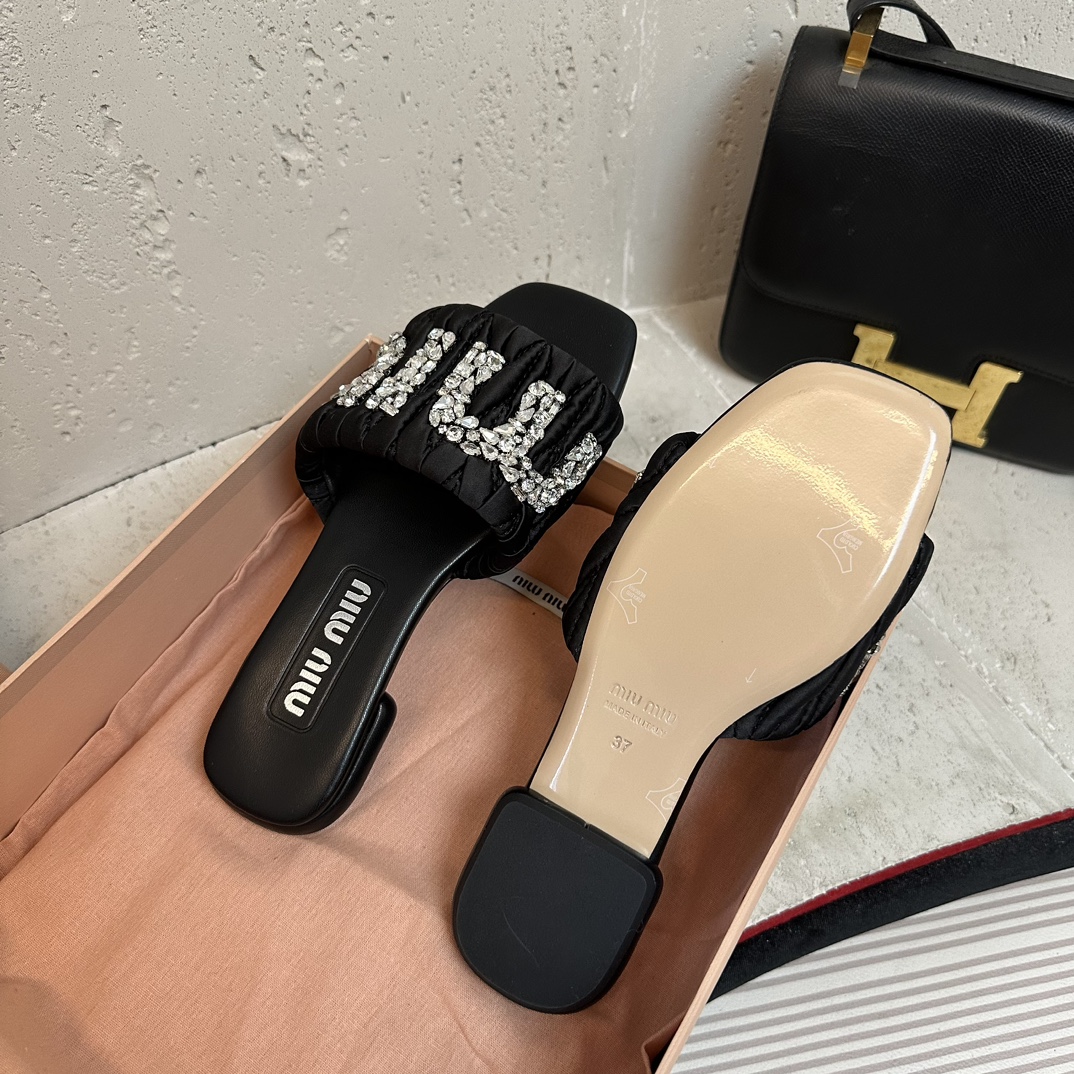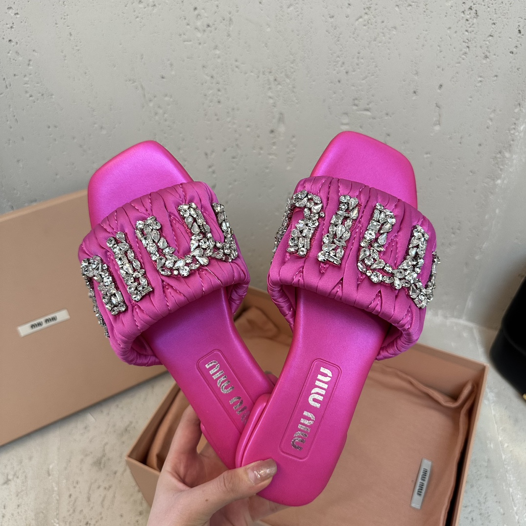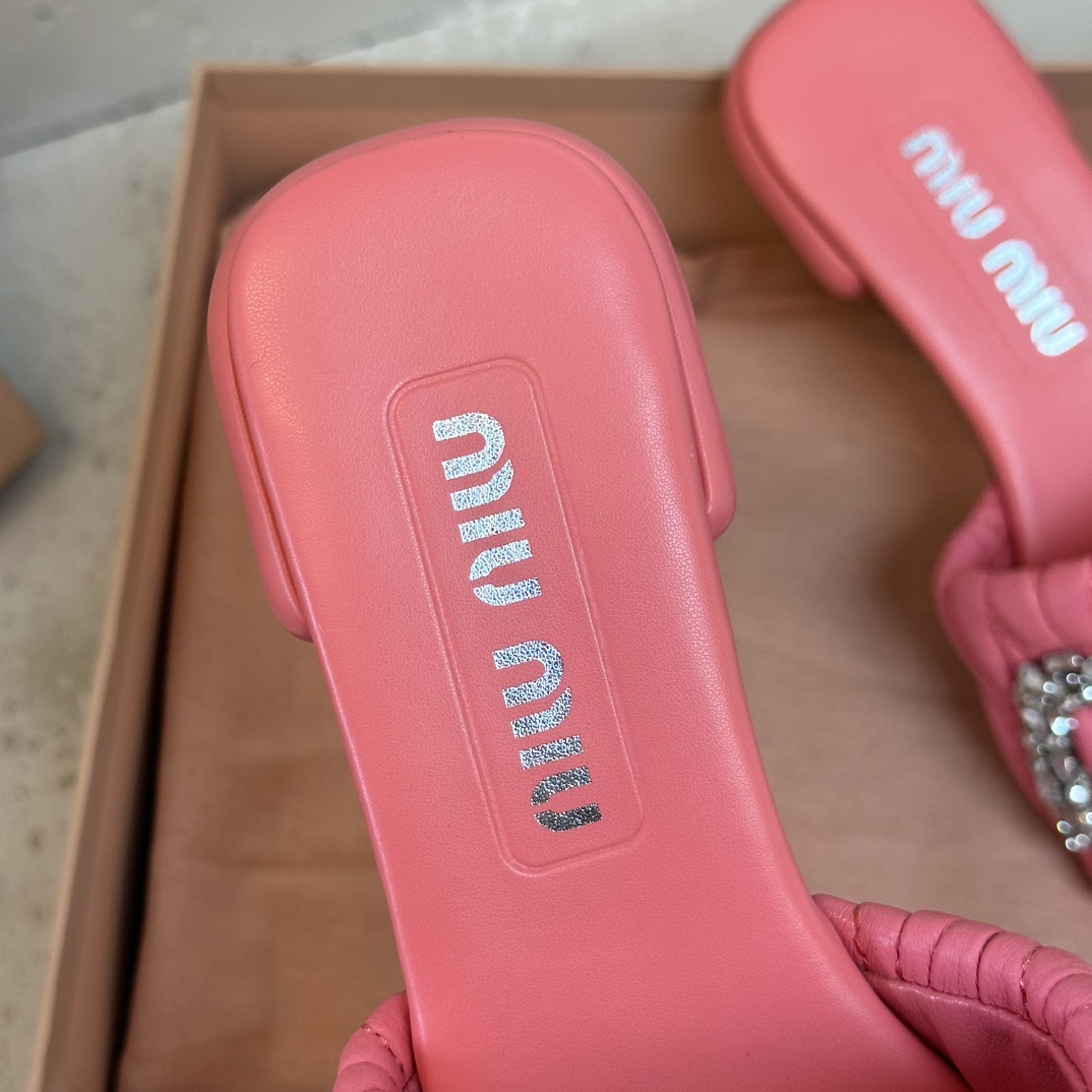 NIGO MiuMiu Women's Summer Diamonds Letter Logo Flat Pleated Calfskin Sandals Slippers Shoes #nigo72376