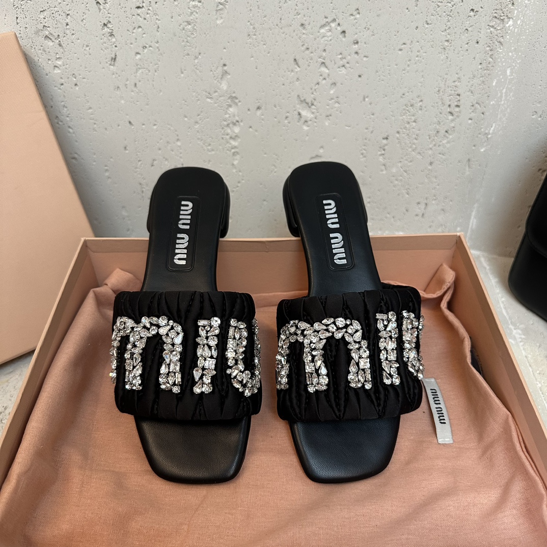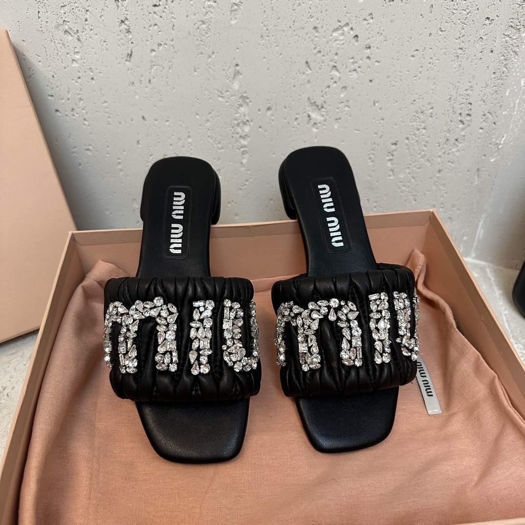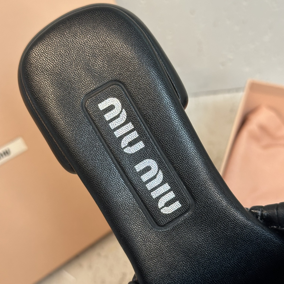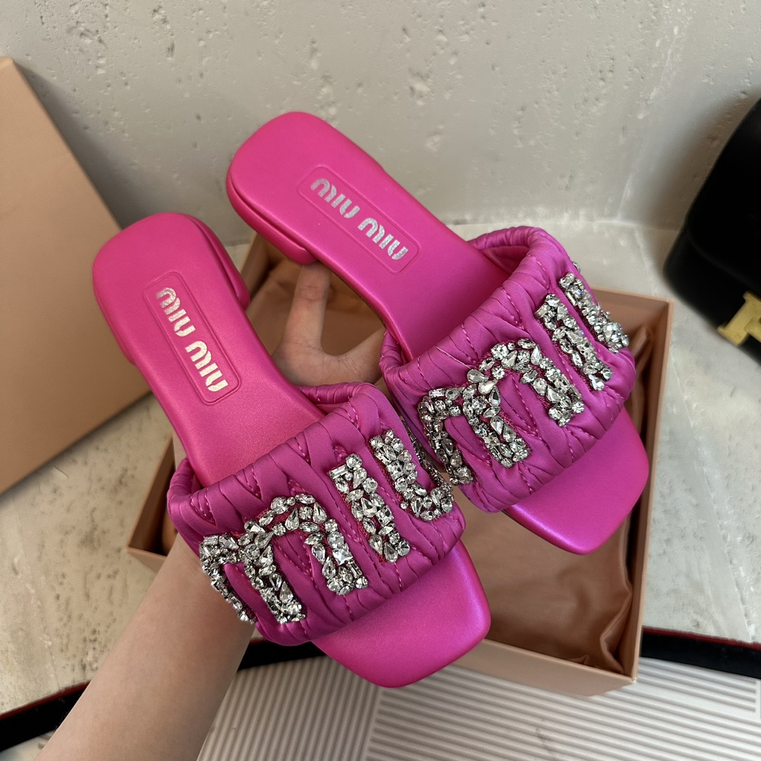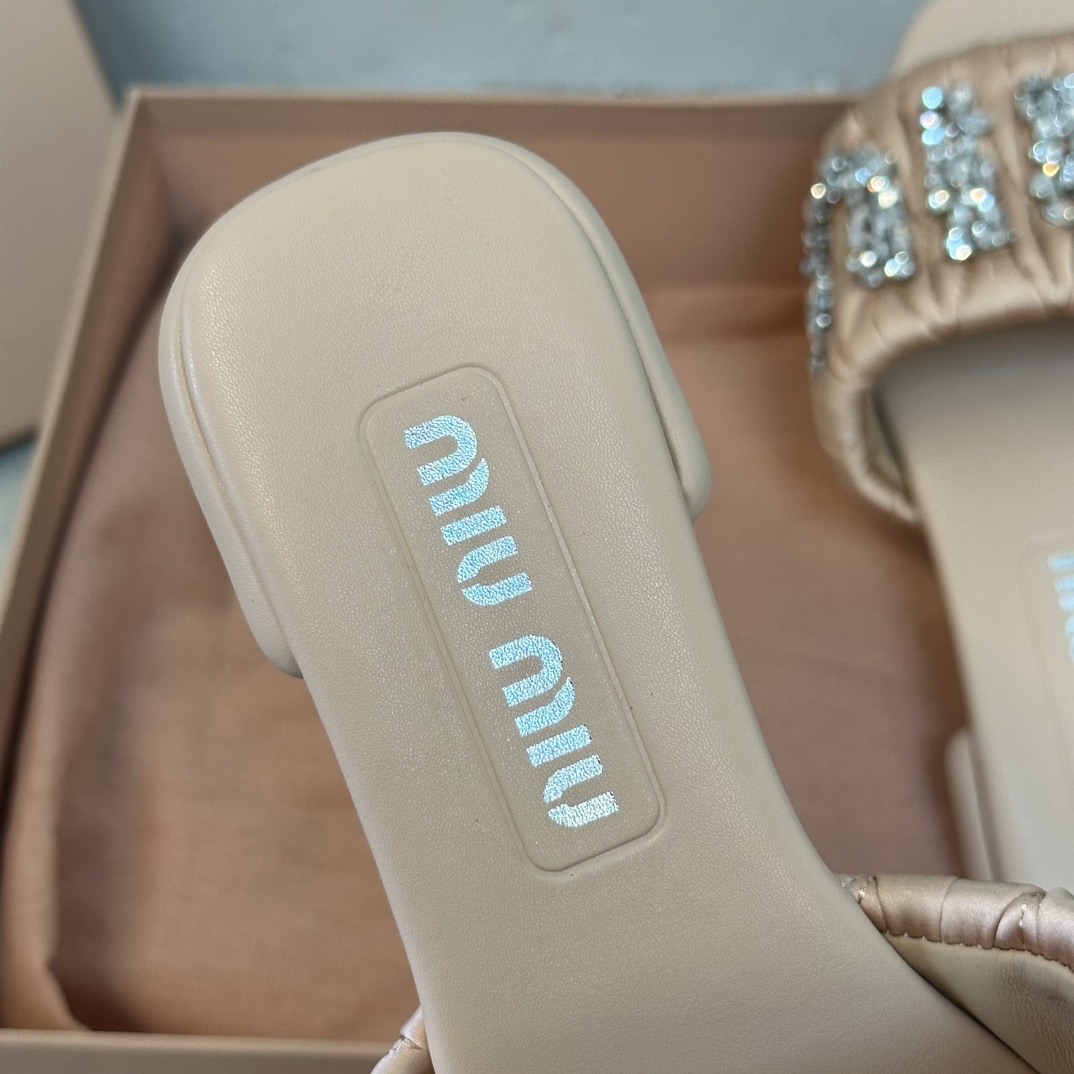 NIGO MiuMiu Women's Summer Diamonds Letter Logo Flat Pleated Calfskin Sandals Slippers Shoes #nigo72376