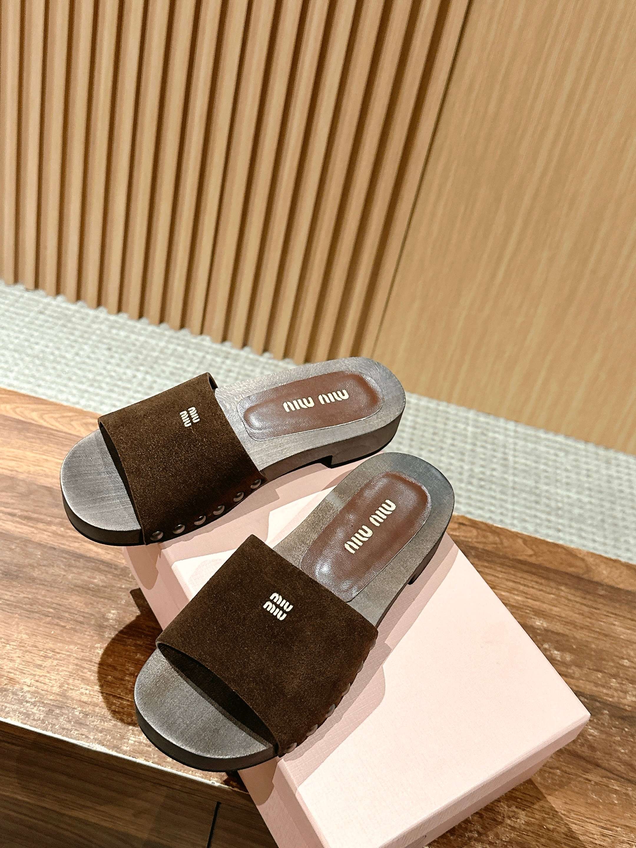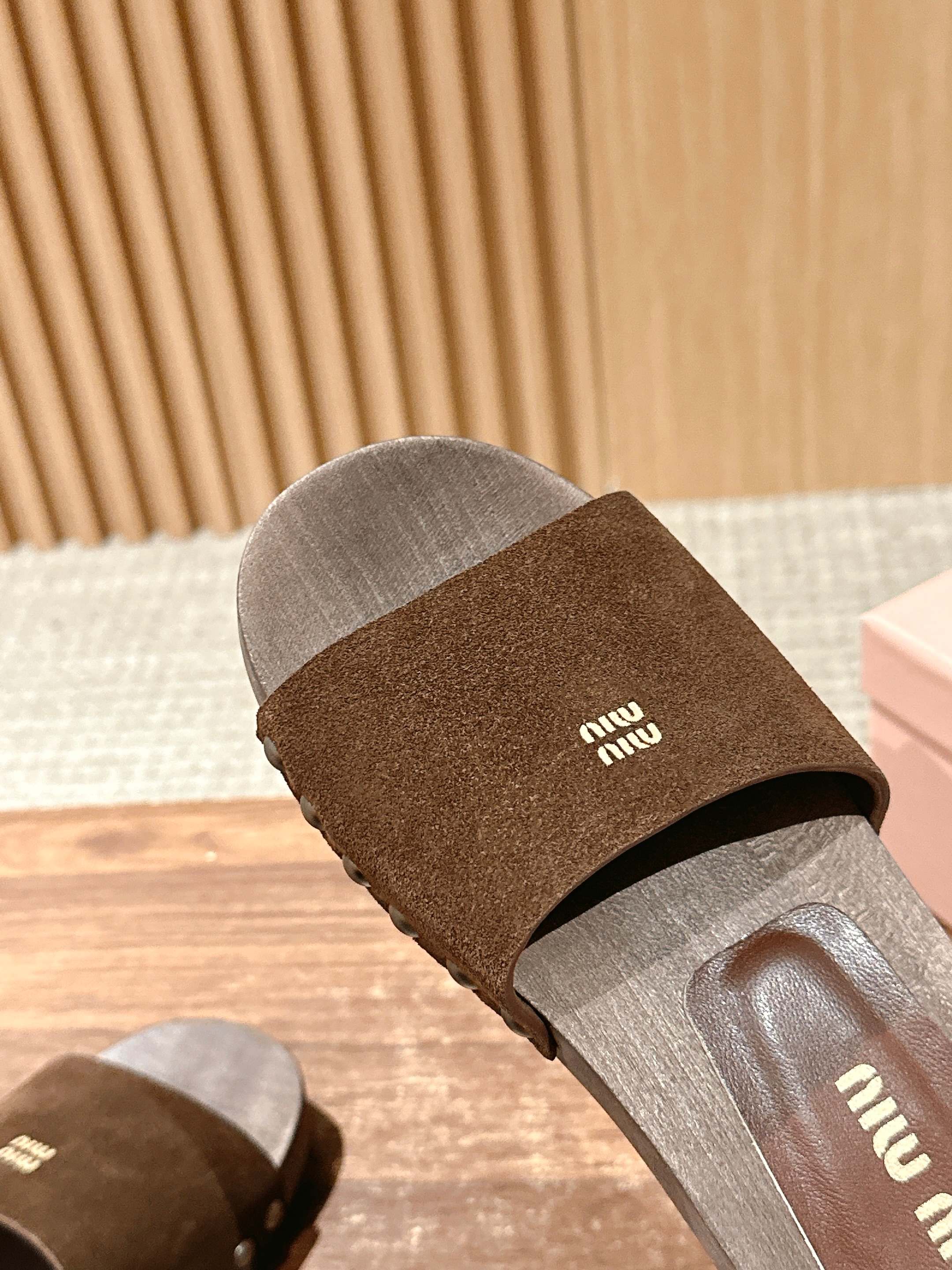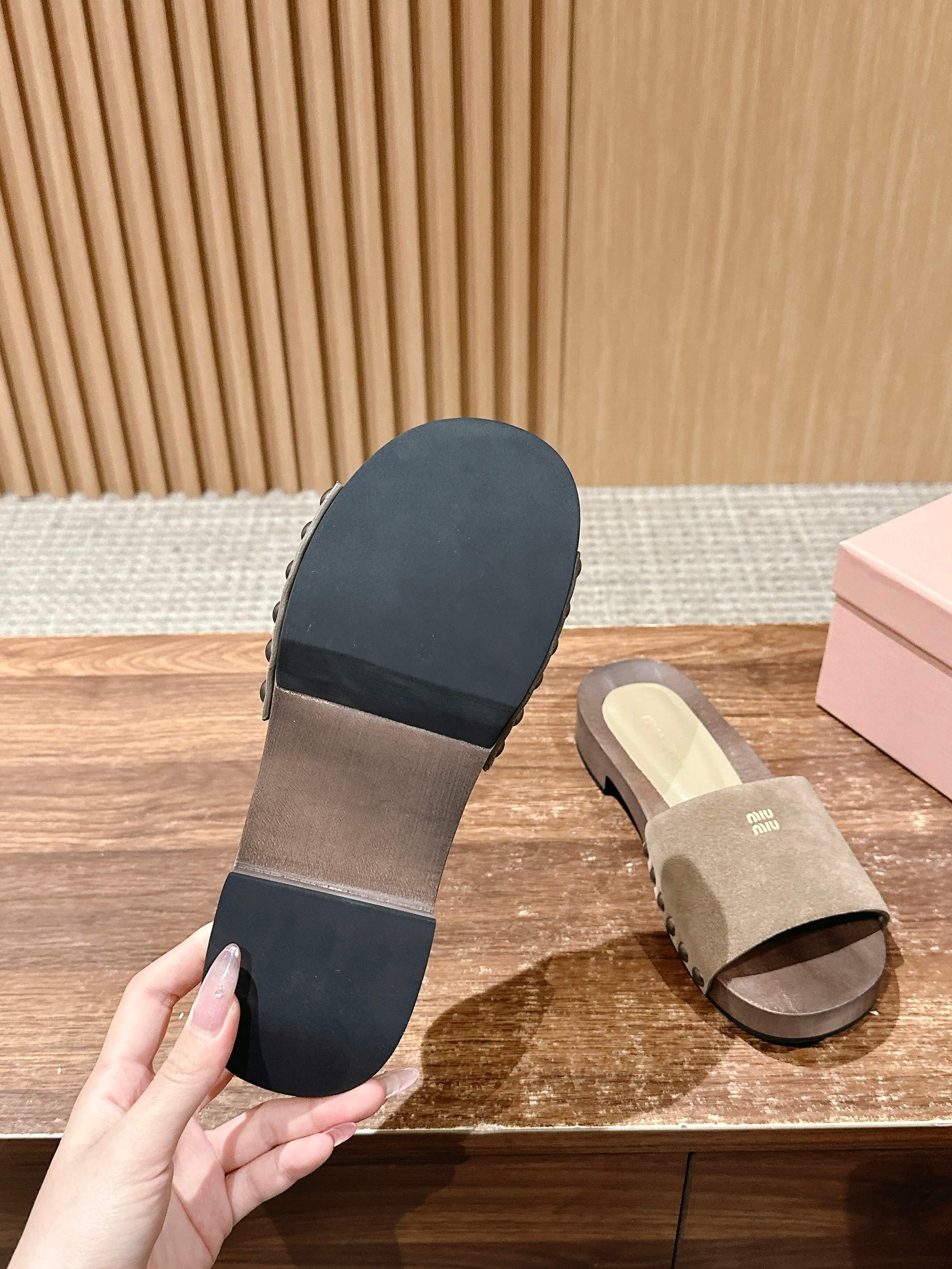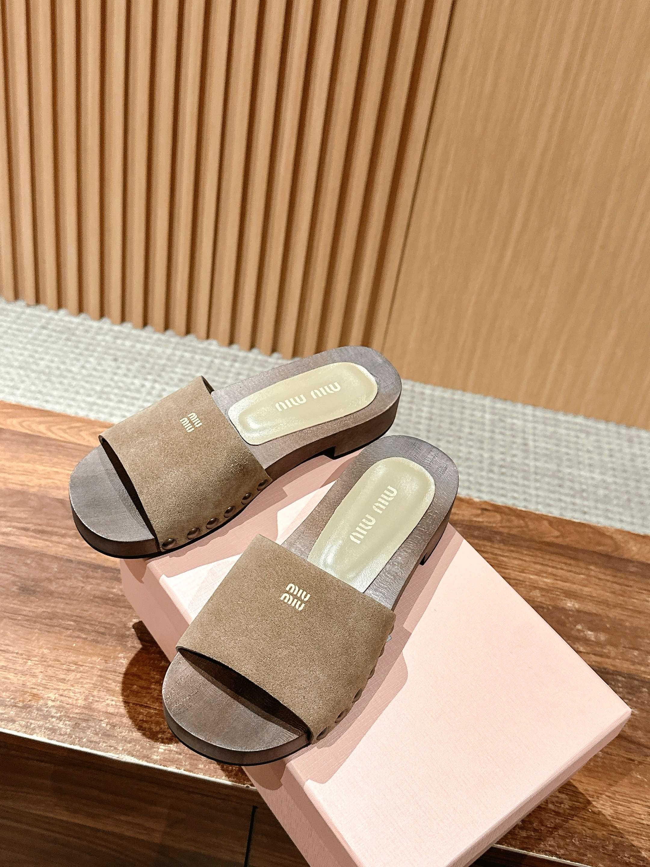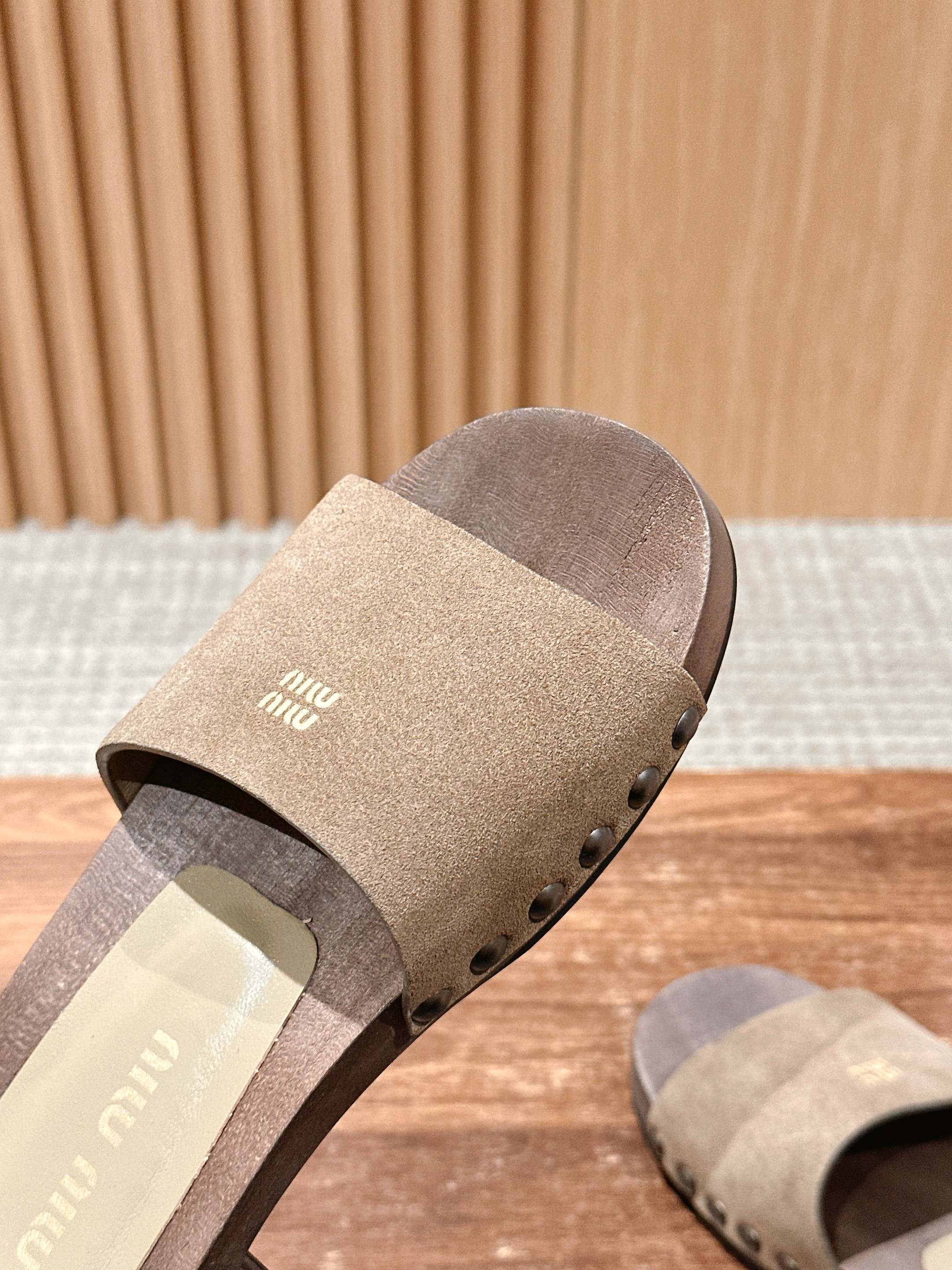 NIGO MiuMiu Women's Summer Fashion Casual Round Toe Slip On Suede Leather Wooden Sole Sandals Shoes #nigo78432